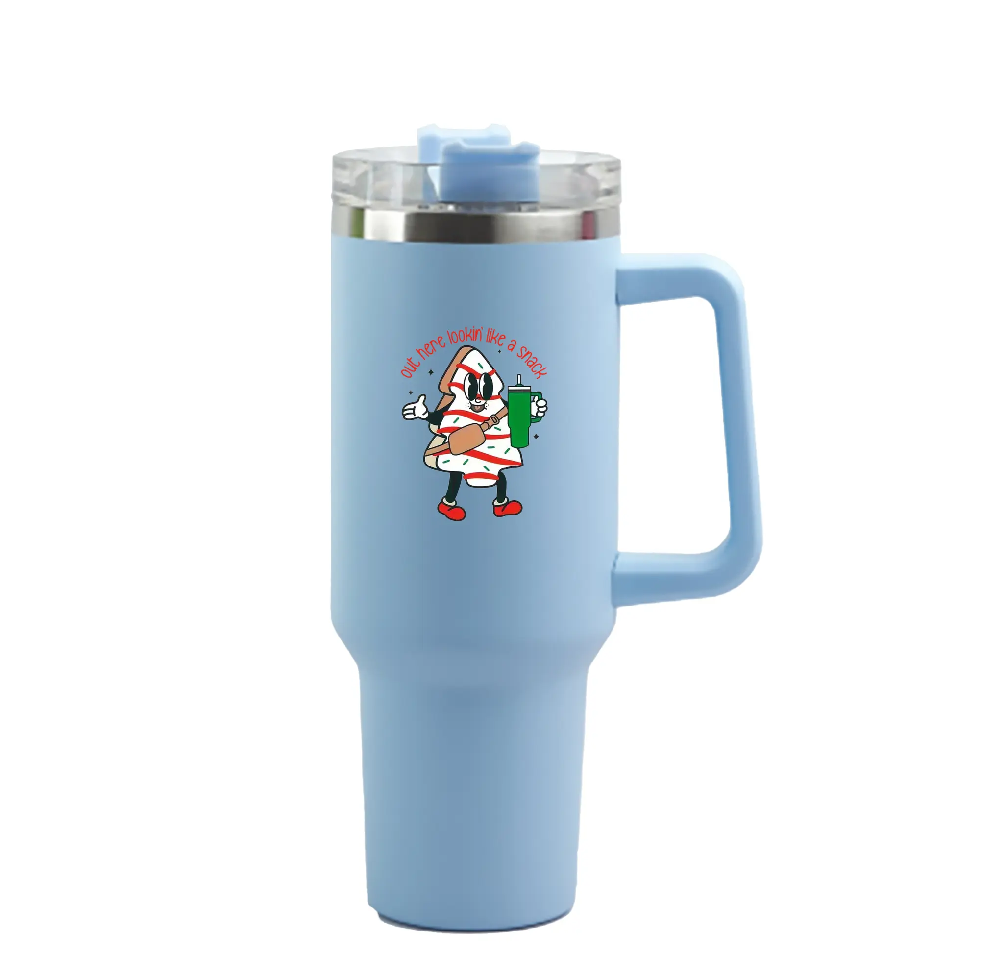 Experience convenience and style with this 40oz handle car cup, featuring a dazzling crystal sticker design that adds sparkle to your daily routine.