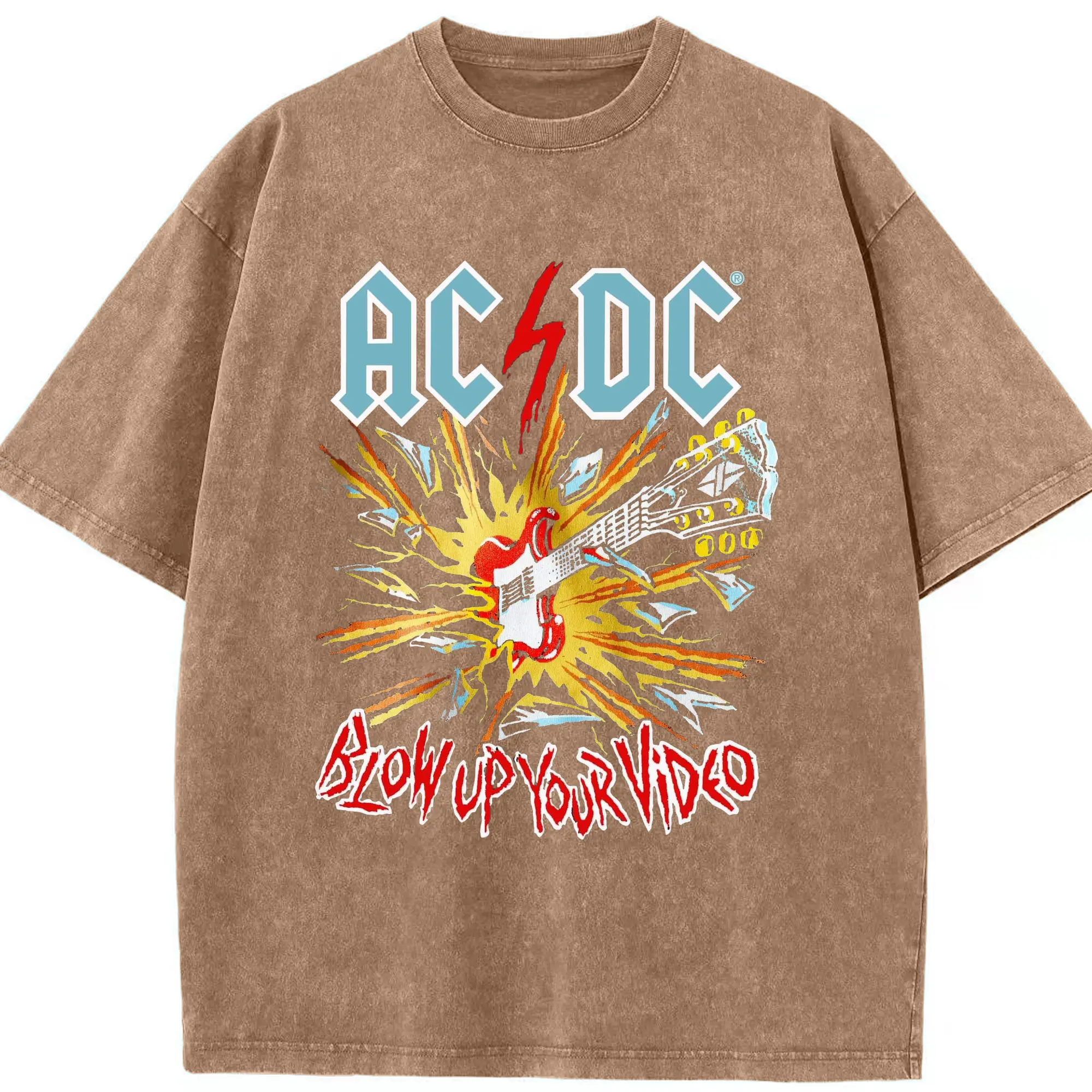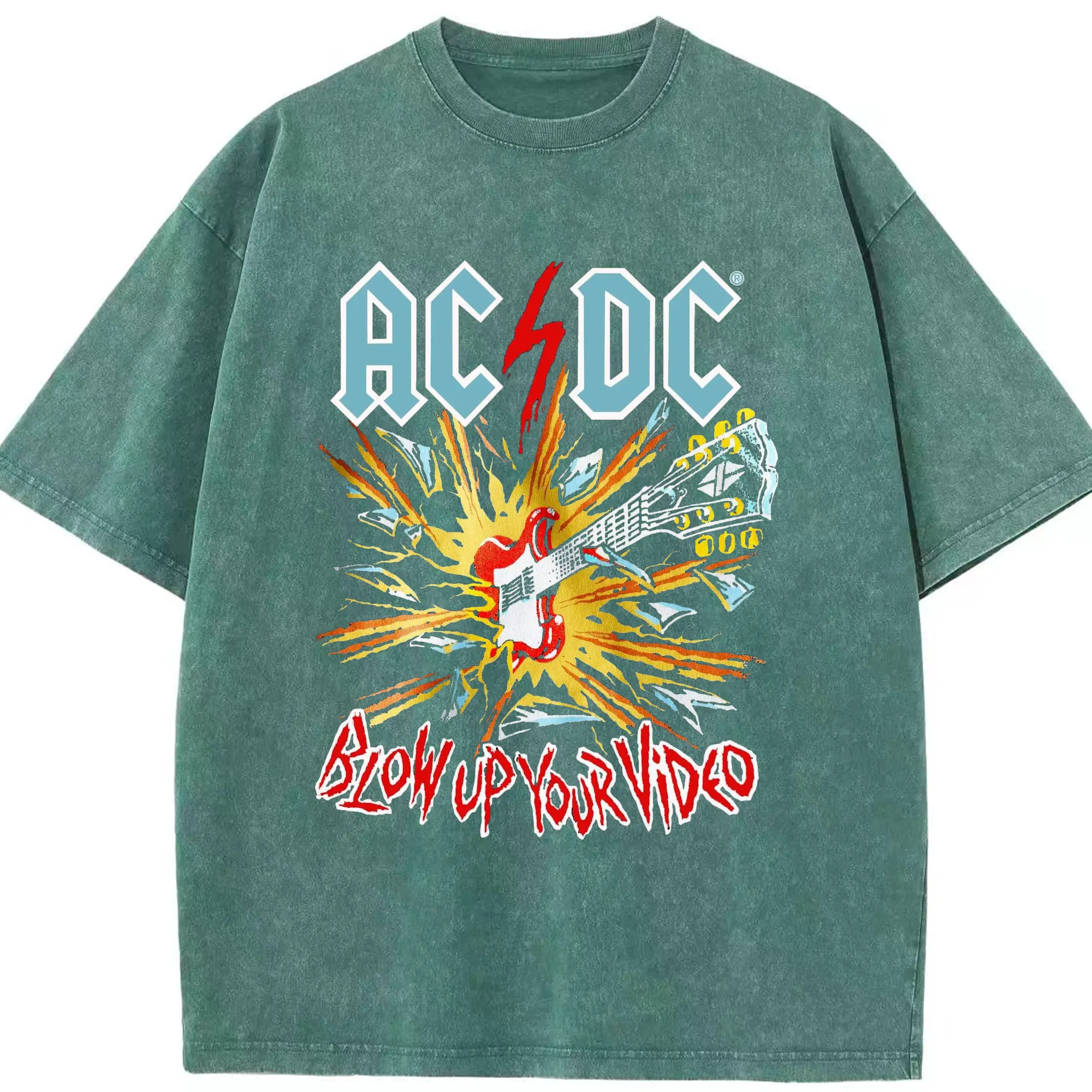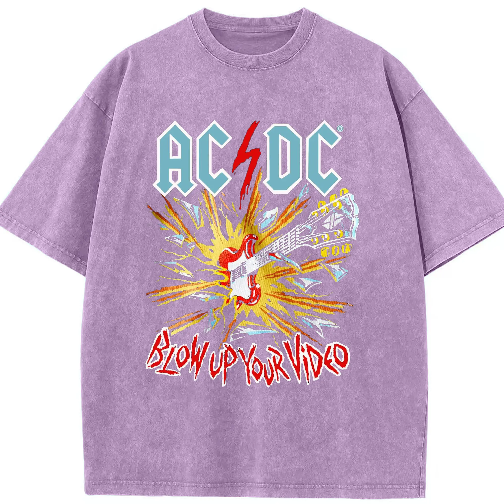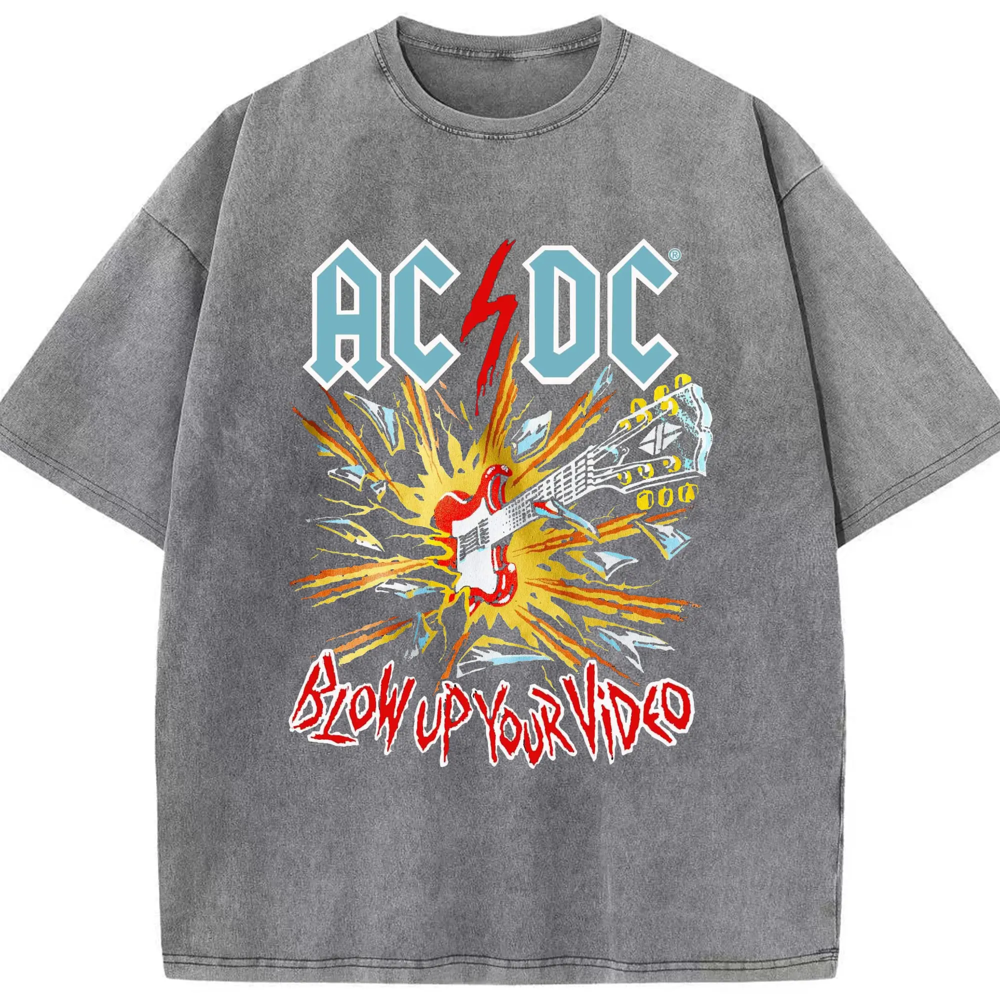 :AC/DC Hard Rock Album “Blow Up Your Video” DIY - Washed Vintage Look 230g Cotton Oversized T-Shirt With Front Heat Transfer Print – Soft, Lightweight, Stylish Fit – Comfortable Casual Wear For Sports & Everyday Use