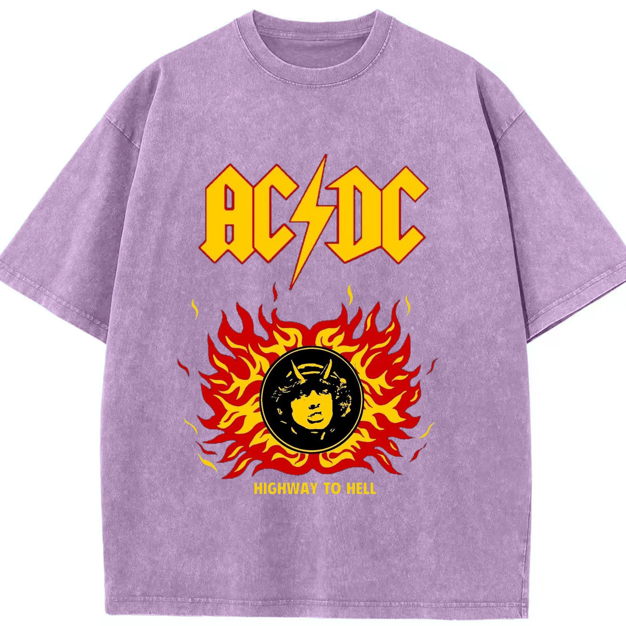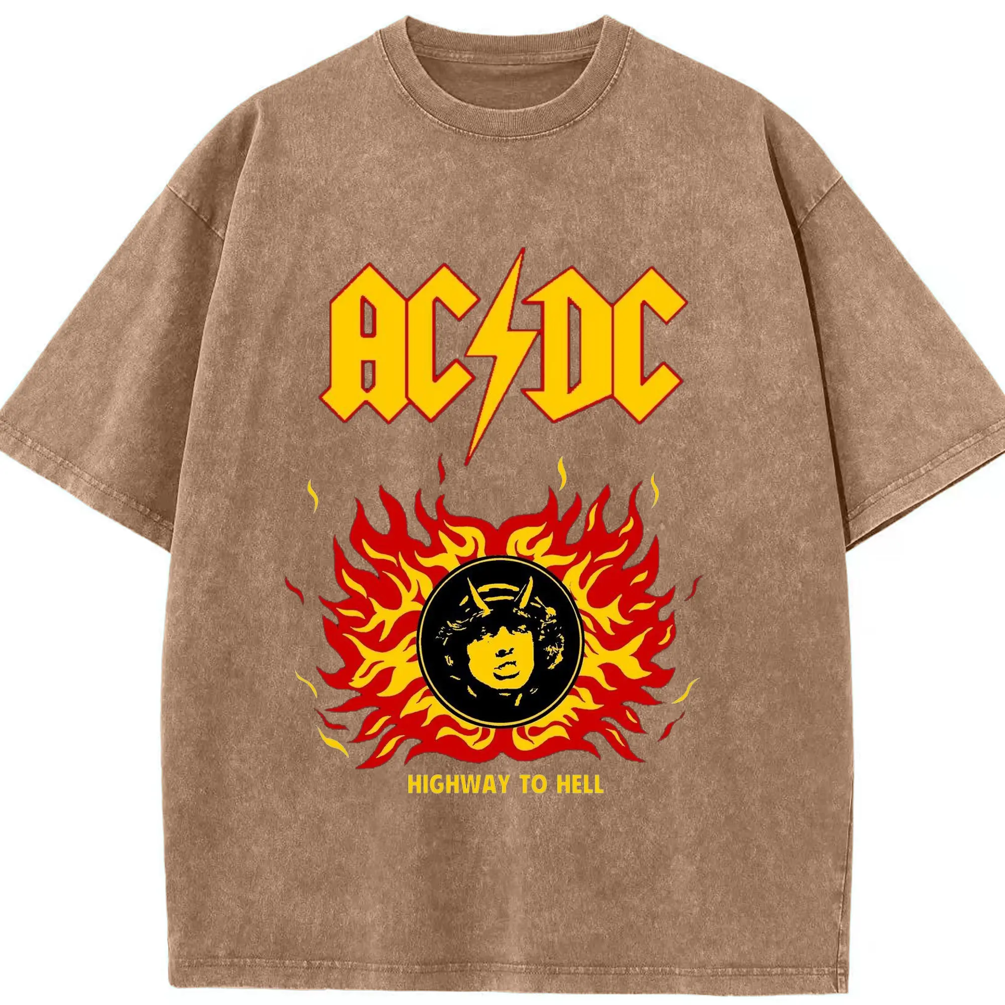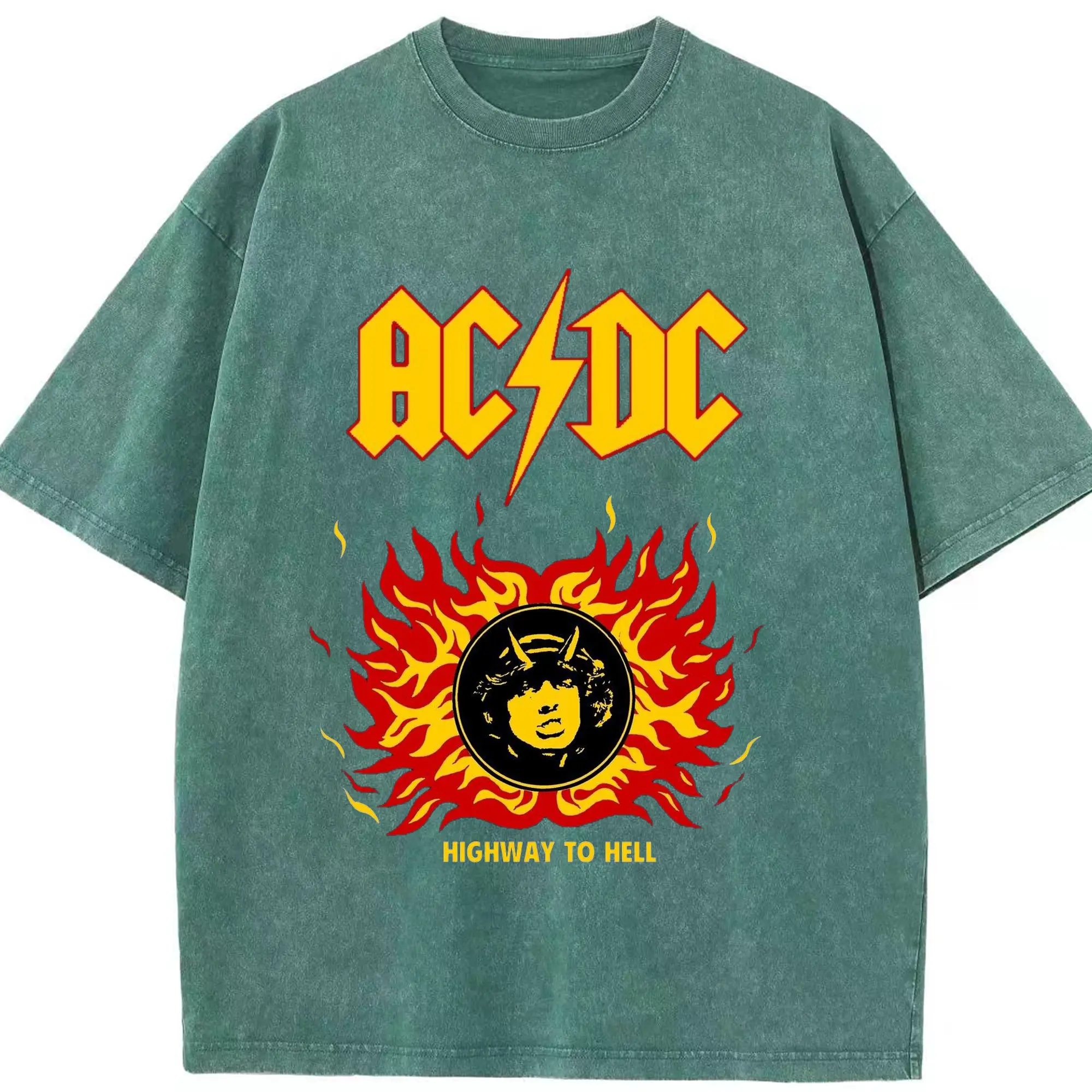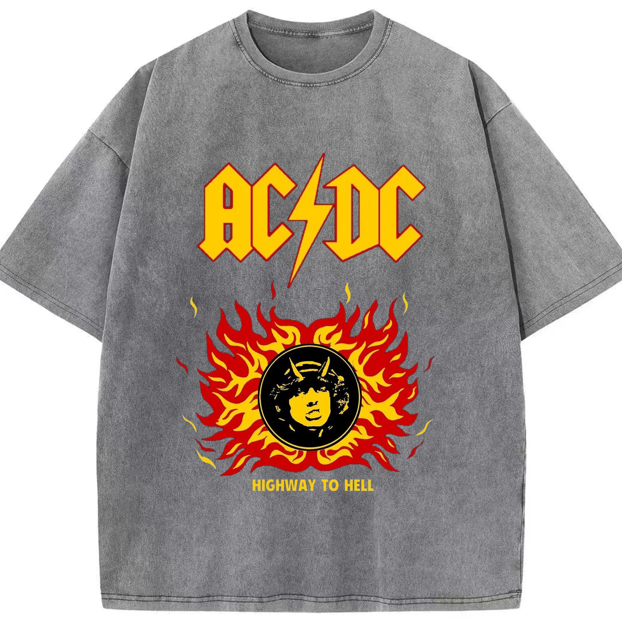 AC/DC Hard Rock “Highway to Hell” DIY - Washed Vintage Look 230g Cotton Oversized T-Shirt With Front Heat Transfer Print – Soft, Lightweight, Stylish Fit – Comfortable Casual Wear For Sports & Everyday Use