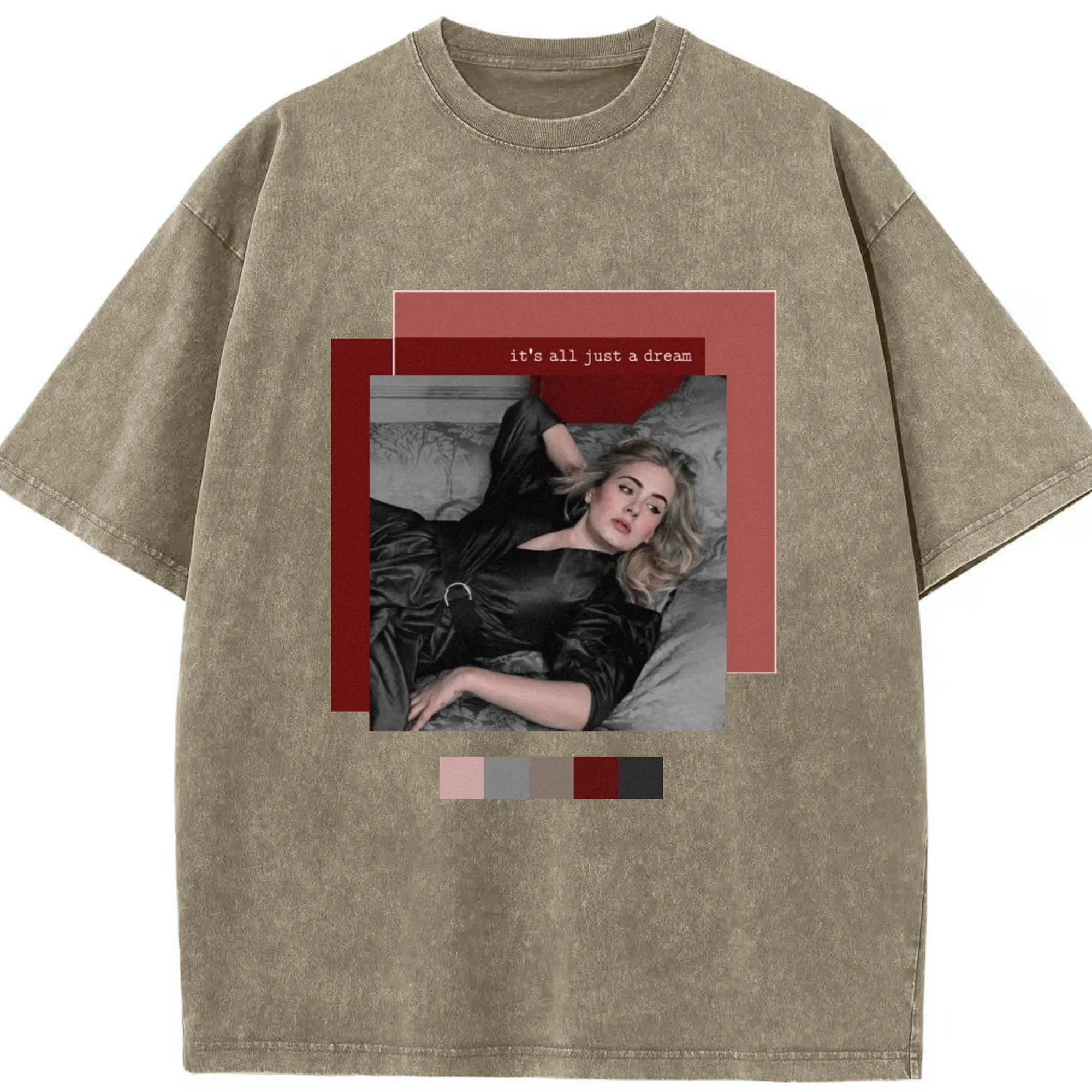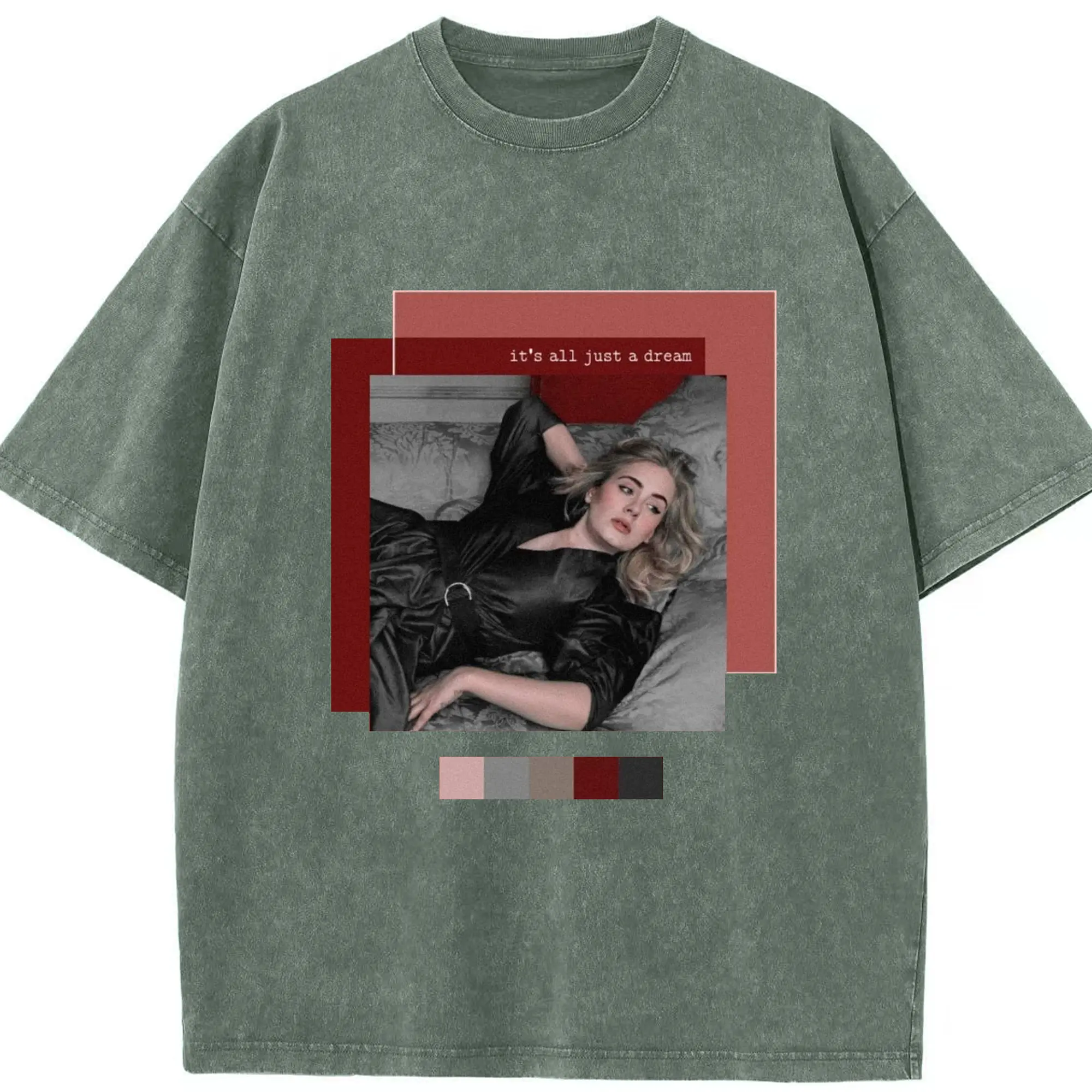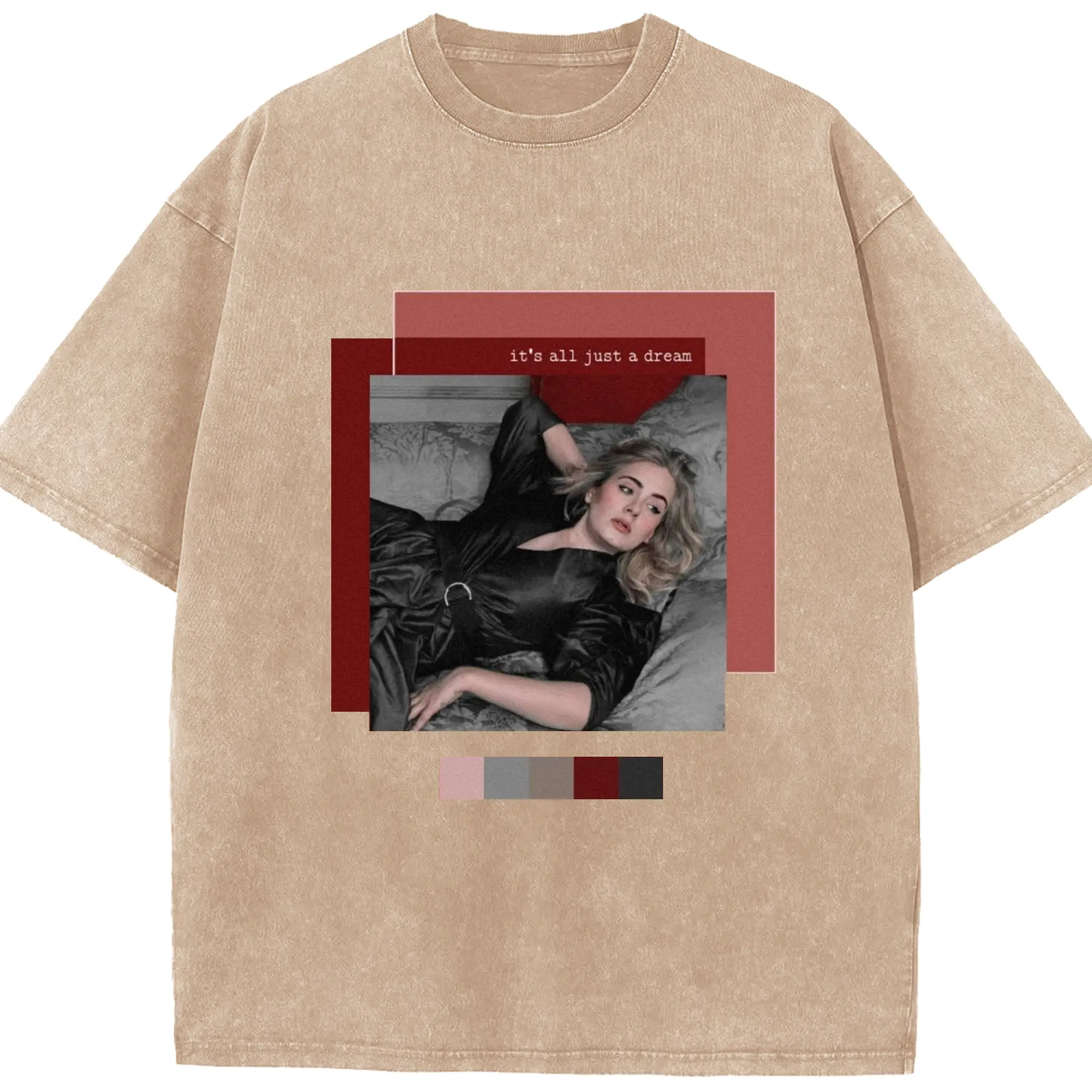 Adele Ancient collage art style - Washed Vintage Look 230g Cotton Oversized T-Shirt With Front Heat Transfer Print – Soft, Lightweight, Stylish Fit – Comfortable Casual Wear For Sports & Everyday Use