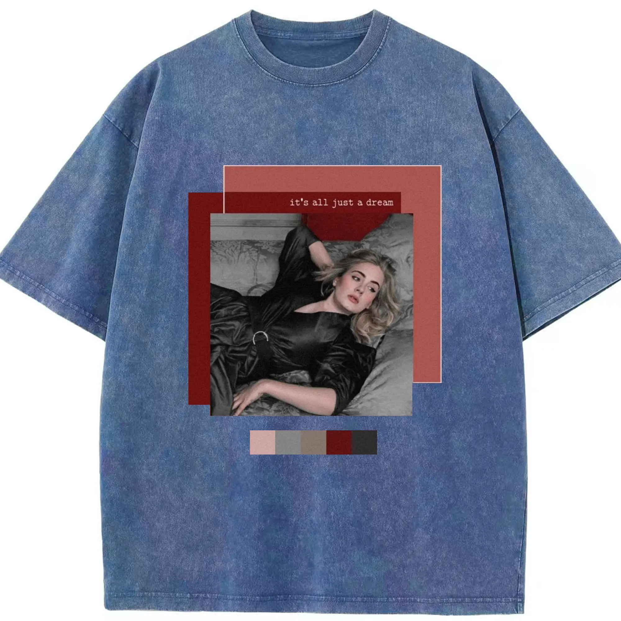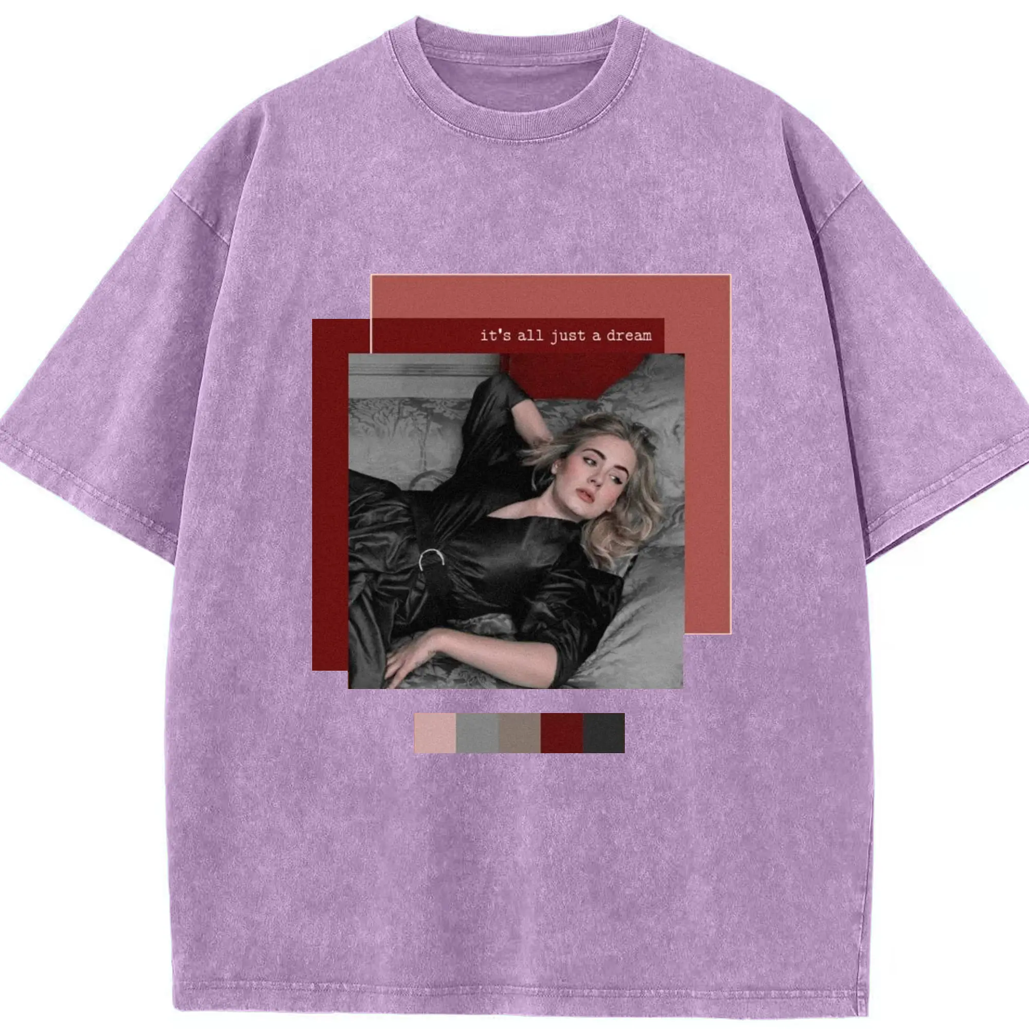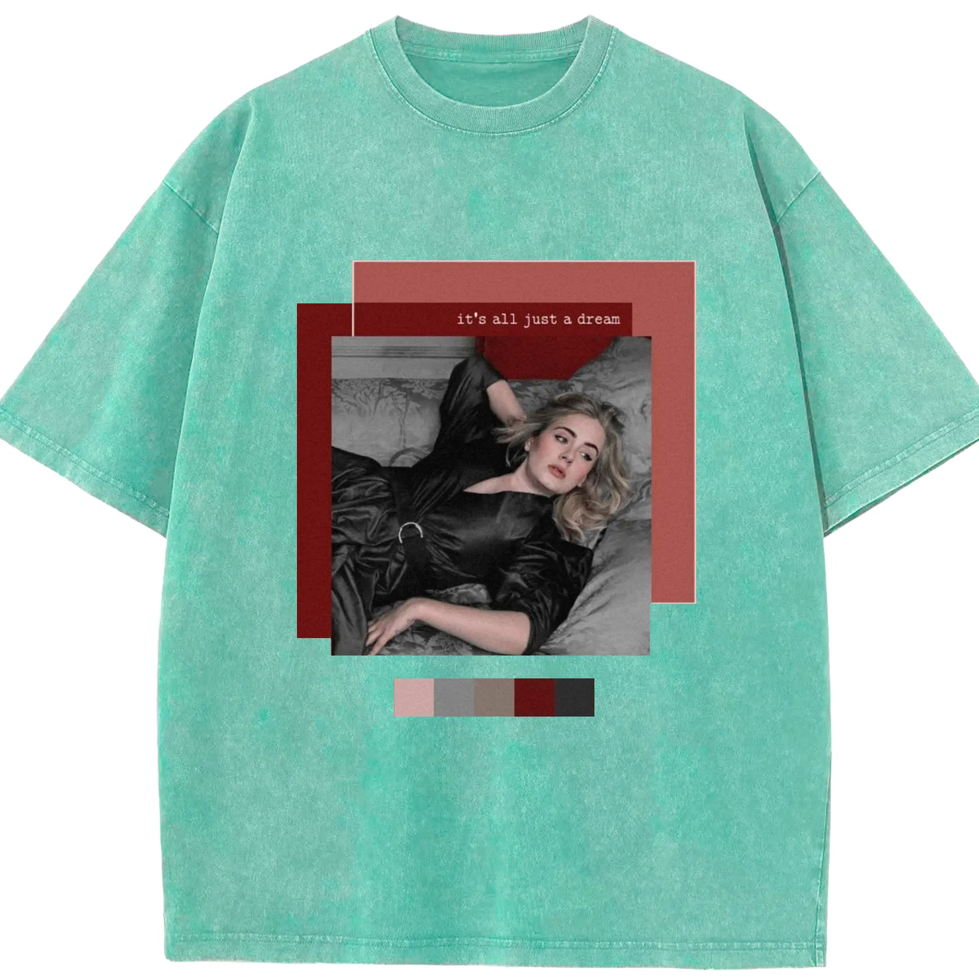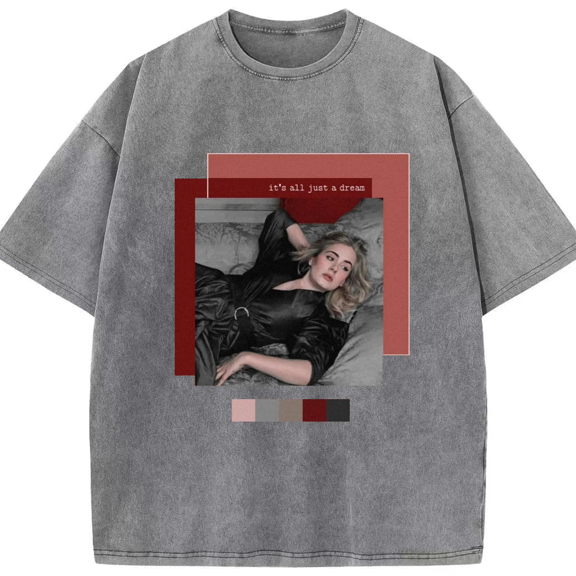 Adele Ancient collage art style - Washed Vintage Look 230g Cotton Oversized T-Shirt With Front Heat Transfer Print – Soft, Lightweight, Stylish Fit – Comfortable Casual Wear For Sports & Everyday Use