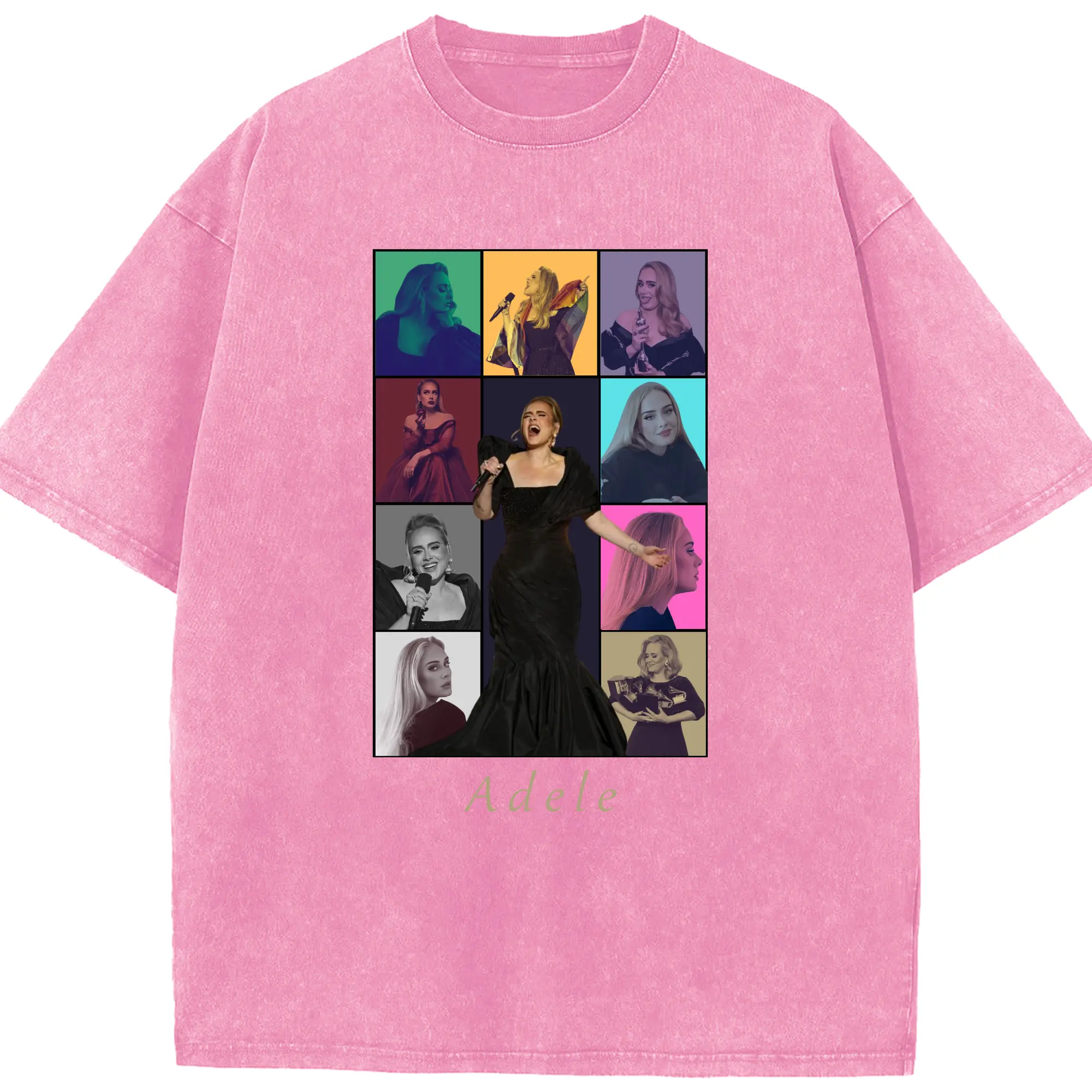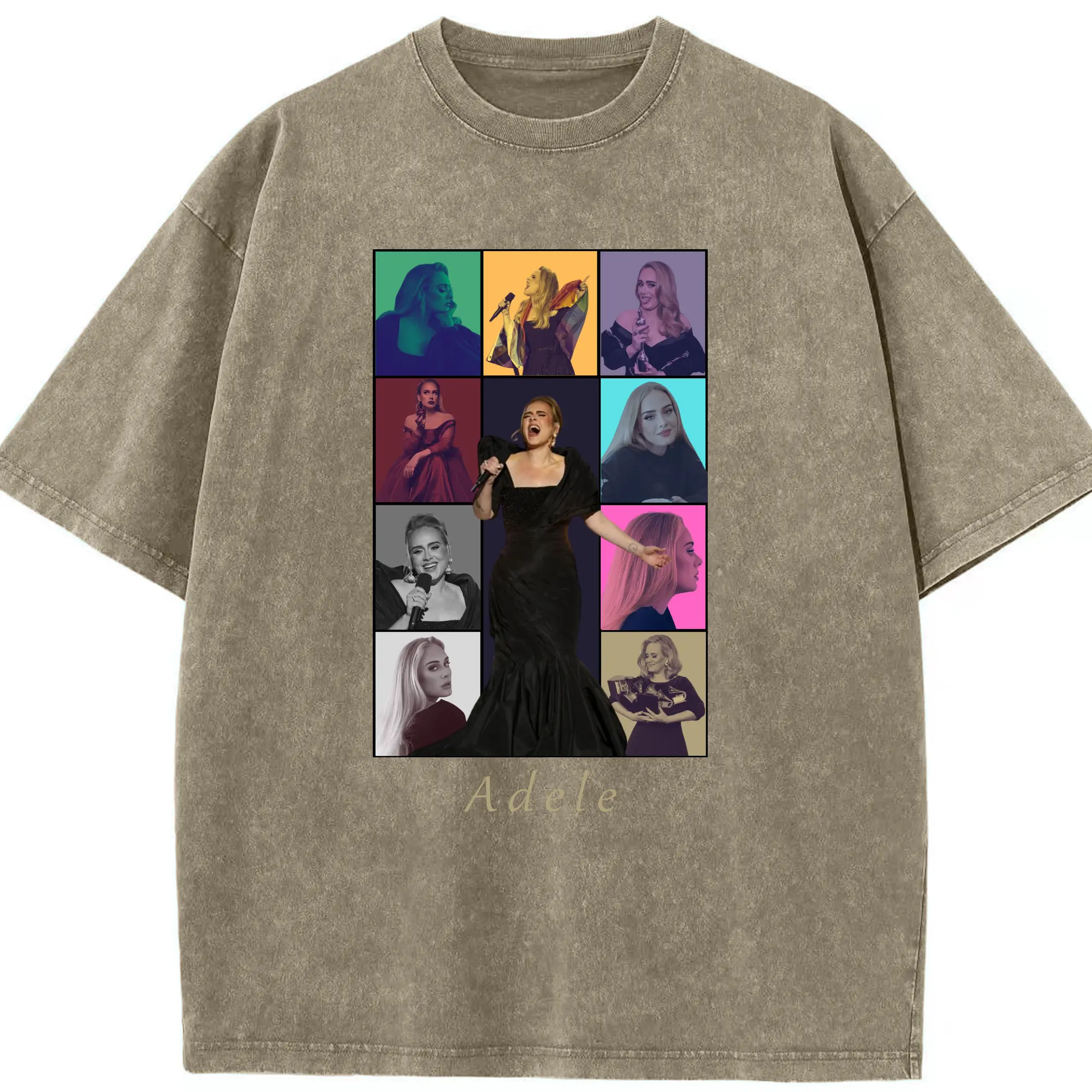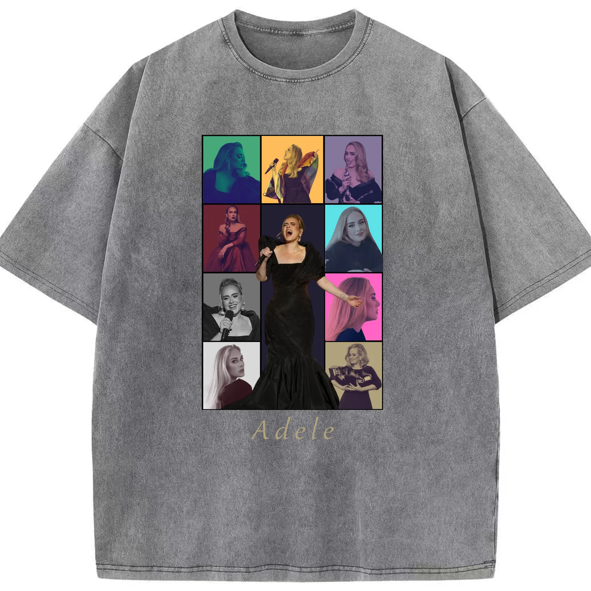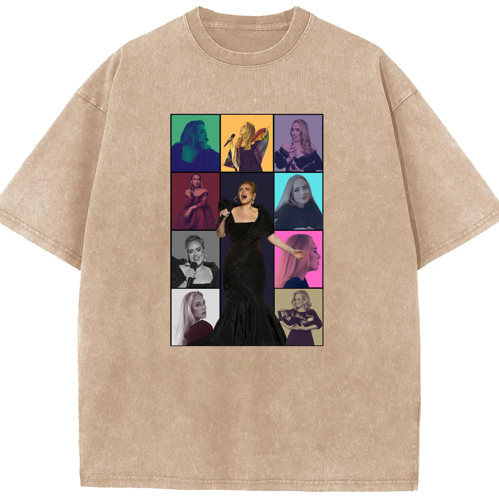 Adele Collage Pop Music DIY - Washed Vintage Look 230g Cotton Oversized T-Shirt With Front Heat Transfer Print – Soft, Lightweight, Stylish Fit – Comfortable Casual Wear For Sports & Everyday Use