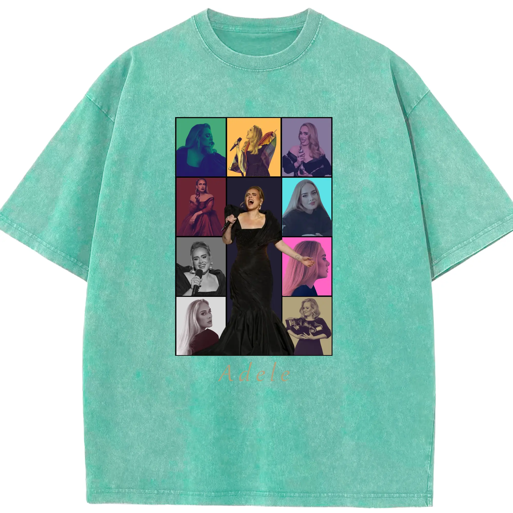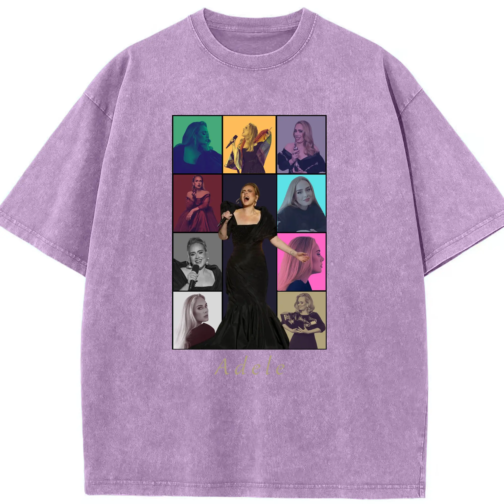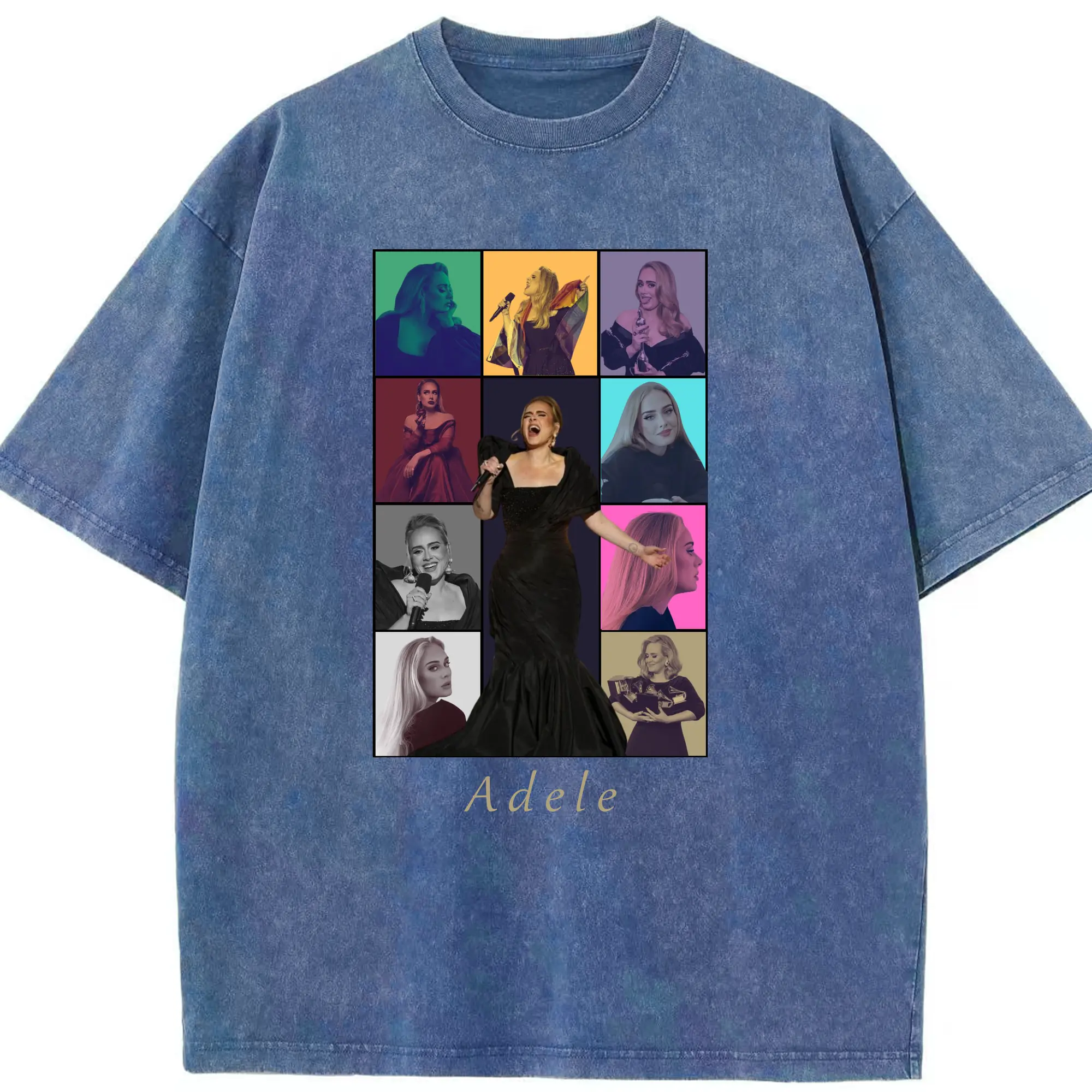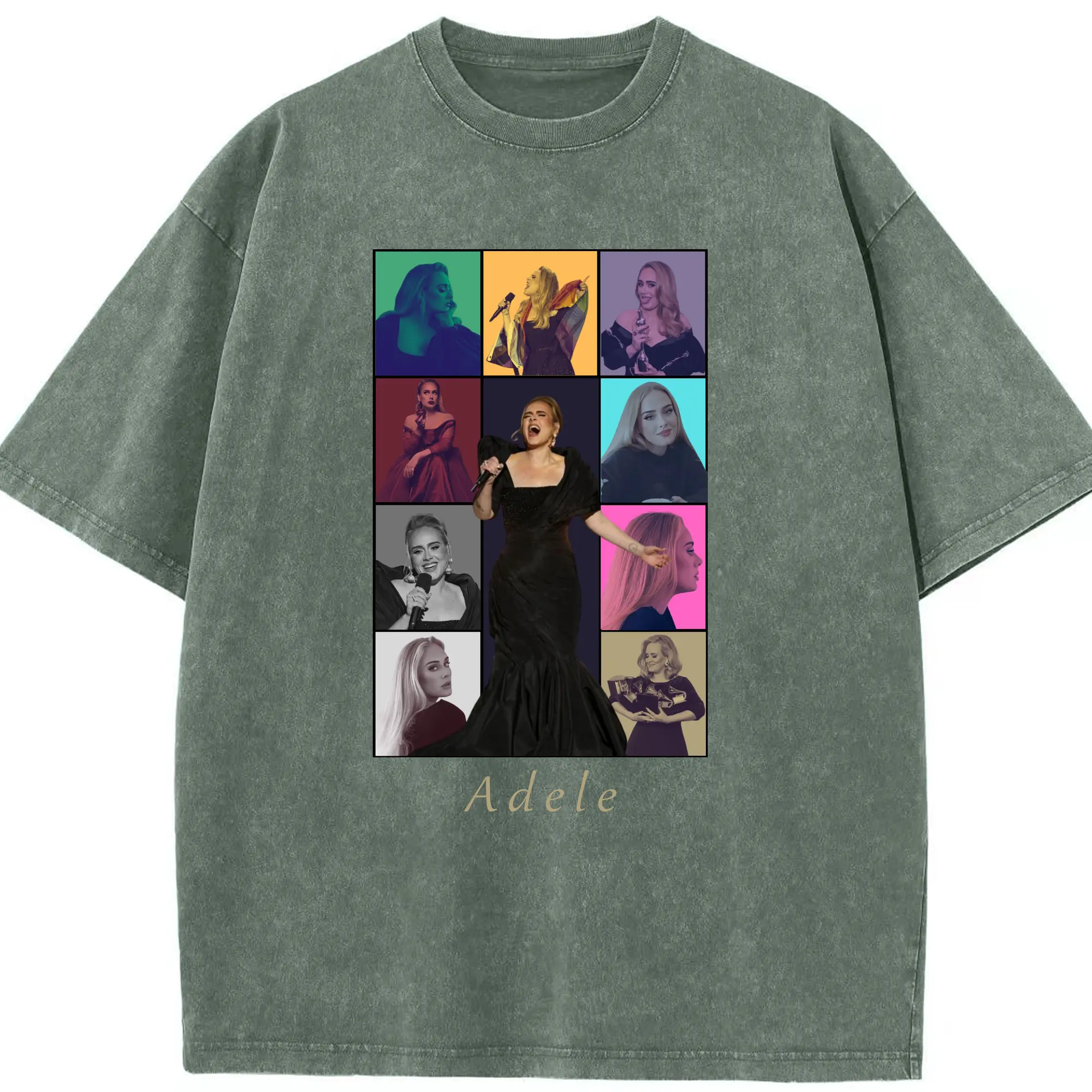 Adele Collage Pop Music DIY - Washed Vintage Look 230g Cotton Oversized T-Shirt With Front Heat Transfer Print – Soft, Lightweight, Stylish Fit – Comfortable Casual Wear For Sports & Everyday Use