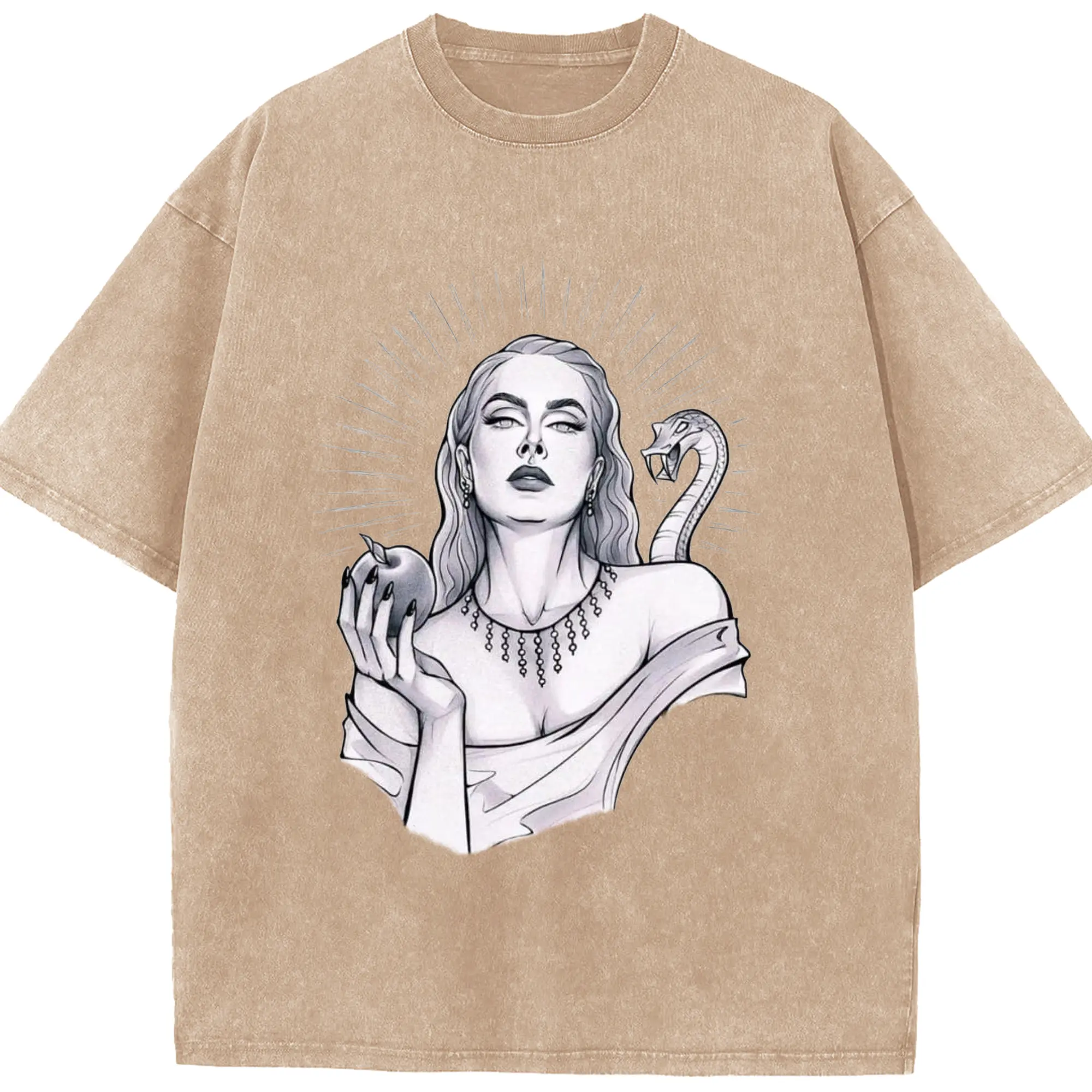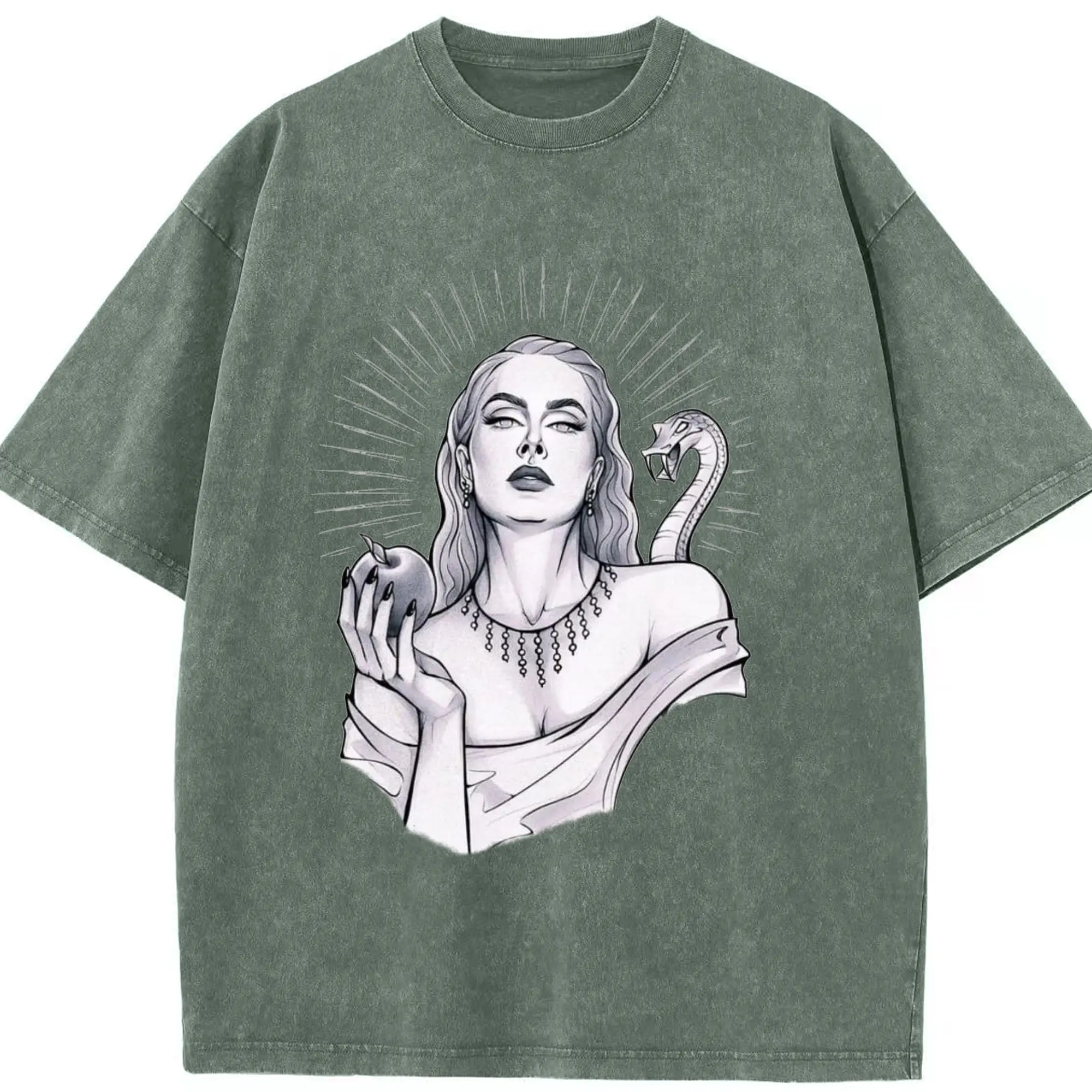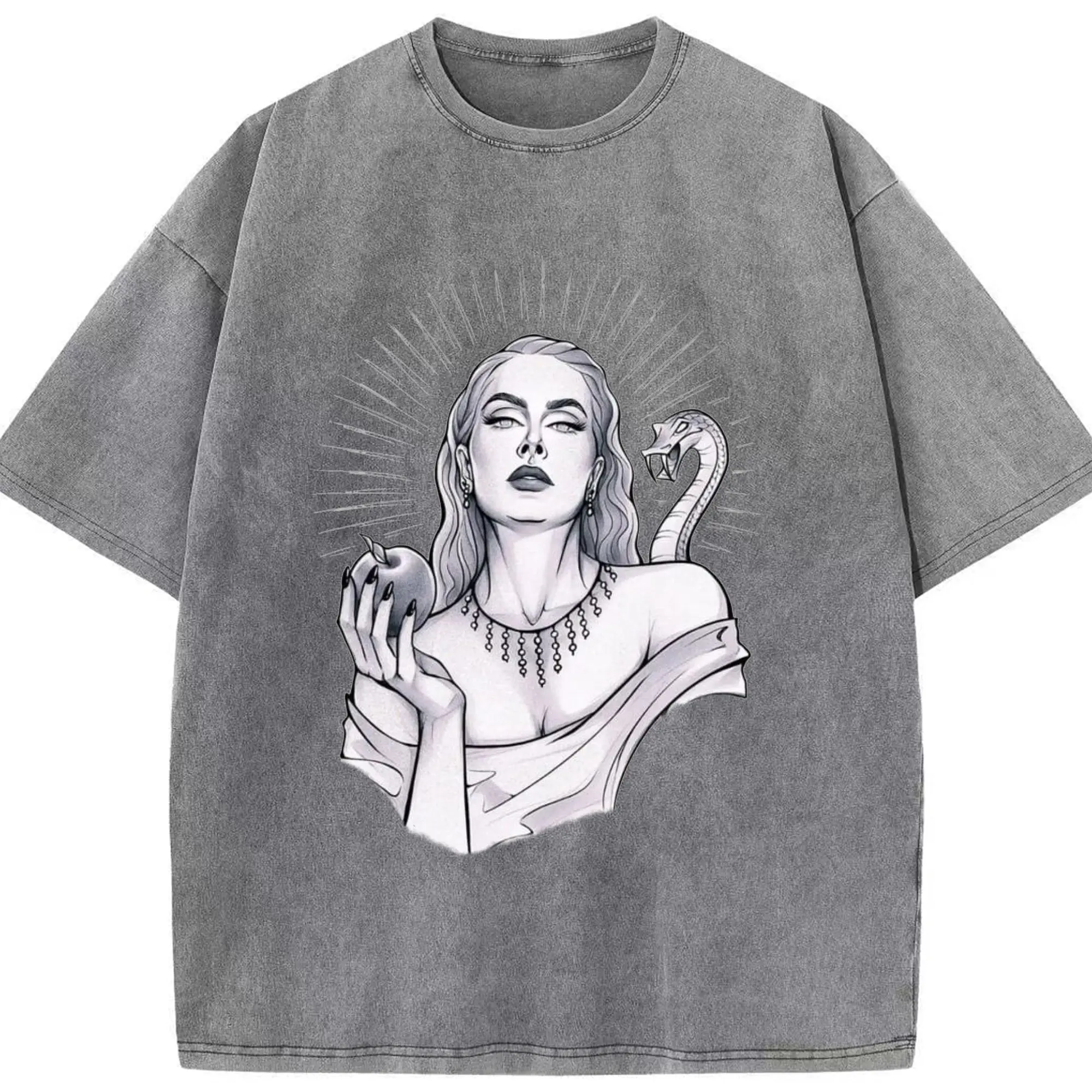 Adele Dark Art Snake & Apple Gothic DIY - Washed Vintage Look 230g Cotton Oversized T-Shirt With Front Heat Transfer Print – Soft, Lightweight, Stylish Fit – Comfortable Casual Wear For Sports & Everyday Use
