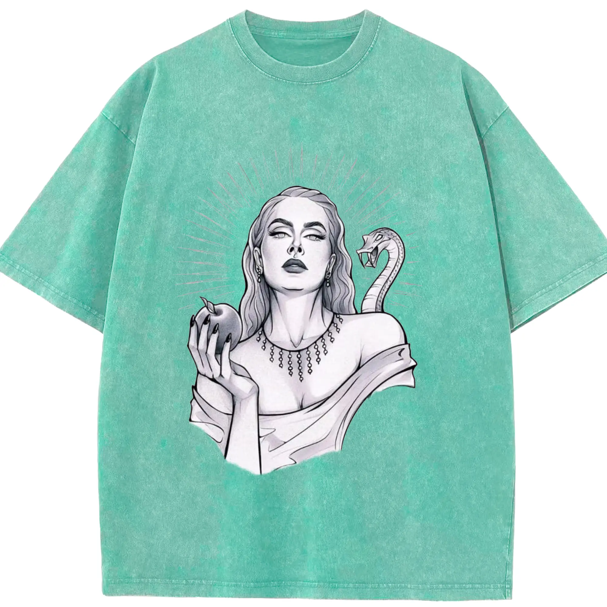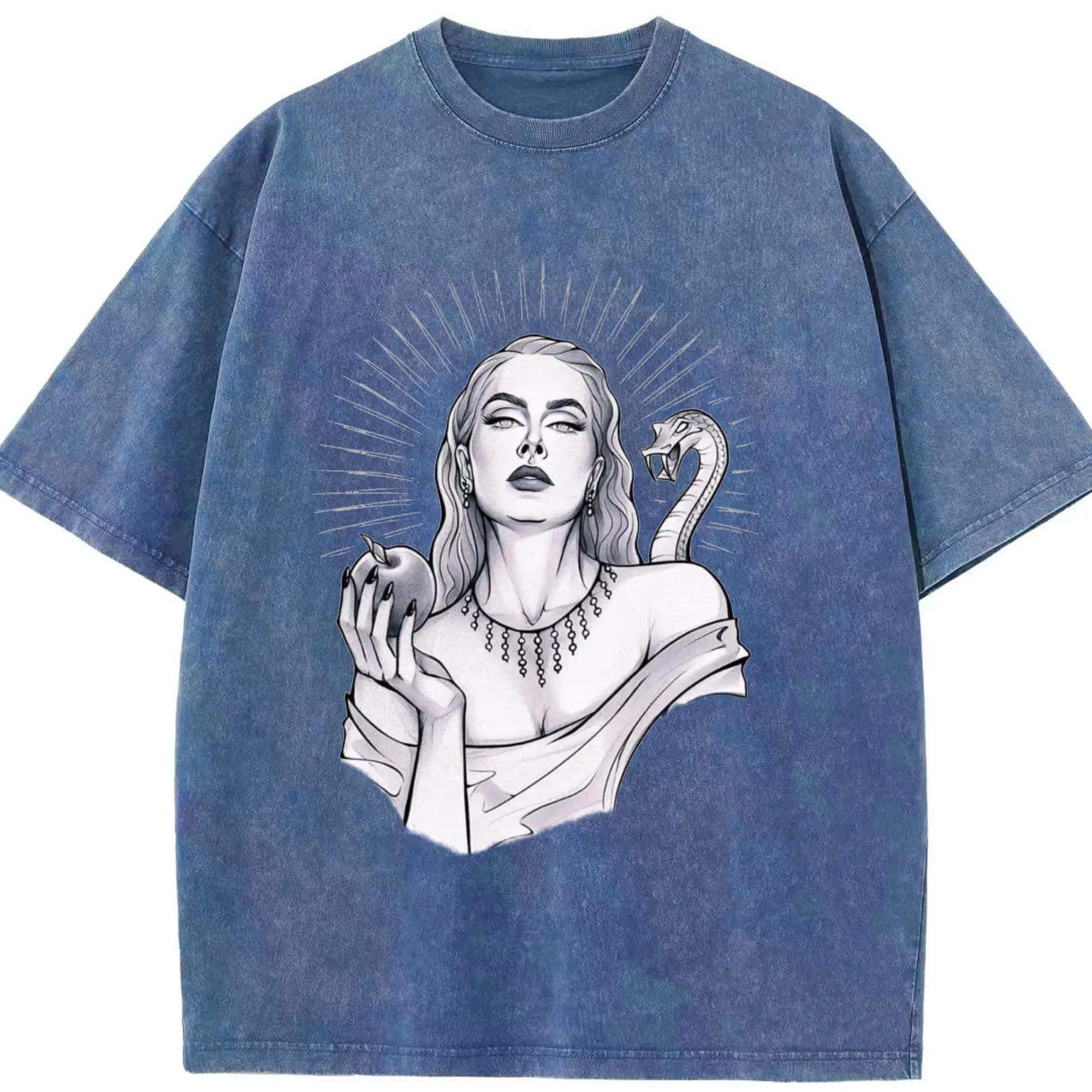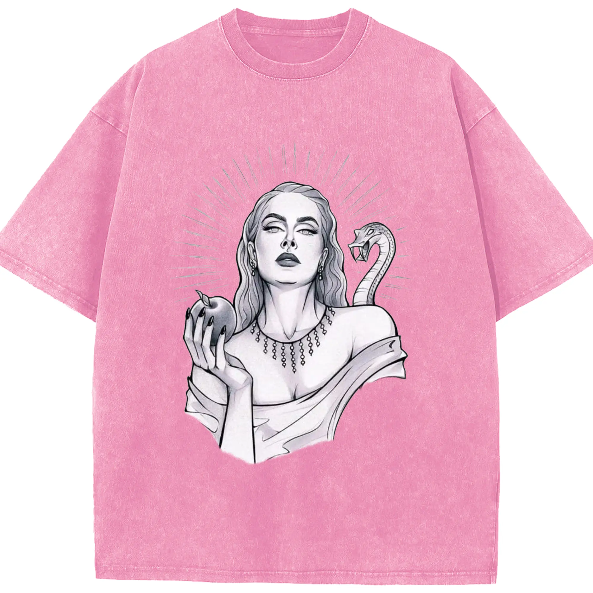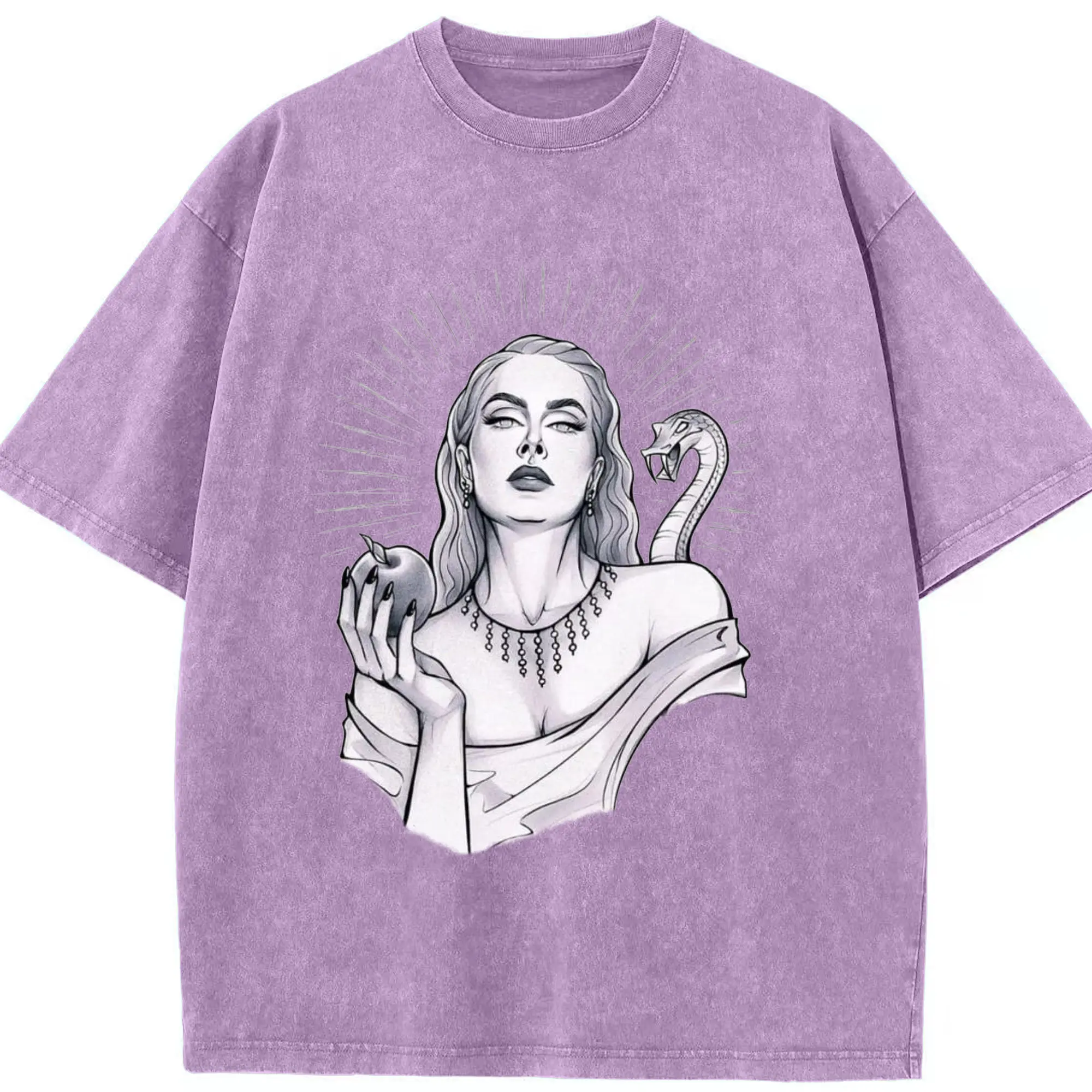 Adele Dark Art Snake & Apple Gothic DIY - Washed Vintage Look 230g Cotton Oversized T-Shirt With Front Heat Transfer Print – Soft, Lightweight, Stylish Fit – Comfortable Casual Wear For Sports & Everyday Use