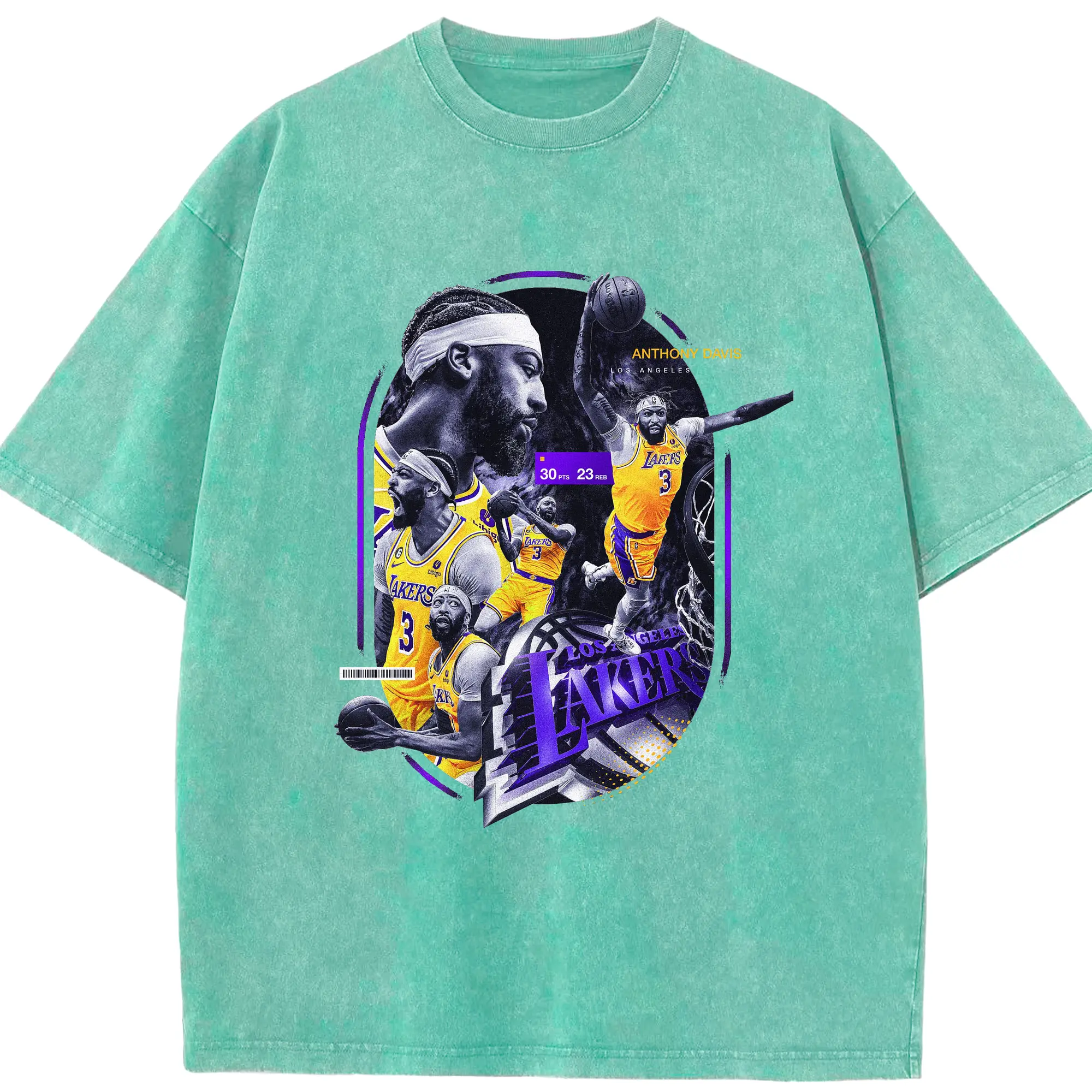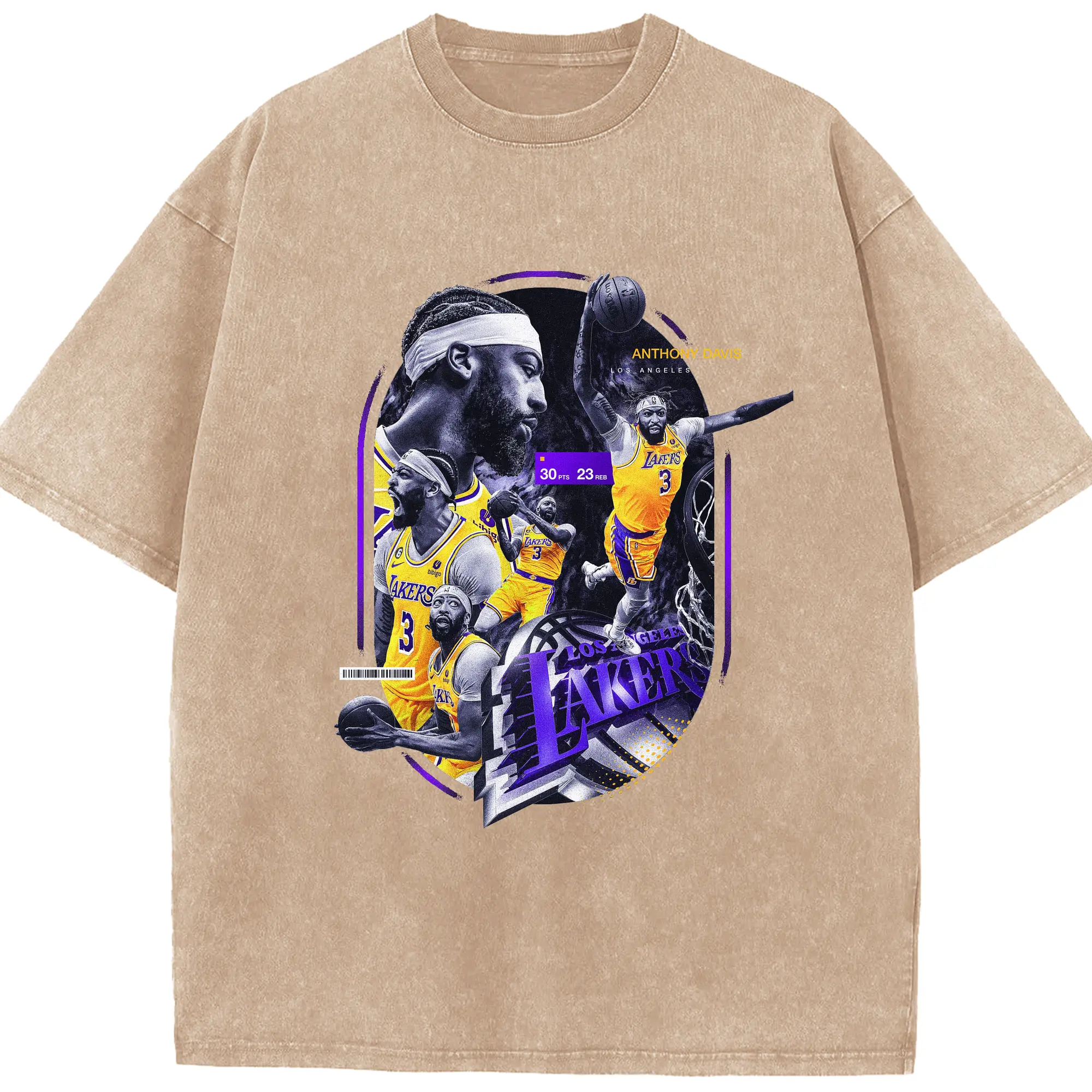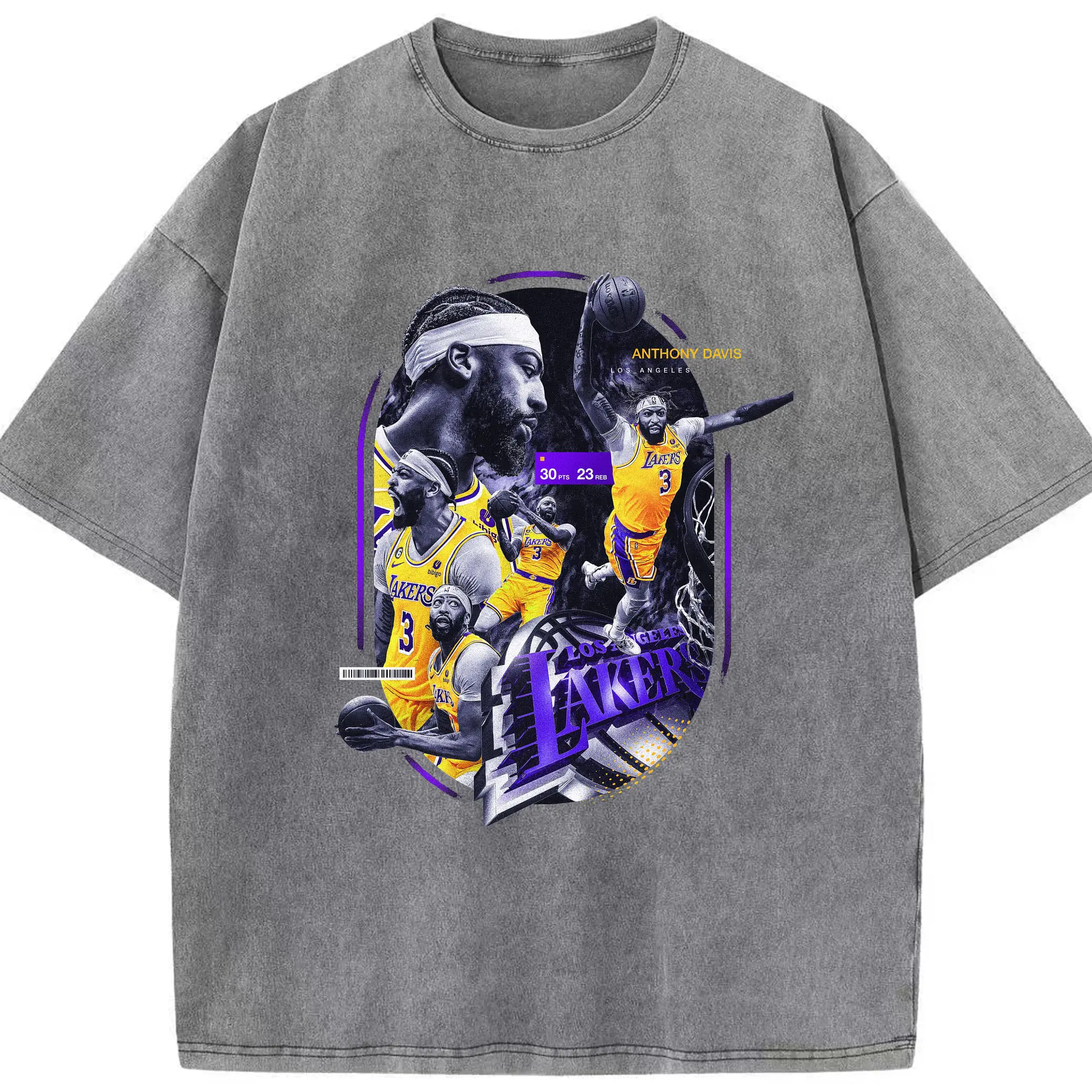 Anthony Davis 30 Points 23 Rebounds Lakers Shirt - Washed Vintage Look 230g Cotton Oversized T-Shirt With Front Heat Transfer Print – Soft, Lightweight, Stylish Fit – Comfortable Casual Wear For Sports & Everyday Use