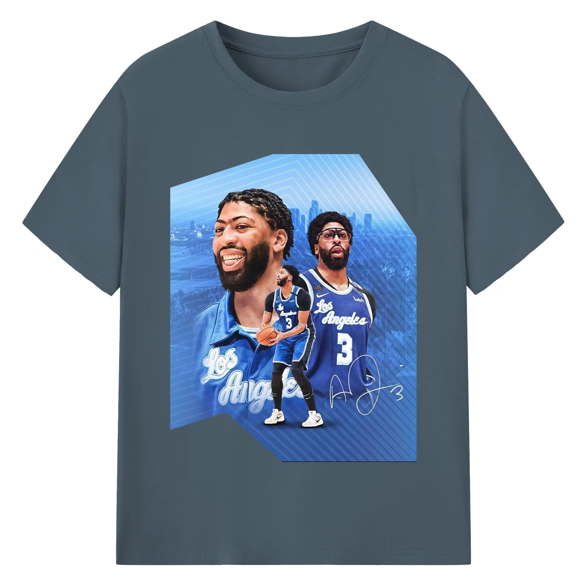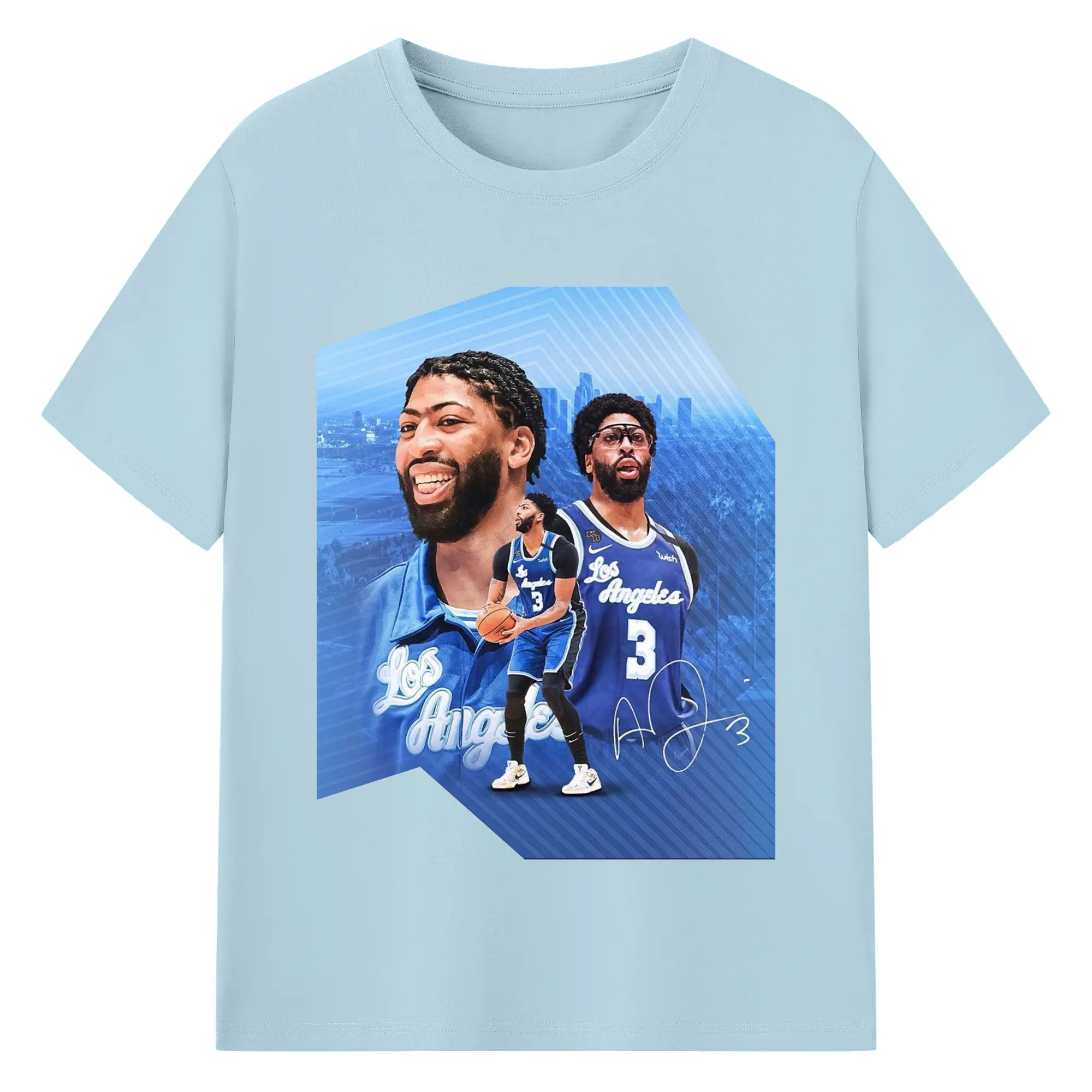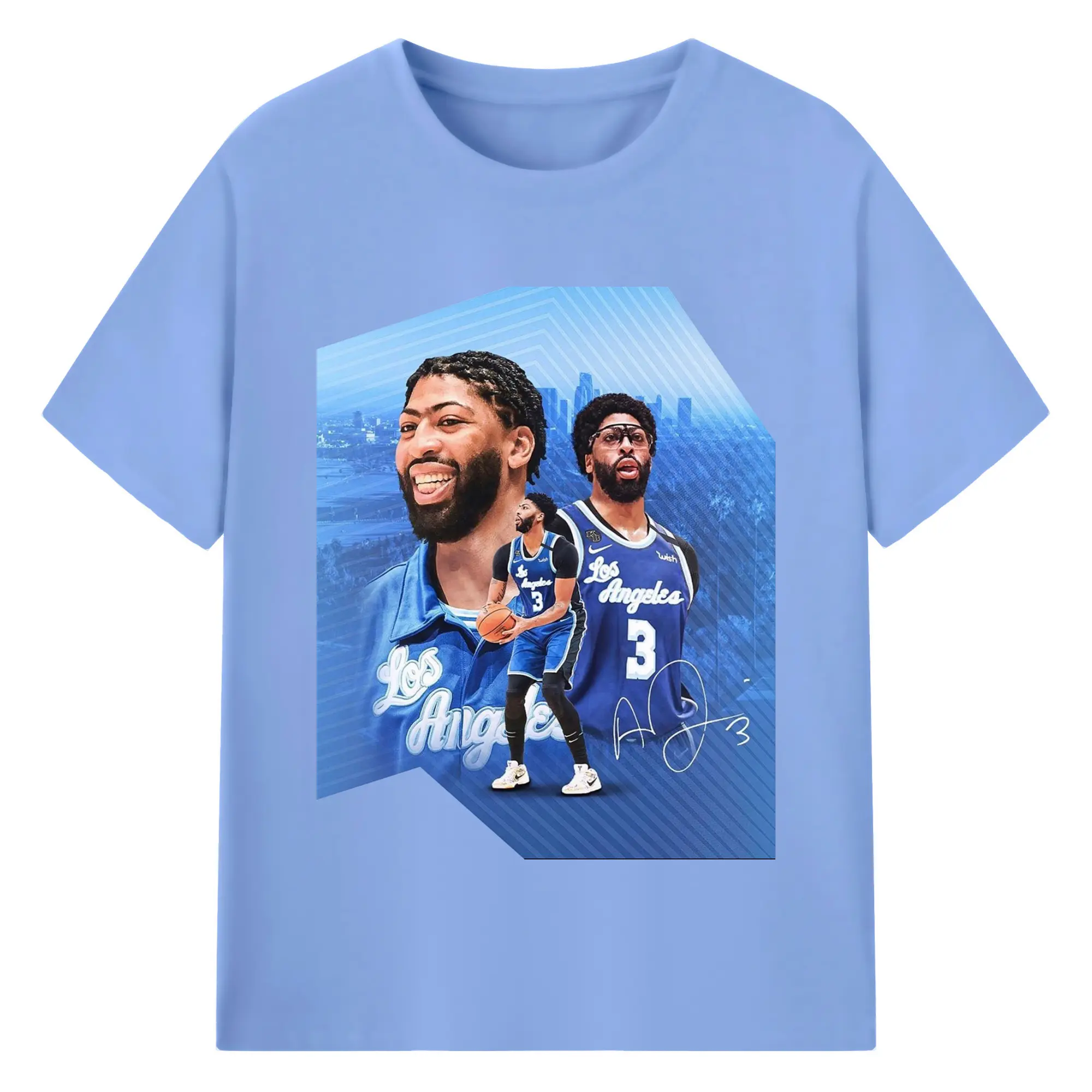 Anthony Davis Los Angeles Blue Design Basketball Shirt - 180g Cotton T-Shirt With Front Heat Transfer Print – Soft, Lightweight, Fitted Design – Comfortable Casual Wear For Sports & Everyday Use