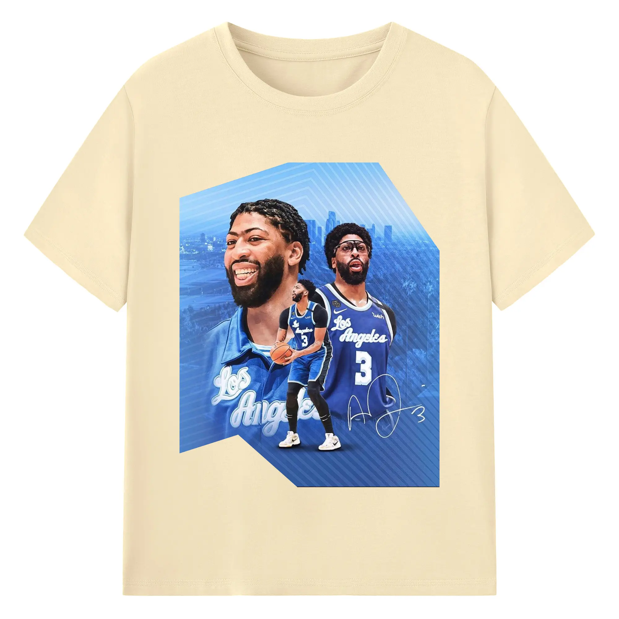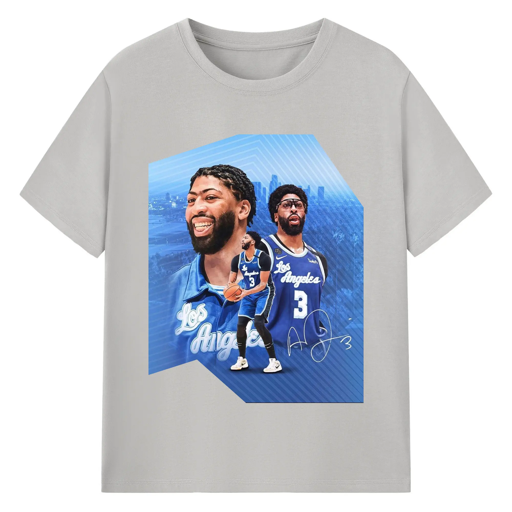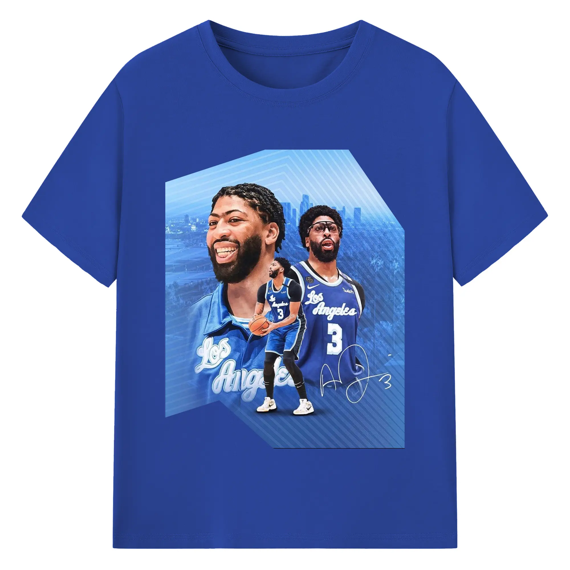 Anthony Davis Los Angeles Blue Design Basketball Shirt - 180g Cotton T-Shirt With Front Heat Transfer Print – Soft, Lightweight, Fitted Design – Comfortable Casual Wear For Sports & Everyday Use