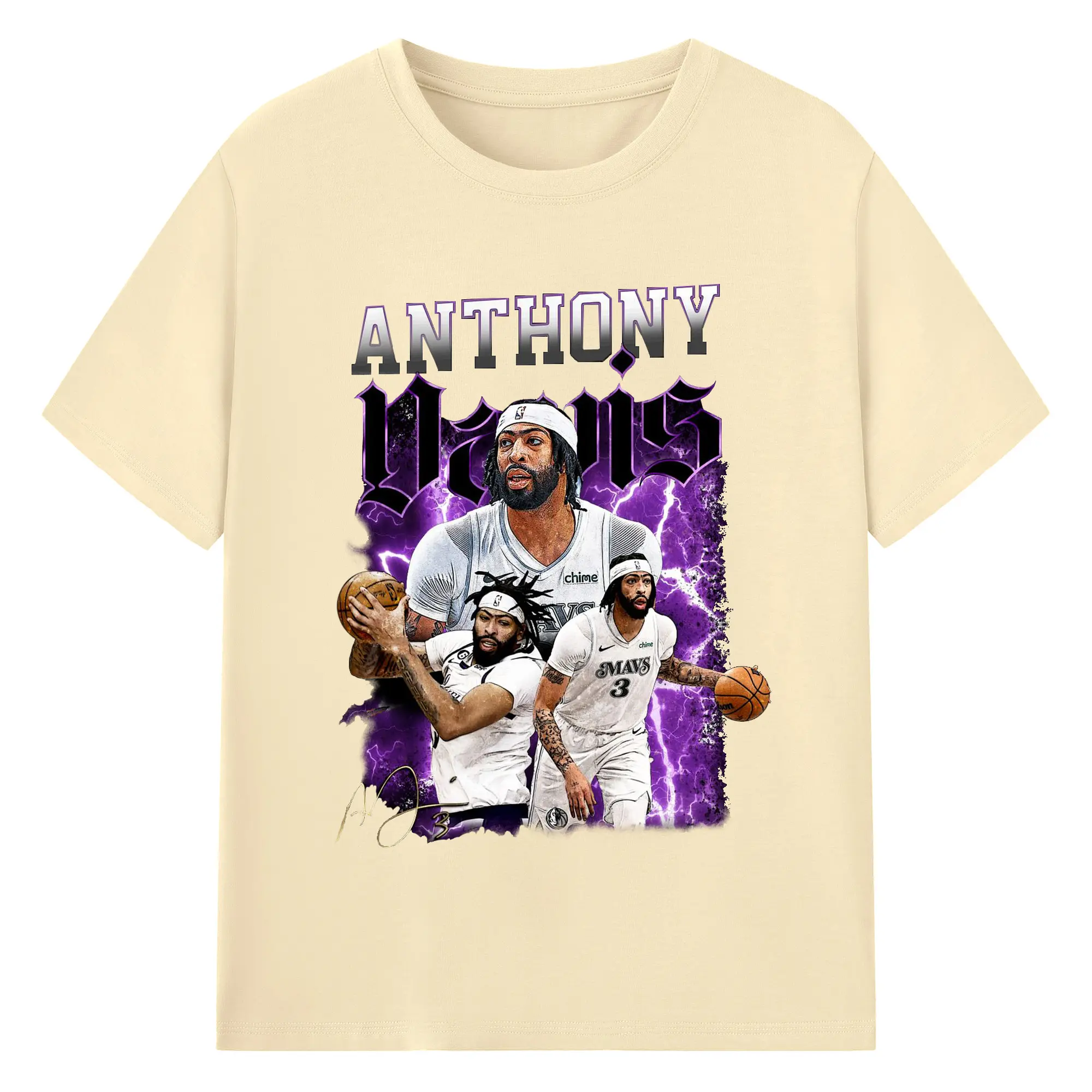 Anthony Davis Vintage Mavs Purple Flash Shirt - 180g Cotton T-Shirt With Front Heat Transfer Print – Soft, Lightweight, Fitted Design – Comfortable Casual Wear For Sports & Everyday Use