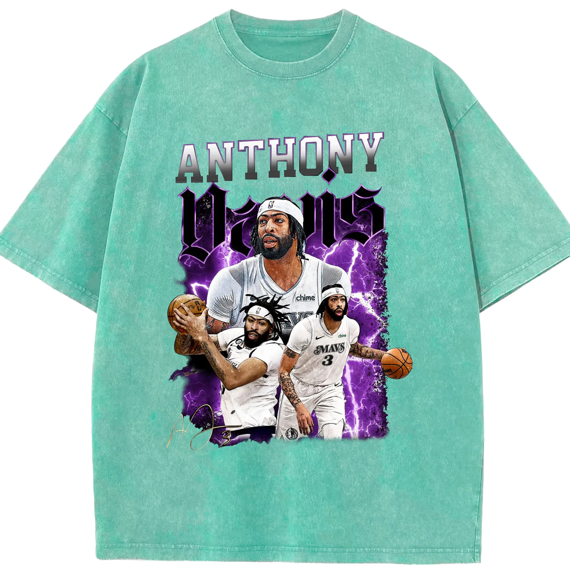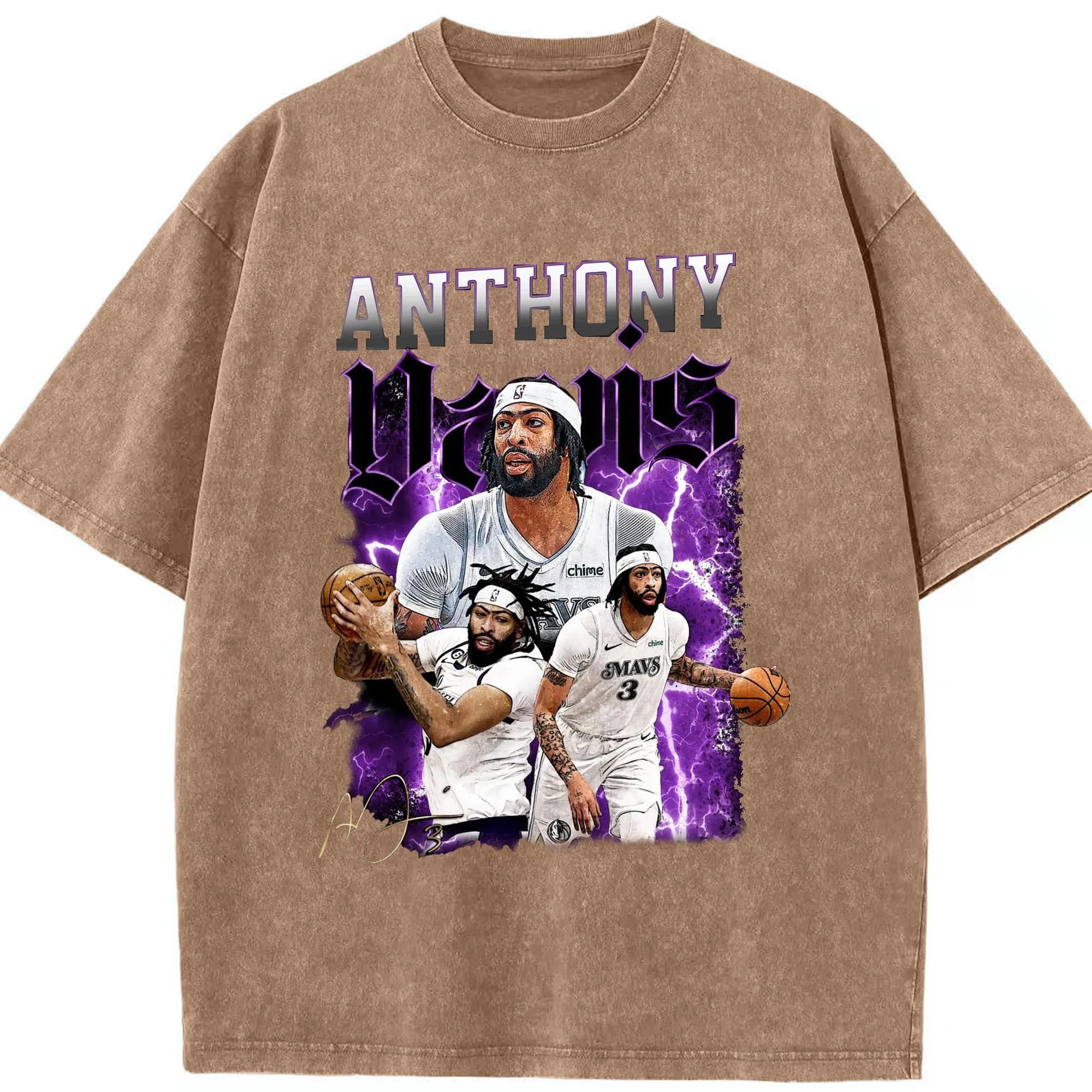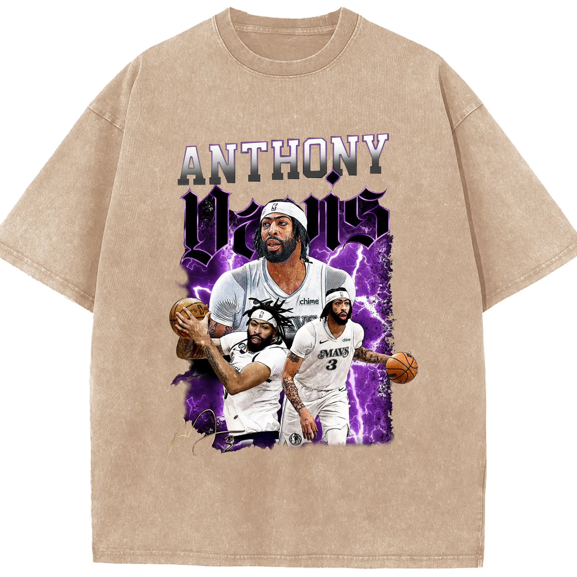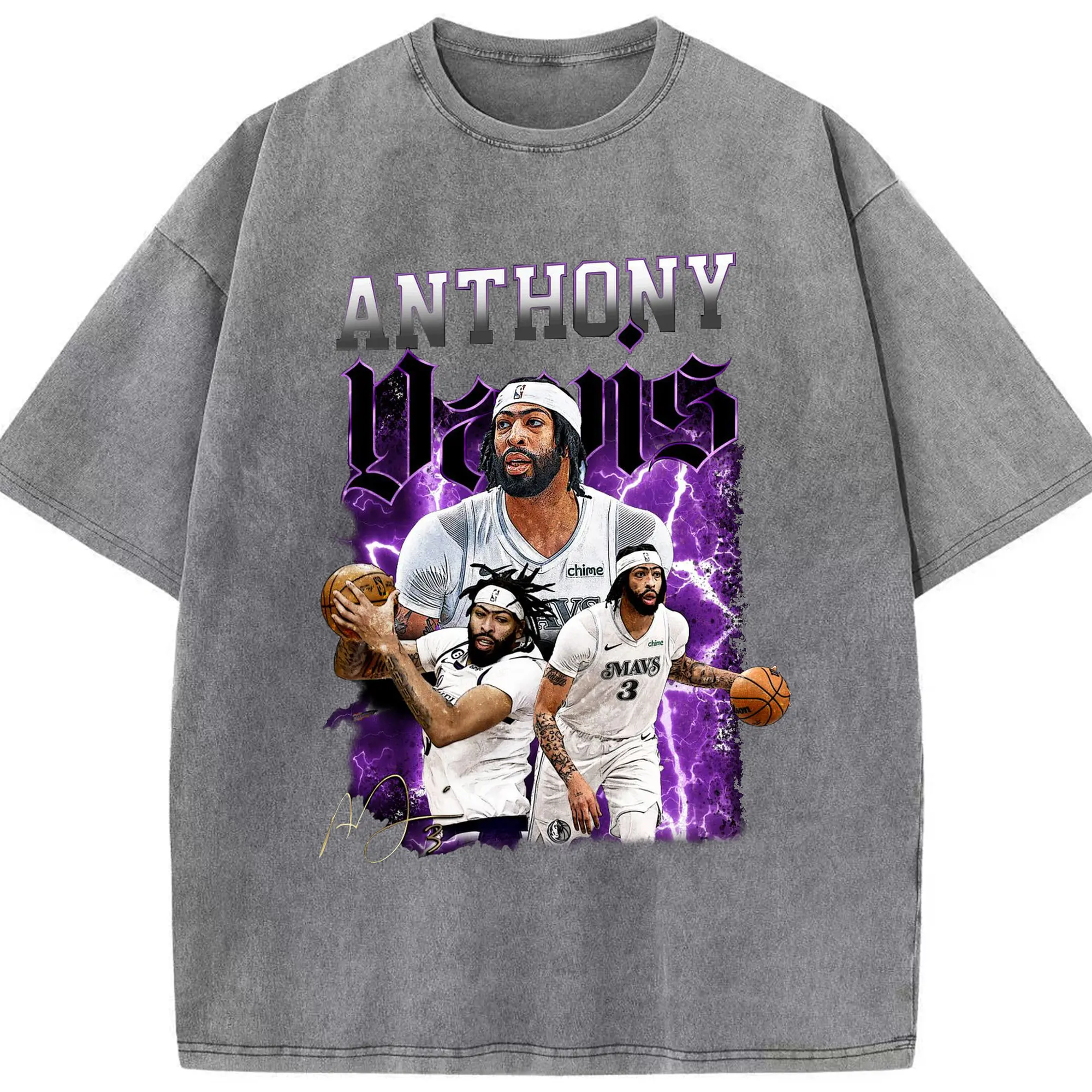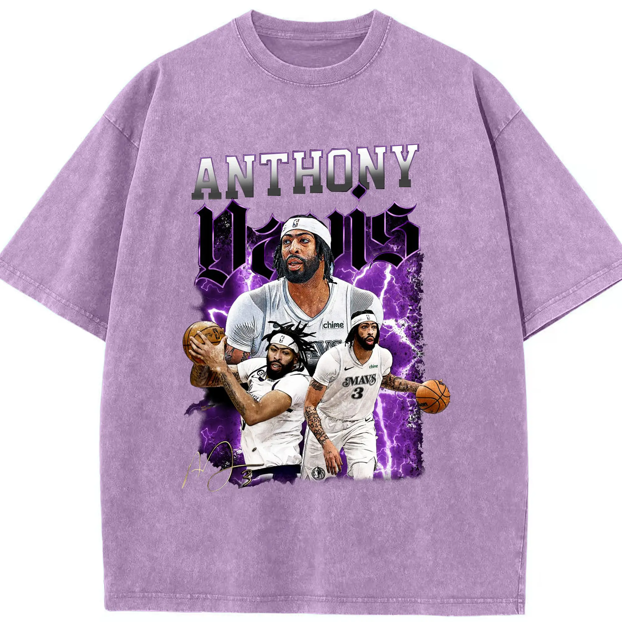 Anthony Davis Vintage Mavs Purple Flash Shirt - Washed Vintage Look 230g Cotton Oversized T-Shirt With Front Heat Transfer Print – Soft, Lightweight, Stylish Fit – Comfortable Casual Wear For Sports & Everyday Use