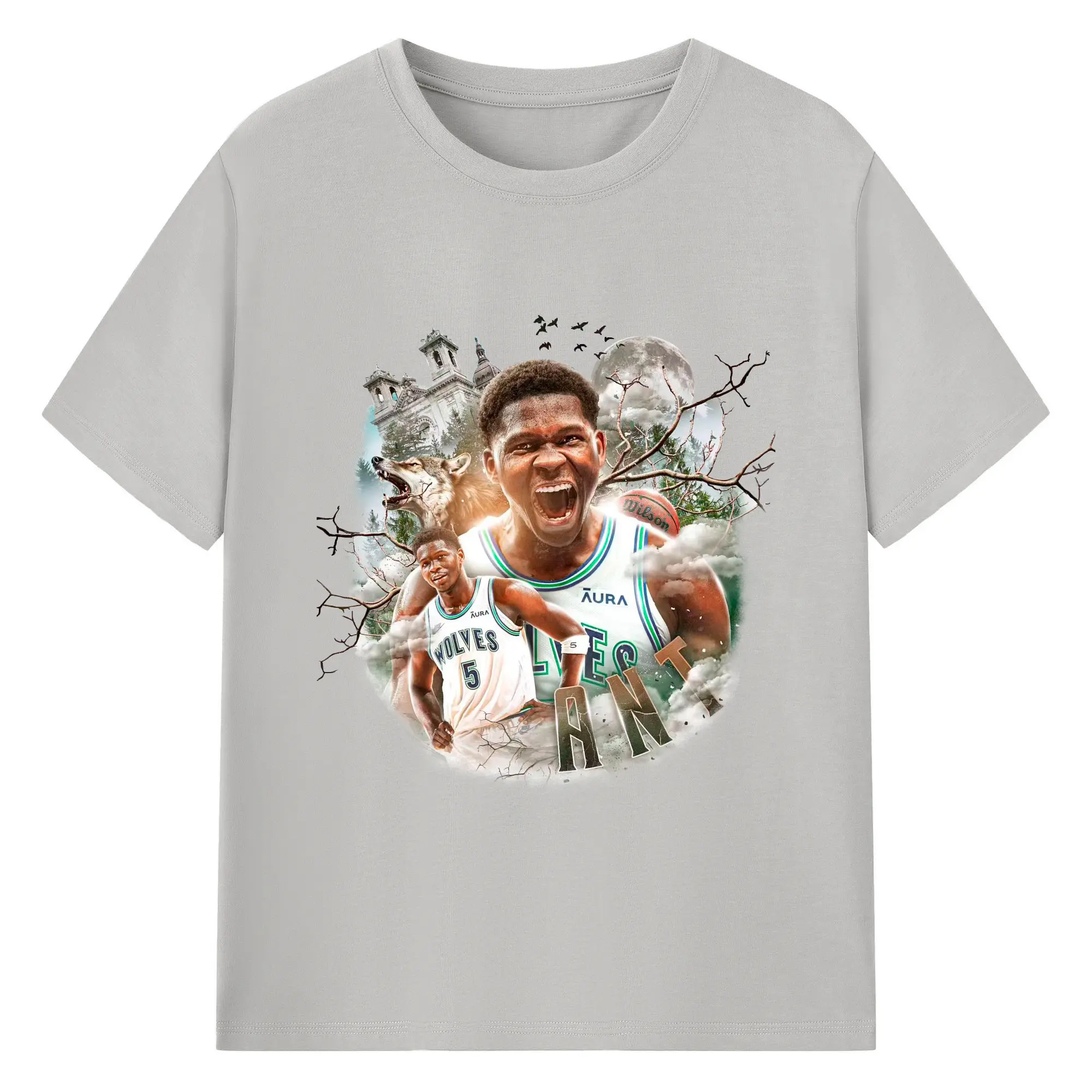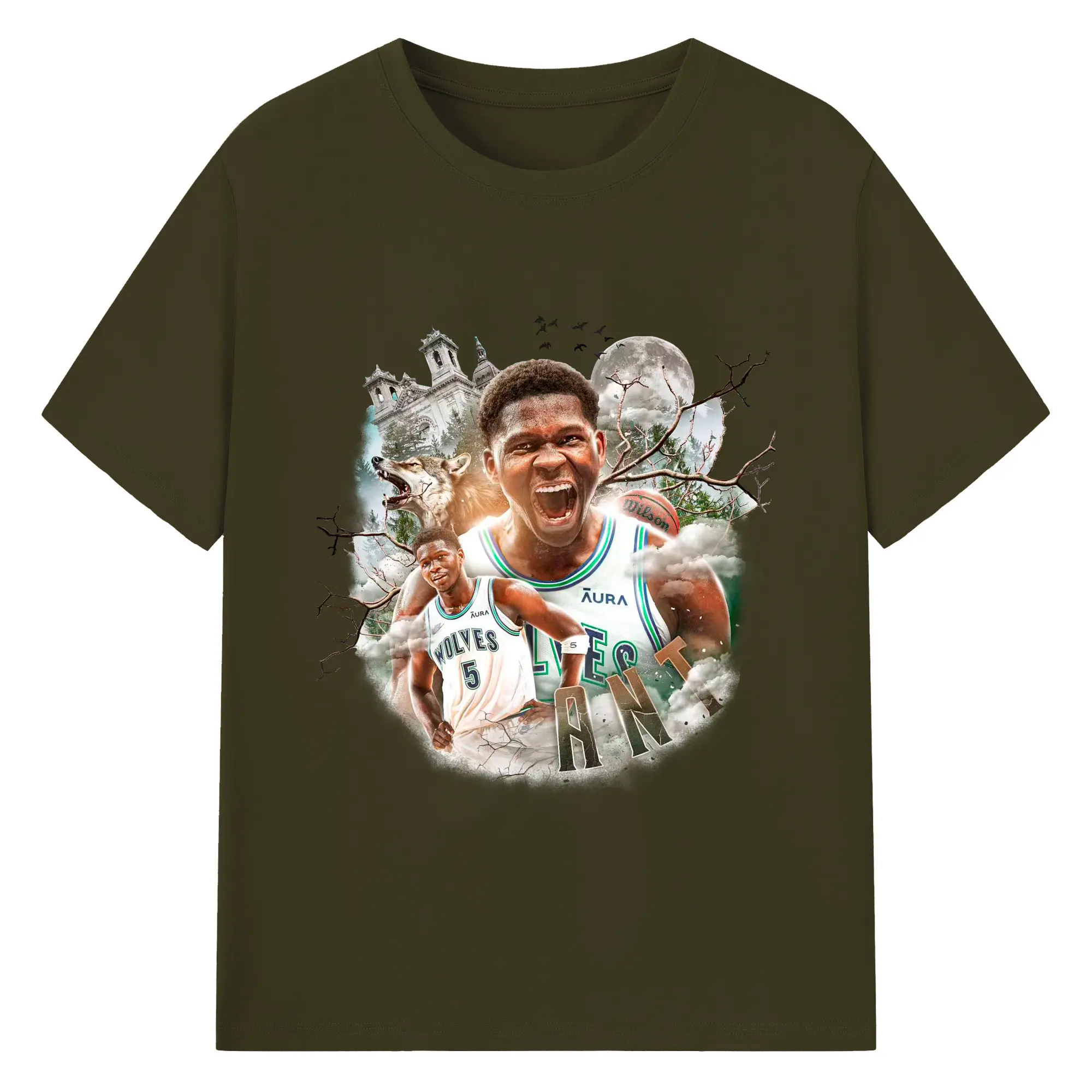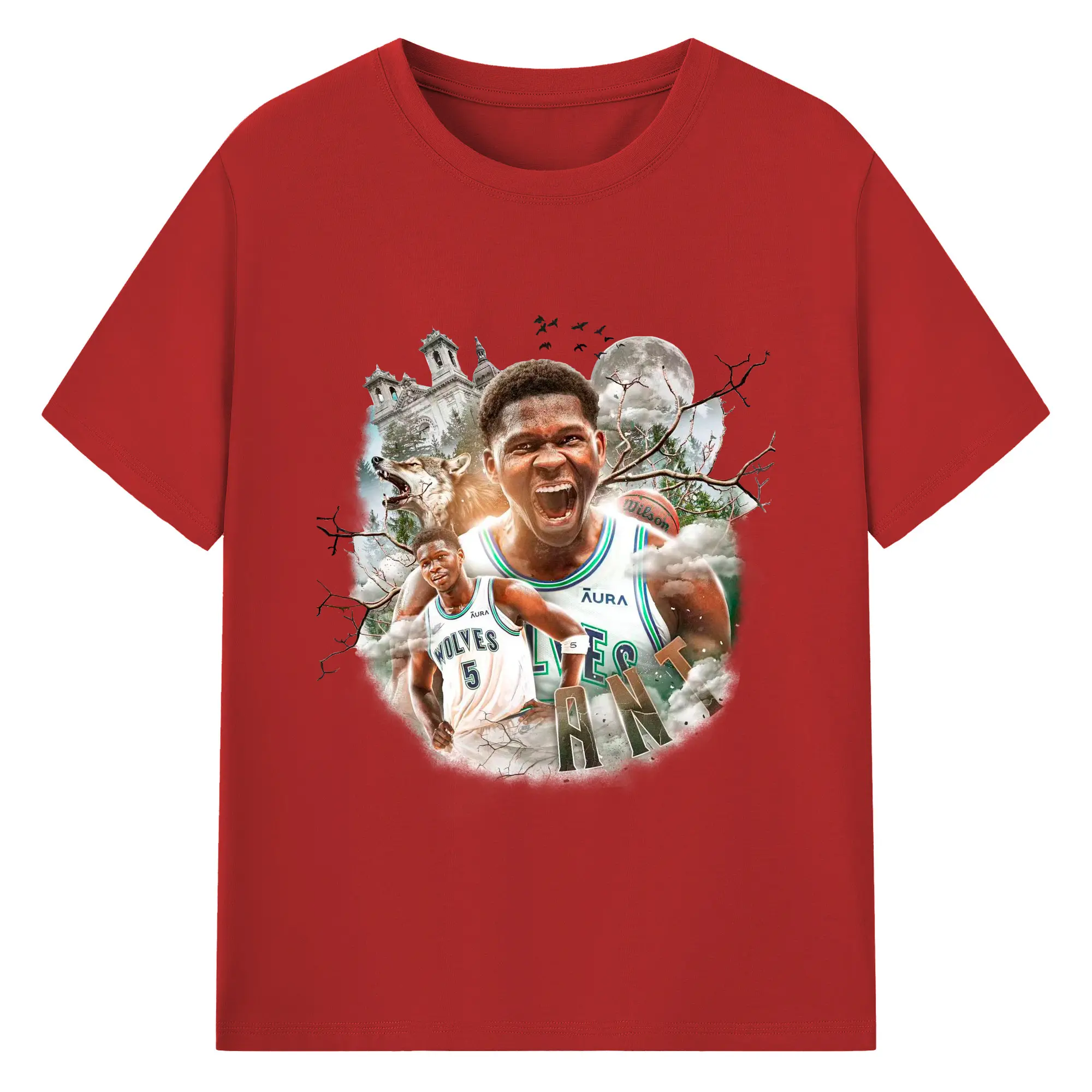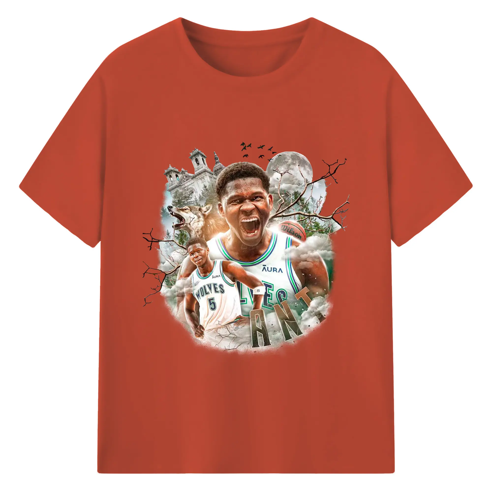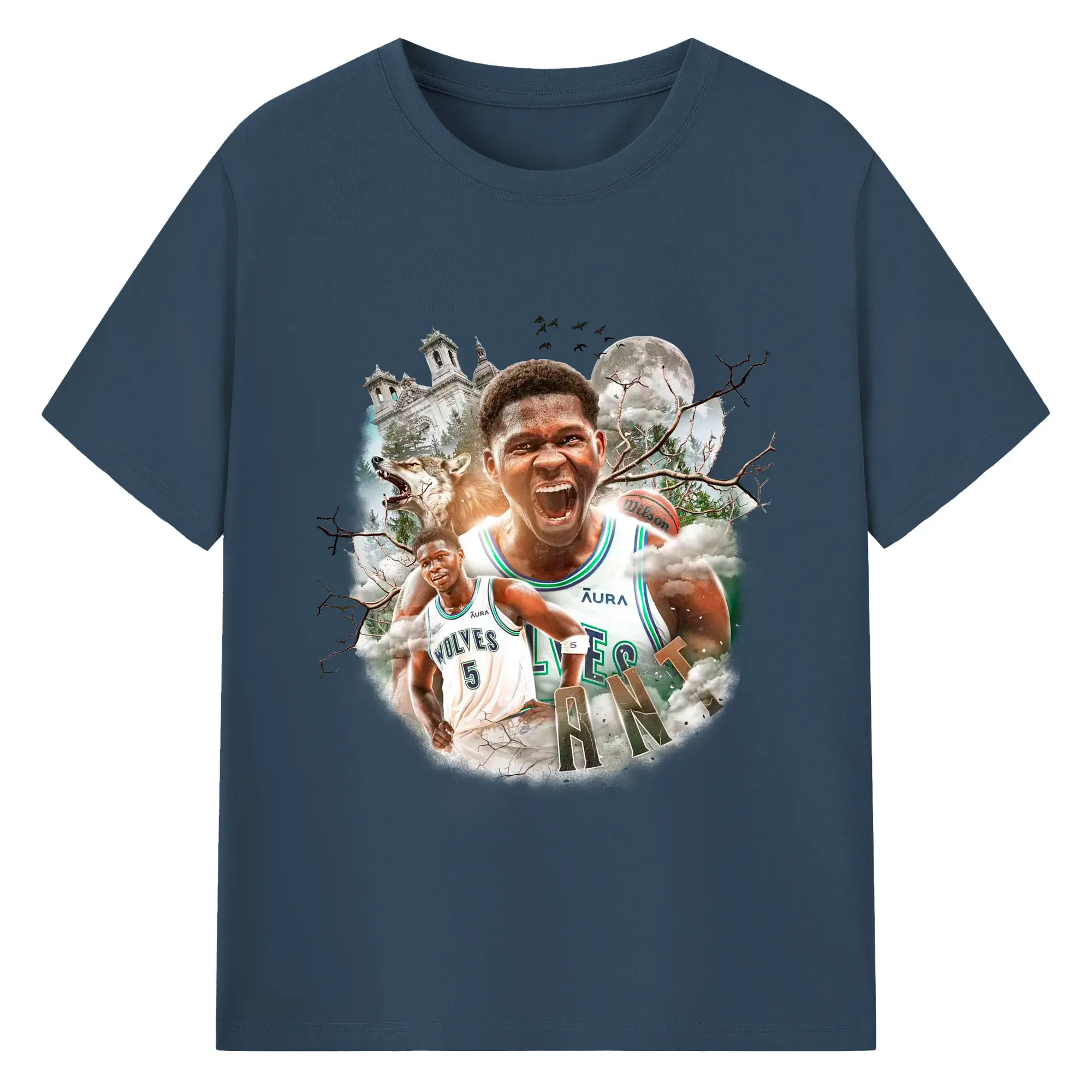Anthony Edwards ‘Ant-Man’ T-Shirt – Wolves Moon Howl Dark Aura Streetwear - 180g Cotton T-Shirt With Front Heat Transfer Print – Soft, Lightweight, Fitted Design – Comfortable Casual Wear For Sports & Everyday Use