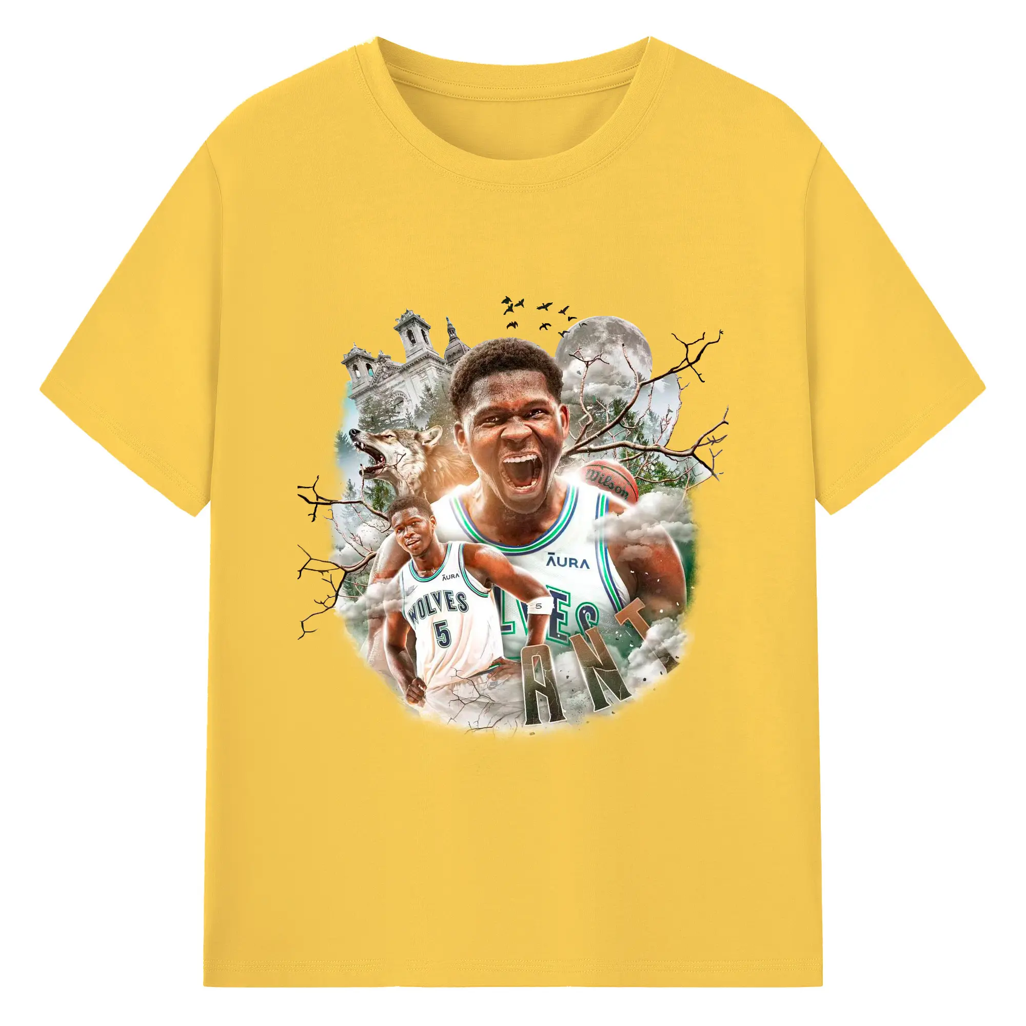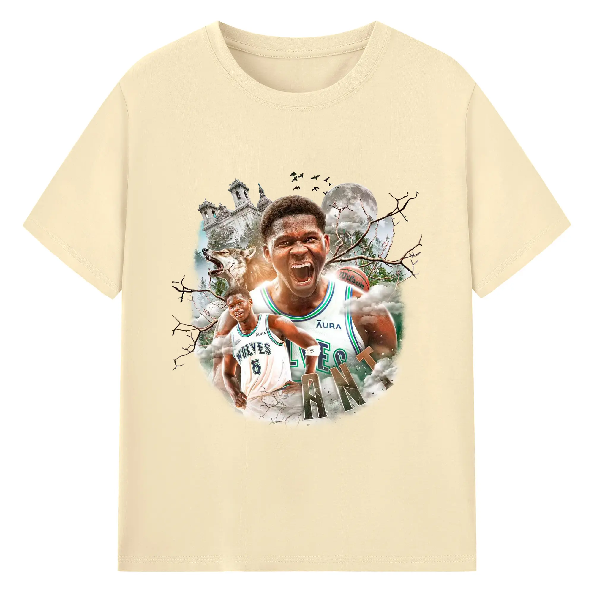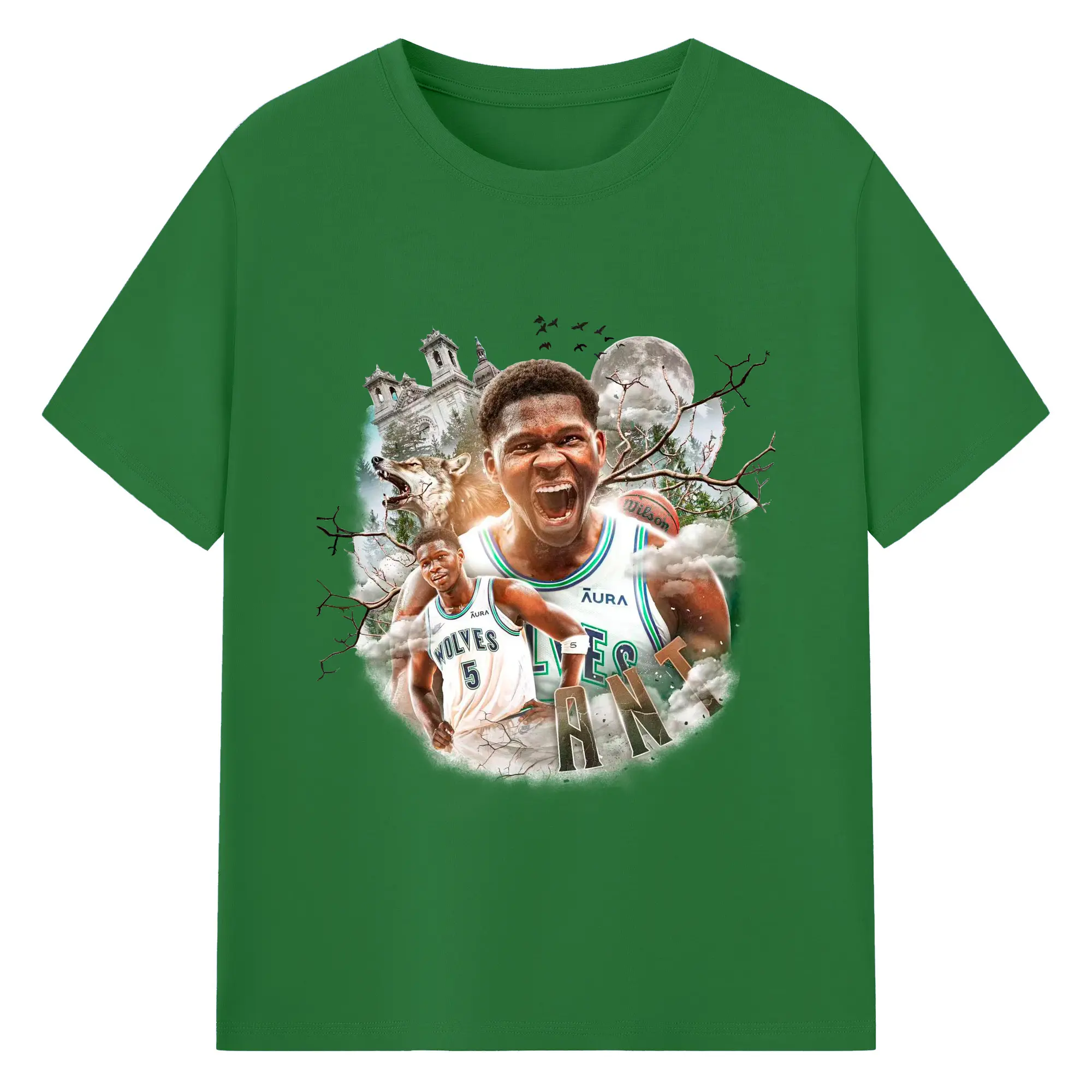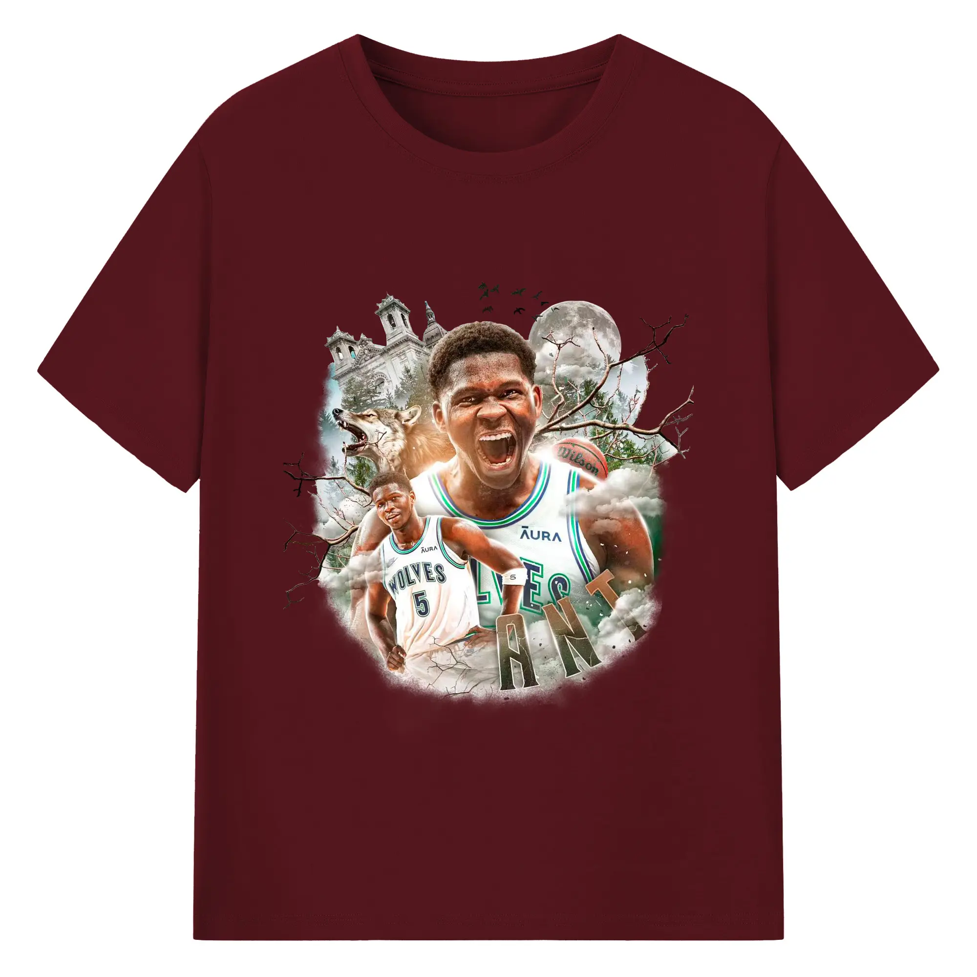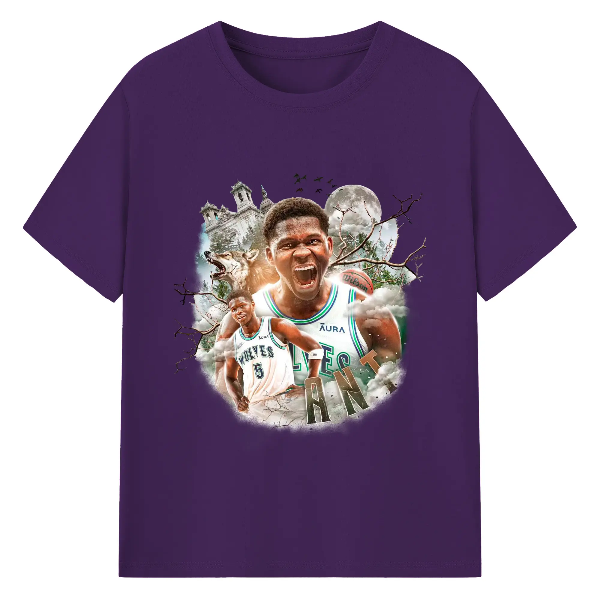 Anthony Edwards ‘Ant-Man’ T-Shirt – Wolves Moon Howl Dark Aura Streetwear - 180g Cotton T-Shirt With Front Heat Transfer Print – Soft, Lightweight, Fitted Design – Comfortable Casual Wear For Sports & Everyday Use