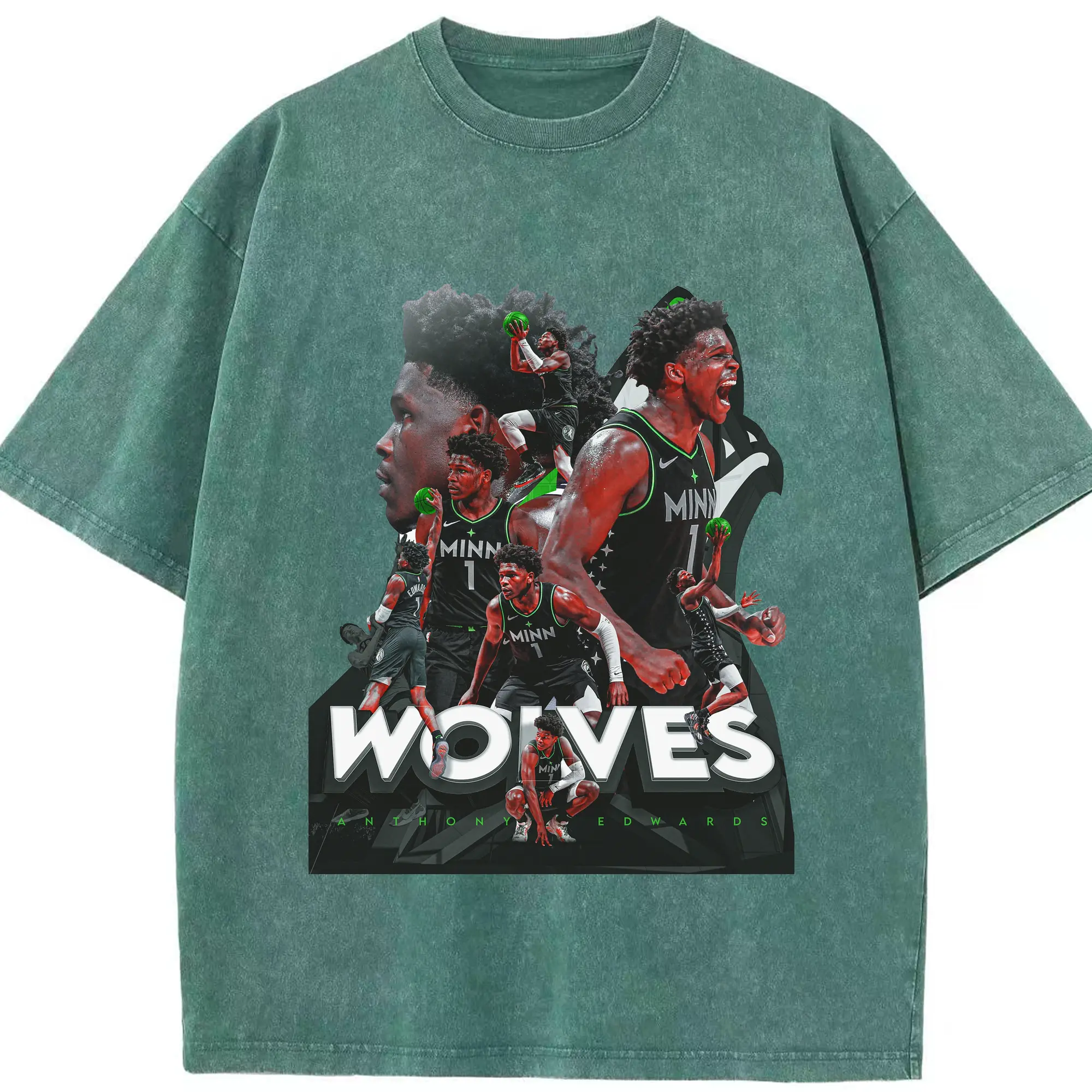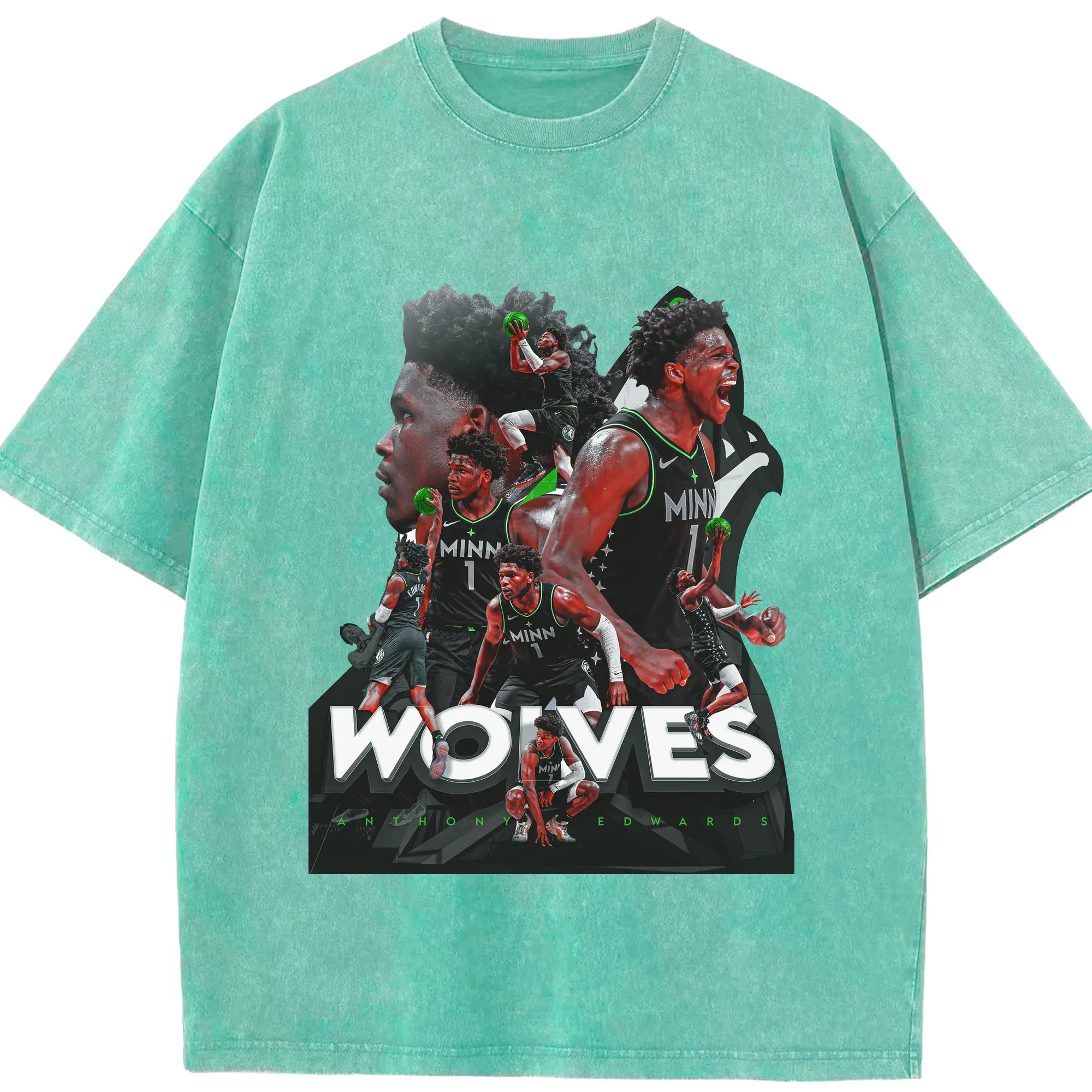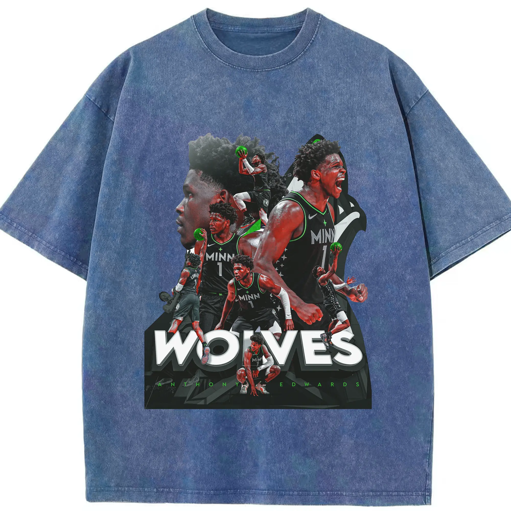 Anthony Edwards Minnesota Timberwolves Basketball Highlights Shirt - Washed Vintage Look 230g Cotton Oversized T-Shirt With Front Heat Transfer Print – Soft, Lightweight, Stylish Fit – Comfortable Casual Wear For Sports & Everyday Use