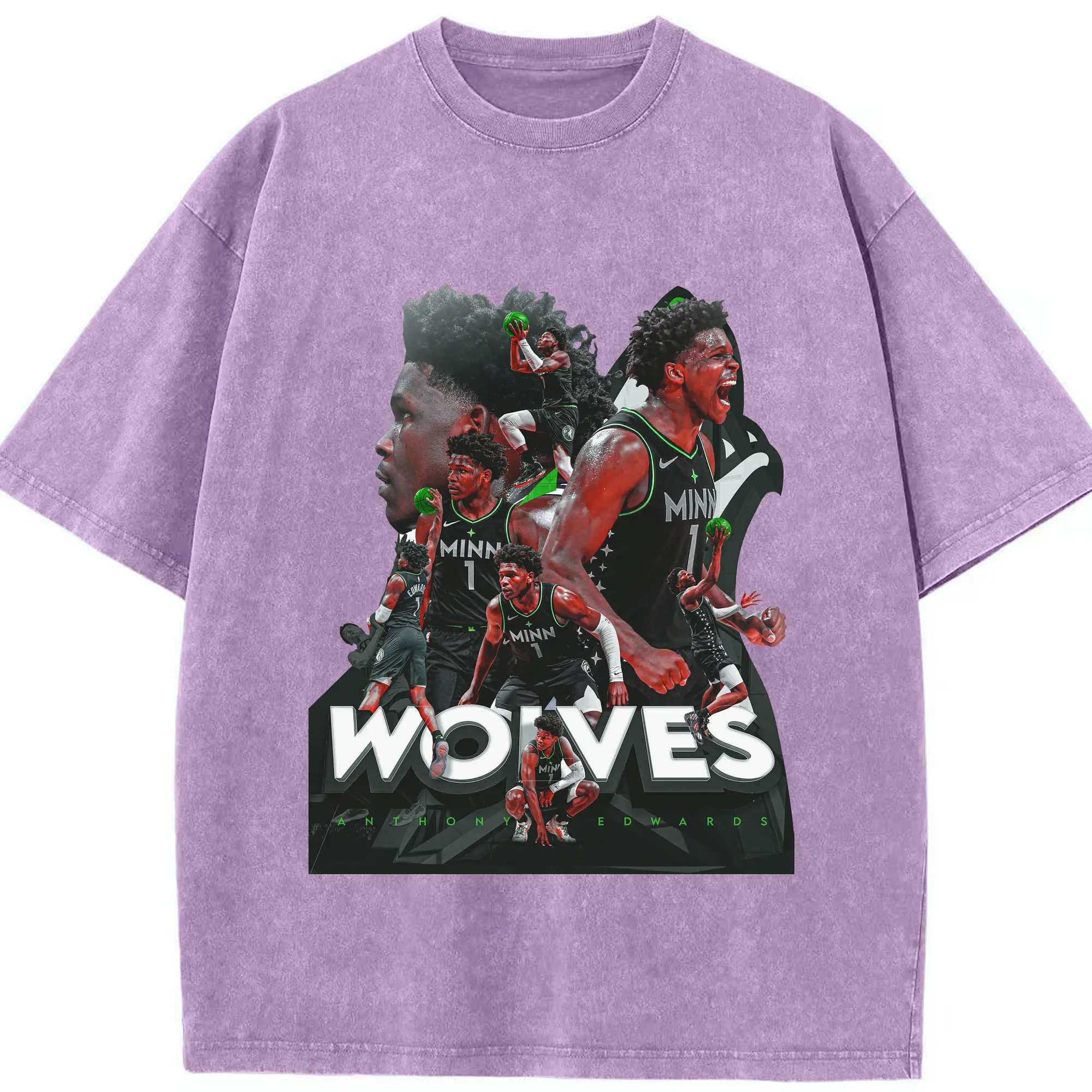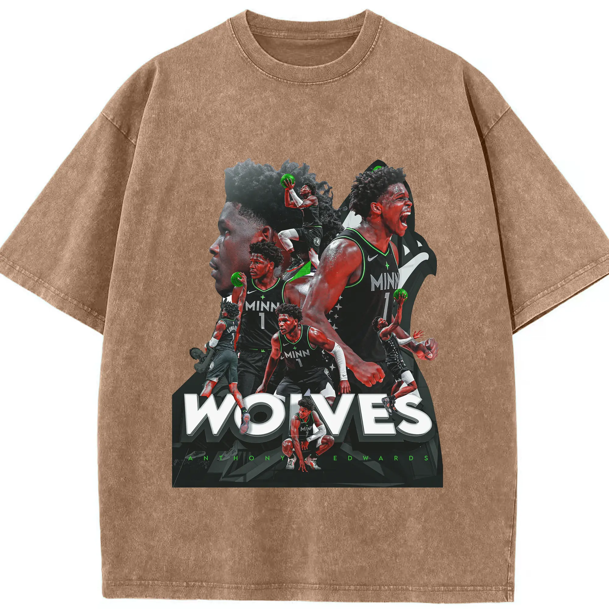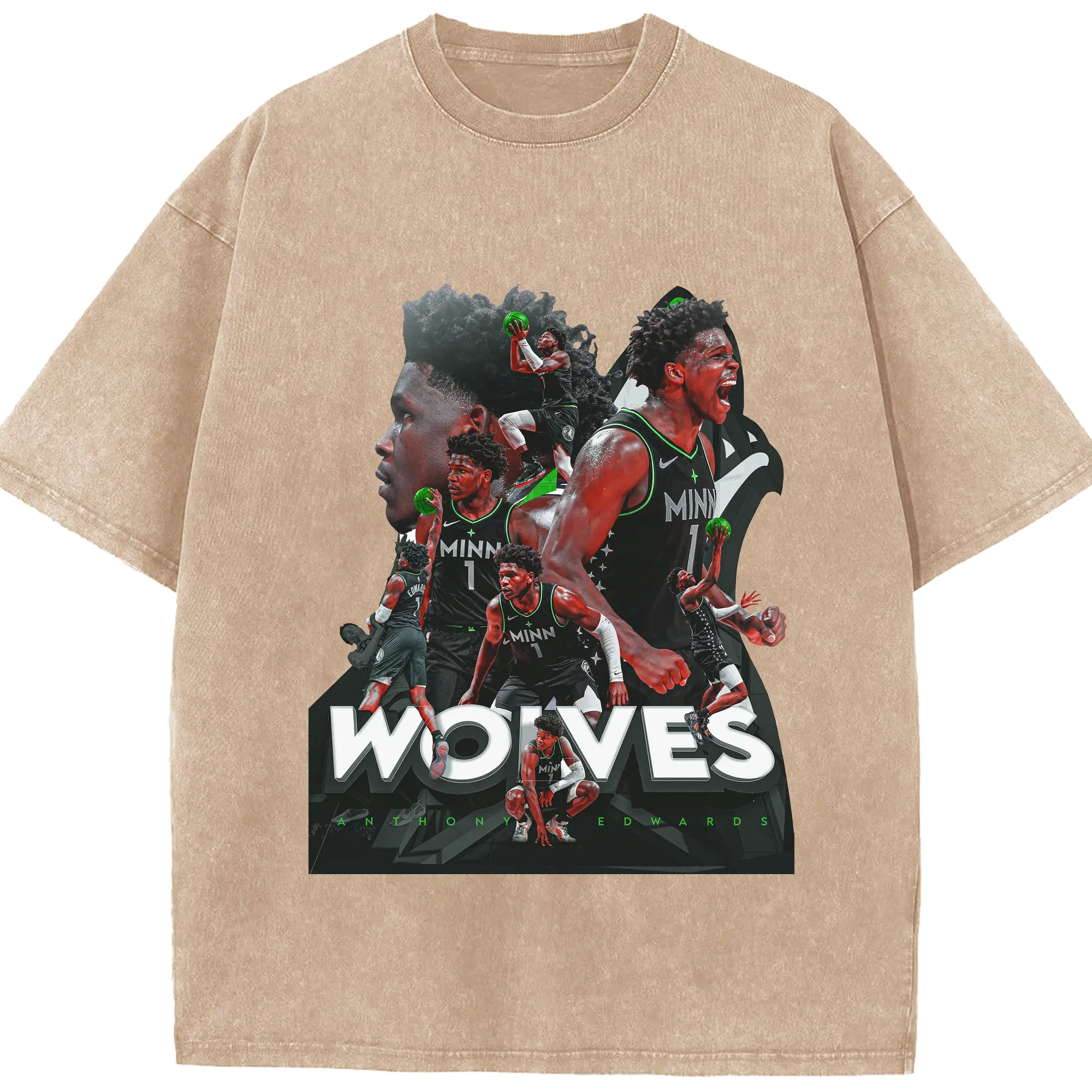 Anthony Edwards Minnesota Timberwolves Basketball Highlights Shirt - Washed Vintage Look 230g Cotton Oversized T-Shirt With Front Heat Transfer Print – Soft, Lightweight, Stylish Fit – Comfortable Casual Wear For Sports & Everyday Use