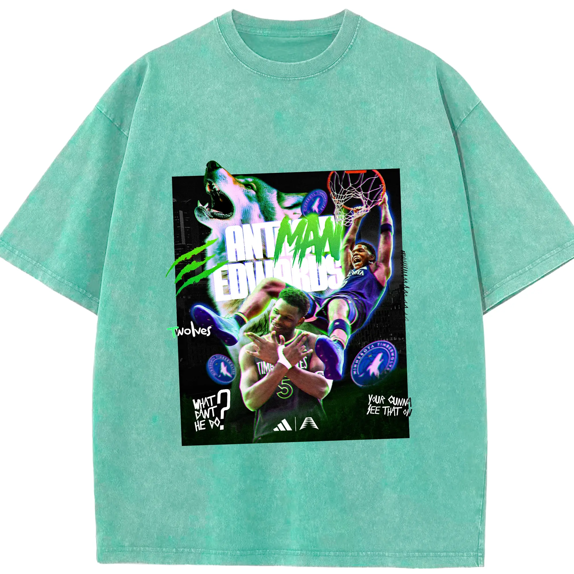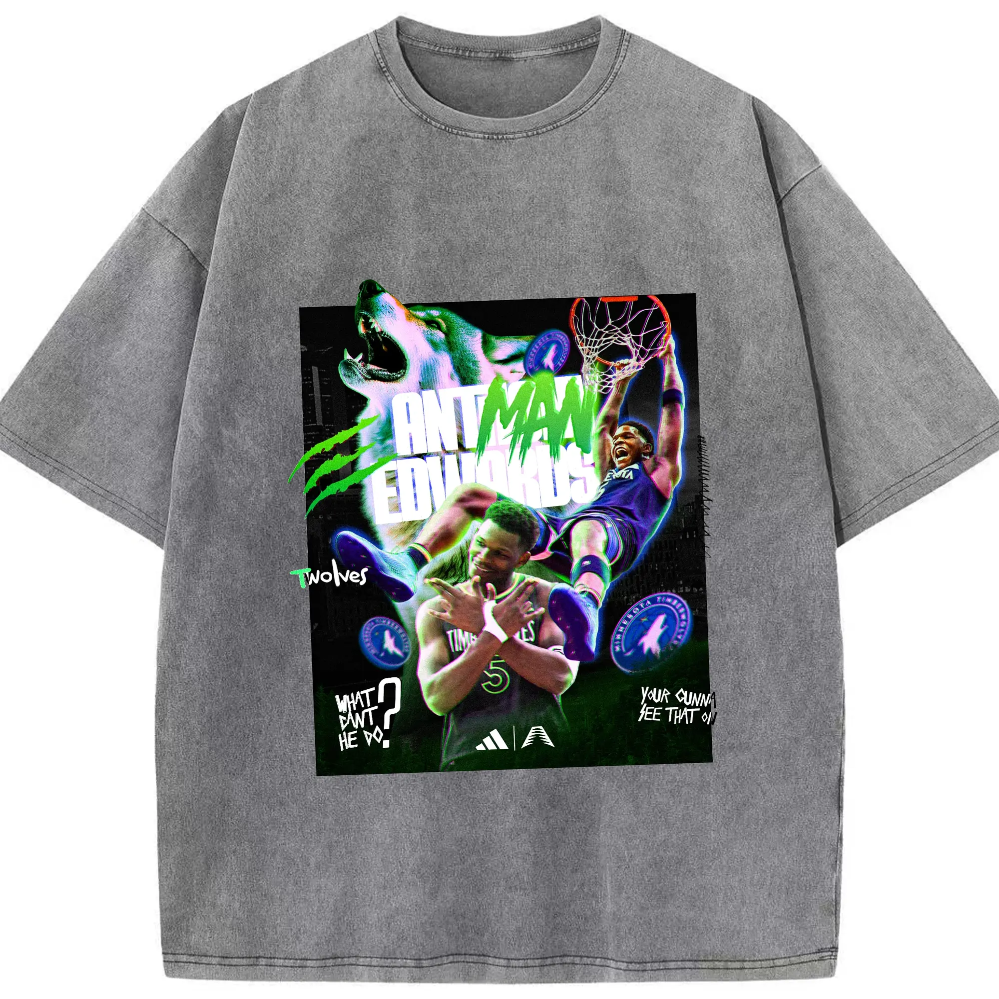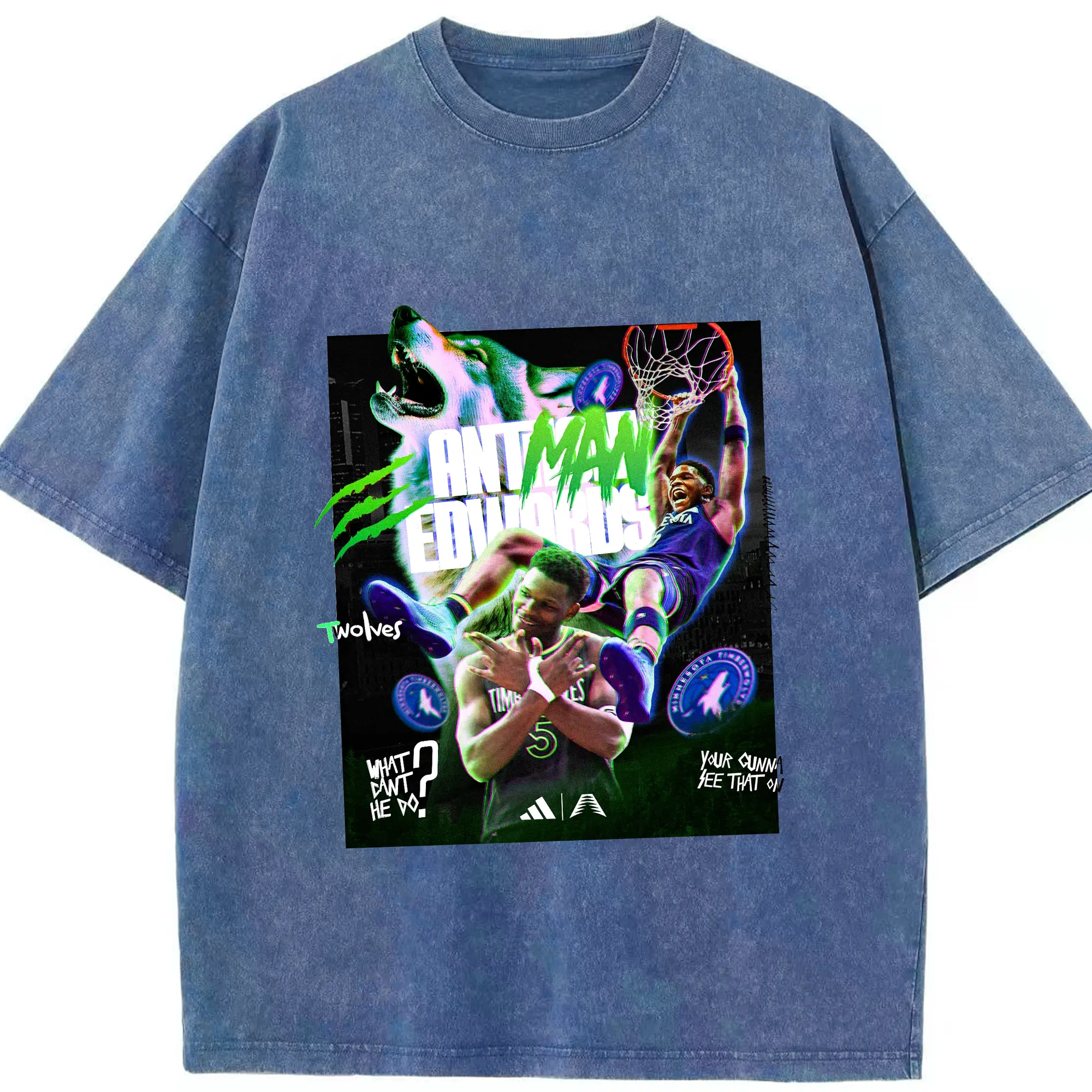 Anthony Edwards Timberwolves holographic style Shirt - Washed Vintage Look 230g Cotton Oversized T-Shirt With Front Heat Transfer Print – Soft, Lightweight, Stylish Fit – Comfortable Casual Wear For Sports & Everyday Use