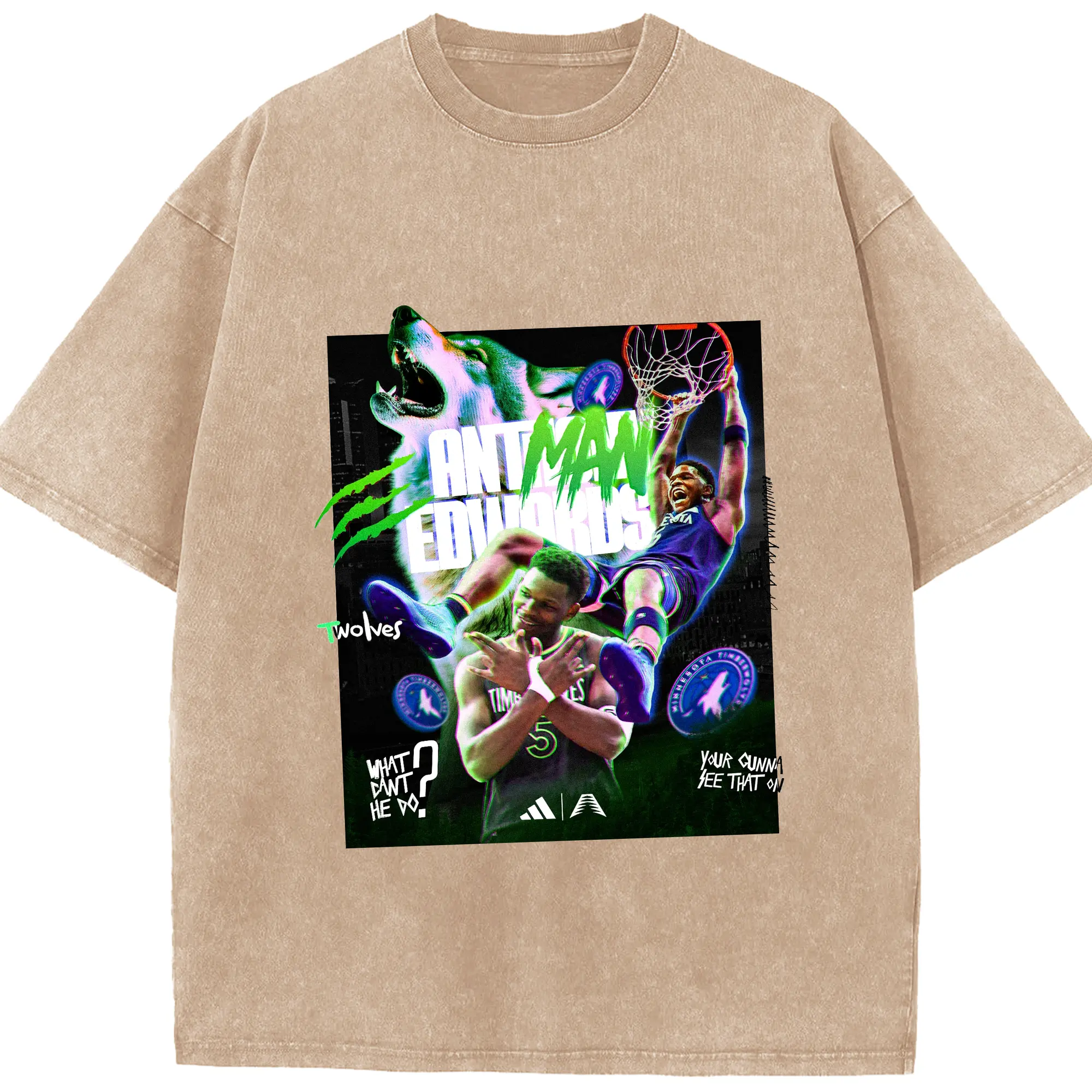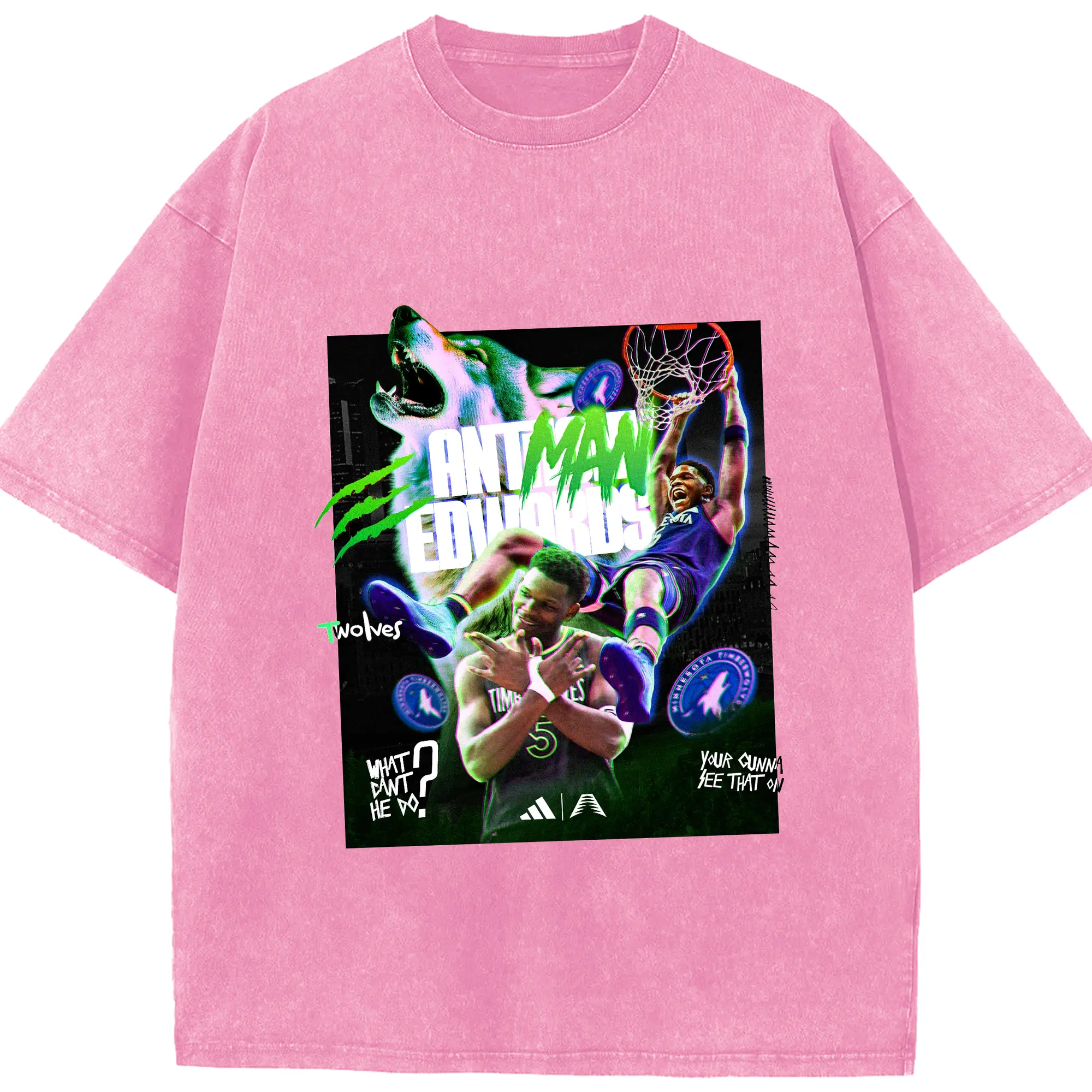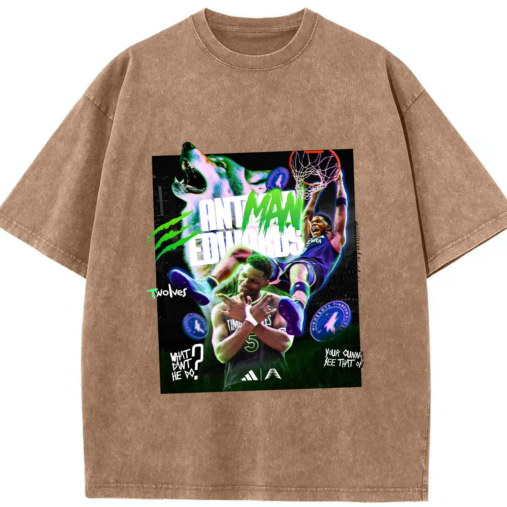Anthony Edwards Timberwolves holographic style Shirt - Washed Vintage Look 230g Cotton Oversized T-Shirt With Front Heat Transfer Print – Soft, Lightweight, Stylish Fit – Comfortable Casual Wear For Sports & Everyday Use