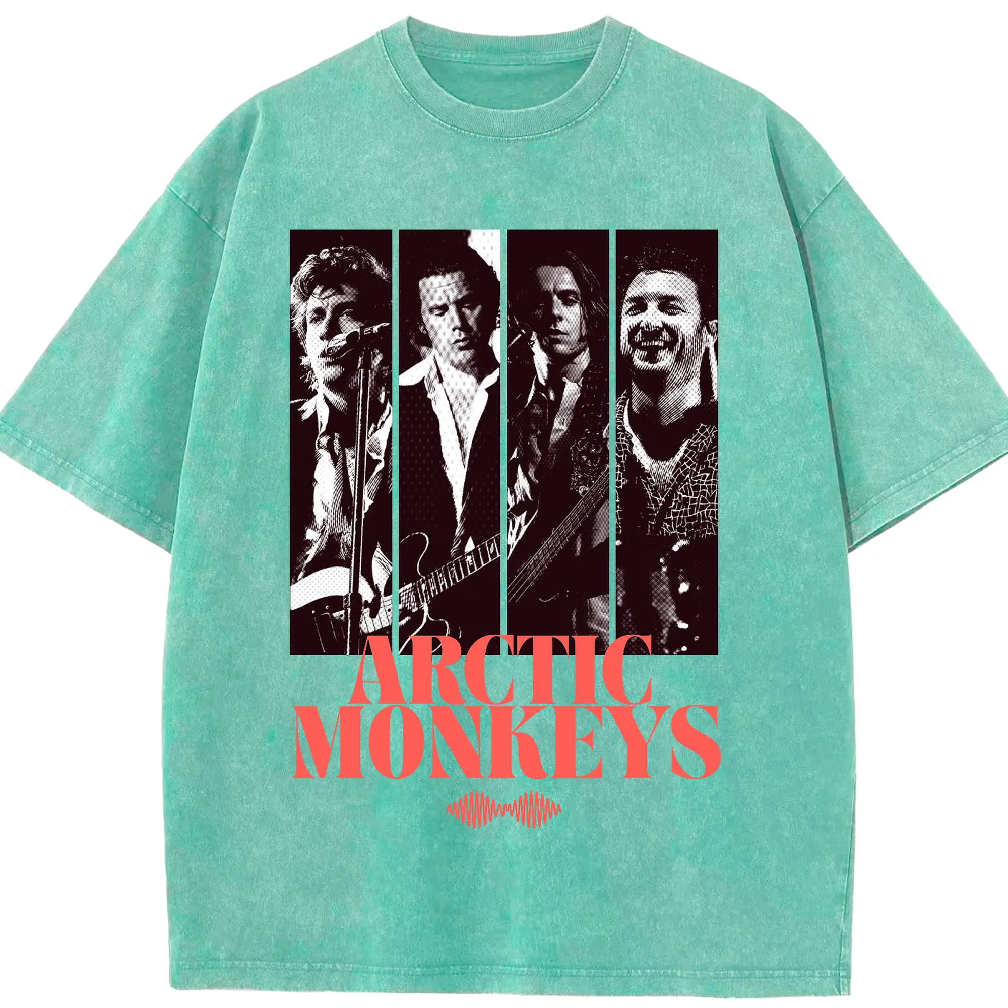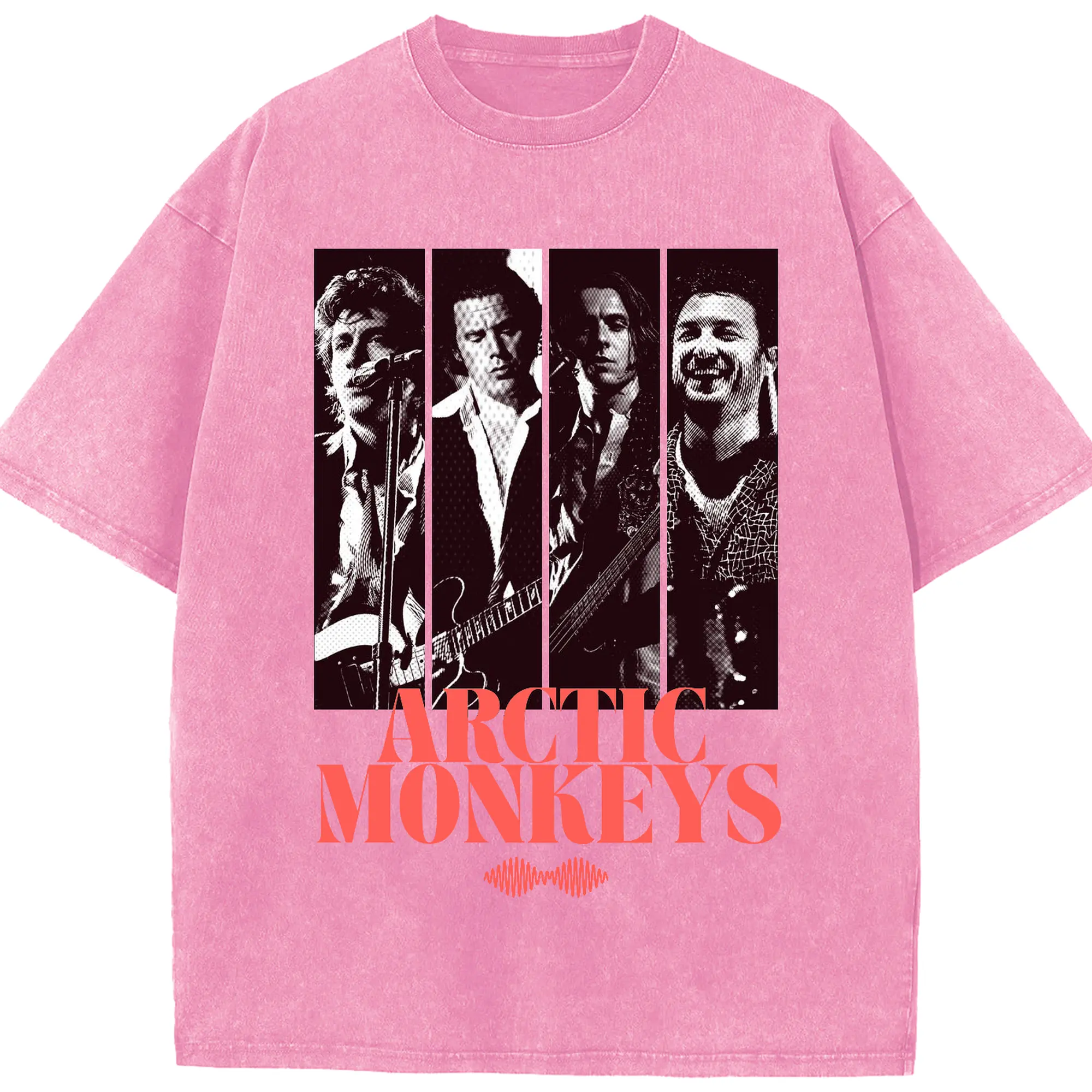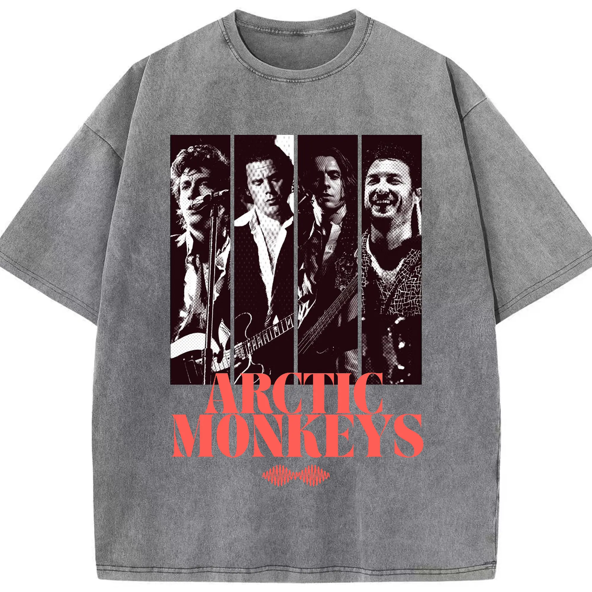Arctic Monkeys Indie Rock Vintage Band DIY - Washed Vintage Look 230g Cotton Oversized T-Shirt With Front Heat Transfer Print – Soft, Lightweight, Stylish Fit – Comfortable Casual Wear For Sports & Everyday Use
