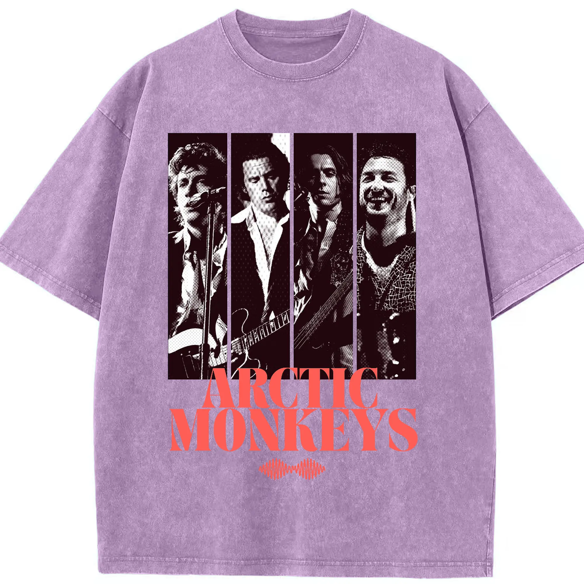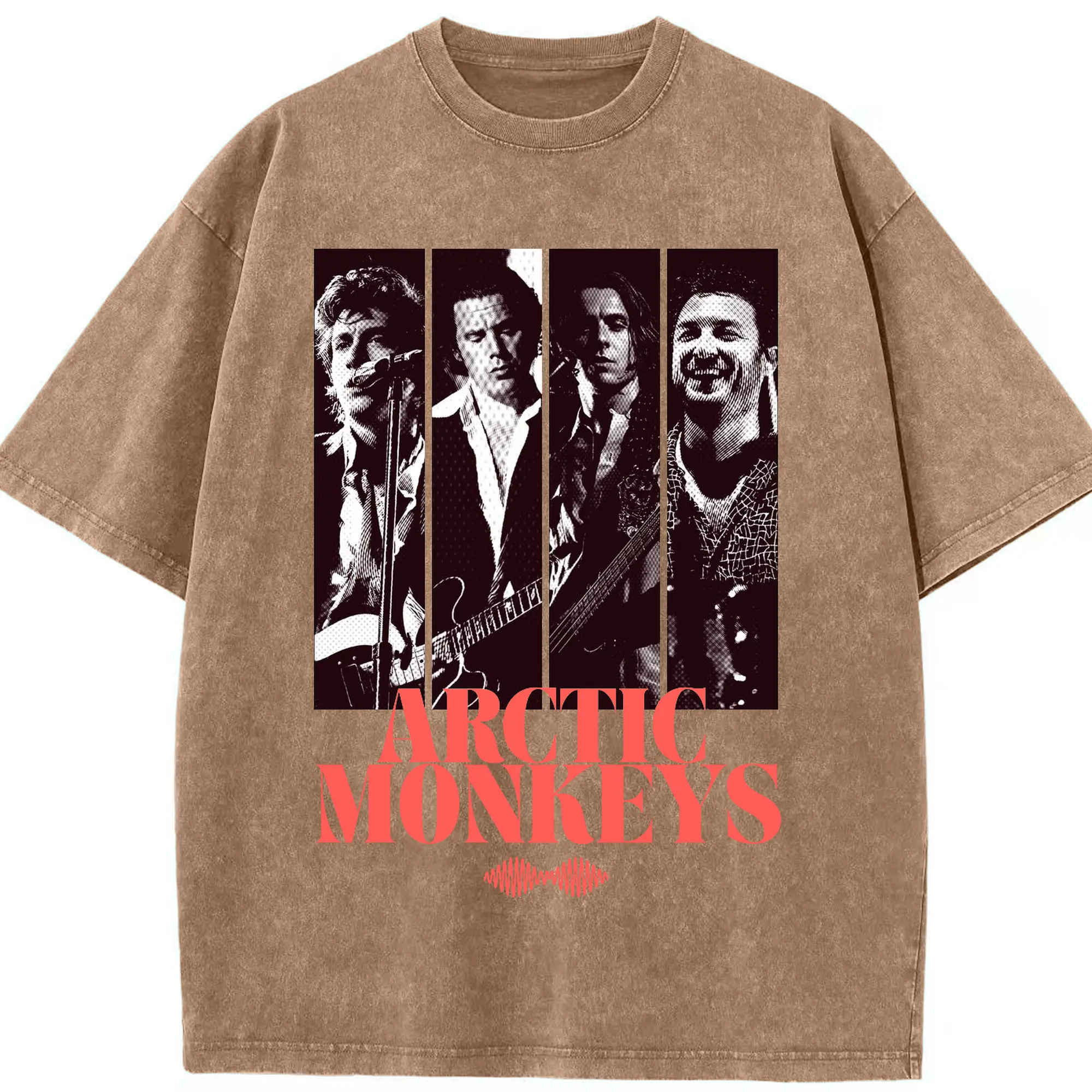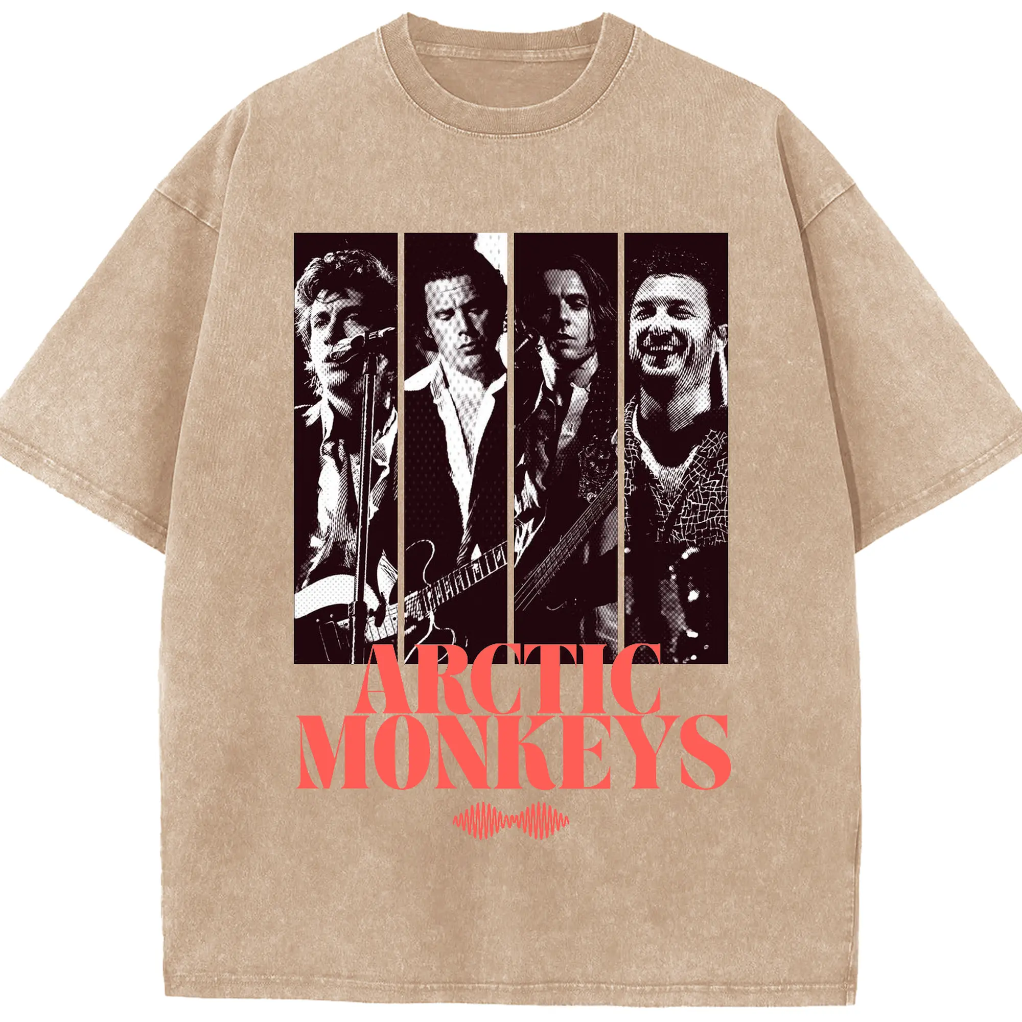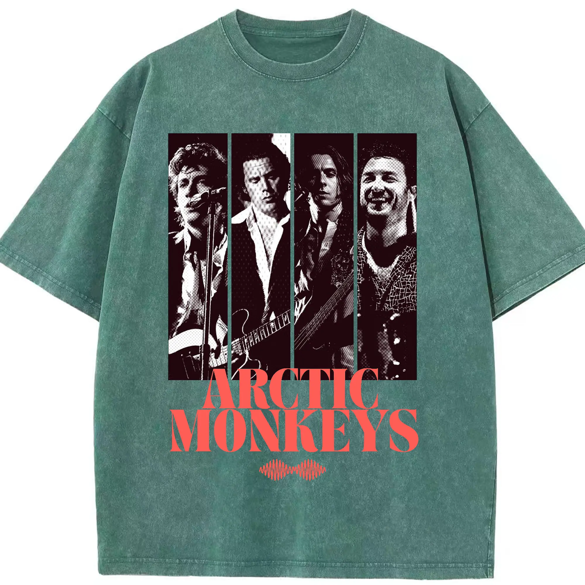 Arctic Monkeys Indie Rock Vintage Band DIY - Washed Vintage Look 230g Cotton Oversized T-Shirt With Front Heat Transfer Print – Soft, Lightweight, Stylish Fit – Comfortable Casual Wear For Sports & Everyday Use