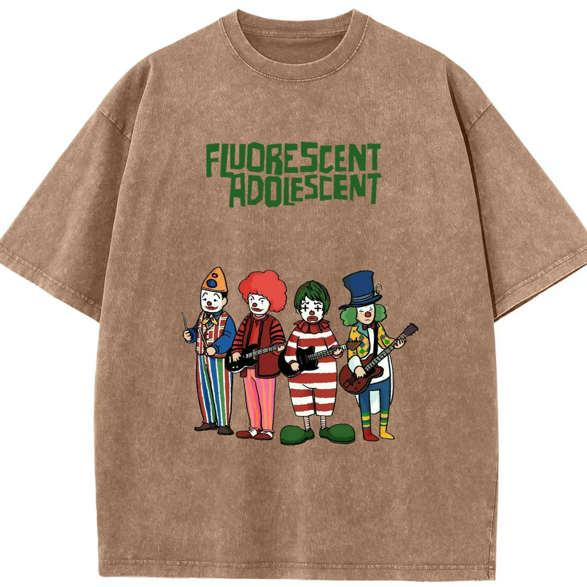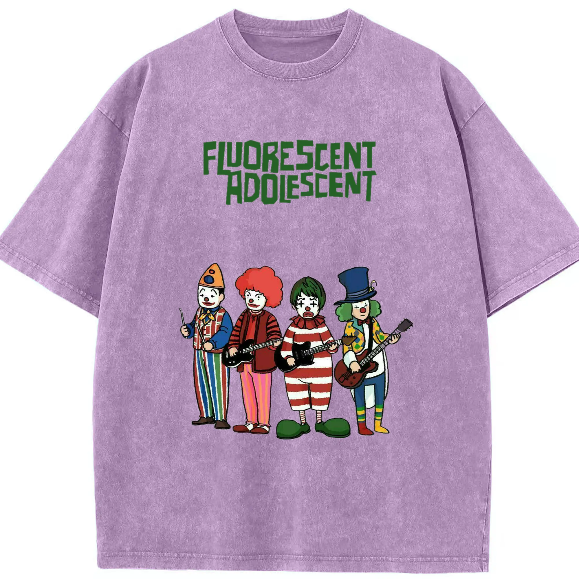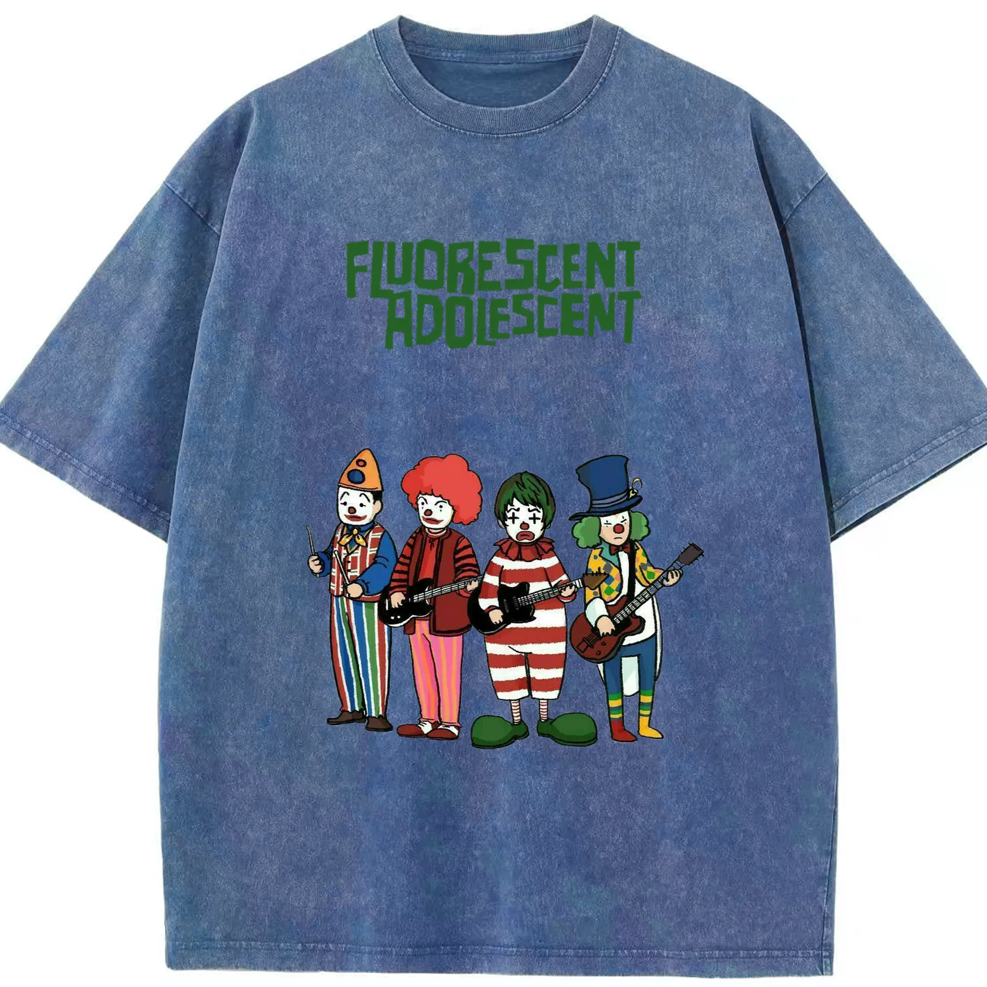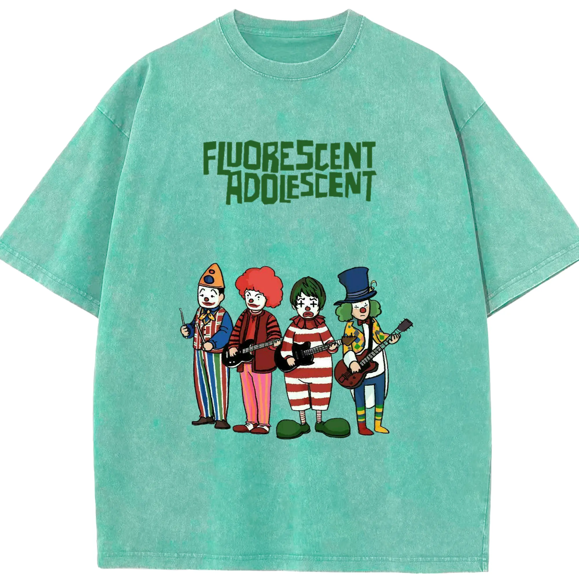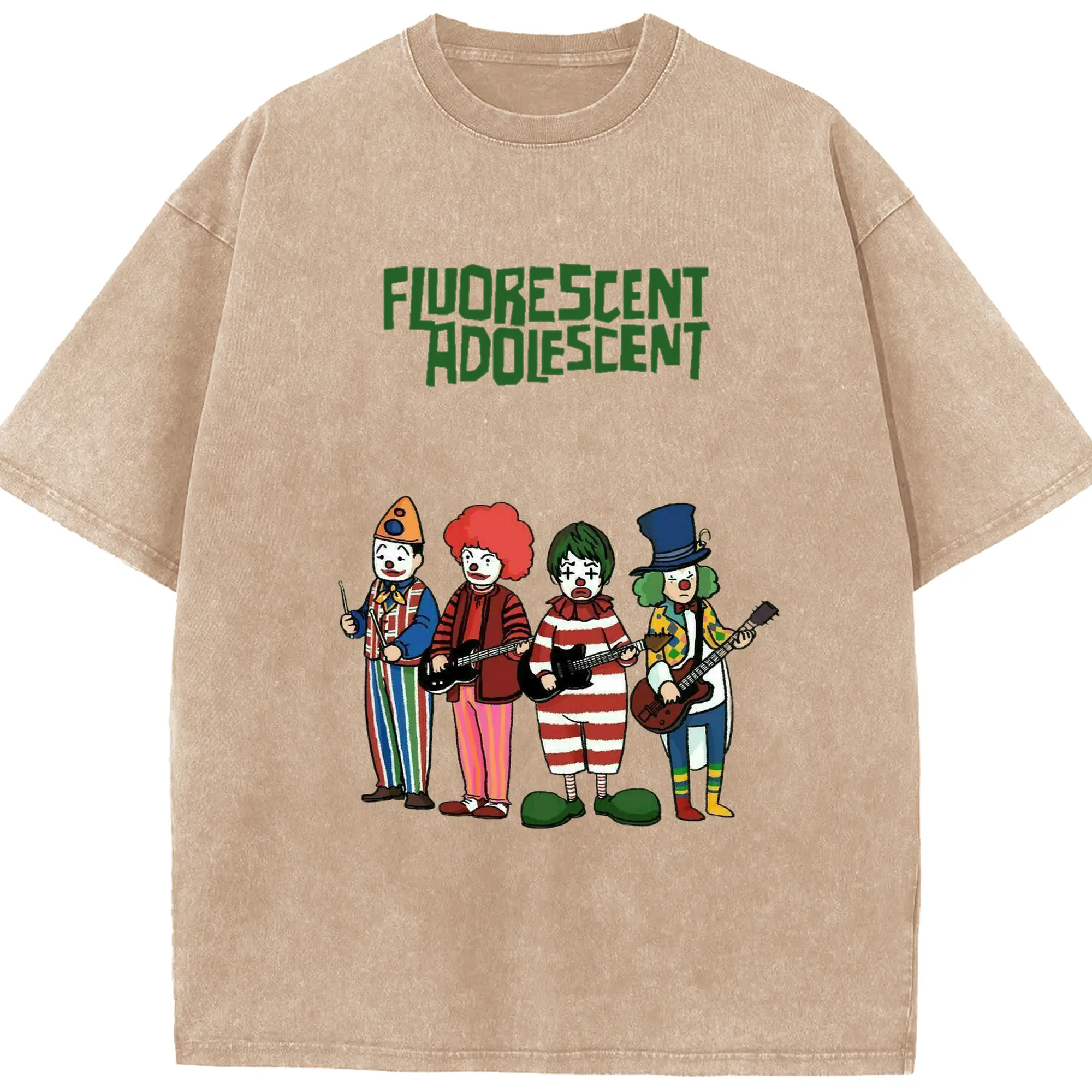 Arctic Monkeys《Fluorescent Adolescent》Cartoon DIY - Washed Vintage Look 230g Cotton Oversized T-Shirt With Front Heat Transfer Print – Soft, Lightweight, Stylish Fit – Comfortable Casual Wear For Sports & Everyday Use