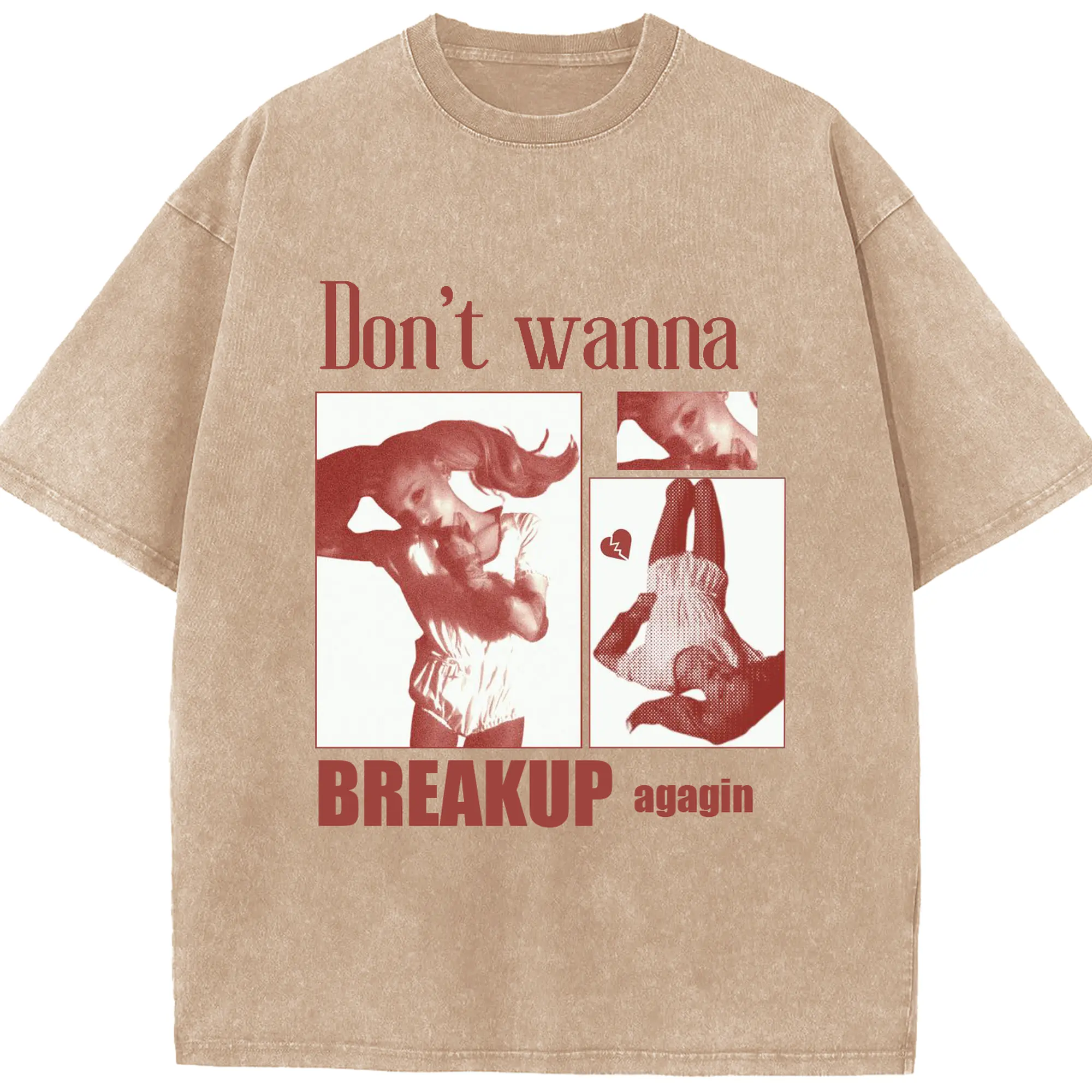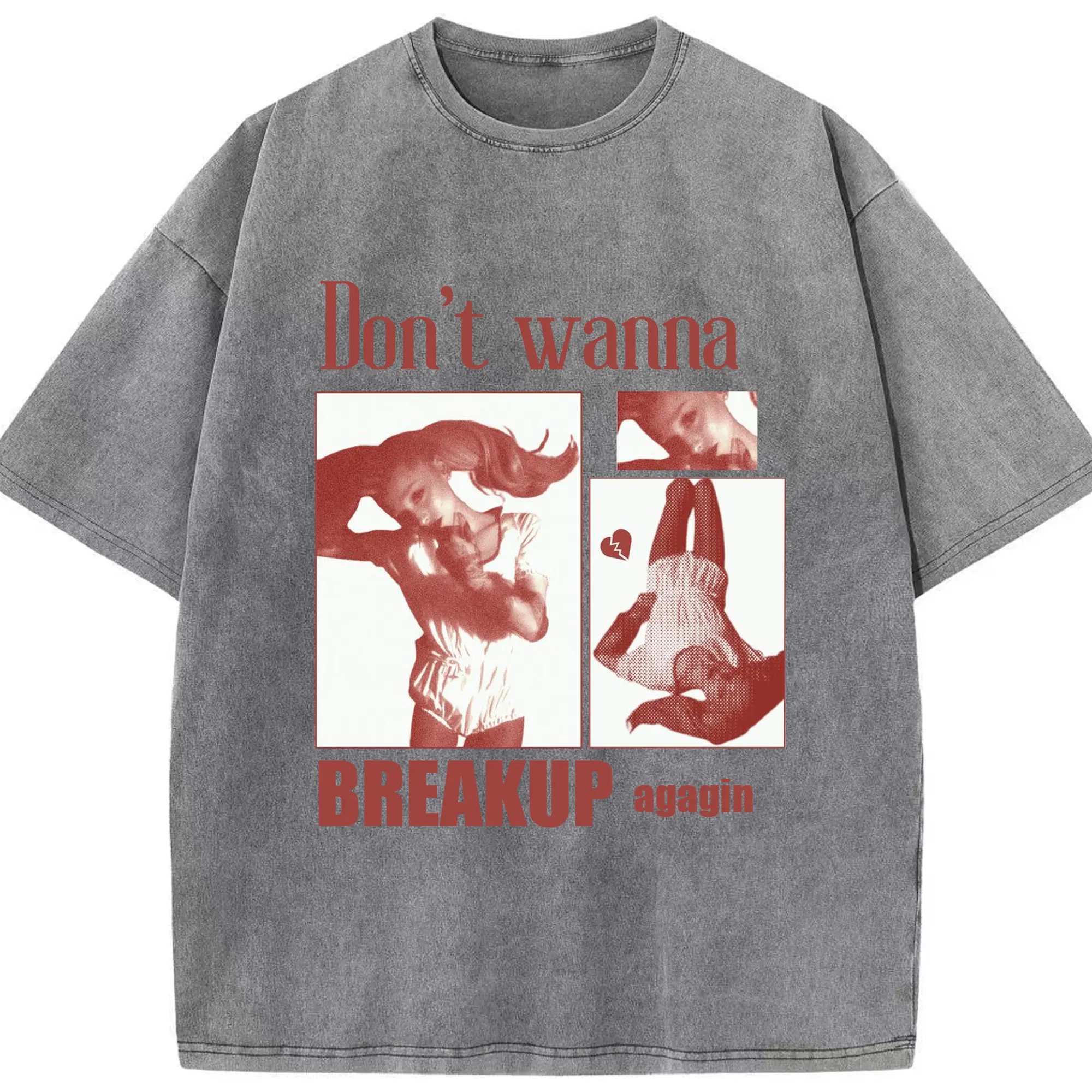 Ariana Grande“Don’t Wanna Breakup” DIY - Washed Vintage Look 230g Cotton Oversized T-Shirt With Front Heat Transfer Print – Soft, Lightweight, Stylish Fit – Comfortable Casual Wear For Sports & Everyday Use