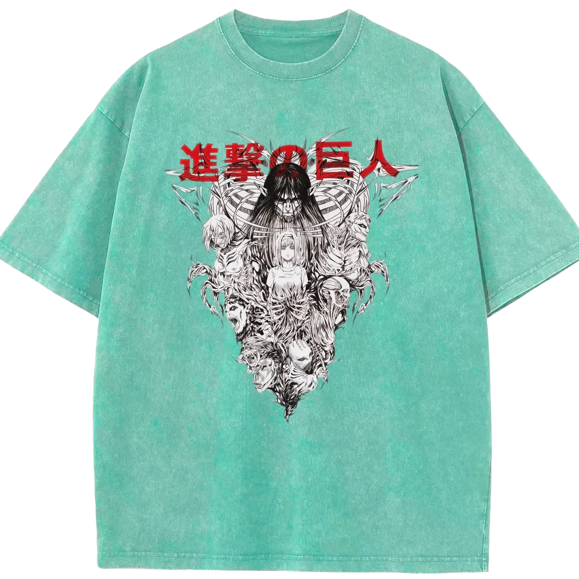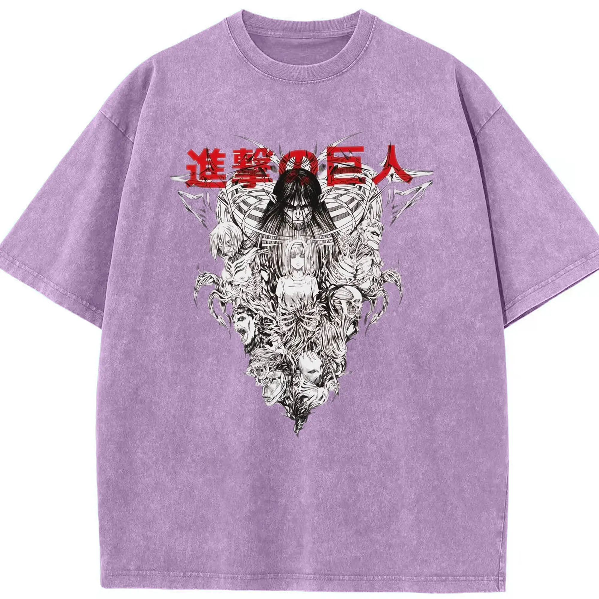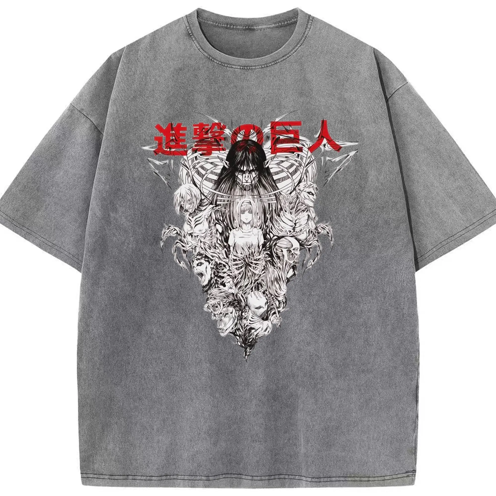 Attack on Titan Dark Art Group Characters DIY Shirt - Washed Vintage Look 230g Cotton Oversized T-Shirt With Front Heat Transfer Print – Soft, Lightweight, Stylish Fit – Comfortable Casual Wear For Sports & Everyday Use