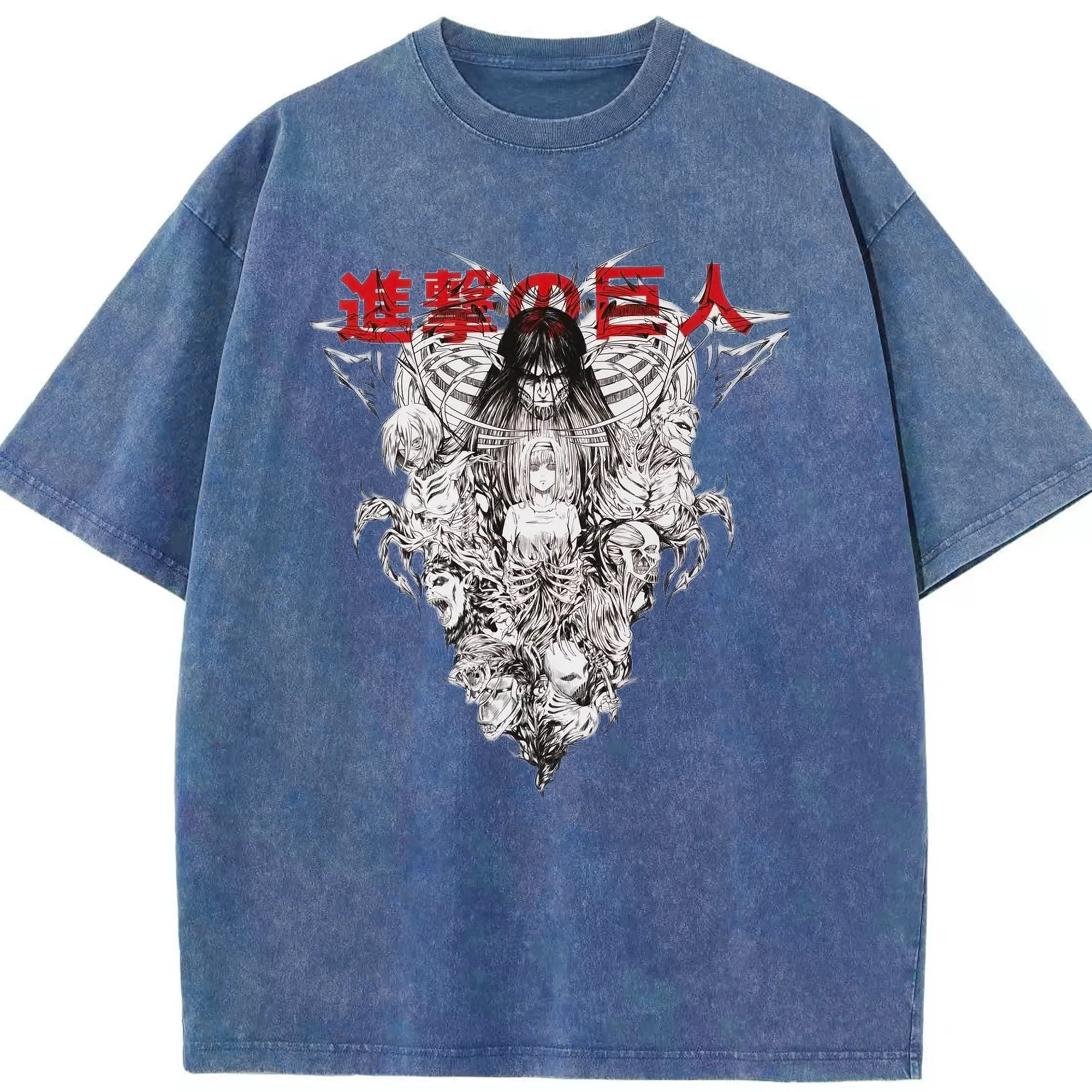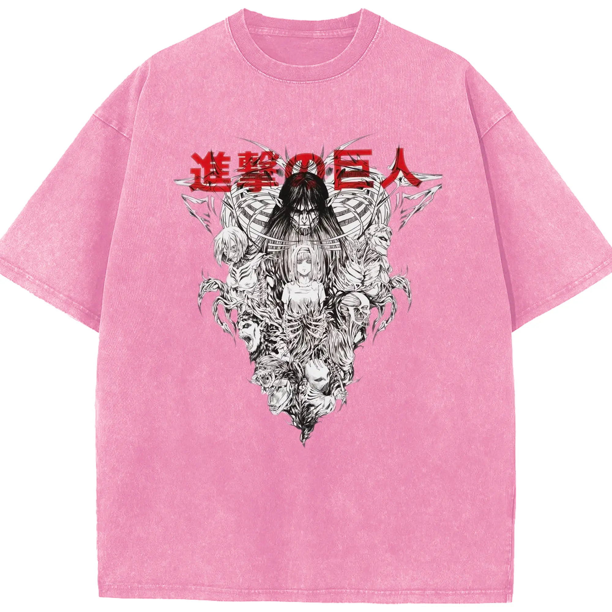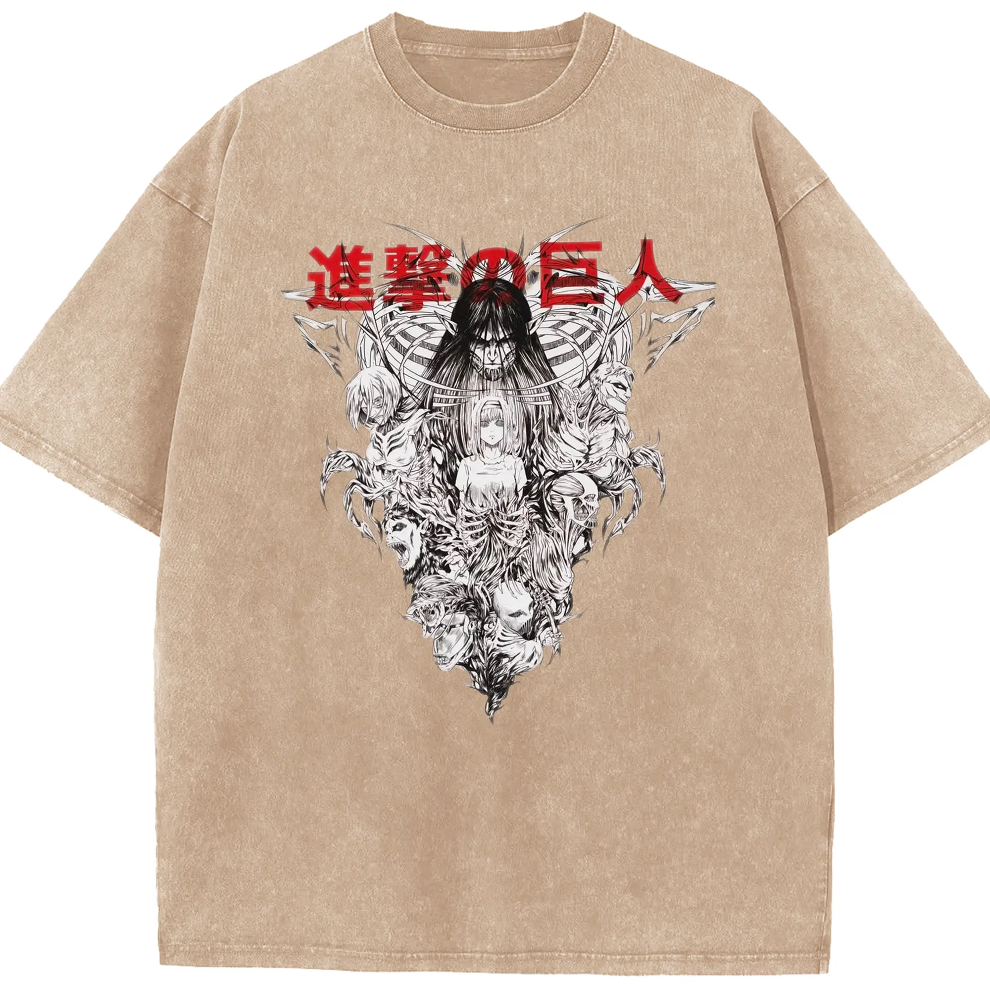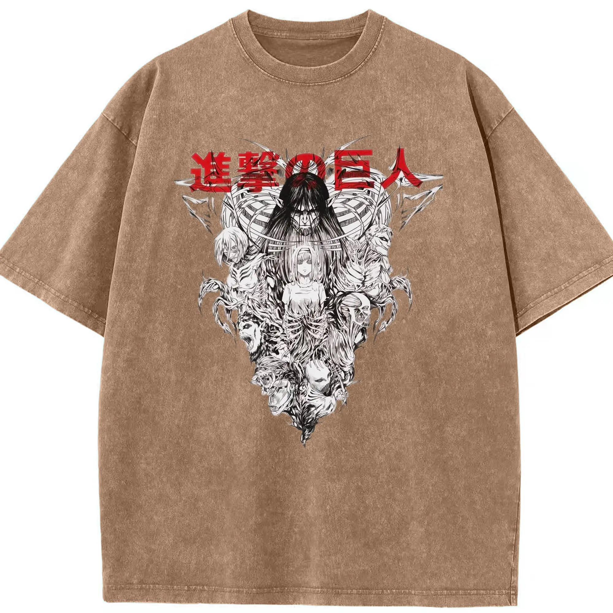 Attack on Titan Dark Art Group Characters DIY Shirt - Washed Vintage Look 230g Cotton Oversized T-Shirt With Front Heat Transfer Print – Soft, Lightweight, Stylish Fit – Comfortable Casual Wear For Sports & Everyday Use
