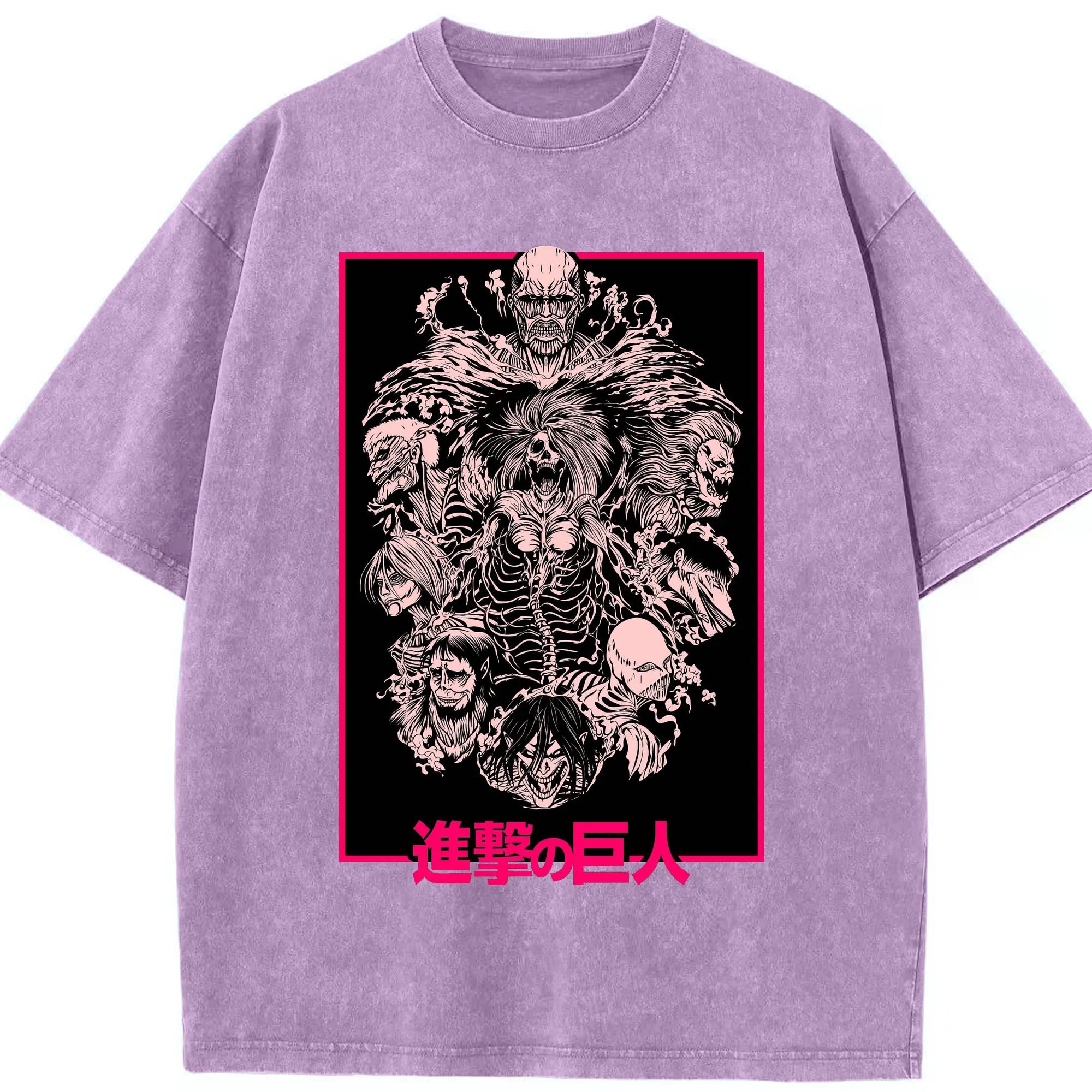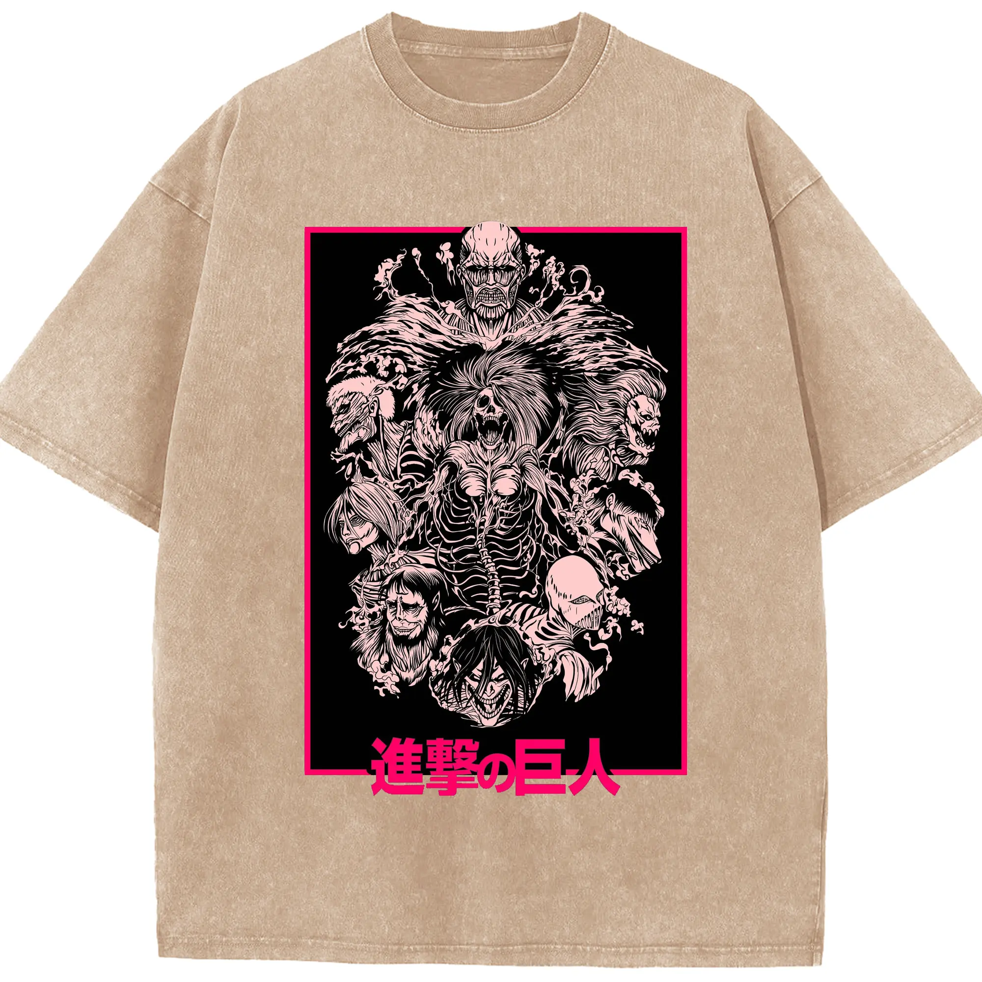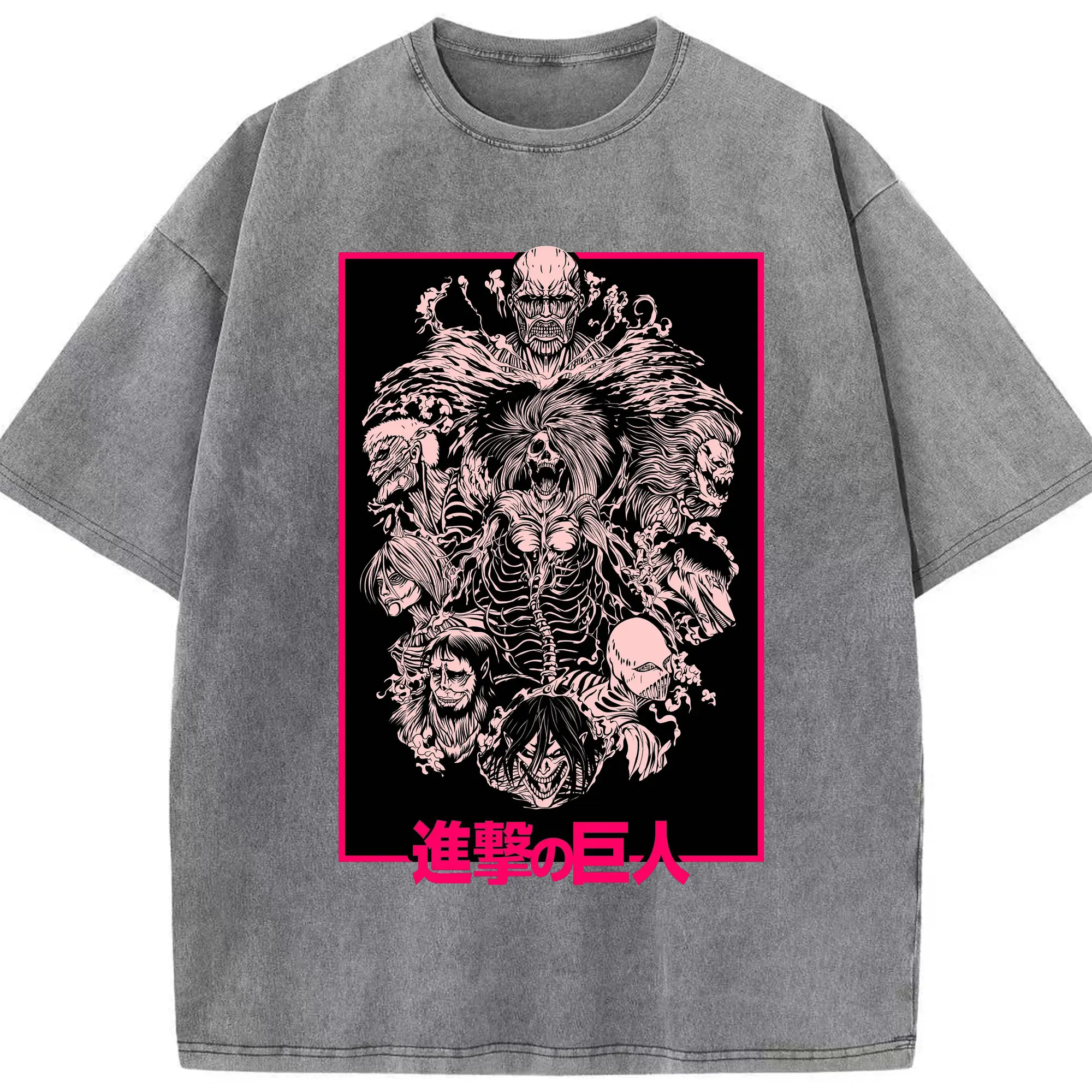 Attack on Titan Dark Art Titan Group DIY Shirt - Washed Vintage Look 230g Cotton Oversized T-Shirt With Front Heat Transfer Print – Soft, Lightweight, Stylish Fit – Comfortable Casual Wear For Sports & Everyday Use