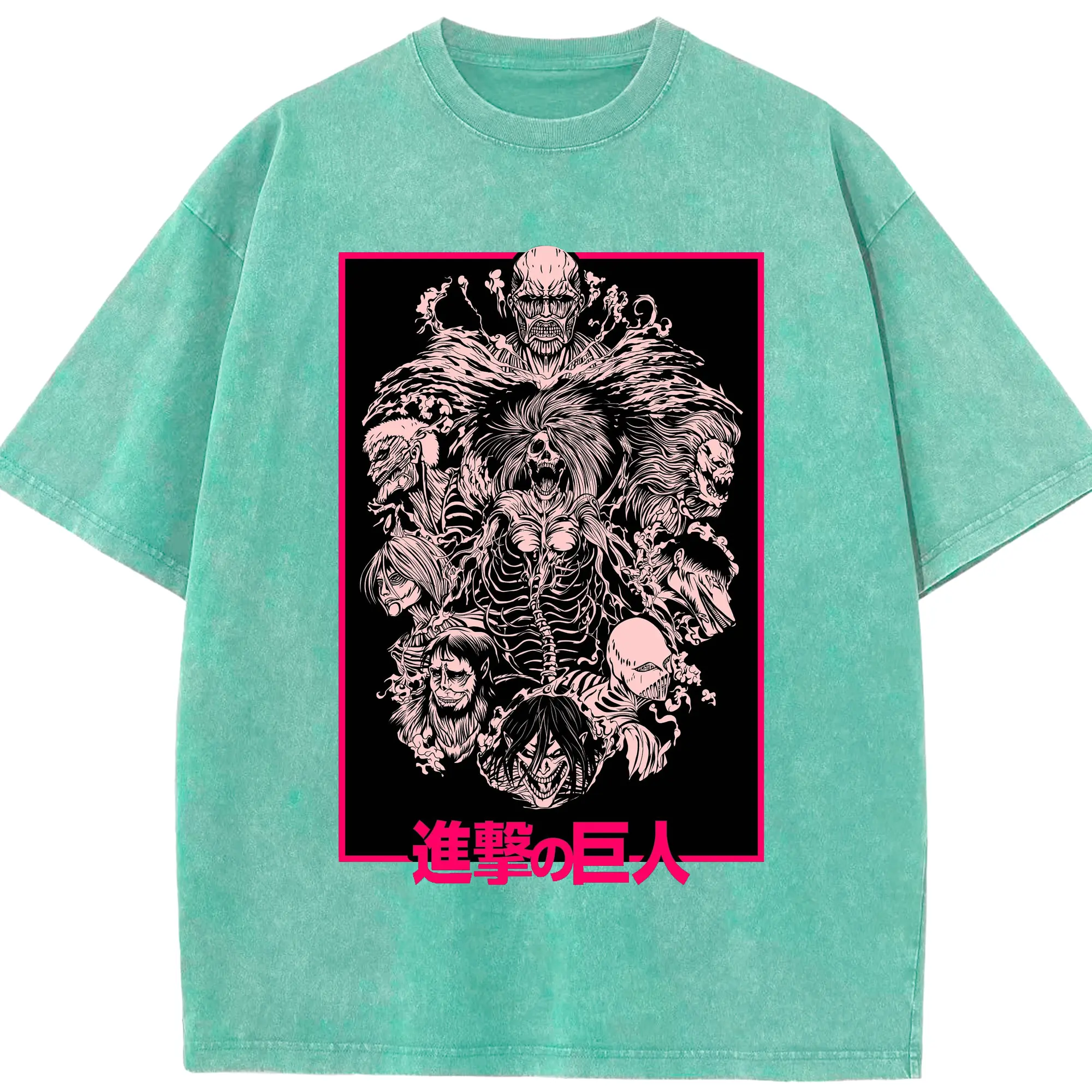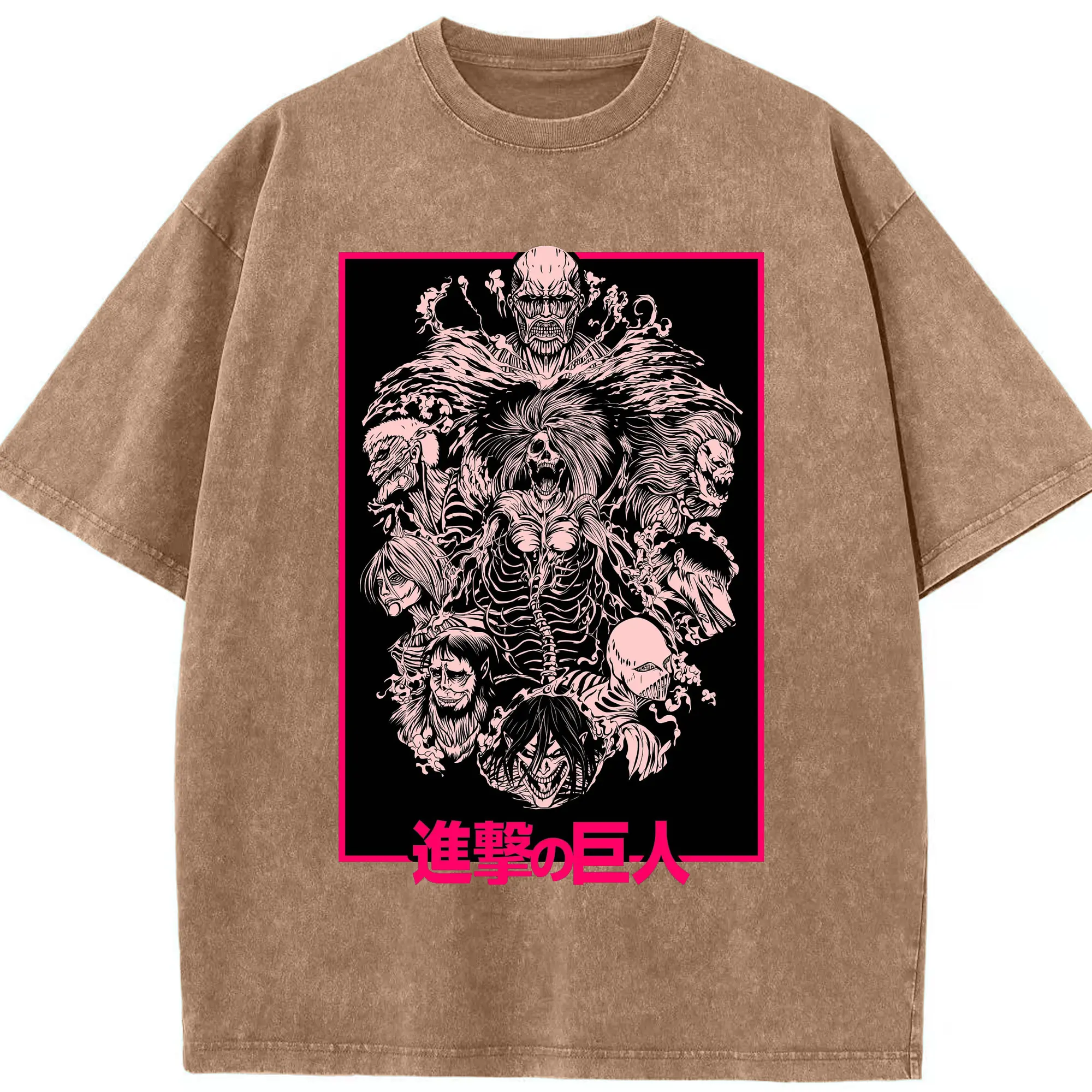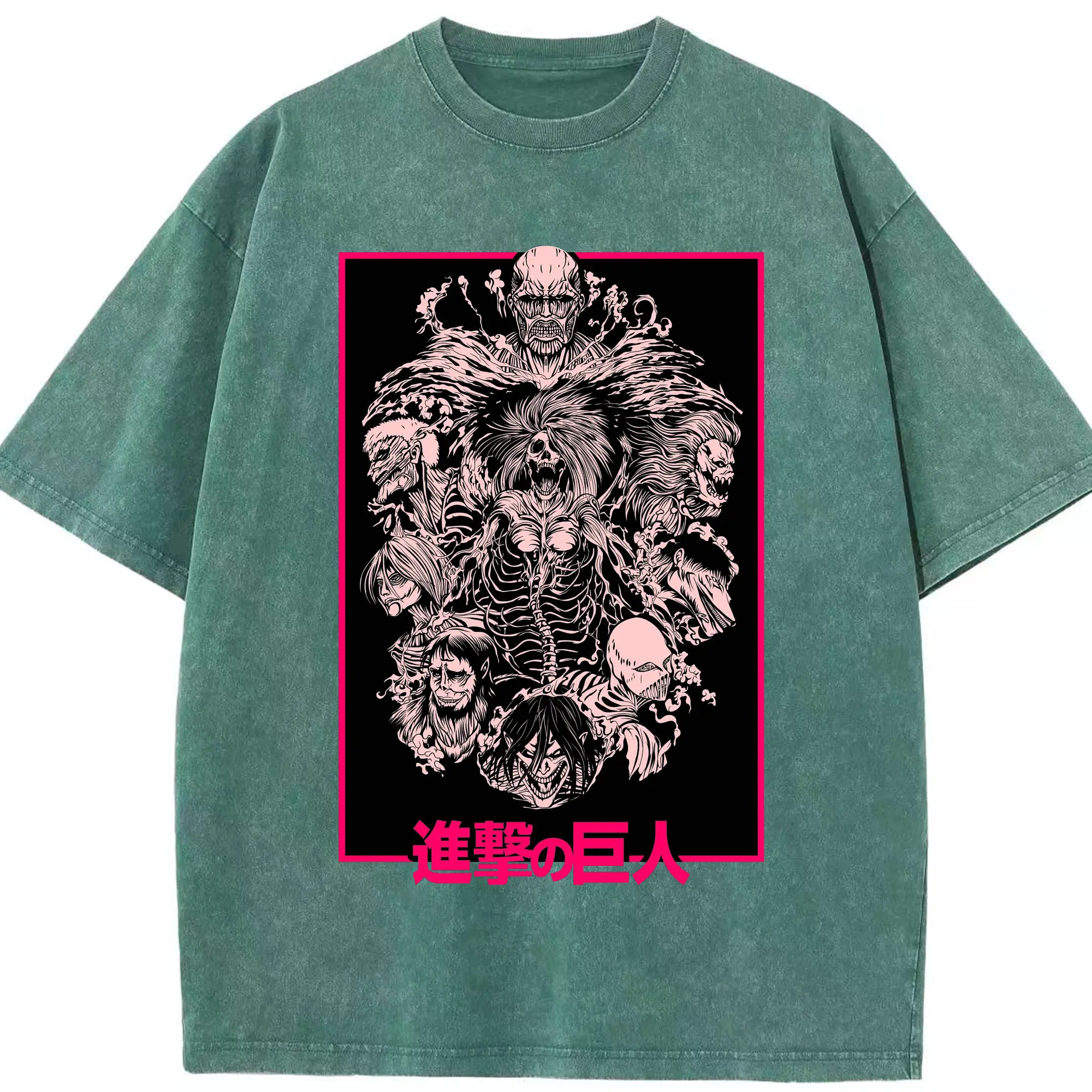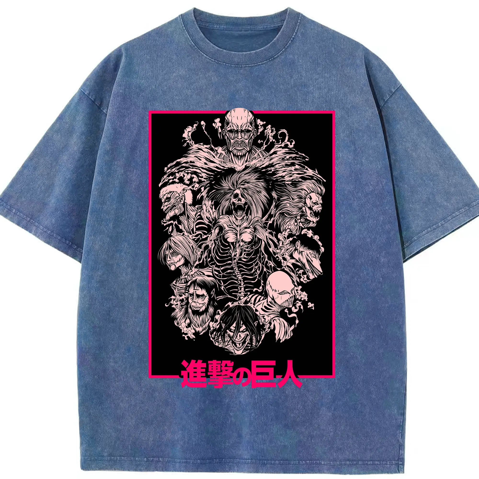 Attack on Titan Dark Art Titan Group DIY Shirt - Washed Vintage Look 230g Cotton Oversized T-Shirt With Front Heat Transfer Print – Soft, Lightweight, Stylish Fit – Comfortable Casual Wear For Sports & Everyday Use