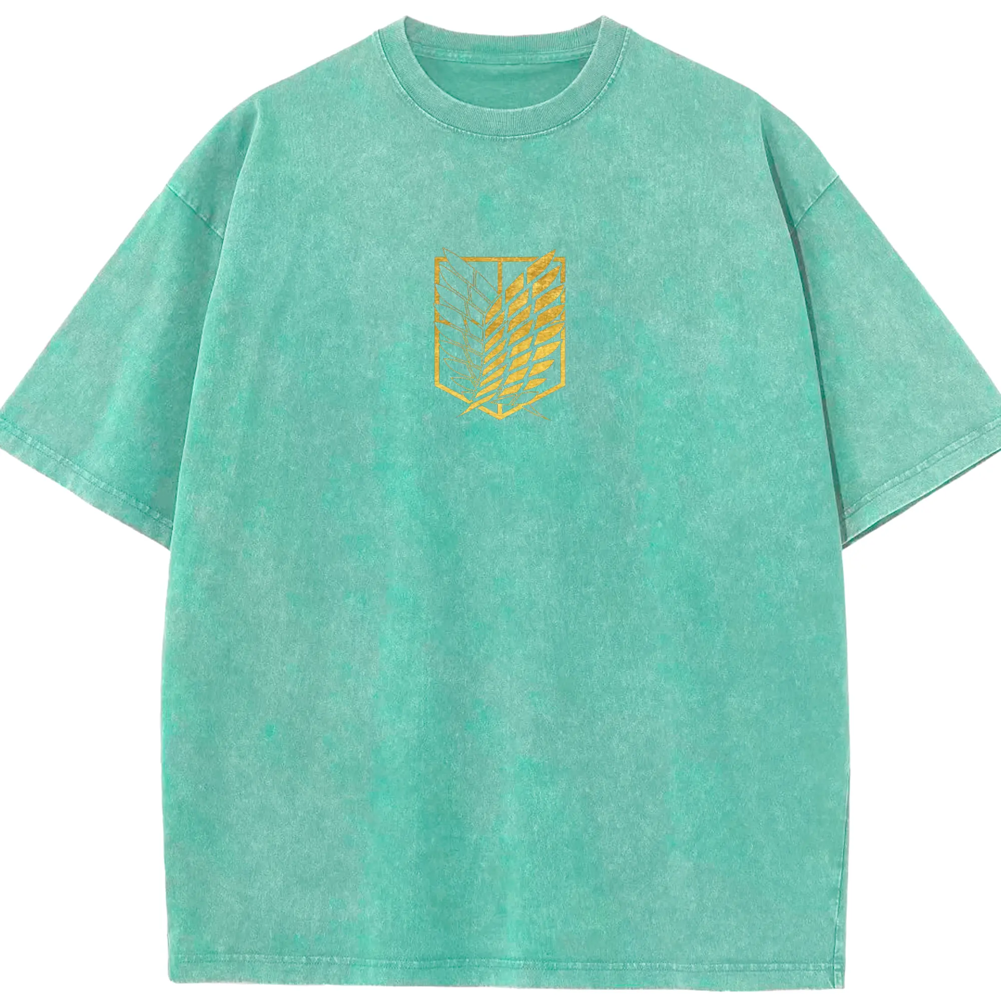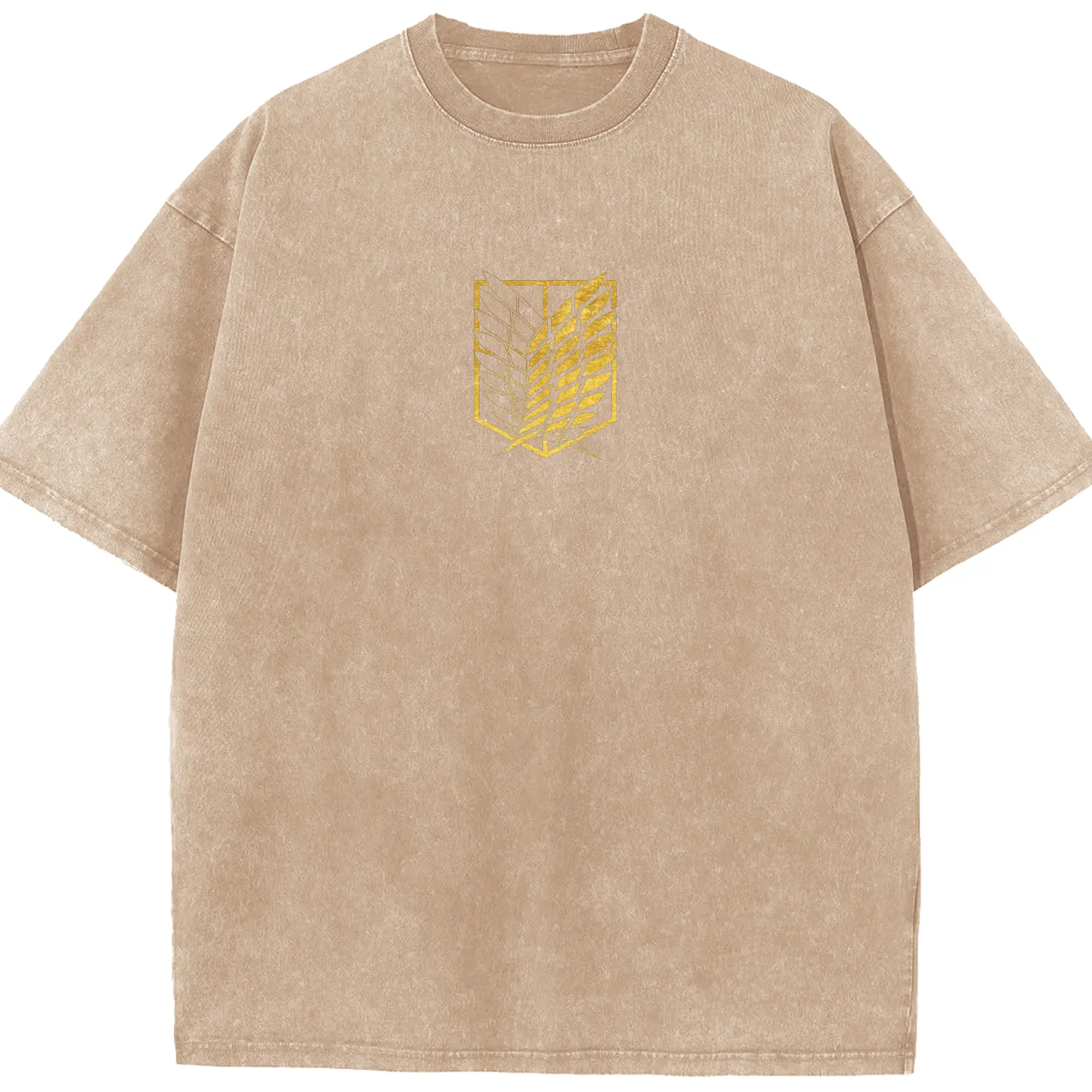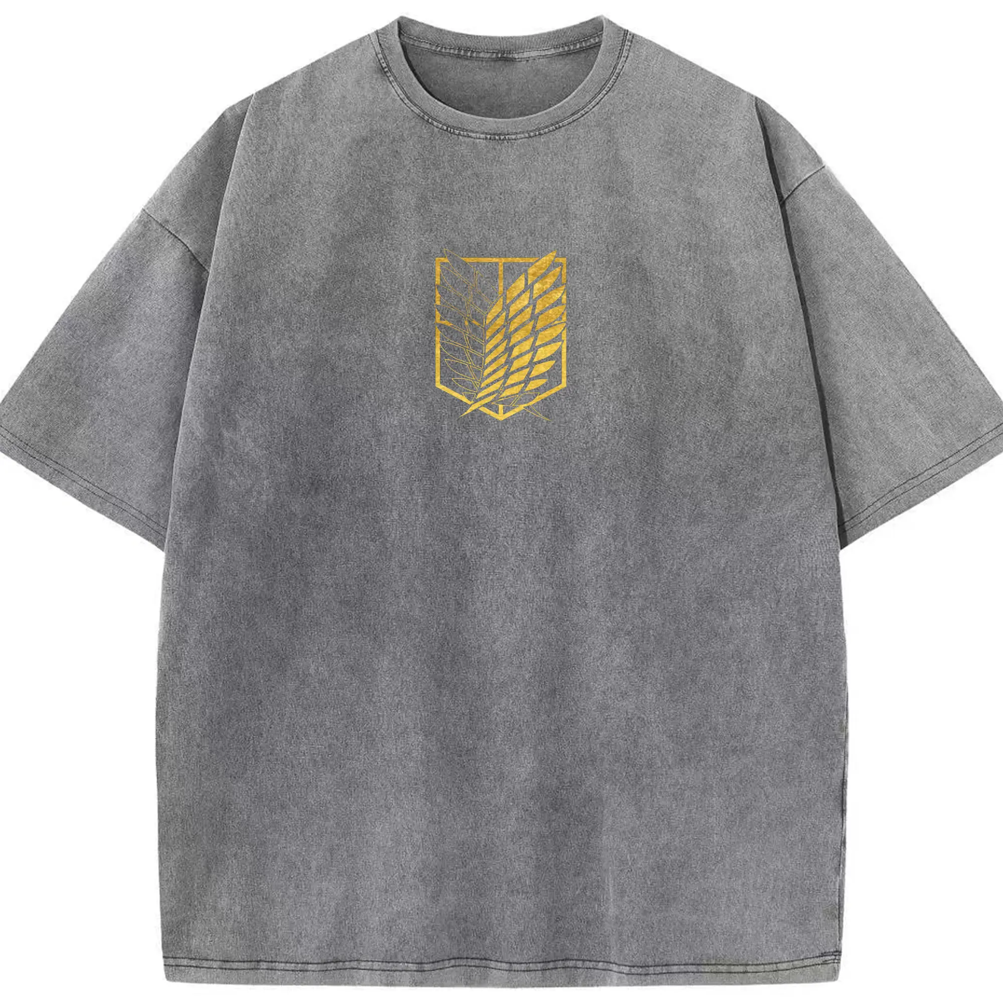 Attack on Titan Golden Wings of Freedom DIY Shirt - Washed Vintage Look 230g Cotton Oversized T-Shirt With Front Heat Transfer Print – Soft, Lightweight, Stylish Fit – Comfortable Casual Wear For Sports & Everyday Use