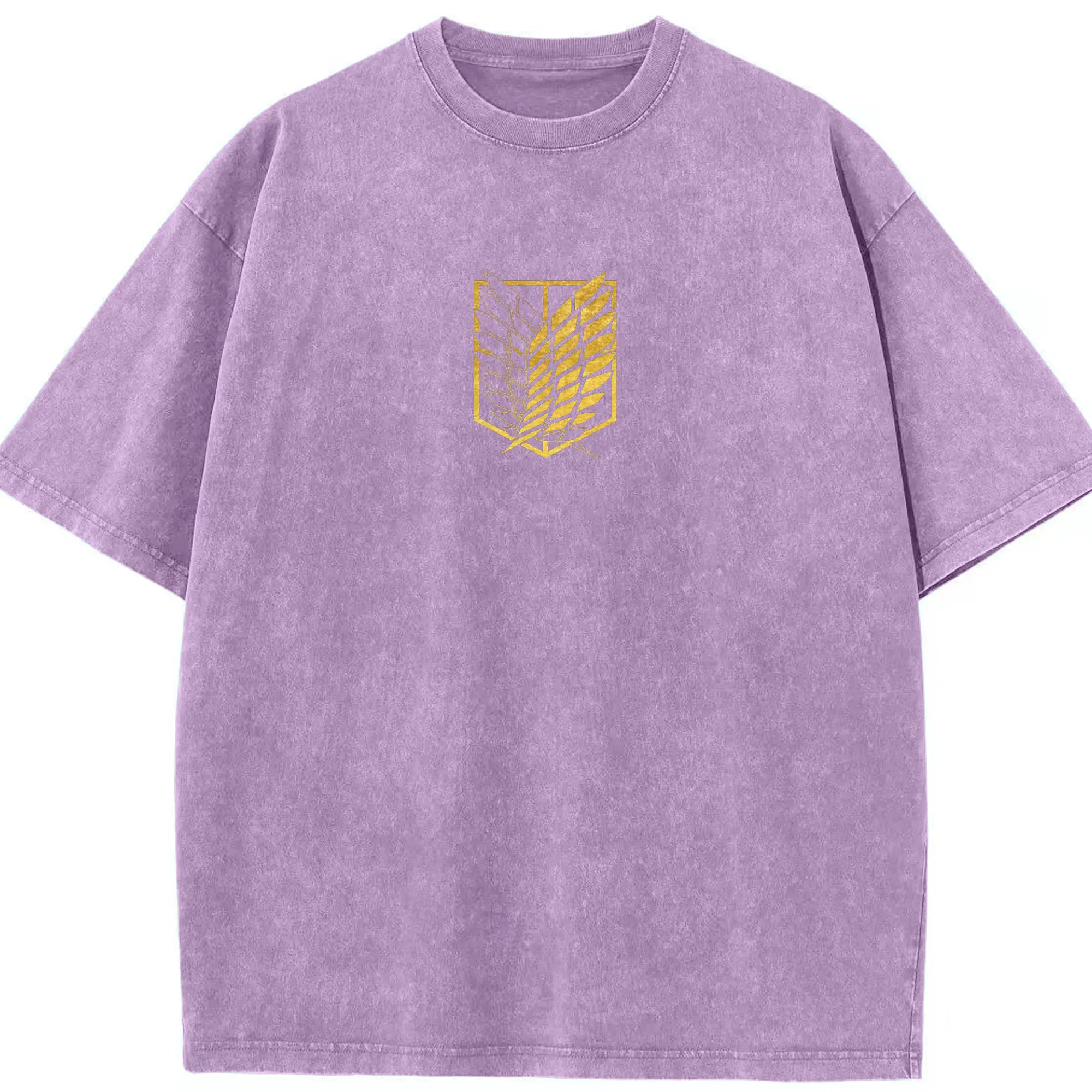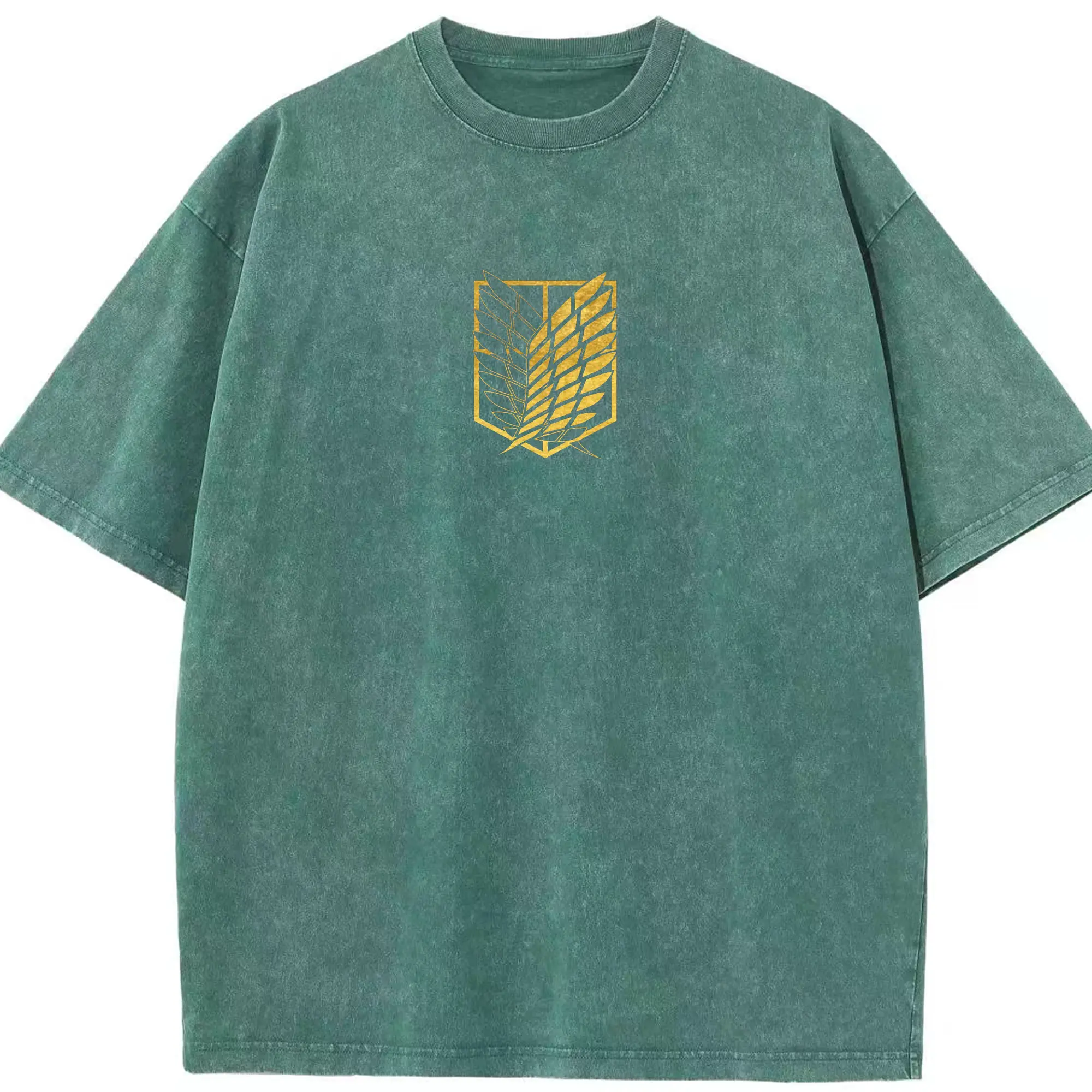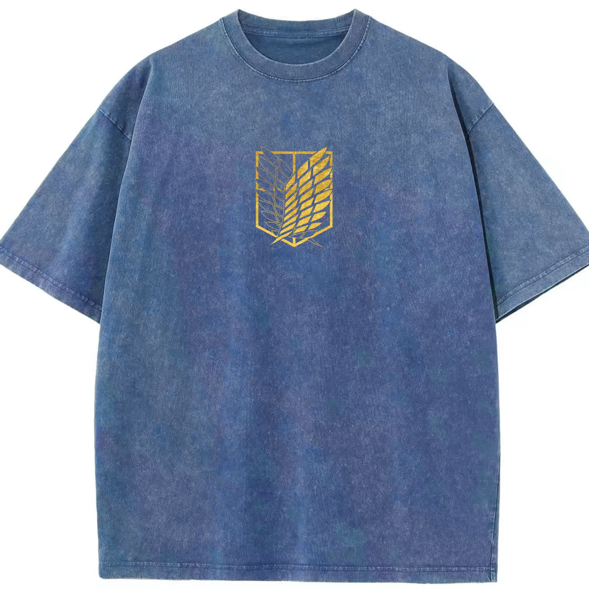 Attack on Titan Golden Wings of Freedom DIY Shirt - Washed Vintage Look 230g Cotton Oversized T-Shirt With Front Heat Transfer Print – Soft, Lightweight, Stylish Fit – Comfortable Casual Wear For Sports & Everyday Use