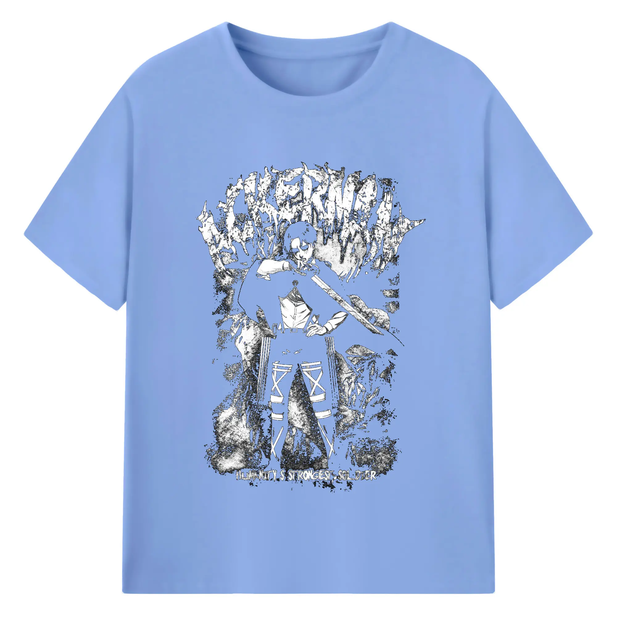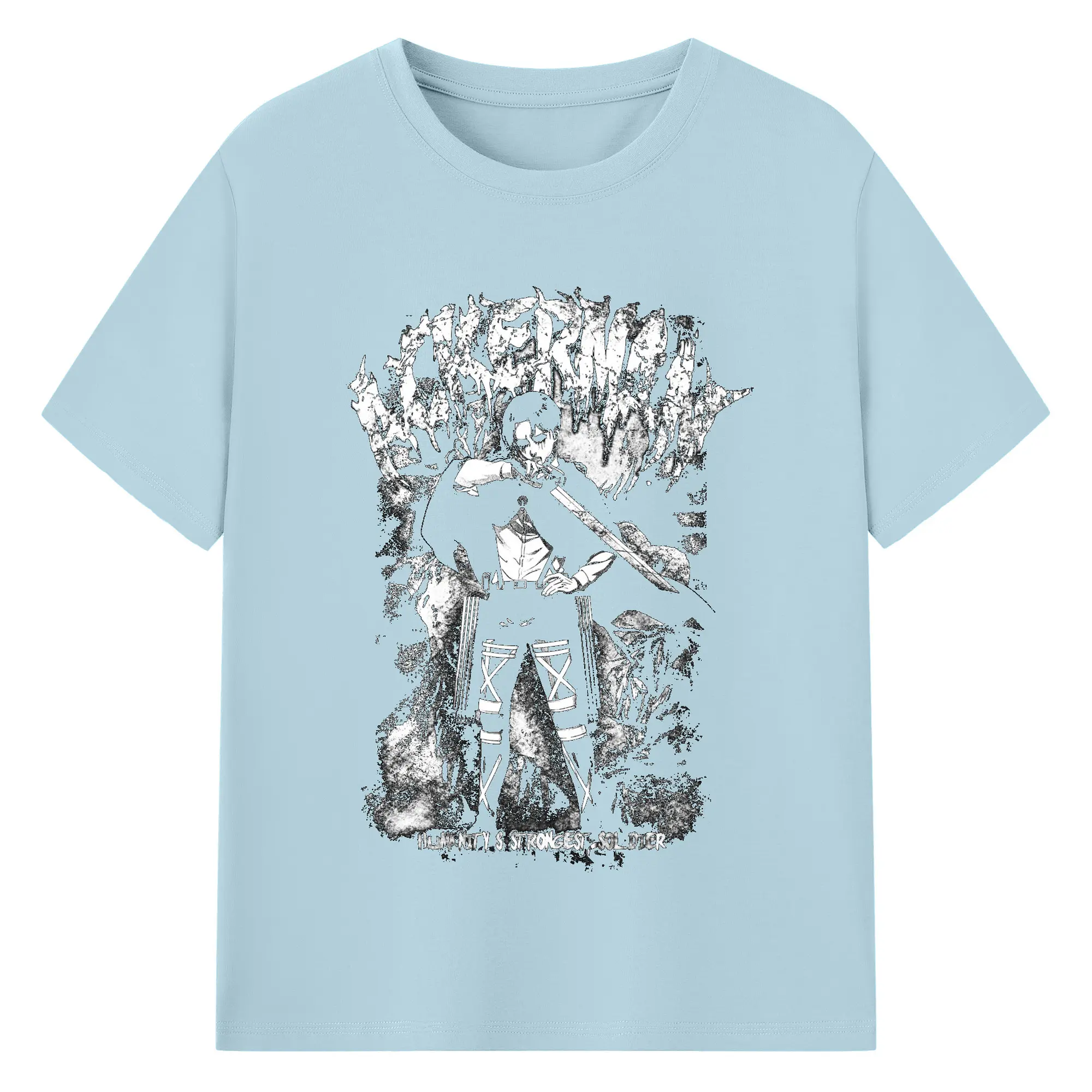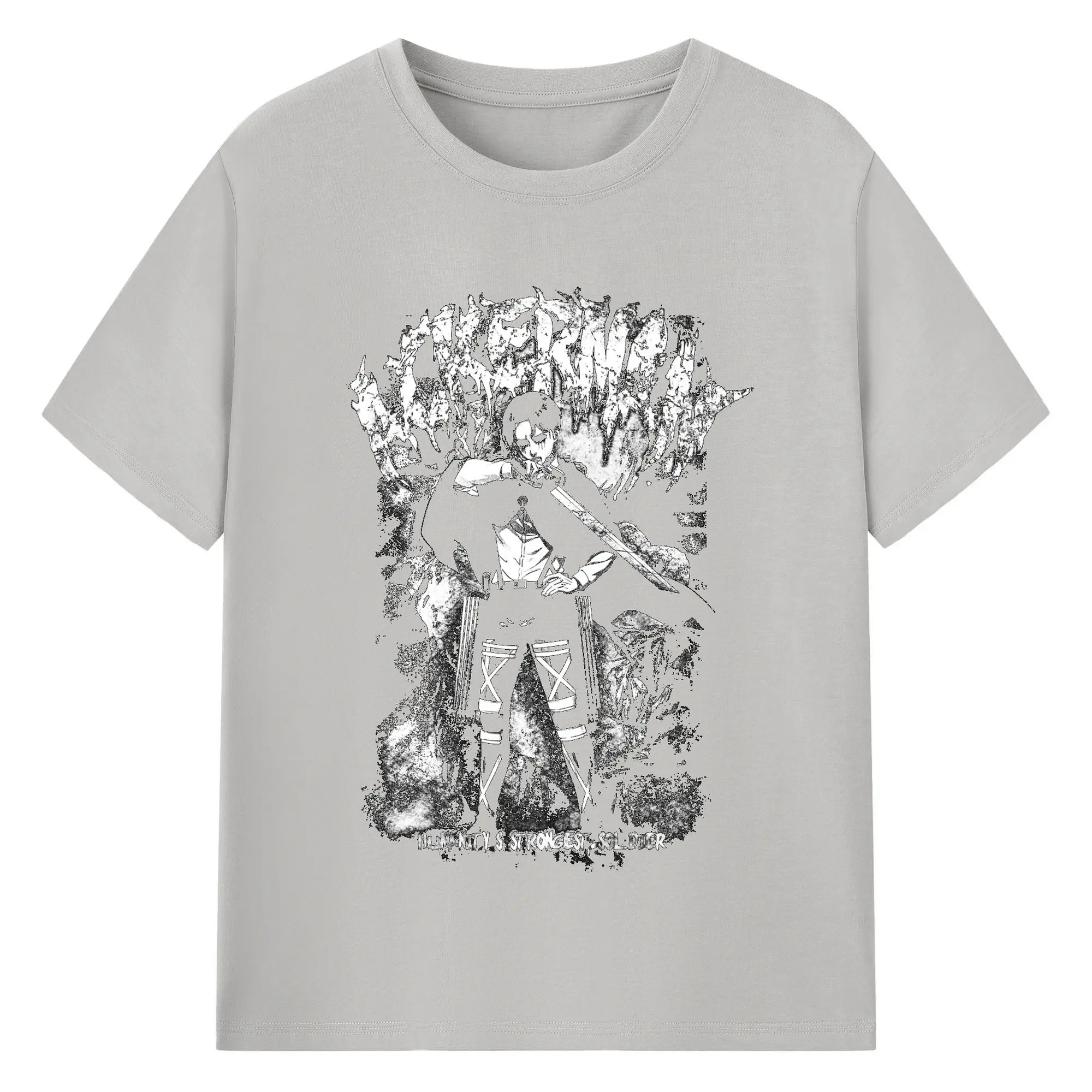 Attack on Titan Levi Ackerman Black & White DIY Shirt - 180g Cotton T-Shirt With Front Heat Transfer Print – Soft, Lightweight, Fitted Design – Comfortable Casual Wear For Sports & Everyday Use