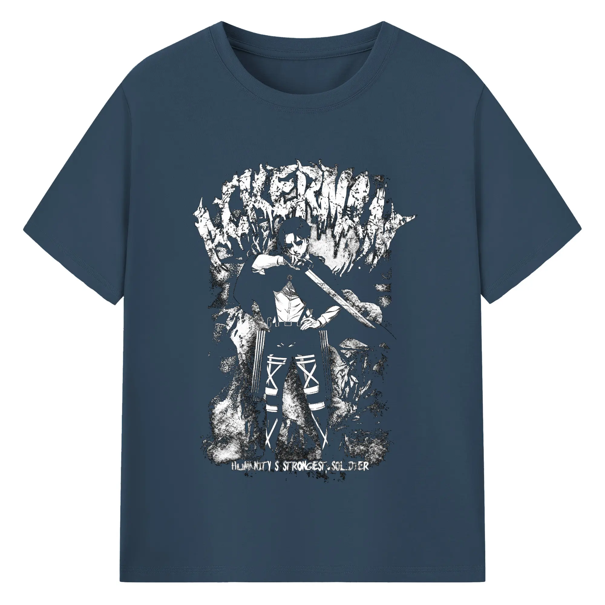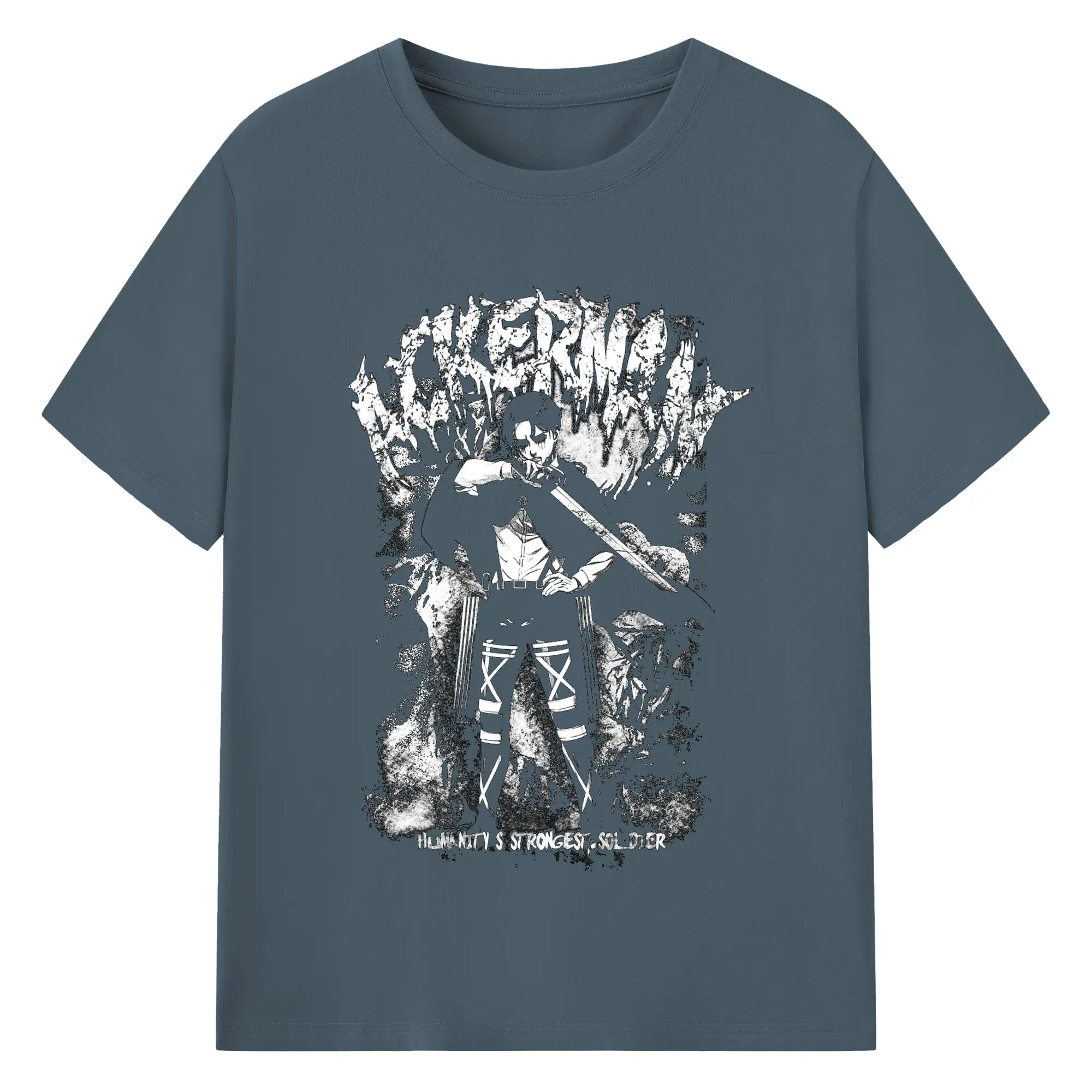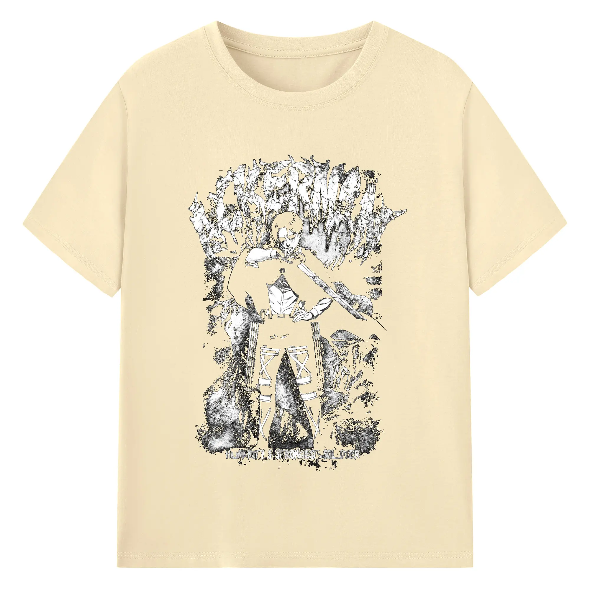 Attack on Titan Levi Ackerman Black & White DIY Shirt - 180g Cotton T-Shirt With Front Heat Transfer Print – Soft, Lightweight, Fitted Design – Comfortable Casual Wear For Sports & Everyday Use