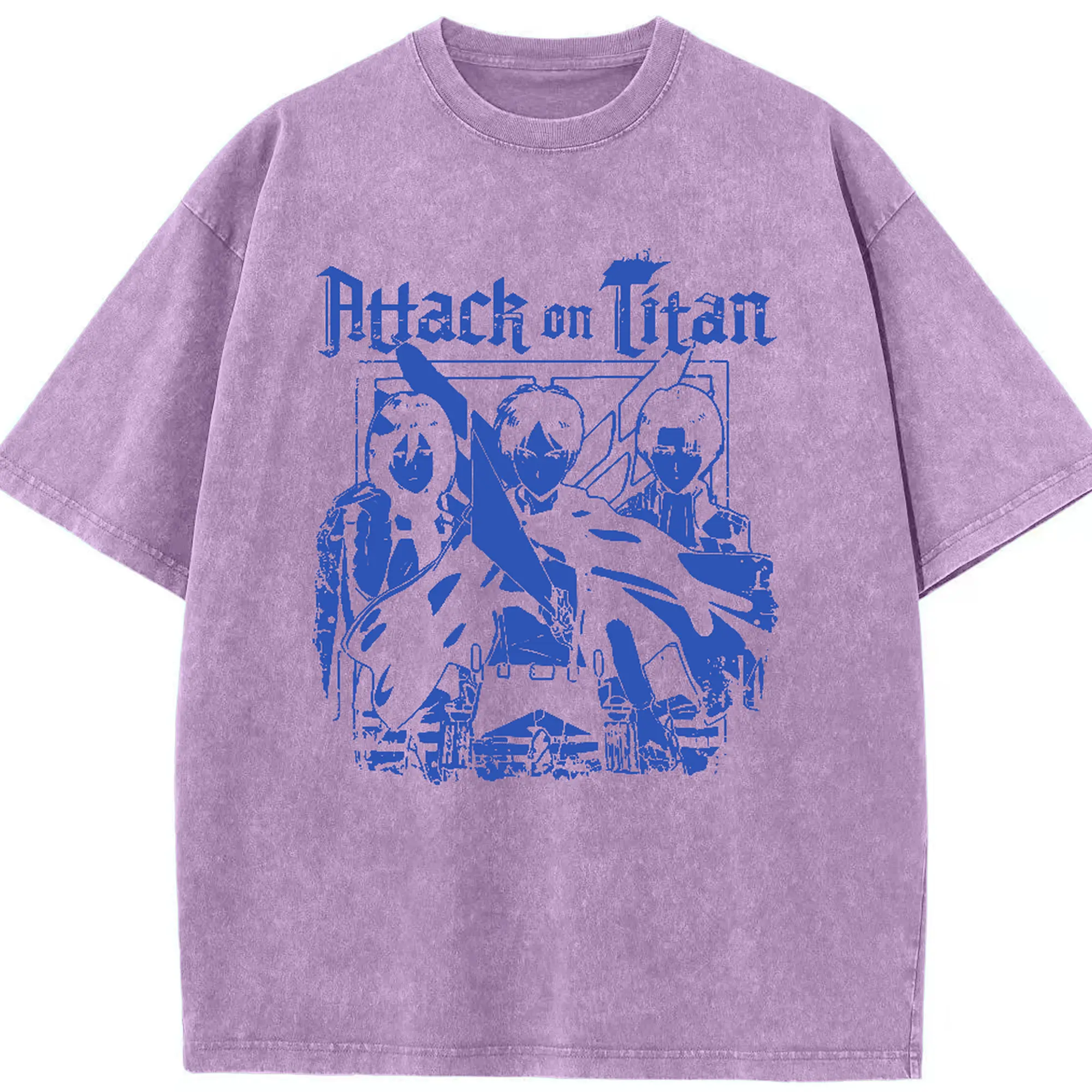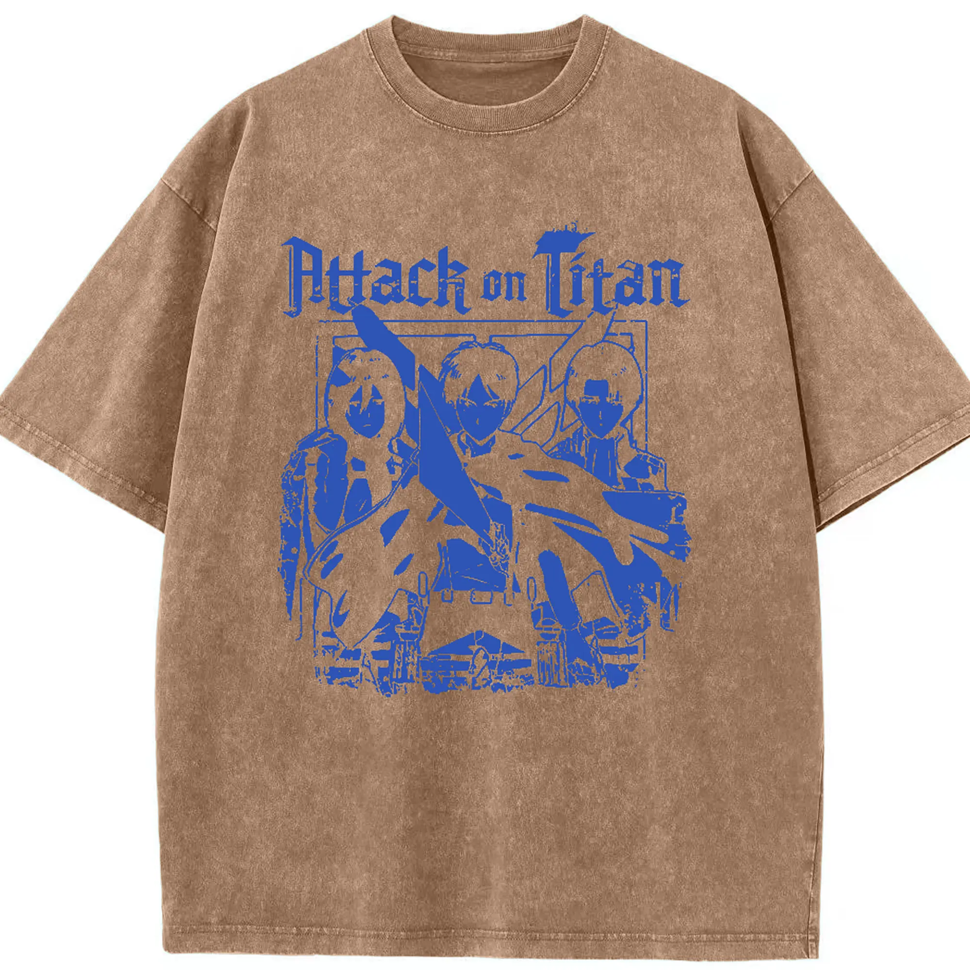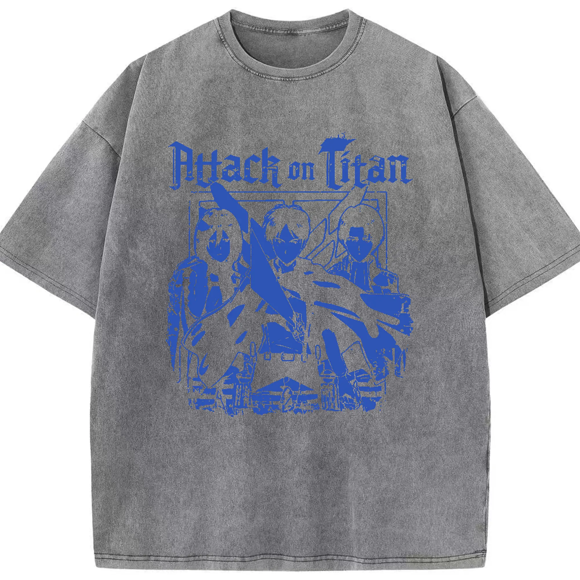 Attack on Titan Retro Group Characters DIY Shirt - Washed Vintage Look 230g Cotton Oversized T-Shirt With Front Heat Transfer Print – Soft, Lightweight, Stylish Fit – Comfortable Casual Wear For Sports & Everyday Use