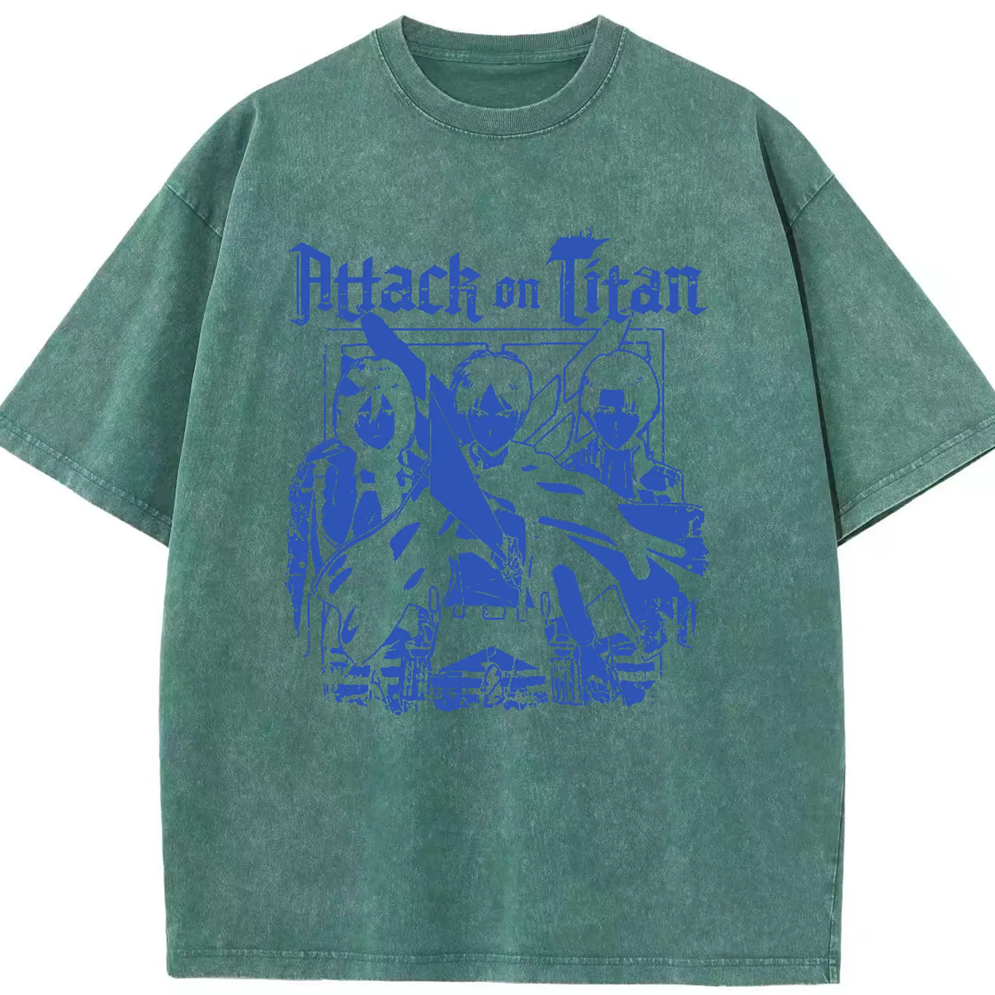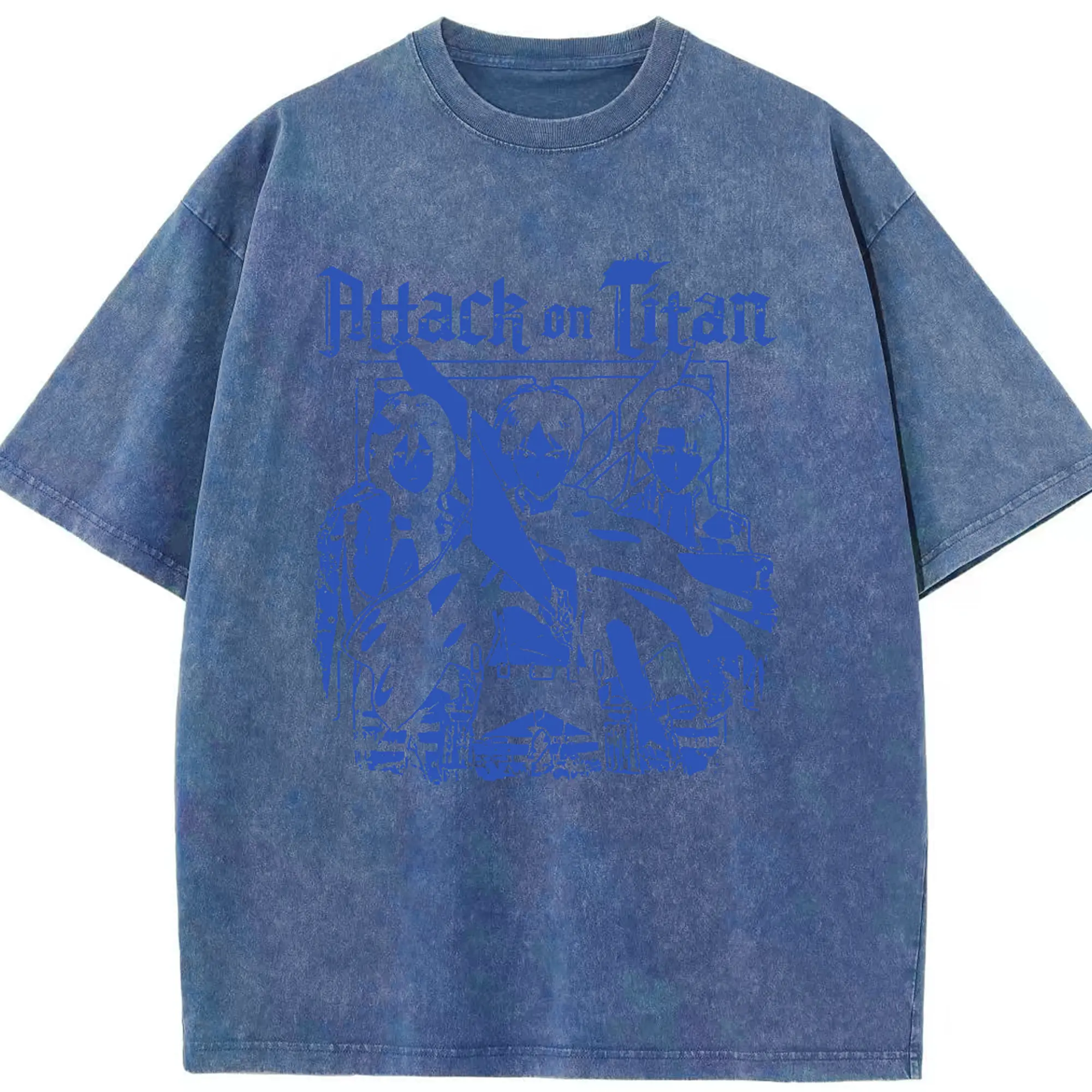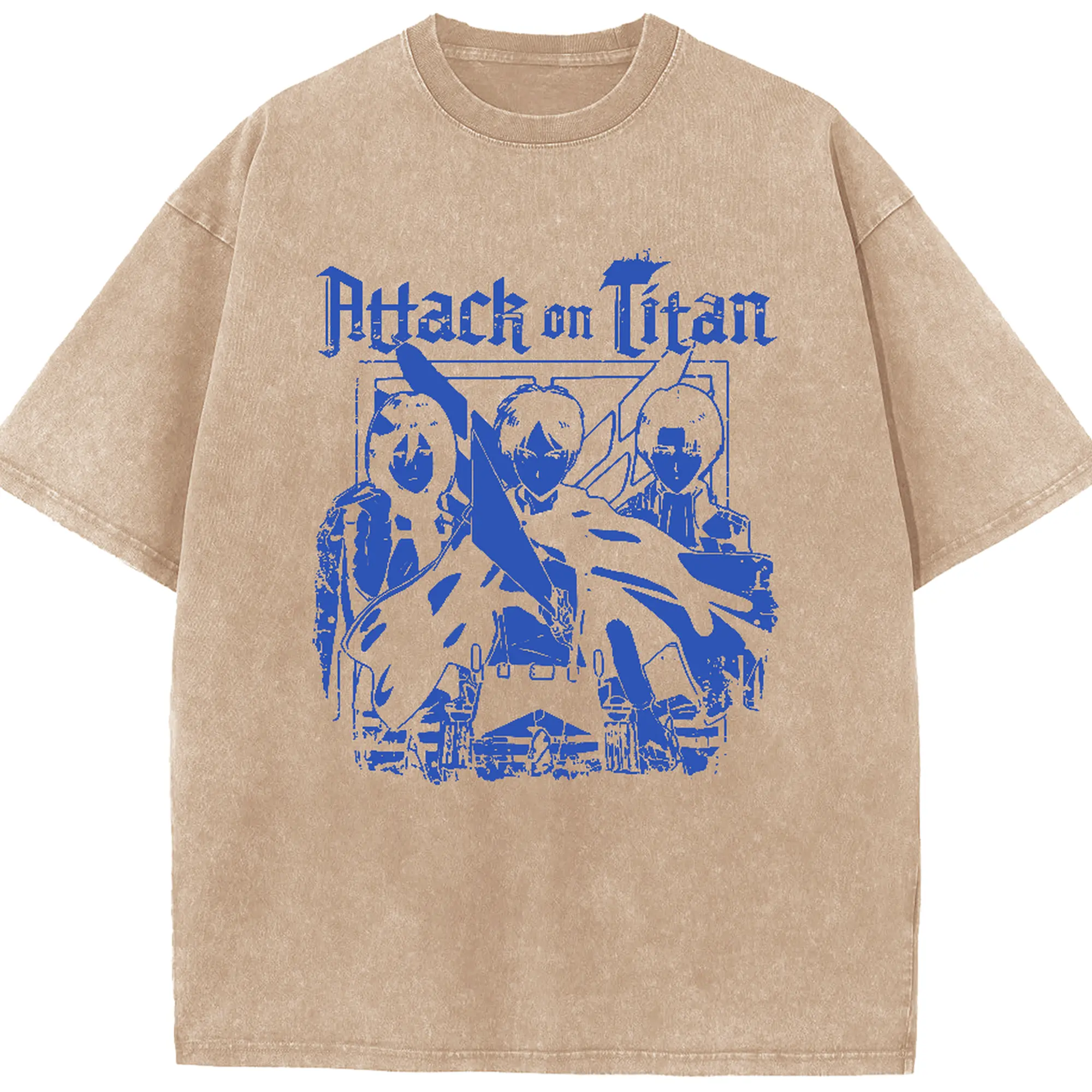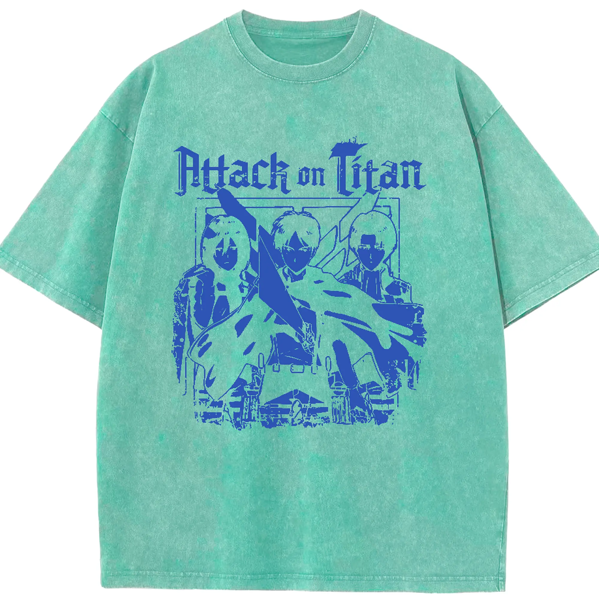 Attack on Titan Retro Group Characters DIY Shirt - Washed Vintage Look 230g Cotton Oversized T-Shirt With Front Heat Transfer Print – Soft, Lightweight, Stylish Fit – Comfortable Casual Wear For Sports & Everyday Use