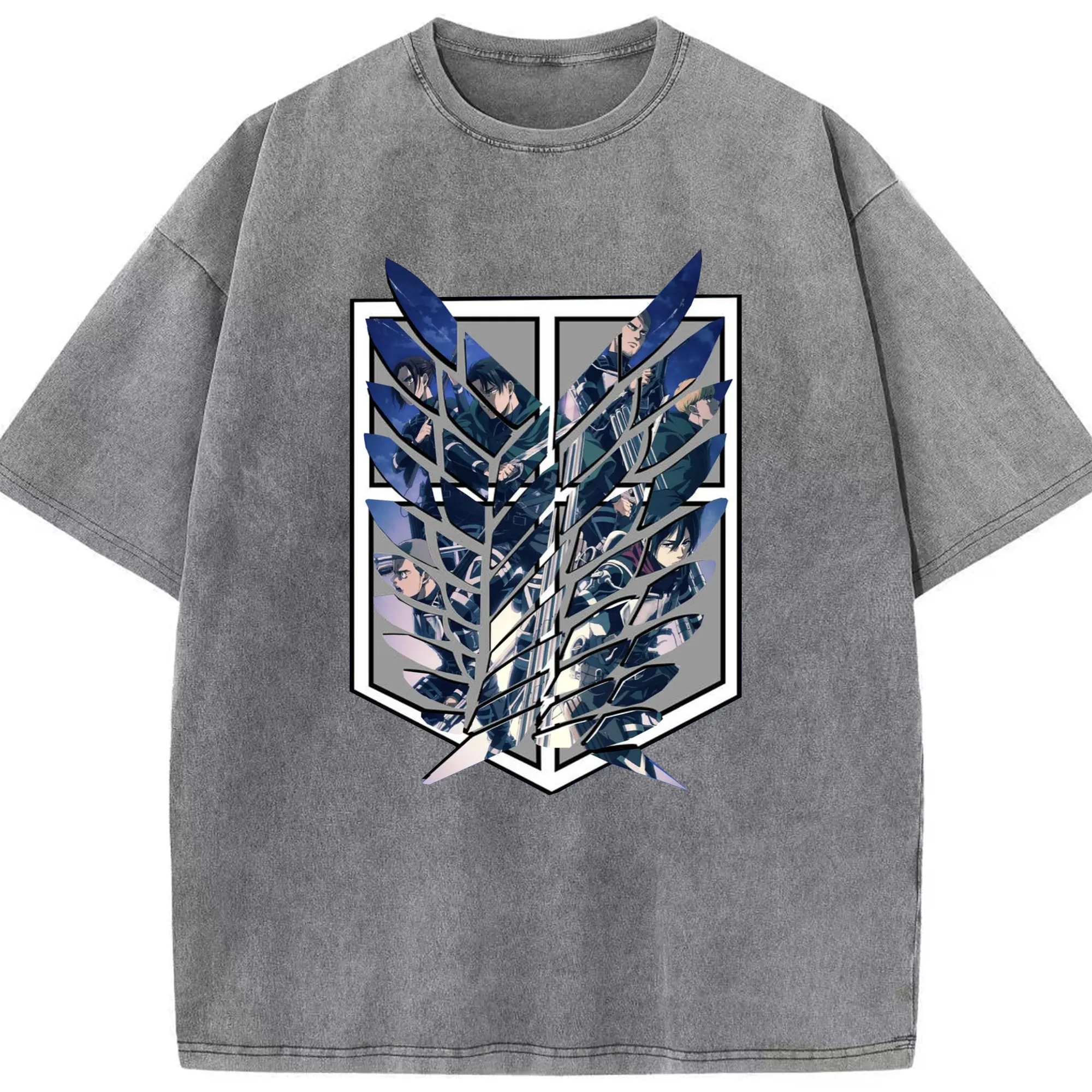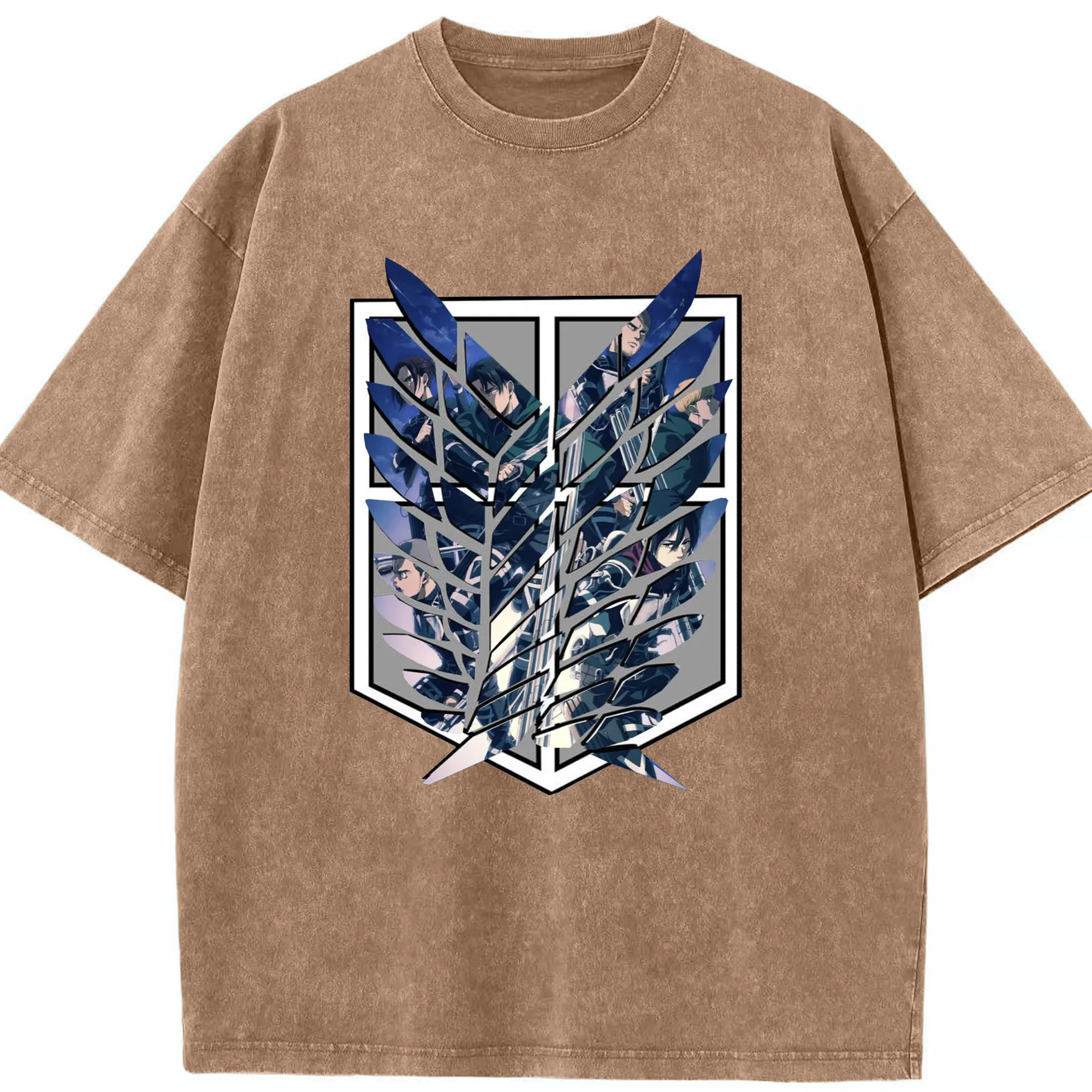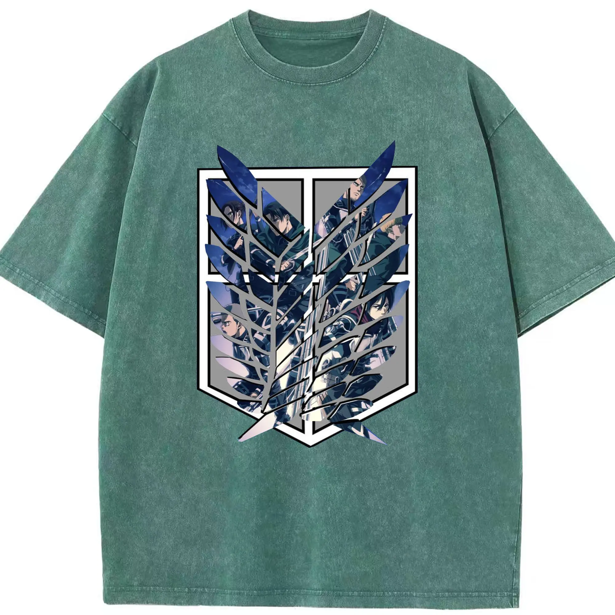 Attack on Titan Survey Corps Wings of Freedom DIY - Washed Vintage Look 230g Cotton Oversized T-Shirt With Front Heat Transfer Print – Soft, Lightweight, Stylish Fit – Comfortable Casual Wear For Sports & Everyday Use