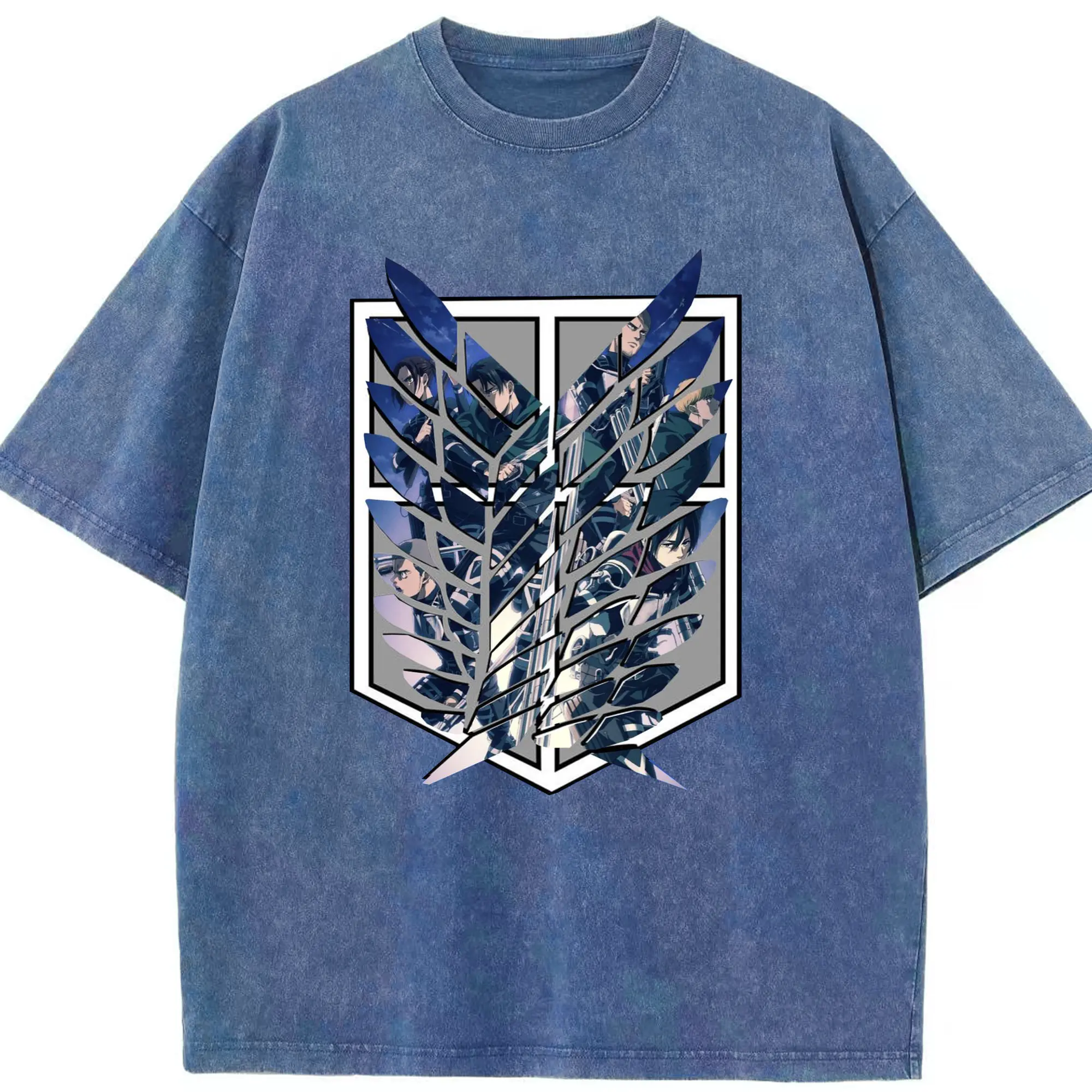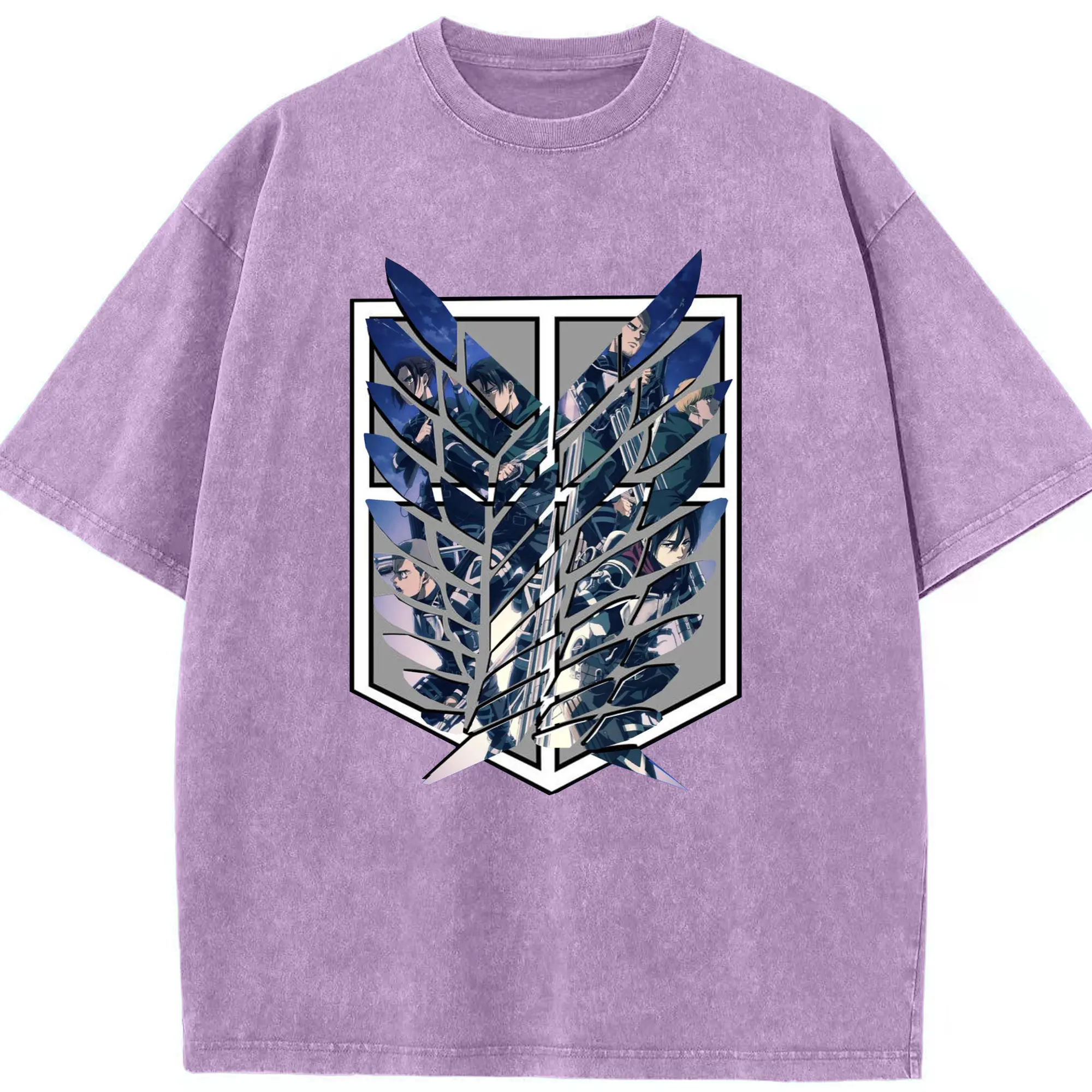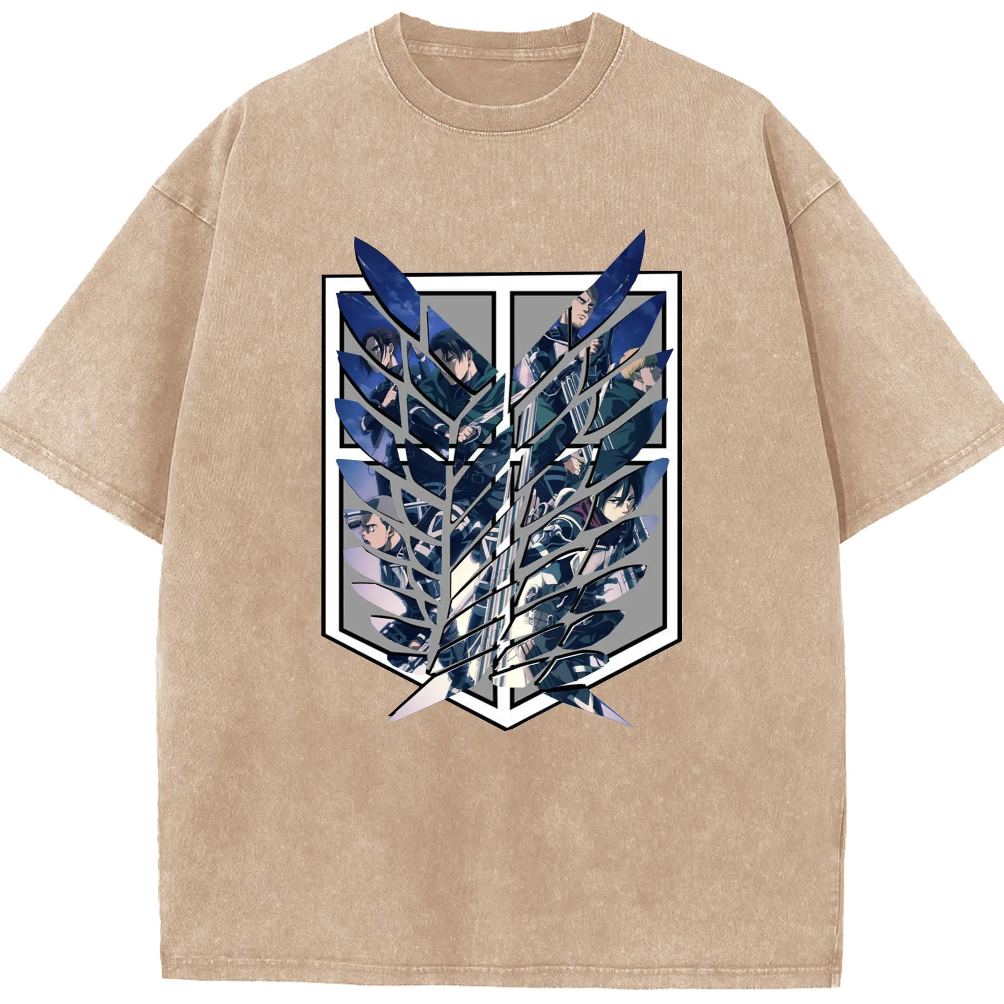 Attack on Titan Survey Corps Wings of Freedom DIY - Washed Vintage Look 230g Cotton Oversized T-Shirt With Front Heat Transfer Print – Soft, Lightweight, Stylish Fit – Comfortable Casual Wear For Sports & Everyday Use