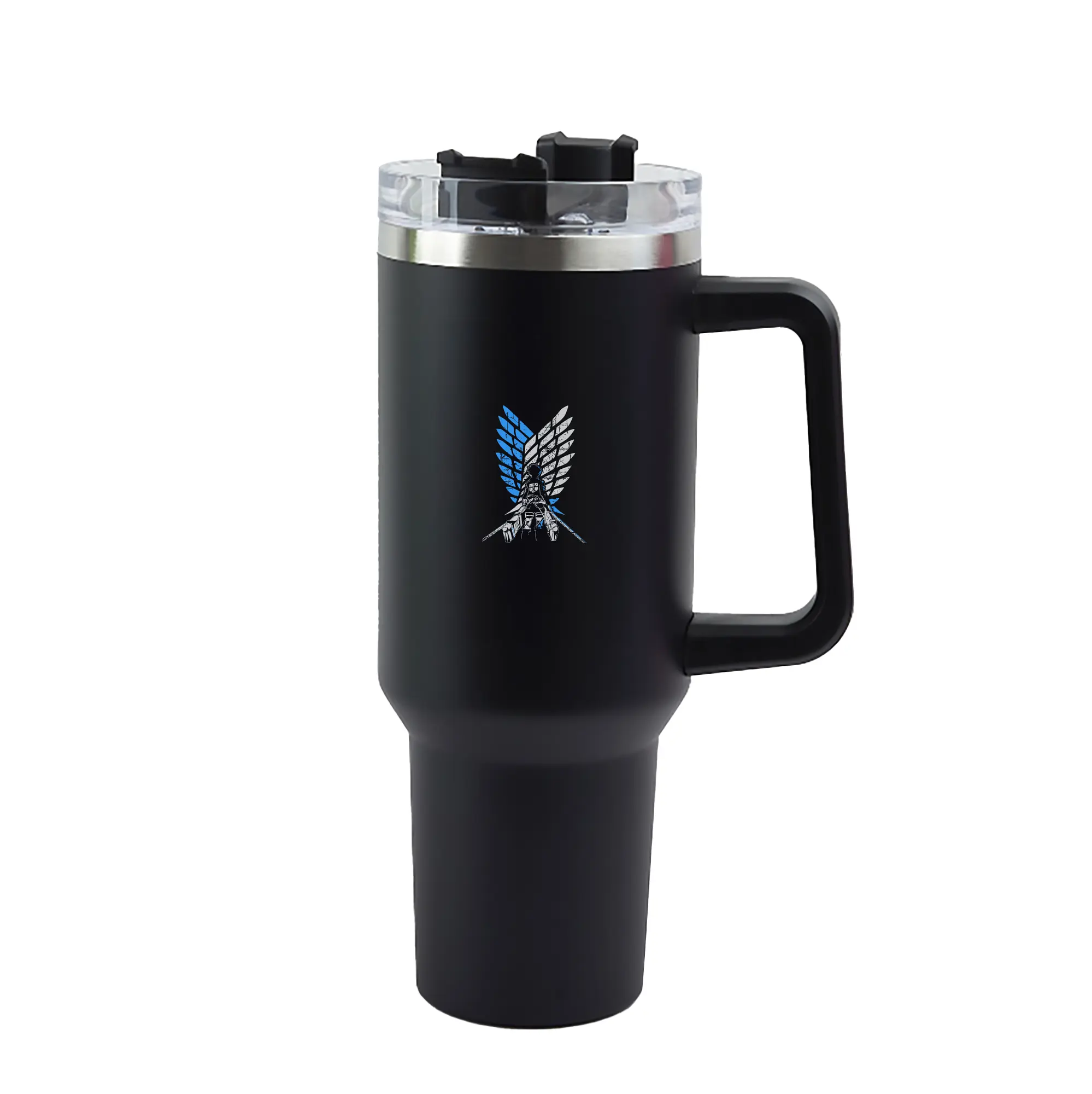 Attack on Titan Wings of Freedom with Character Silhouette DIY Shirt - 40oz Handle Car Tumbler – Durable Stainless Steel Travel Mug With UV Print – Double Wall Insulated, Fits Most Car Cup Holders