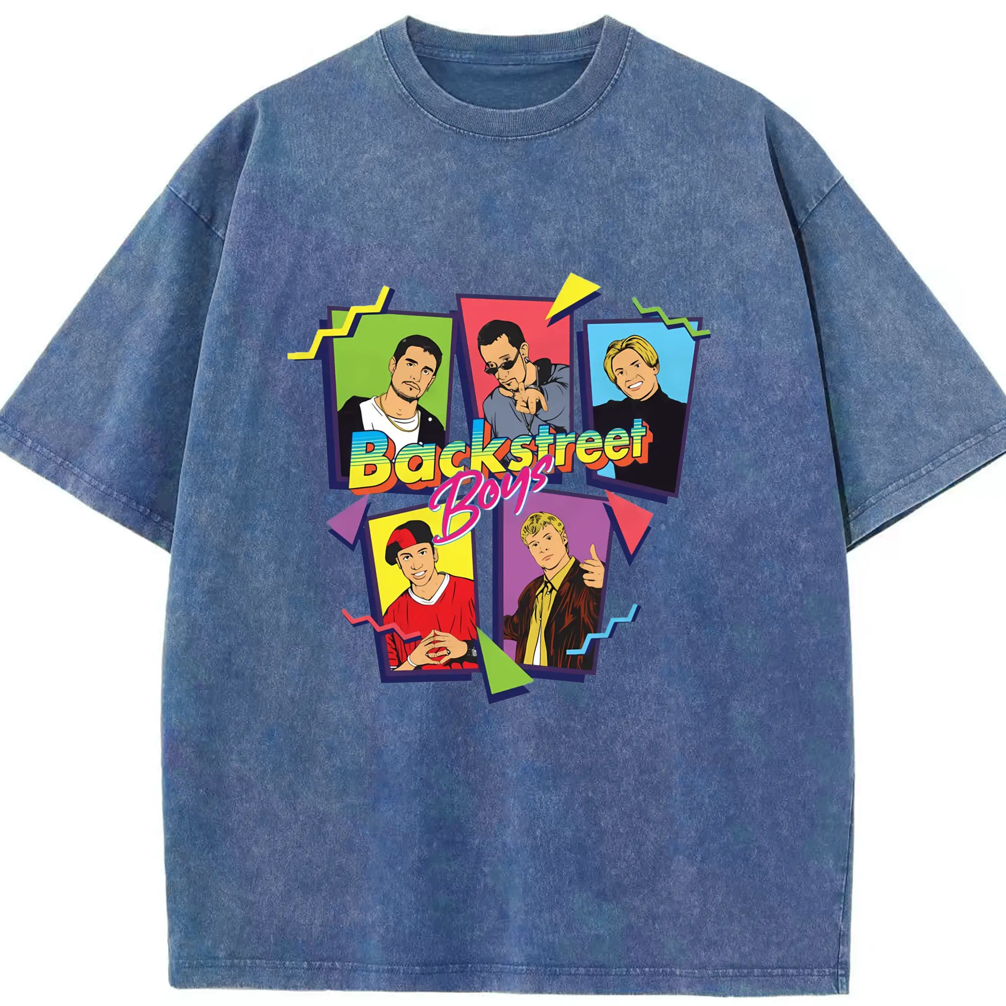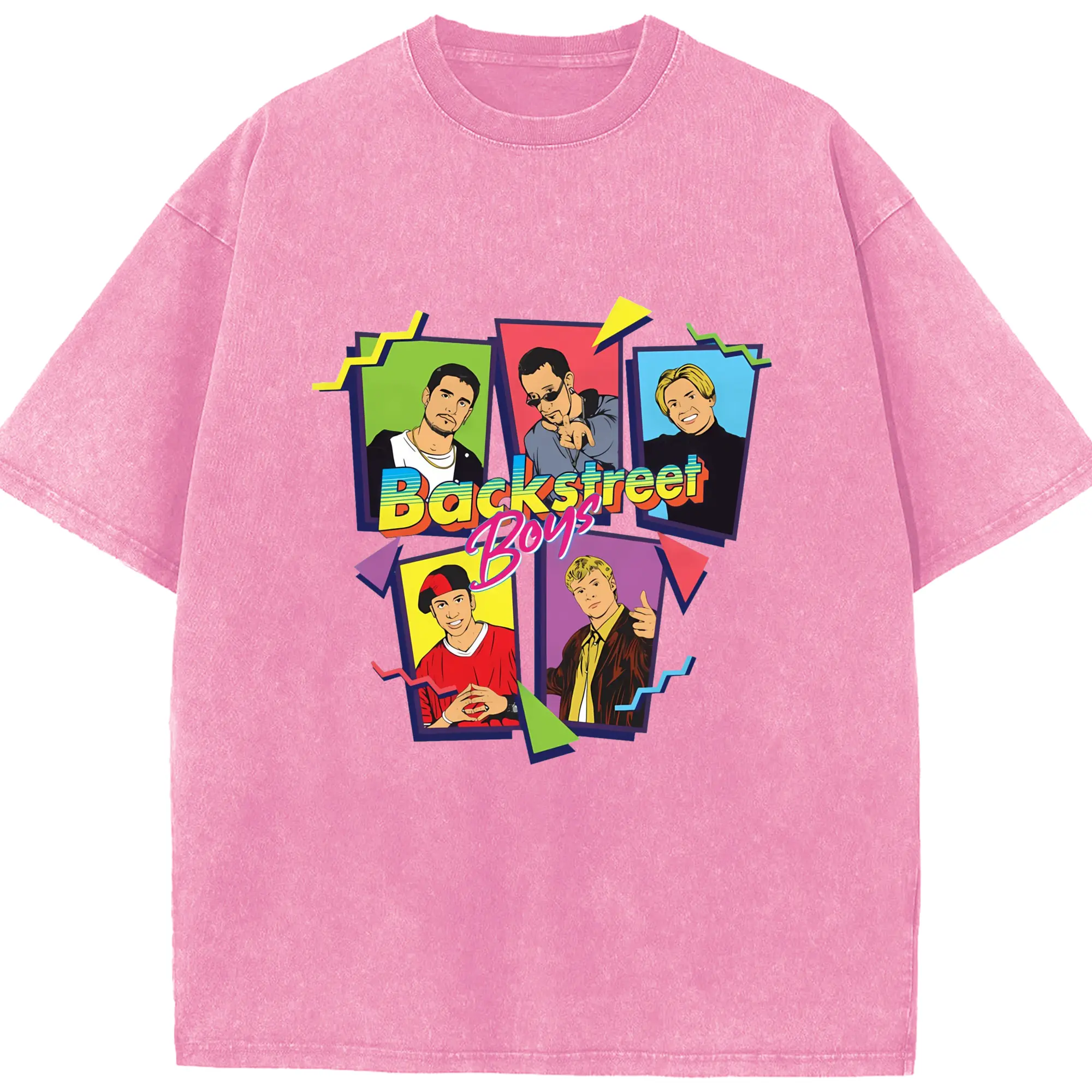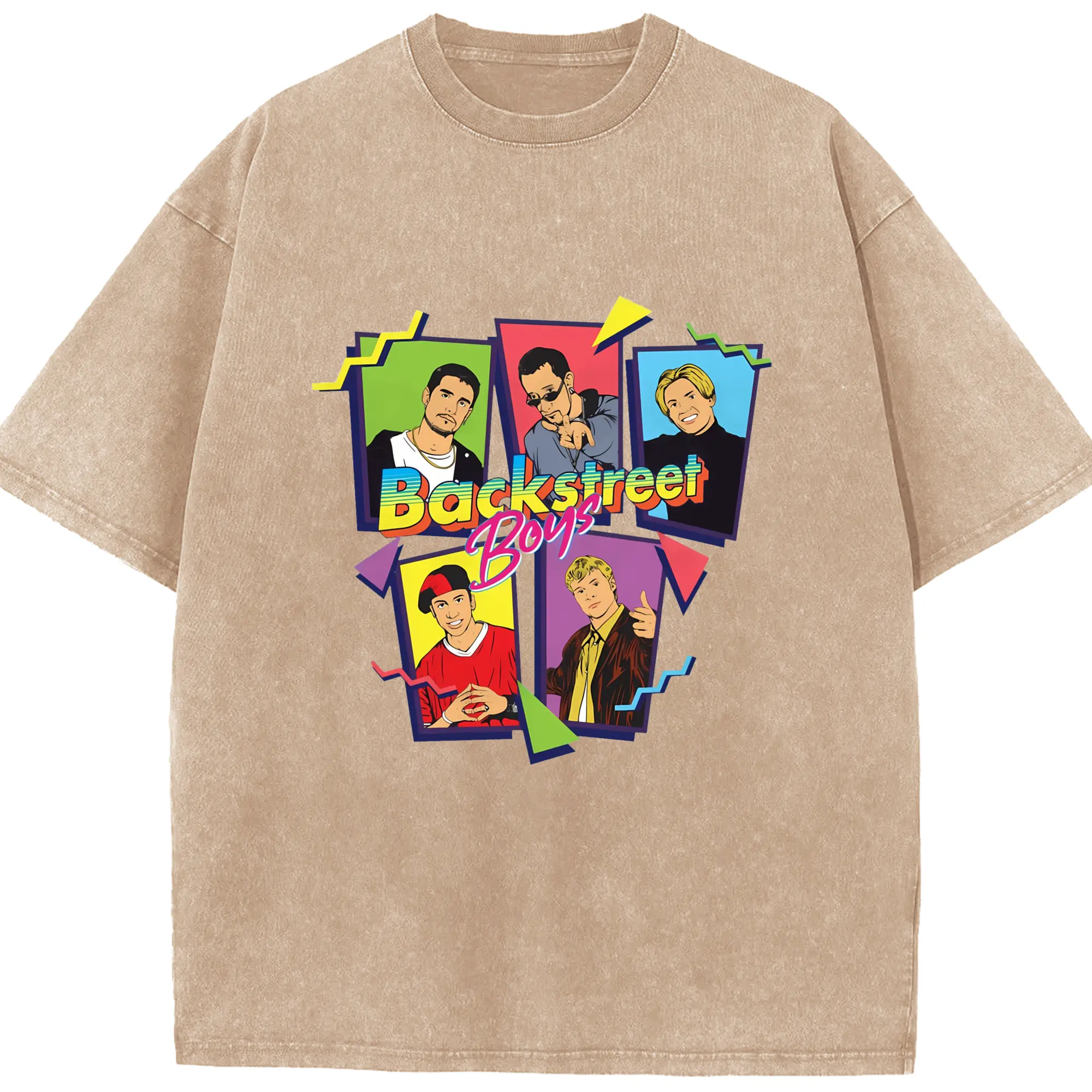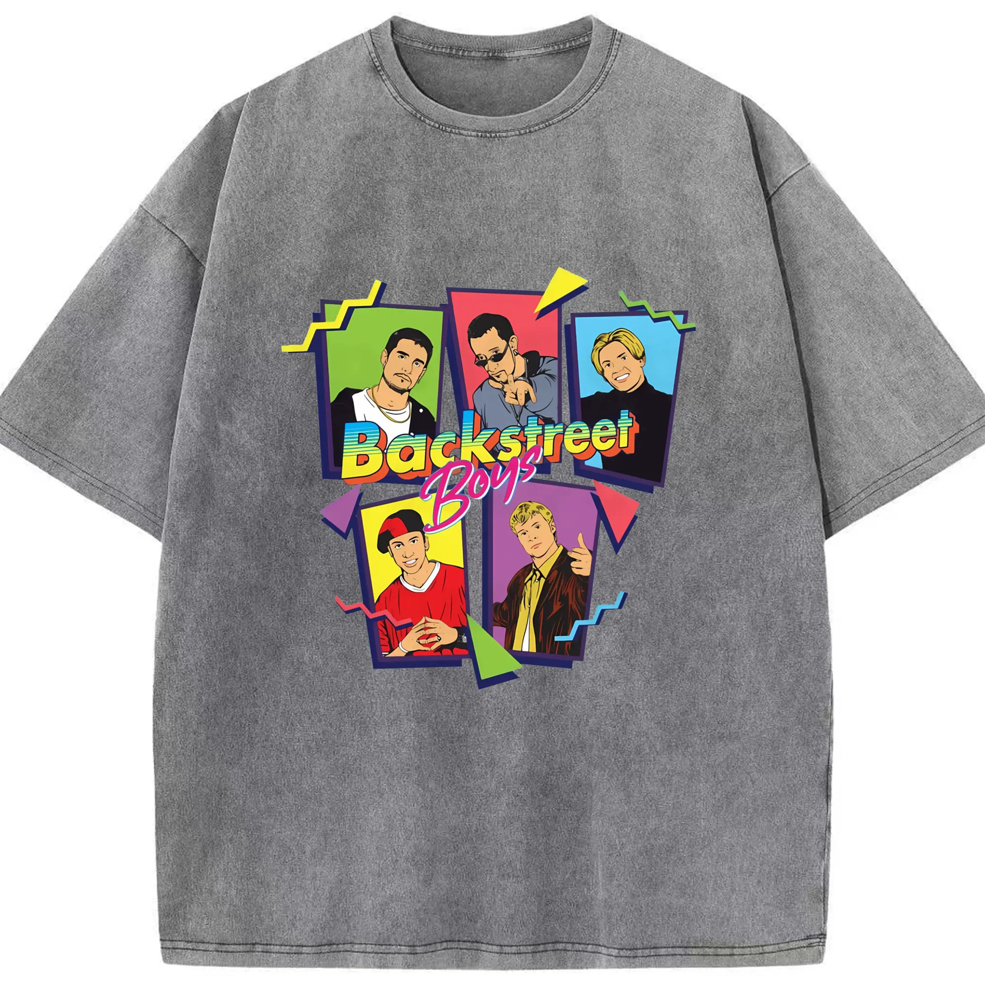 Backstreet Boys 90s Pop Retro Cartoon DIY - Washed Vintage Look 230g Cotton Oversized T-Shirt With Front Heat Transfer Print – Soft, Lightweight, Stylish Fit – Comfortable Casual Wear For Sports & Everyday Use