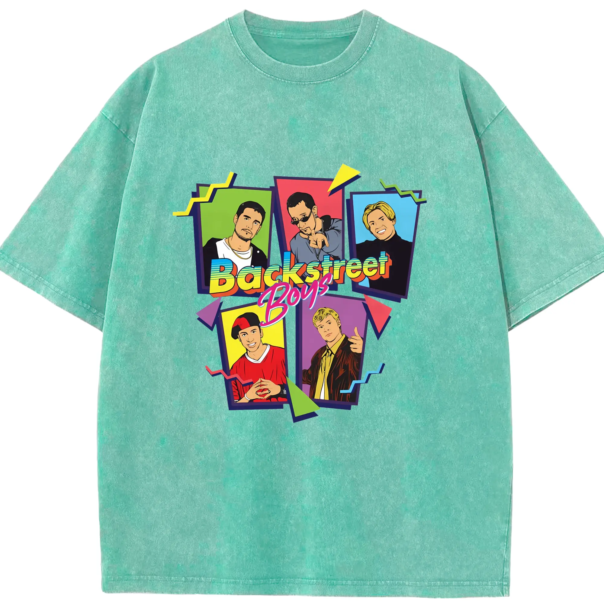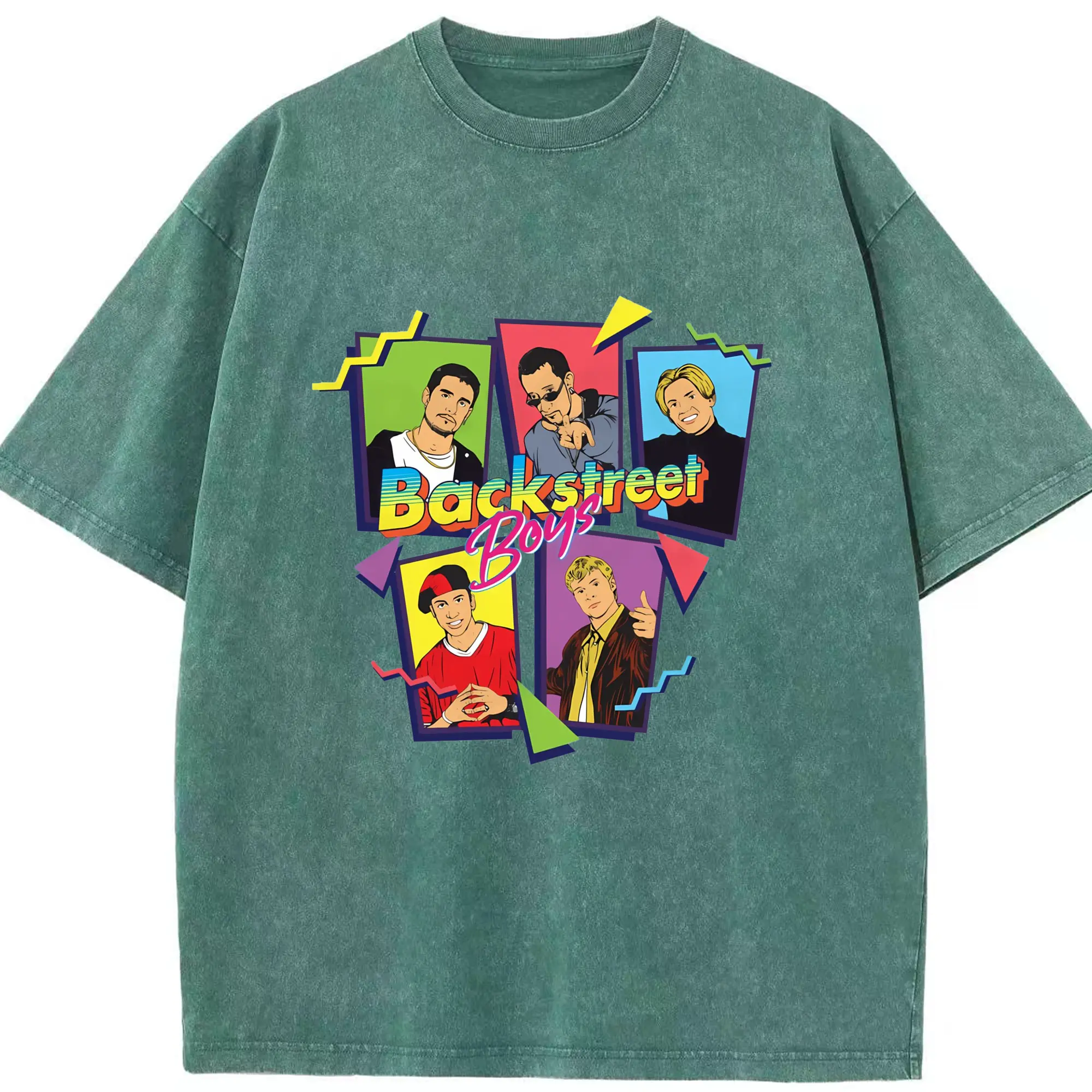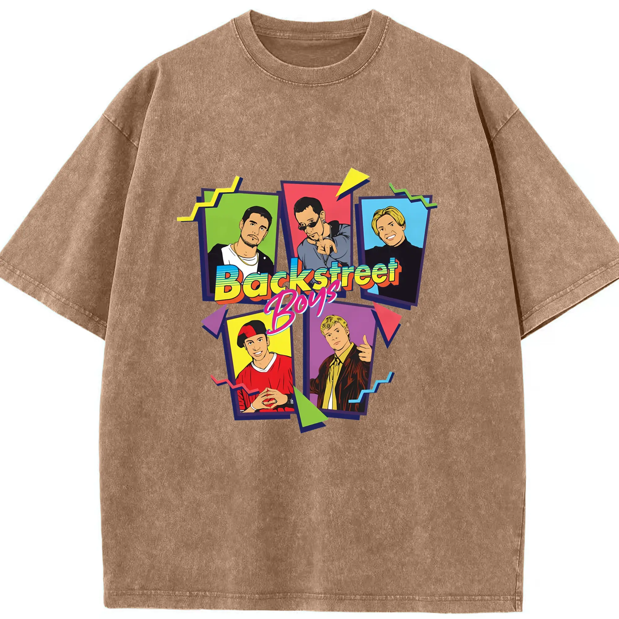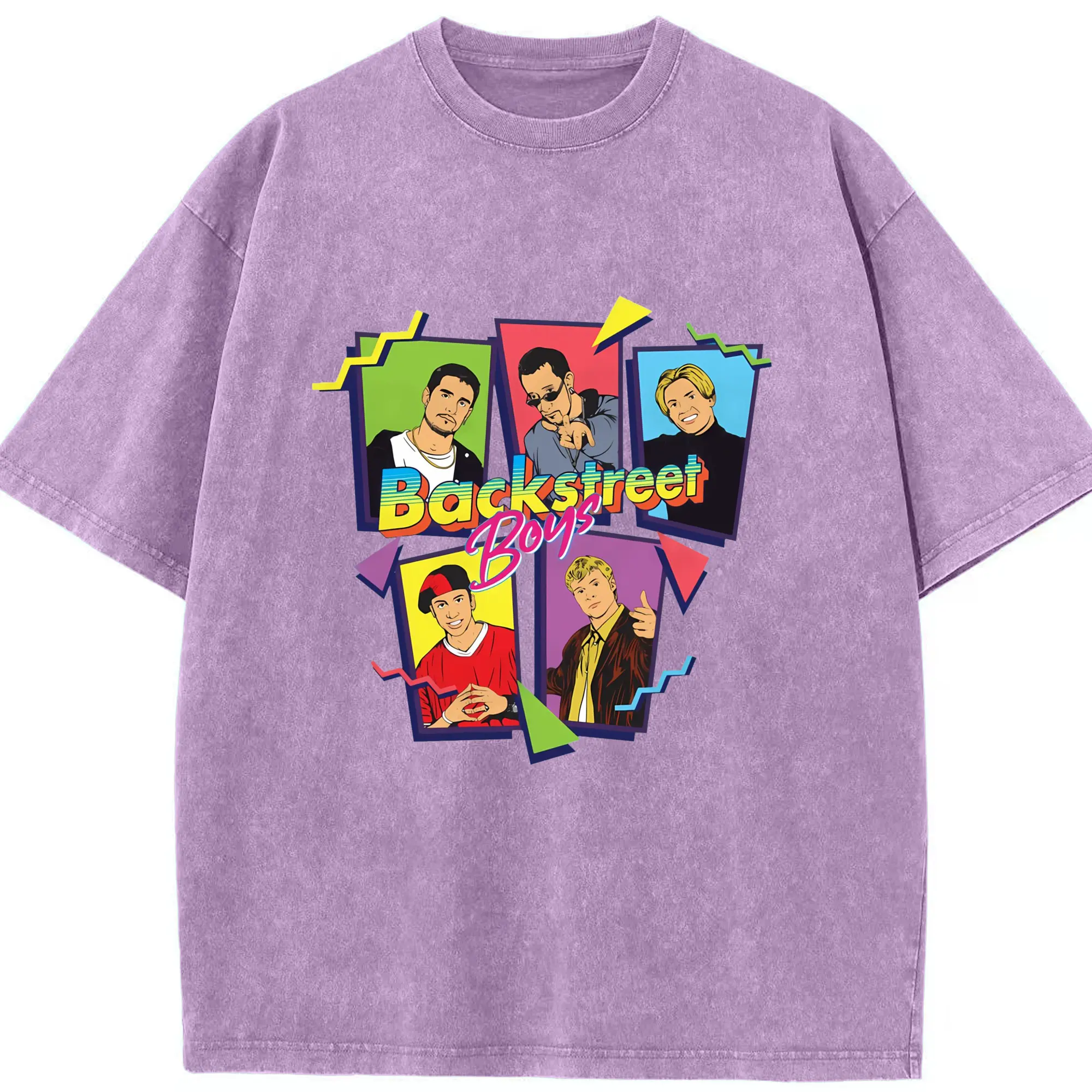 Backstreet Boys 90s Pop Retro Cartoon DIY - Washed Vintage Look 230g Cotton Oversized T-Shirt With Front Heat Transfer Print – Soft, Lightweight, Stylish Fit – Comfortable Casual Wear For Sports & Everyday Use