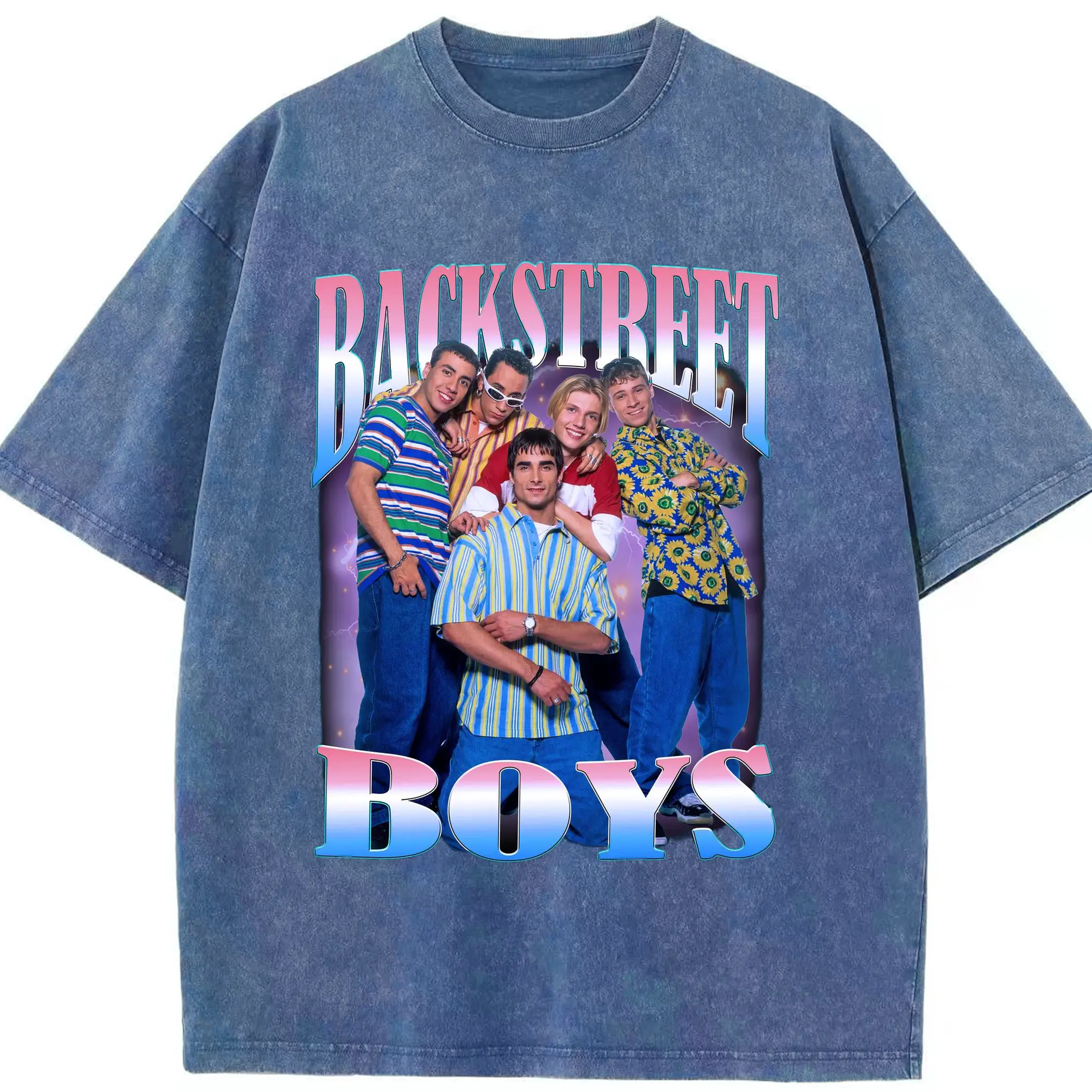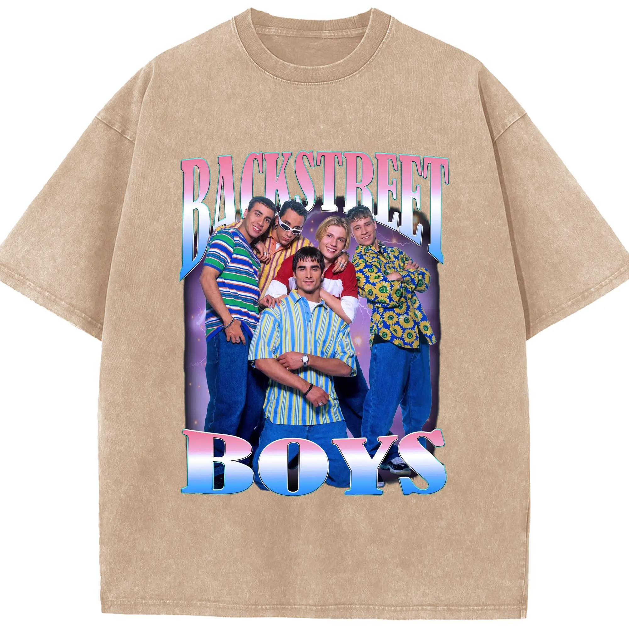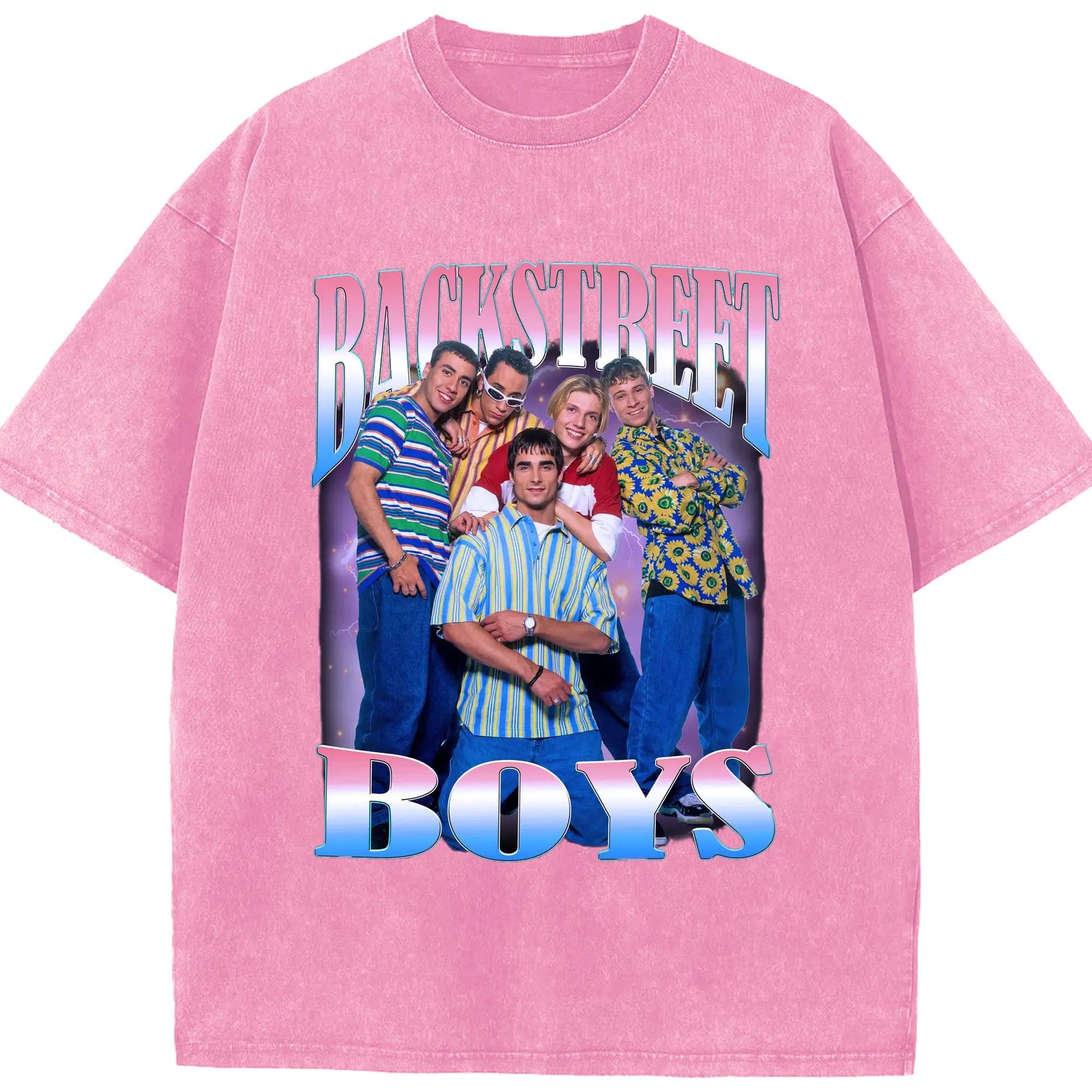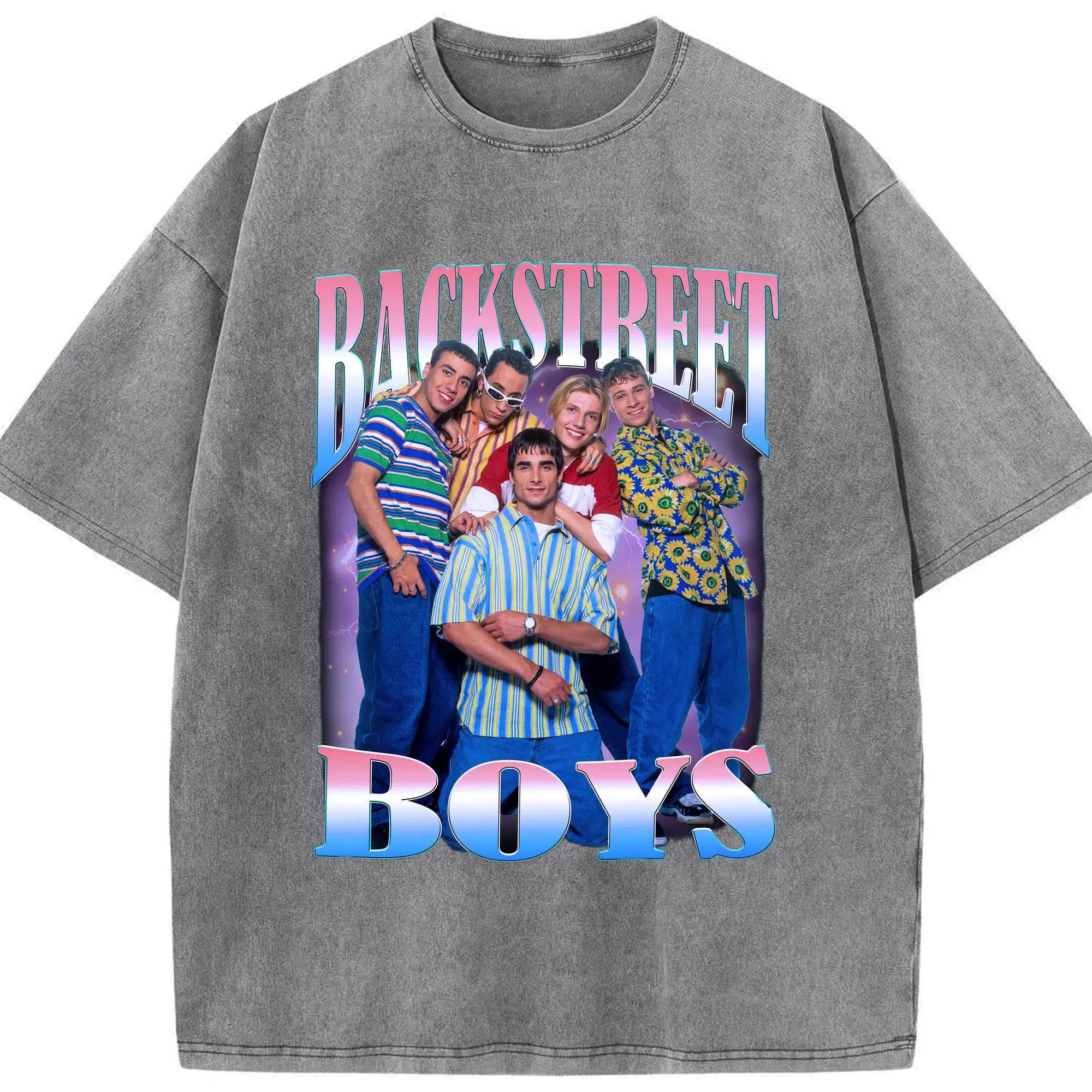 Backstreet Boys 90s Pop Retro DIY - Washed Vintage Look 230g Cotton Oversized T-Shirt With Front Heat Transfer Print – Soft, Lightweight, Stylish Fit – Comfortable Casual Wear For Sports & Everyday Use