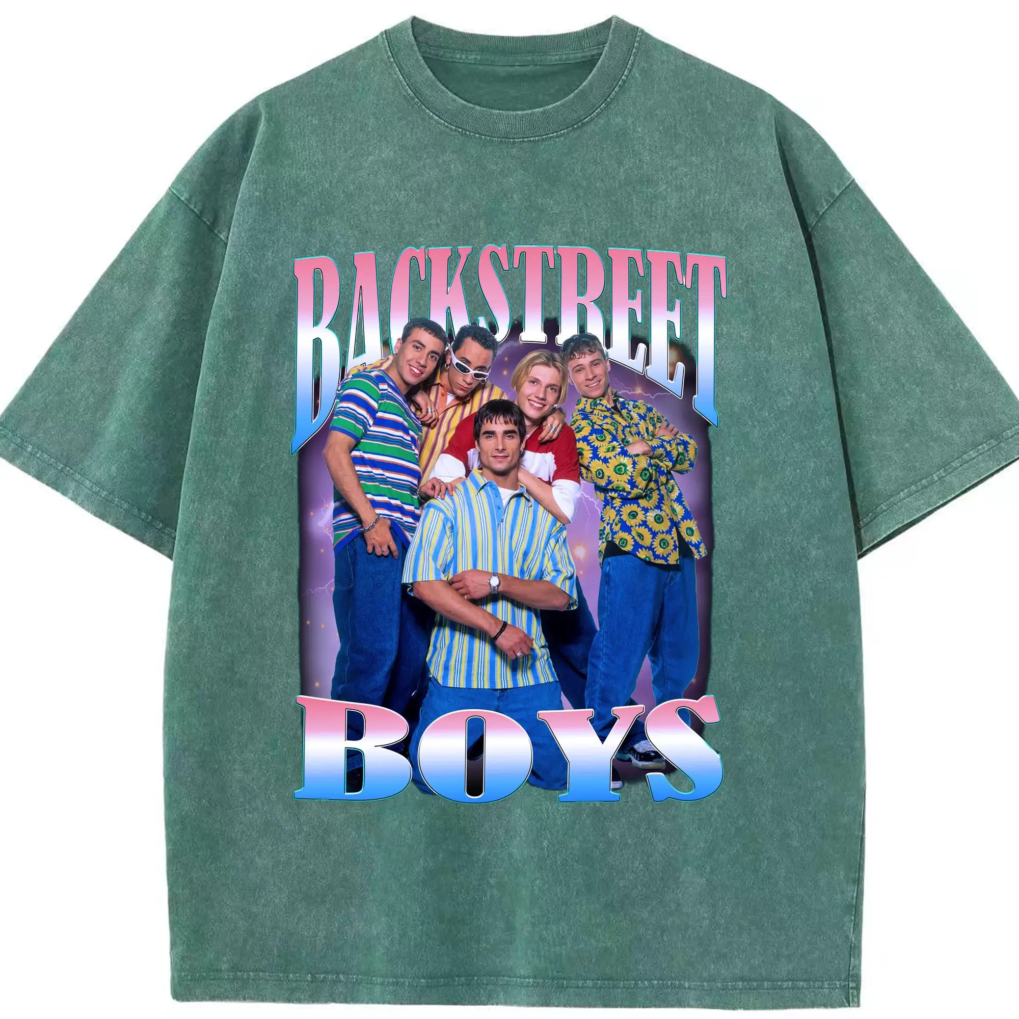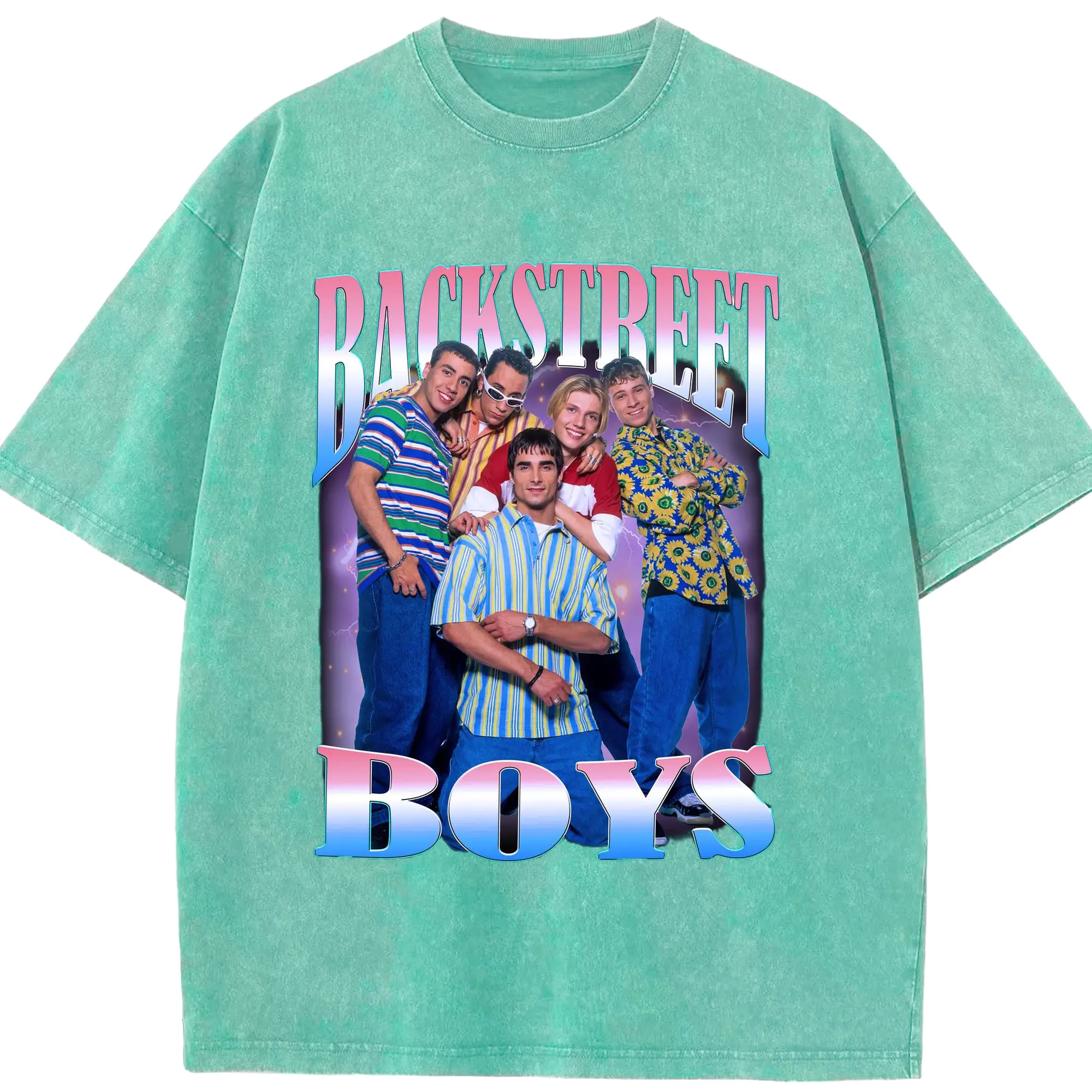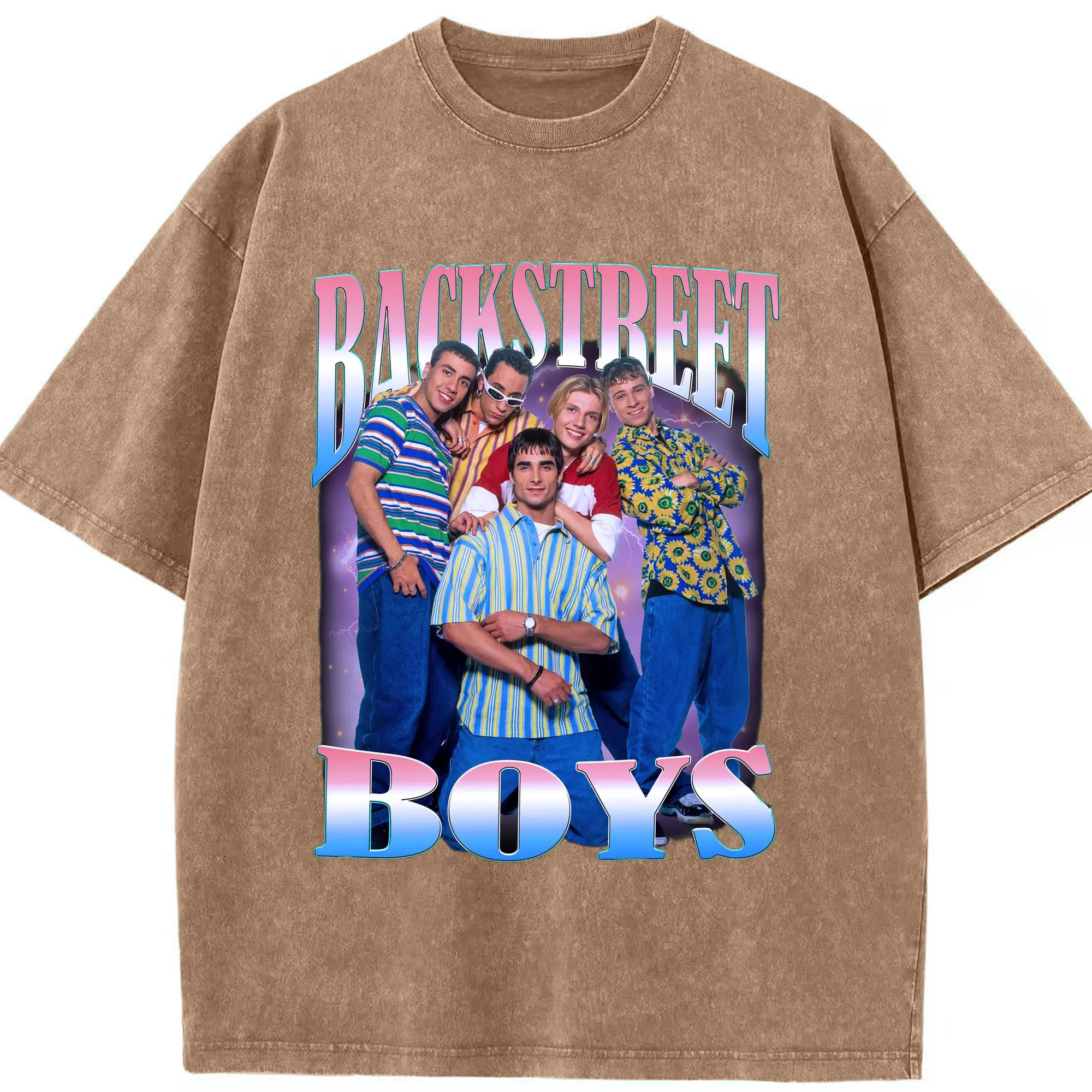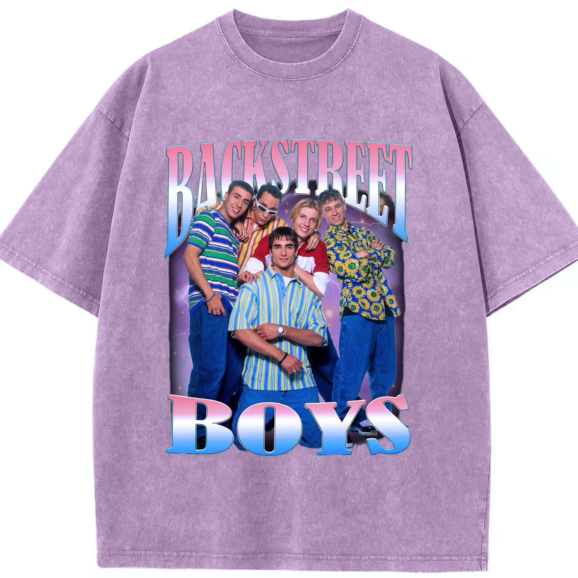 Backstreet Boys 90s Pop Retro DIY - Washed Vintage Look 230g Cotton Oversized T-Shirt With Front Heat Transfer Print – Soft, Lightweight, Stylish Fit – Comfortable Casual Wear For Sports & Everyday Use
