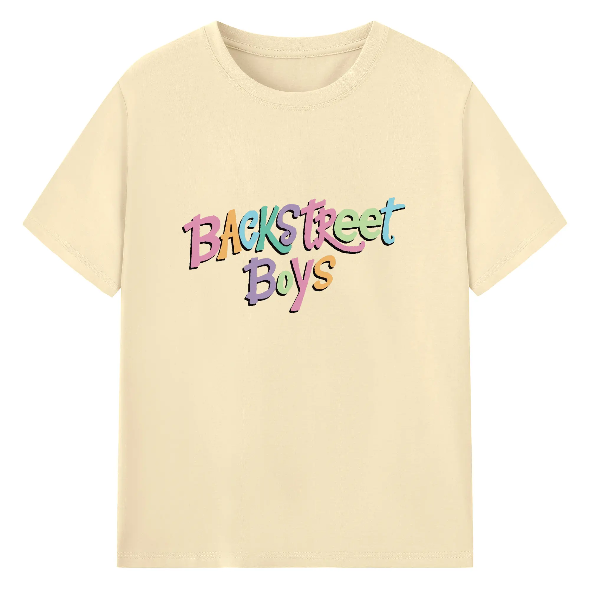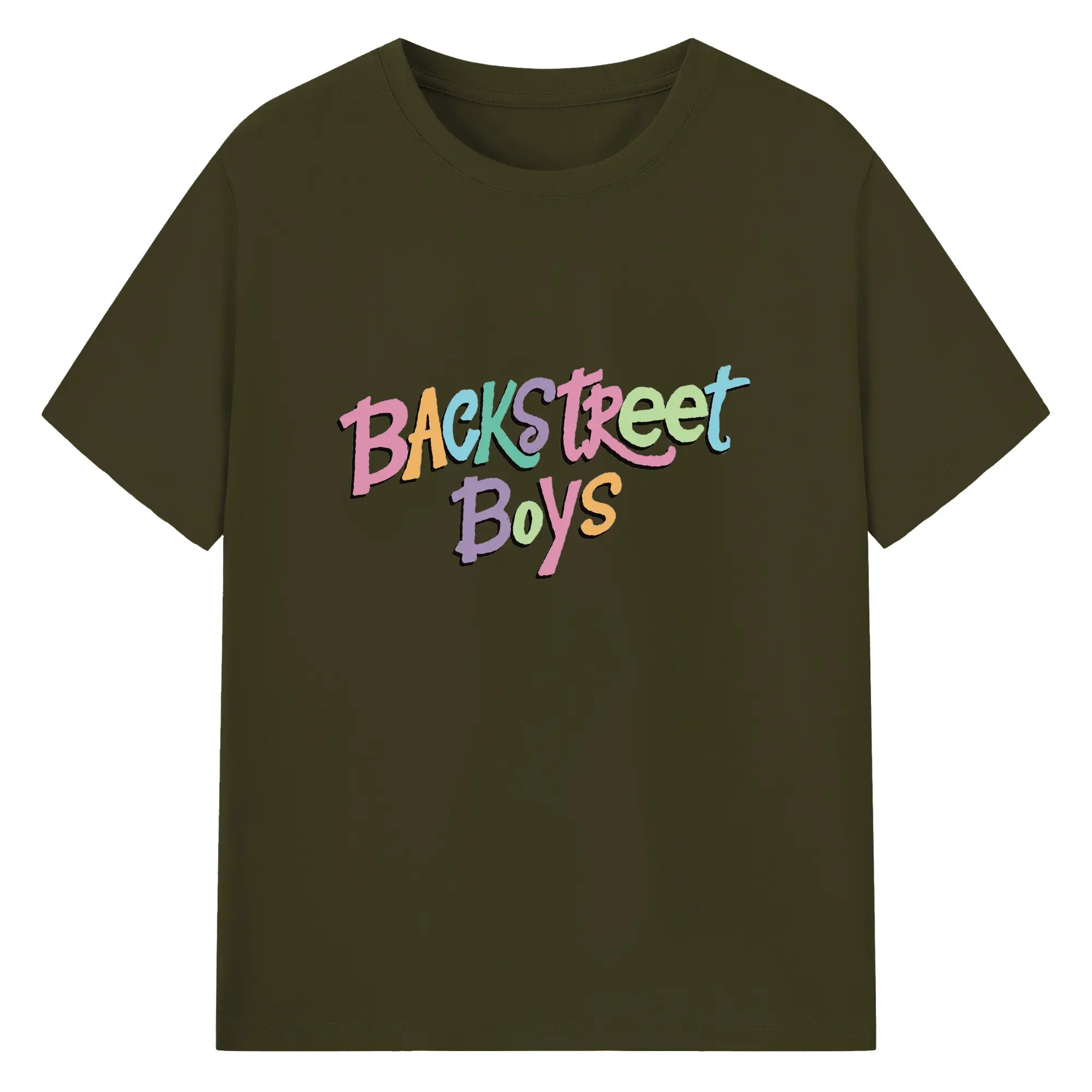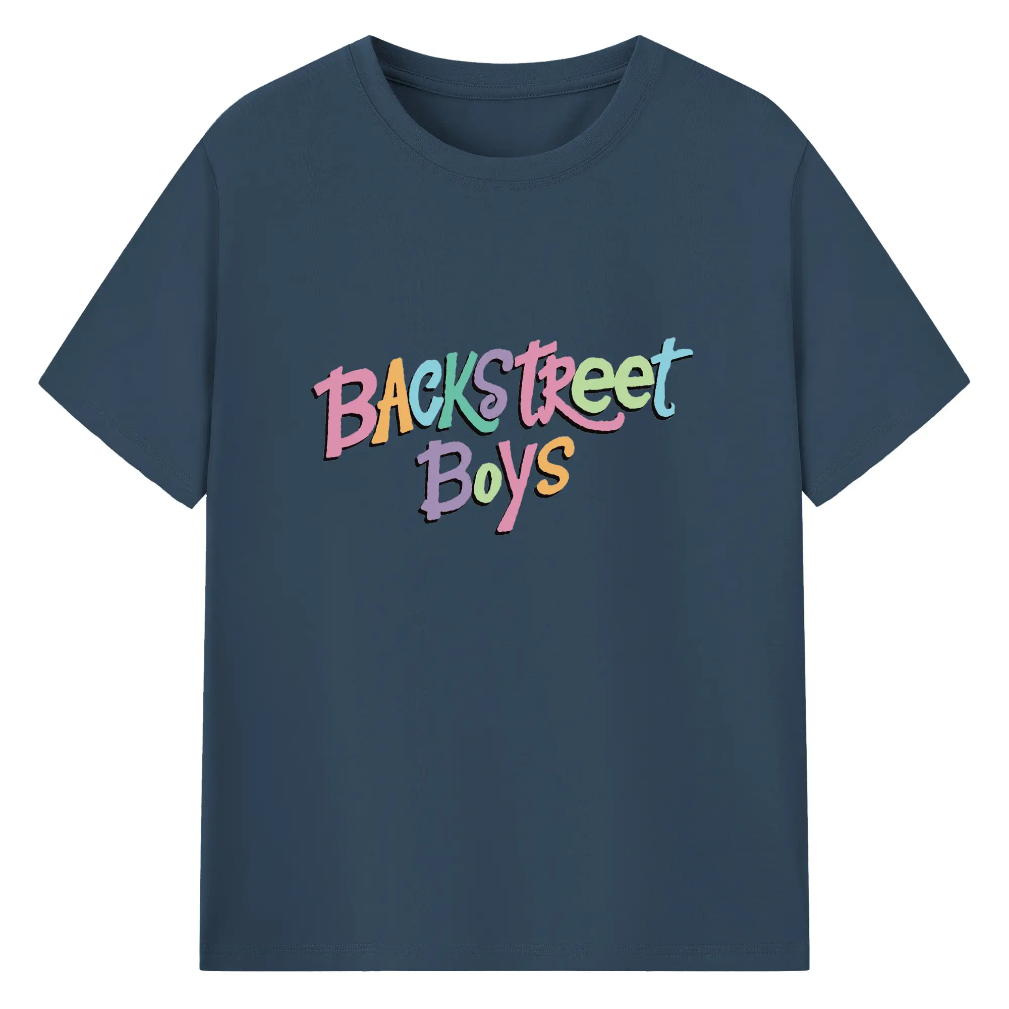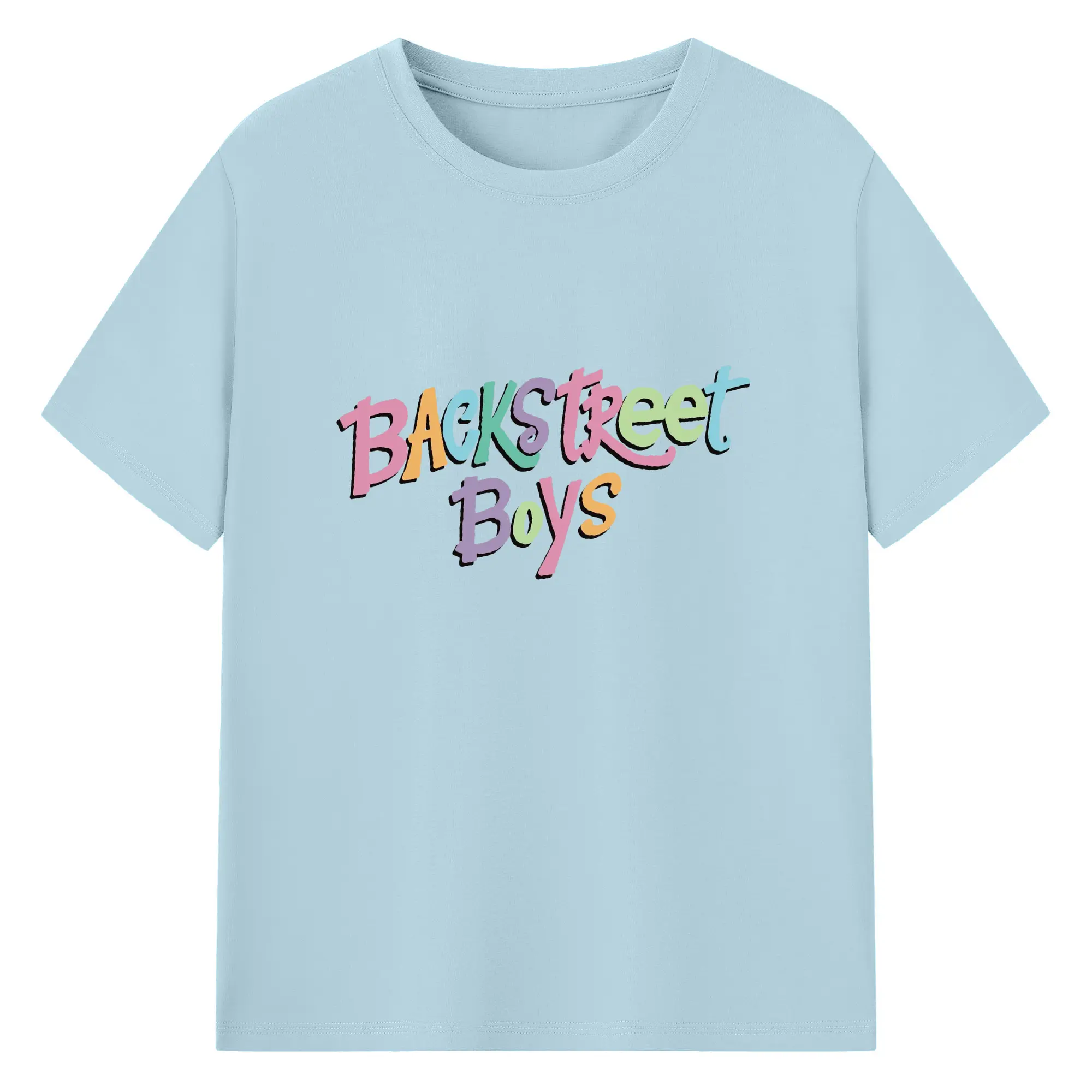 Backstreet Boys Colorful Logo DIY - 180g Cotton T-Shirt With Front Heat Transfer Print – Soft, Lightweight, Fitted Design – Comfortable Casual Wear For Sports & Everyday Use