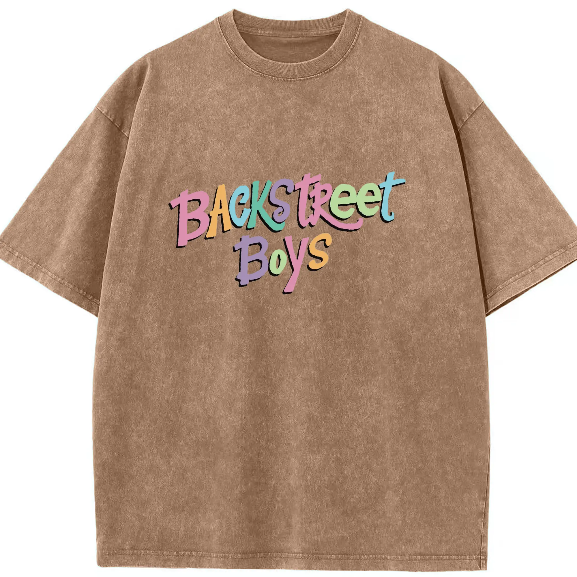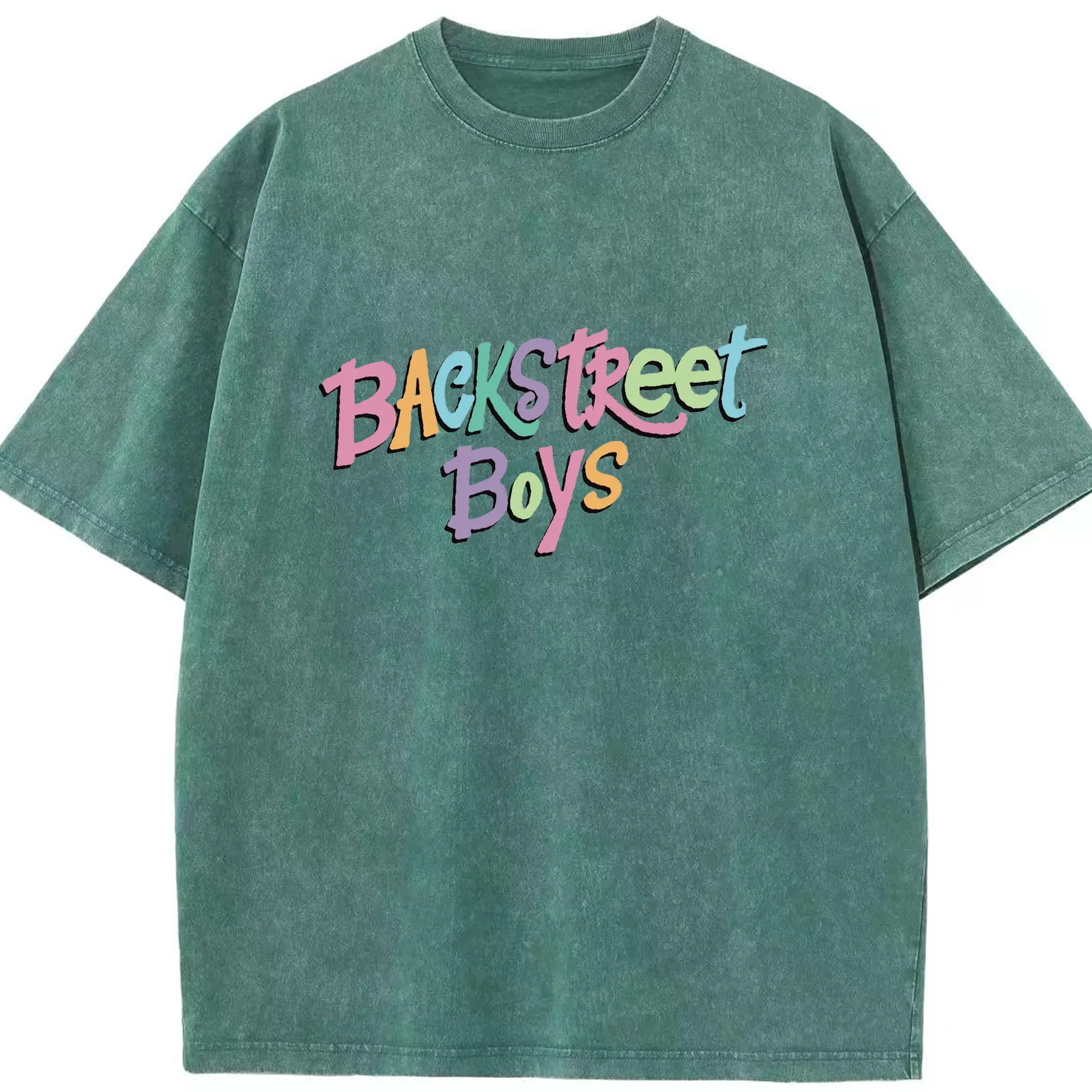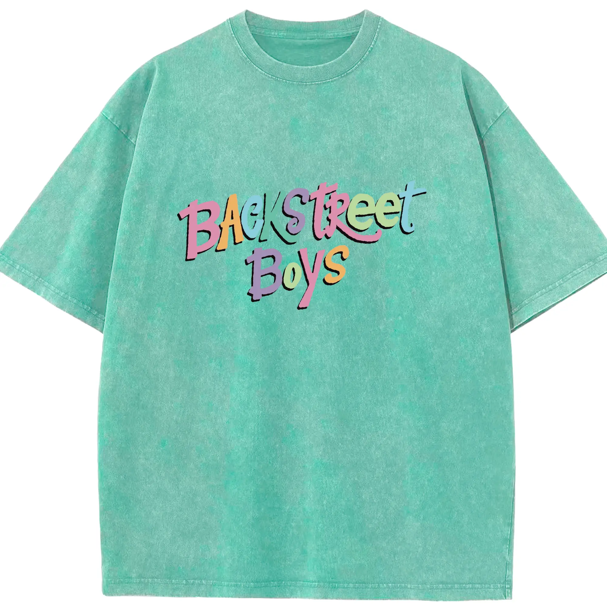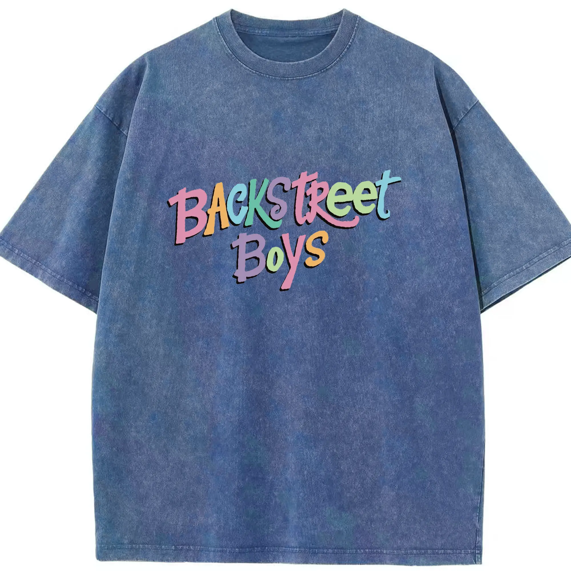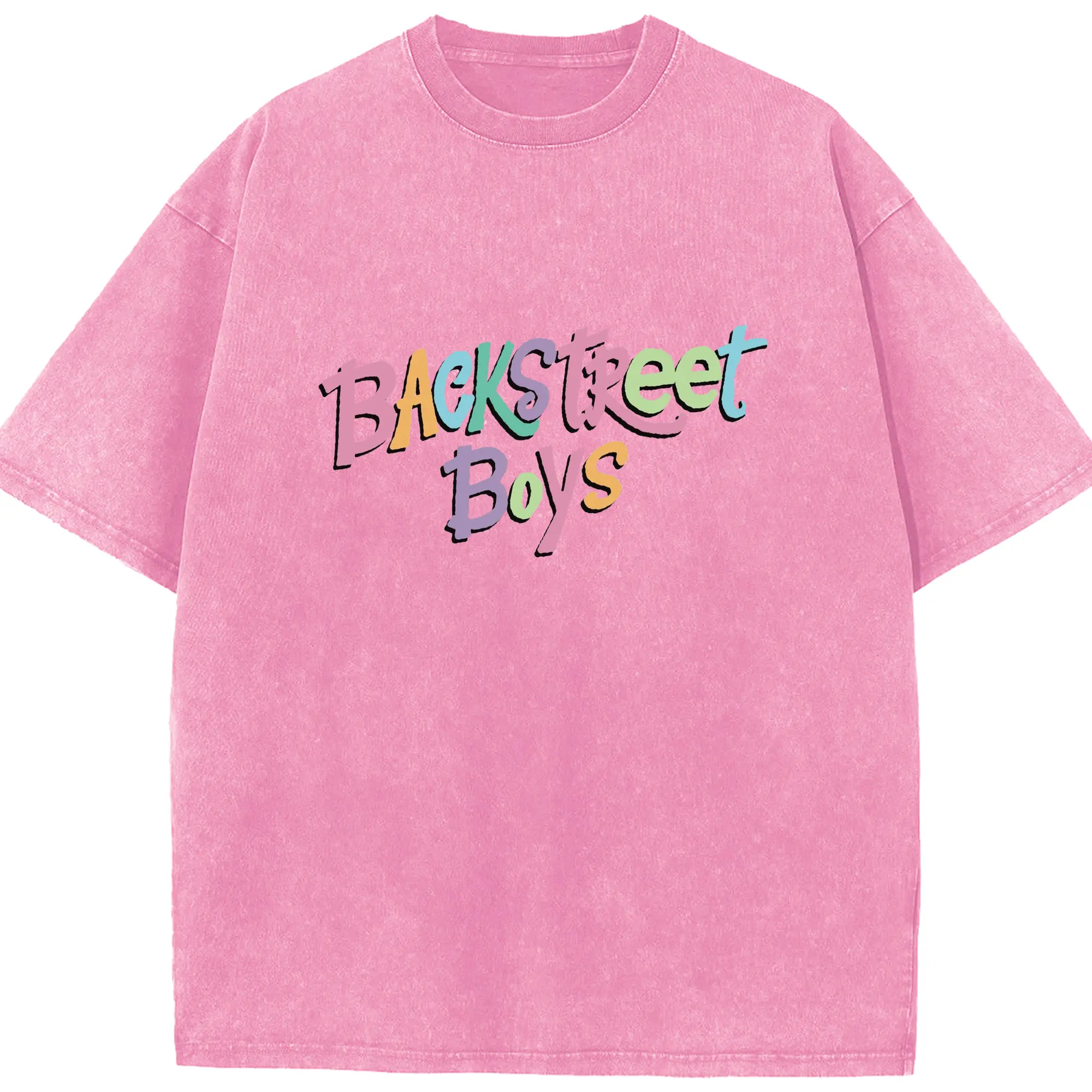 Backstreet Boys Colorful Logo DIY - Washed Vintage Look 230g Cotton Oversized T-Shirt With Front Heat Transfer Print – Soft, Lightweight, Stylish Fit – Comfortable Casual Wear For Sports & Everyday Use