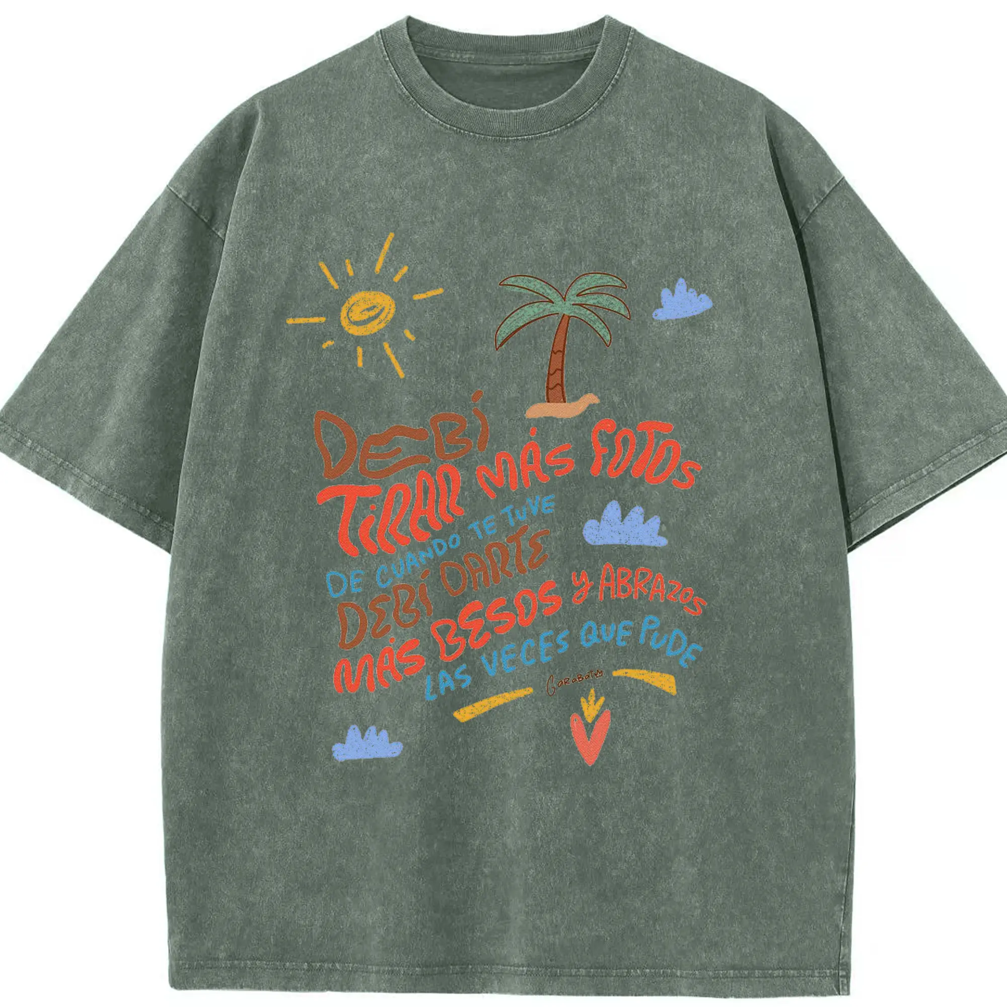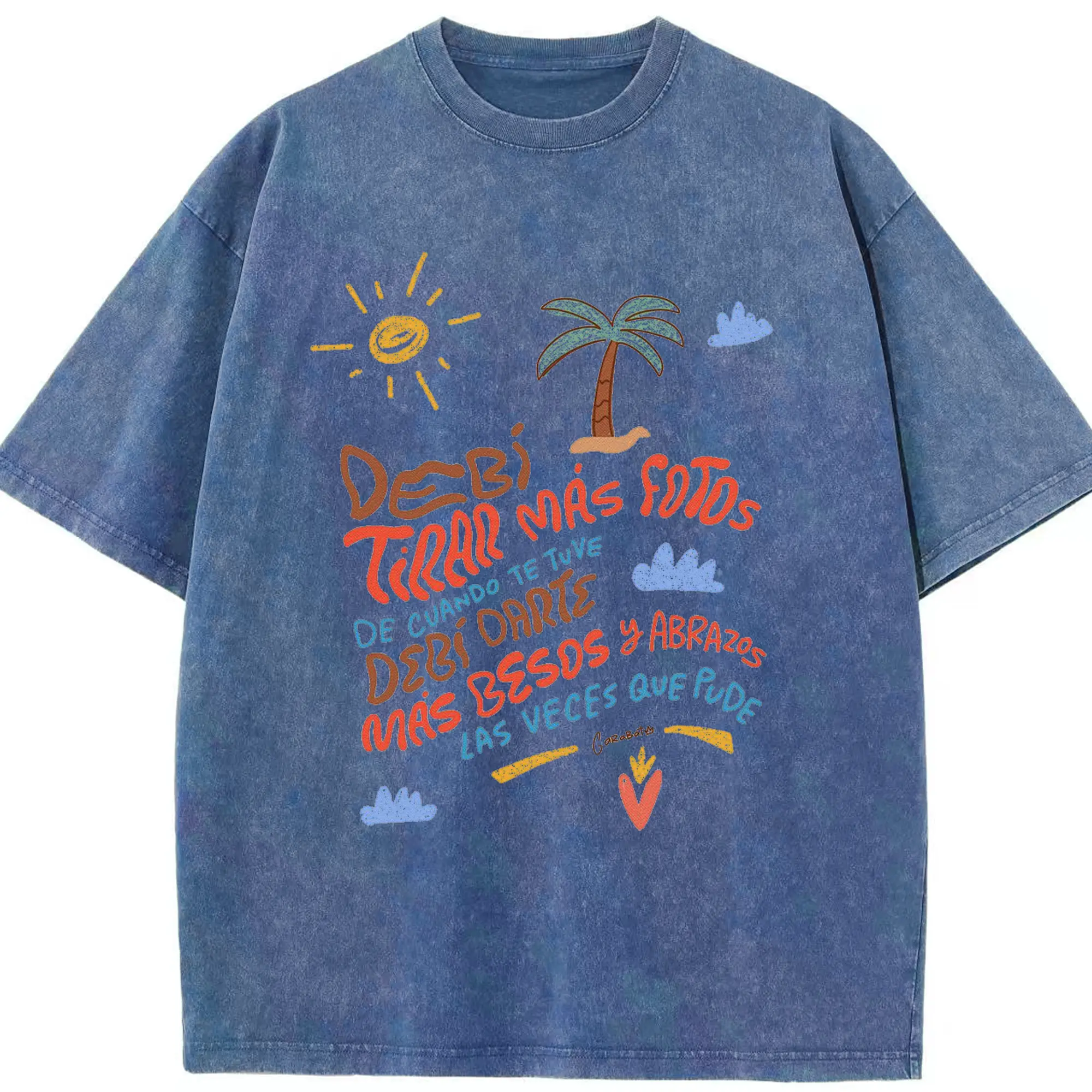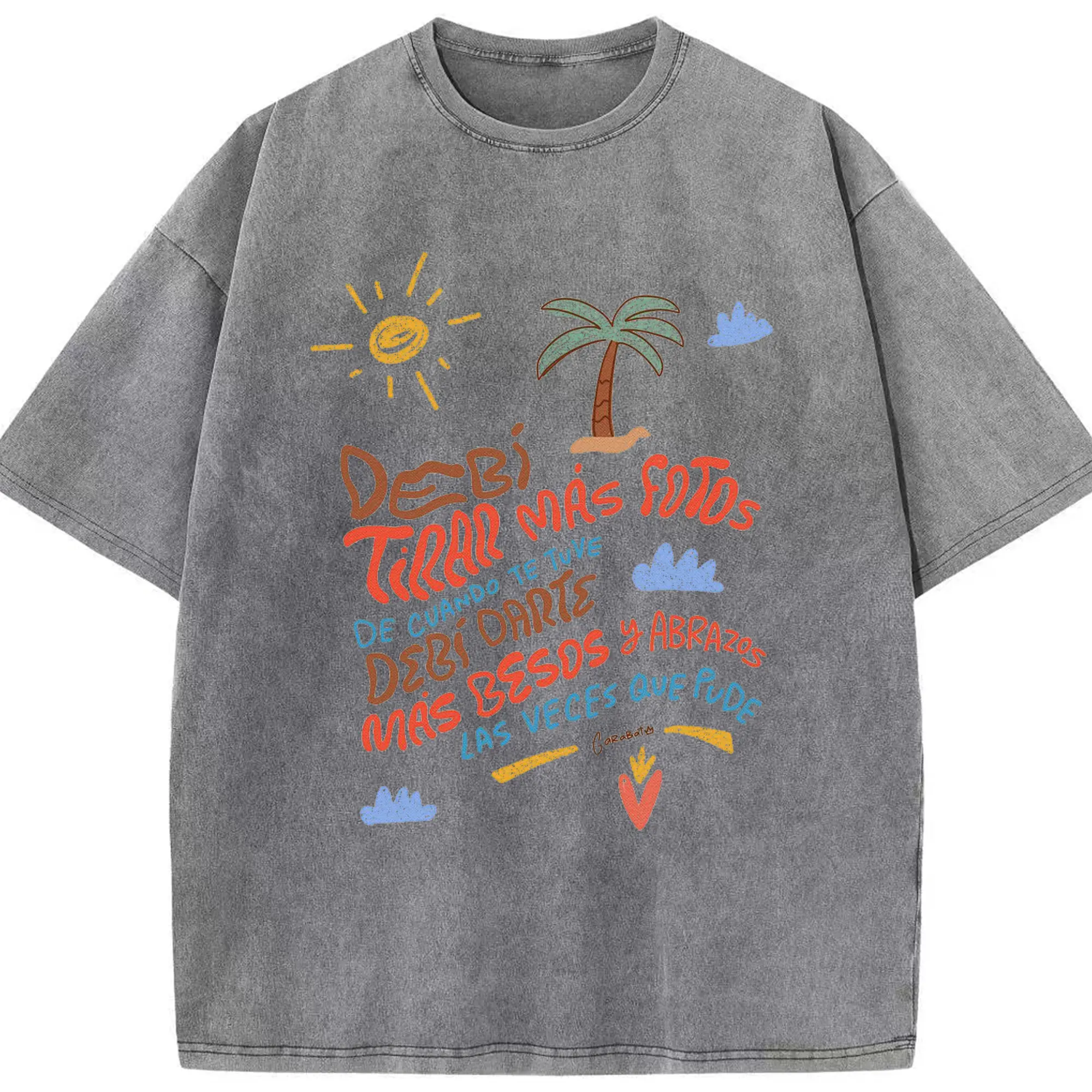 Bad Bunny “DEBÍ TIRAR MÁS FOTOS... DEBÍ DARTE MÁS BESOS Y ABRAZOS” Shirt - Washed Vintage Look 230g Cotton Oversized T-Shirt With Front Heat Transfer Print – Soft, Lightweight, Stylish Fit – Comfortable Casual Wear For Sports & Everyday Use