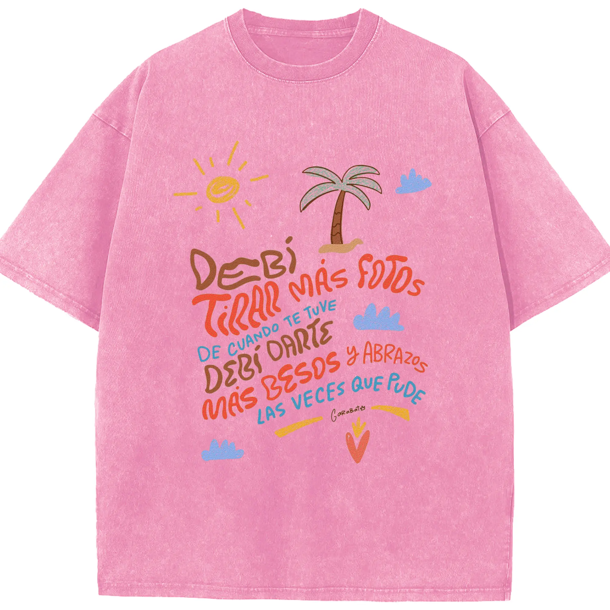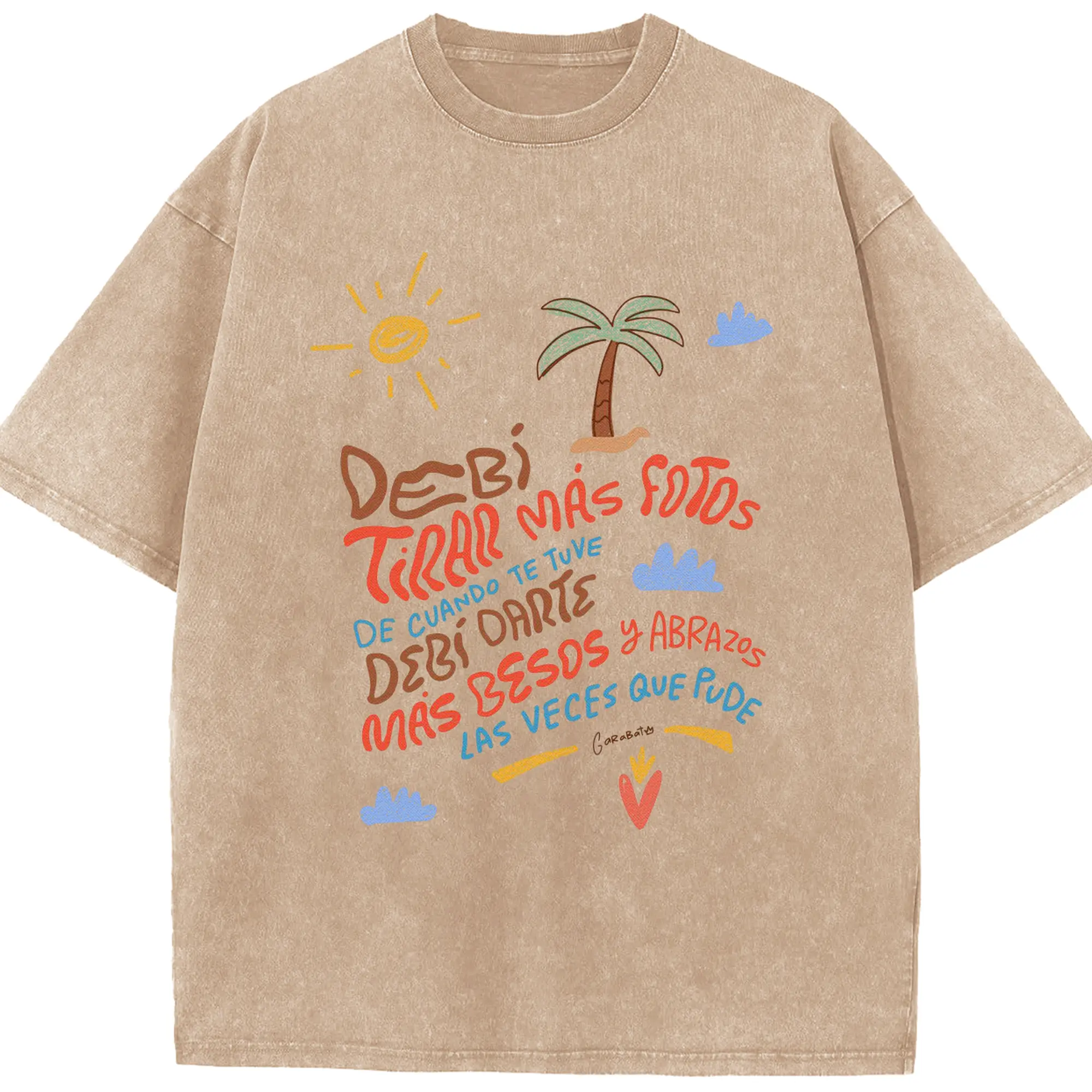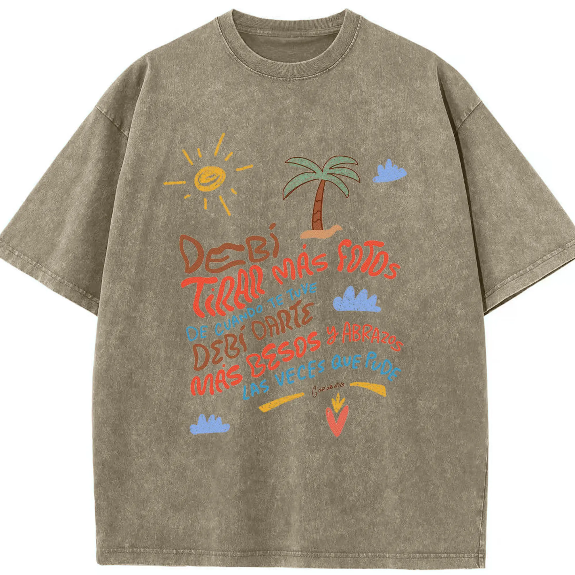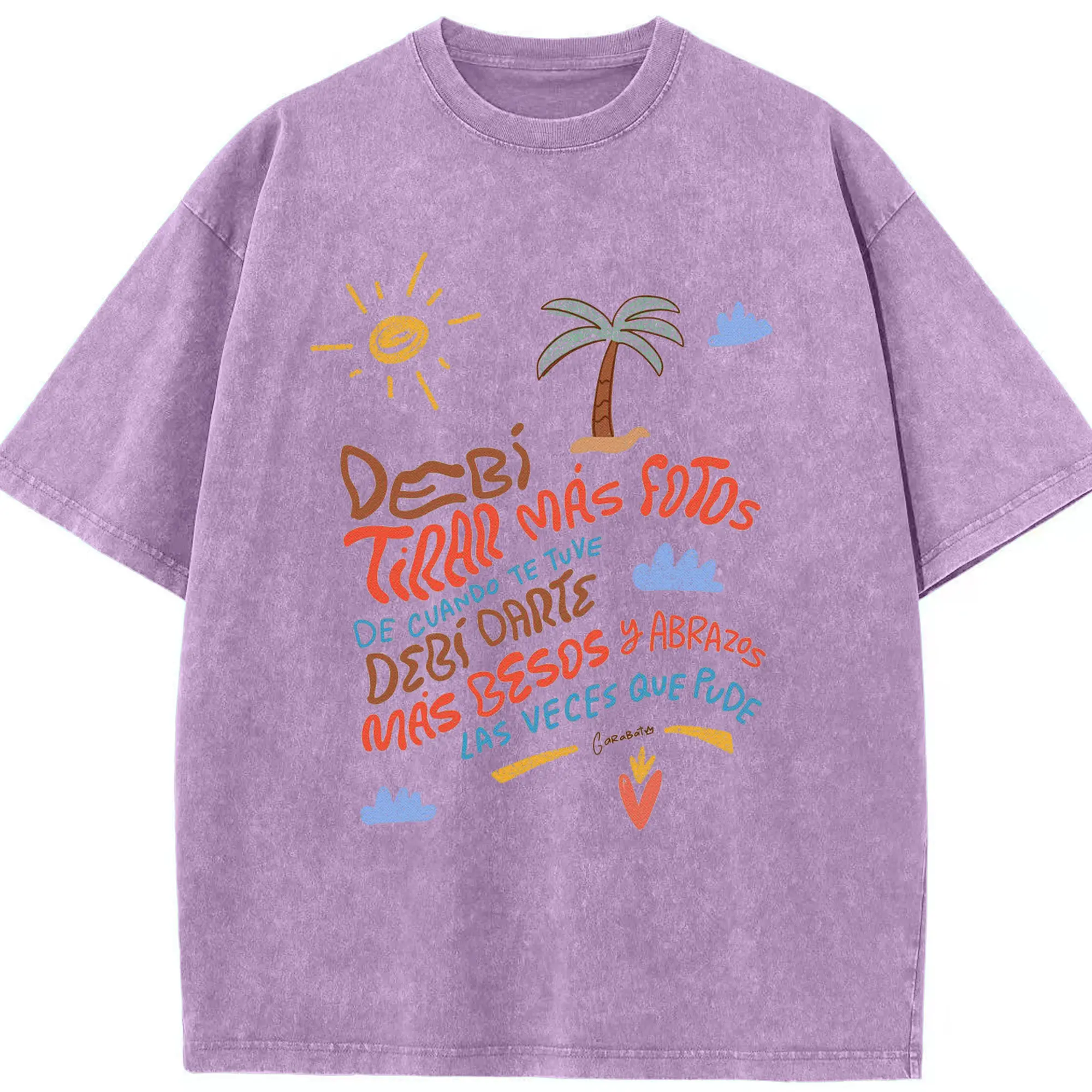 Bad Bunny “DEBÍ TIRAR MÁS FOTOS... DEBÍ DARTE MÁS BESOS Y ABRAZOS” Shirt - Washed Vintage Look 230g Cotton Oversized T-Shirt With Front Heat Transfer Print – Soft, Lightweight, Stylish Fit – Comfortable Casual Wear For Sports & Everyday Use