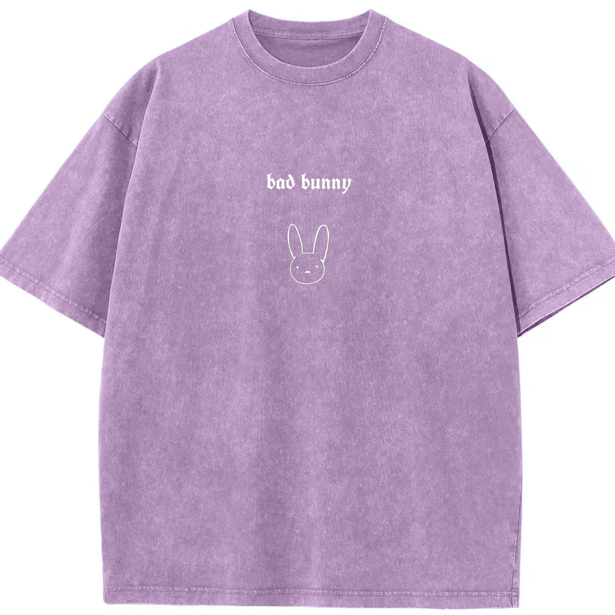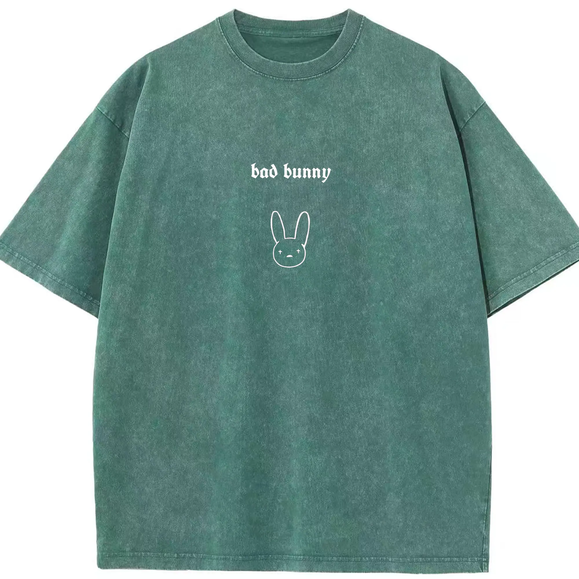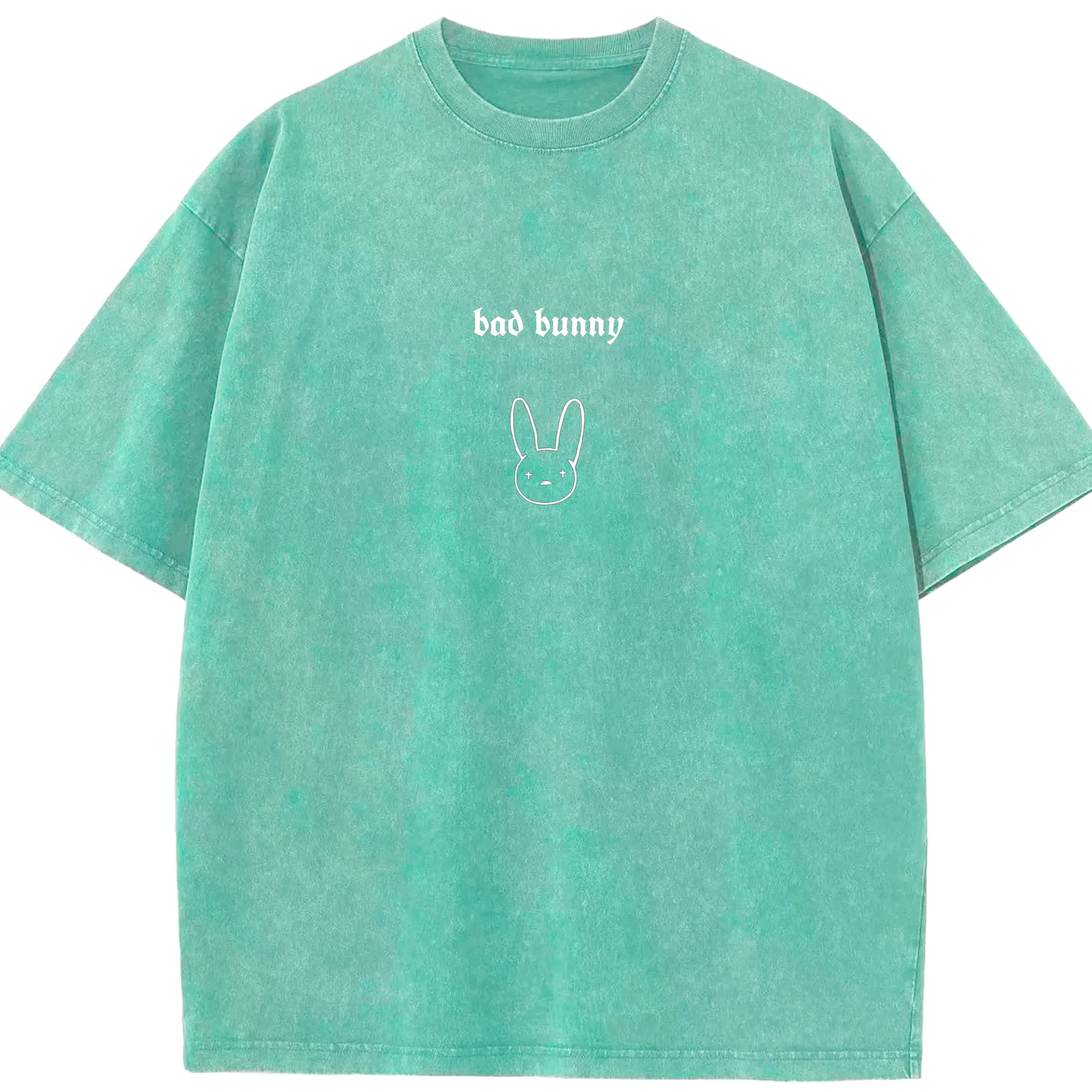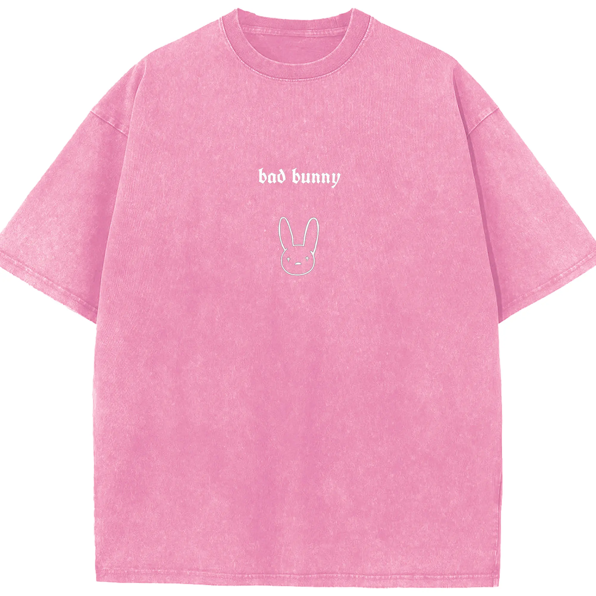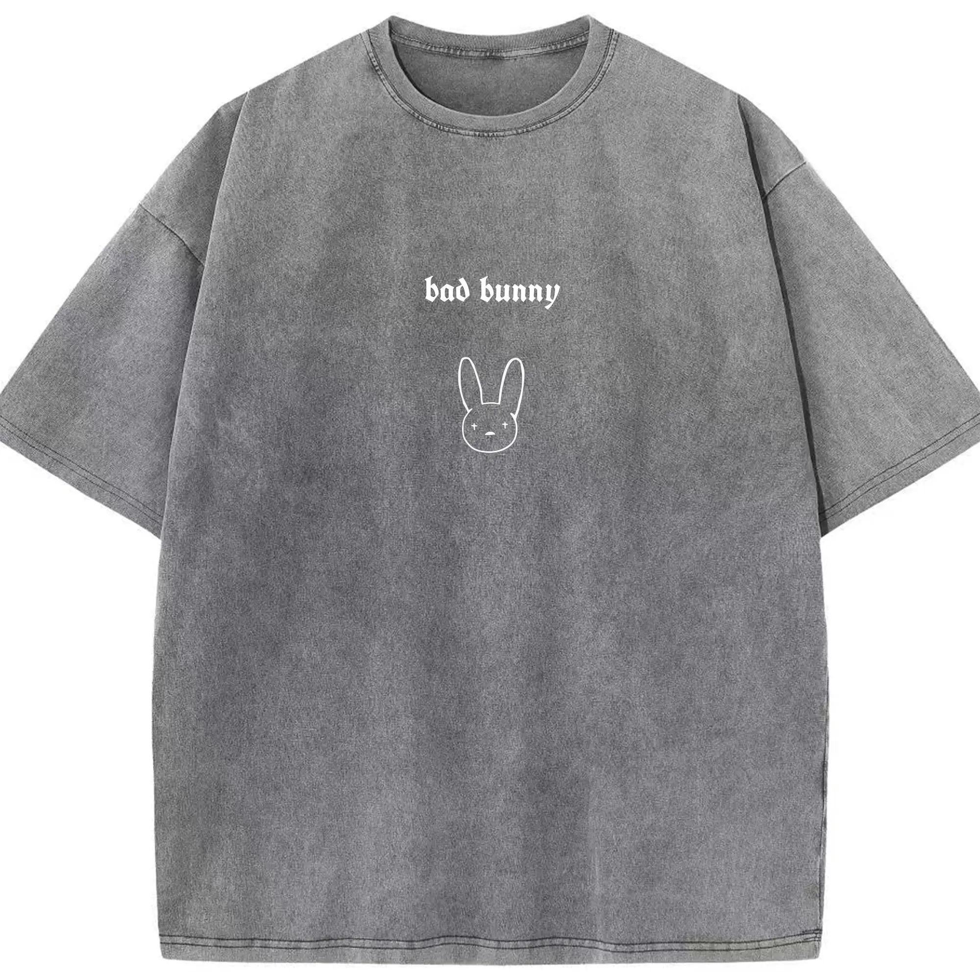 Bad Bunny Minimalist Line Art DIY - Washed Vintage Look 230g Cotton Oversized T-Shirt With Front Heat Transfer Print – Soft, Lightweight, Stylish Fit – Comfortable Casual Wear For Sports & Everyday Use