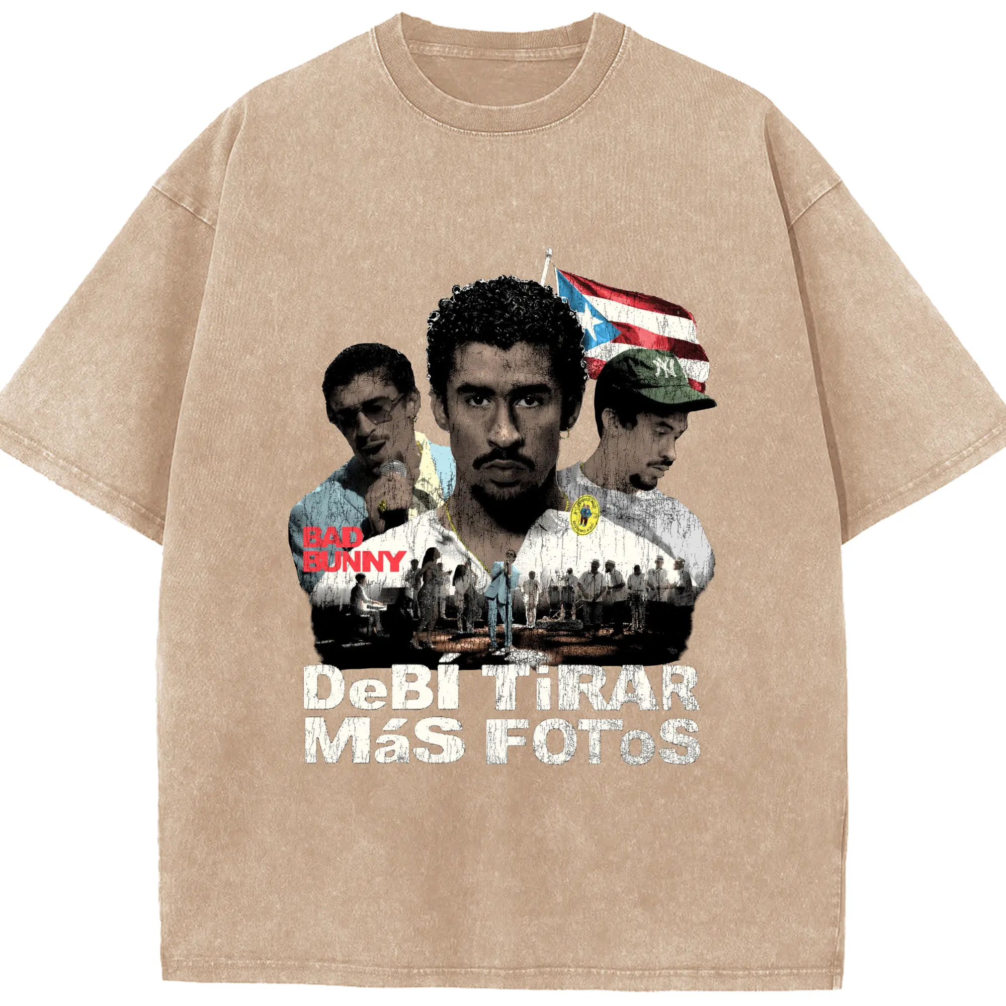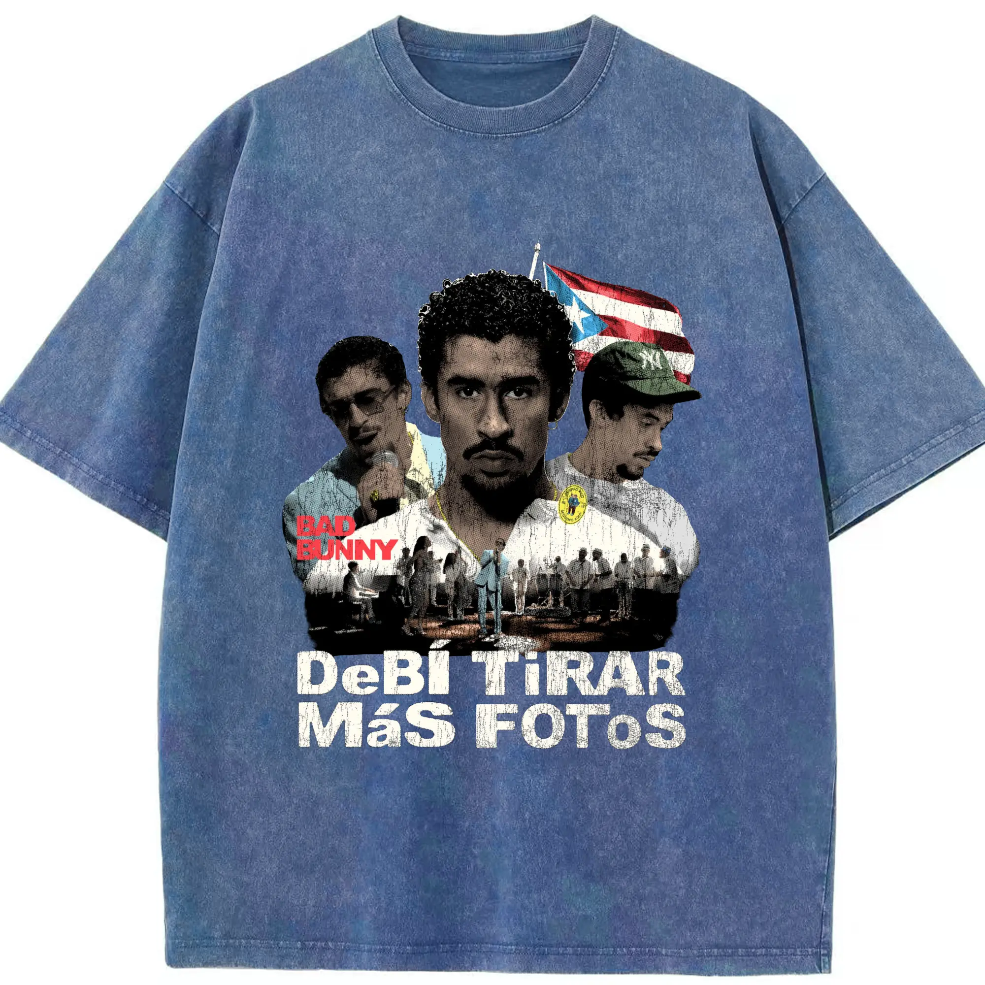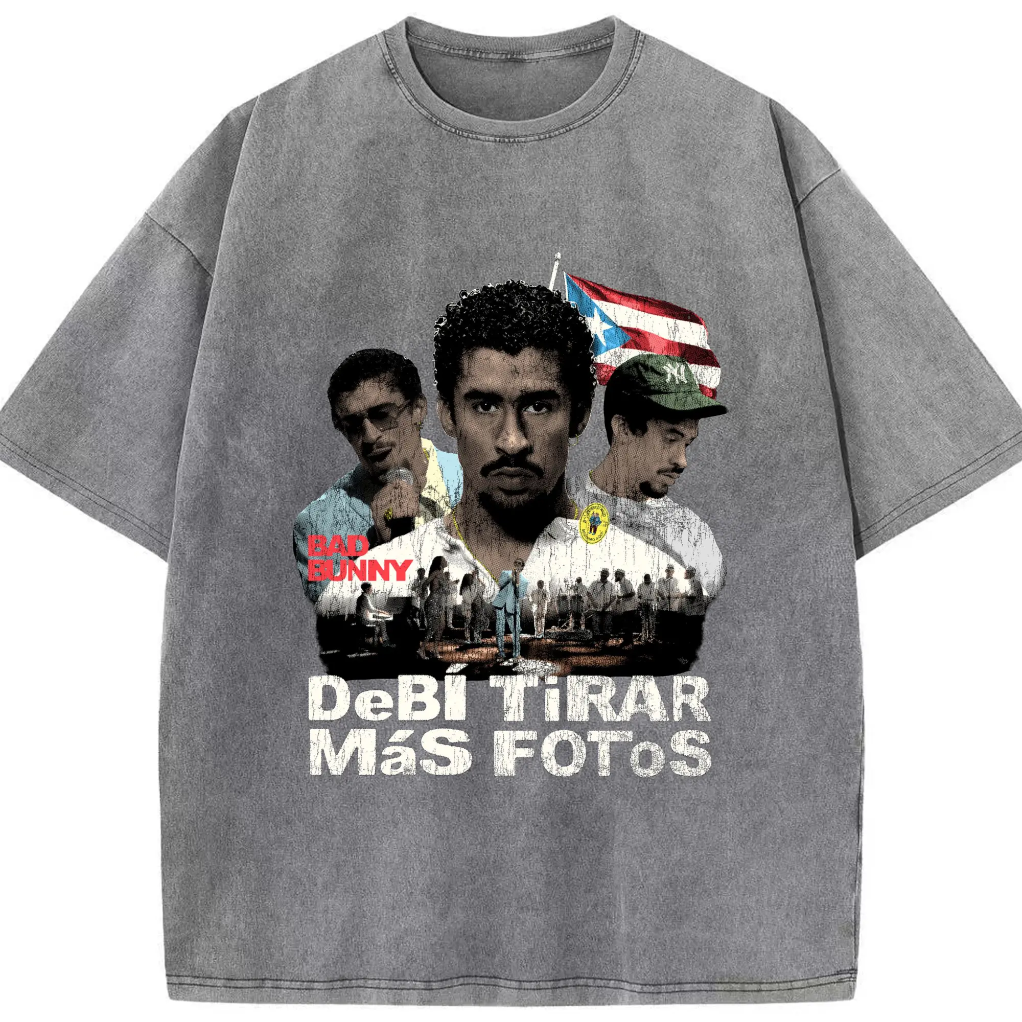 Bad Bunny Puerto Rican Retro Music DIY - Washed Vintage Look 230g Cotton Oversized T-Shirt With Front Heat Transfer Print – Soft, Lightweight, Stylish Fit – Comfortable Casual Wear For Sports & Everyday Use