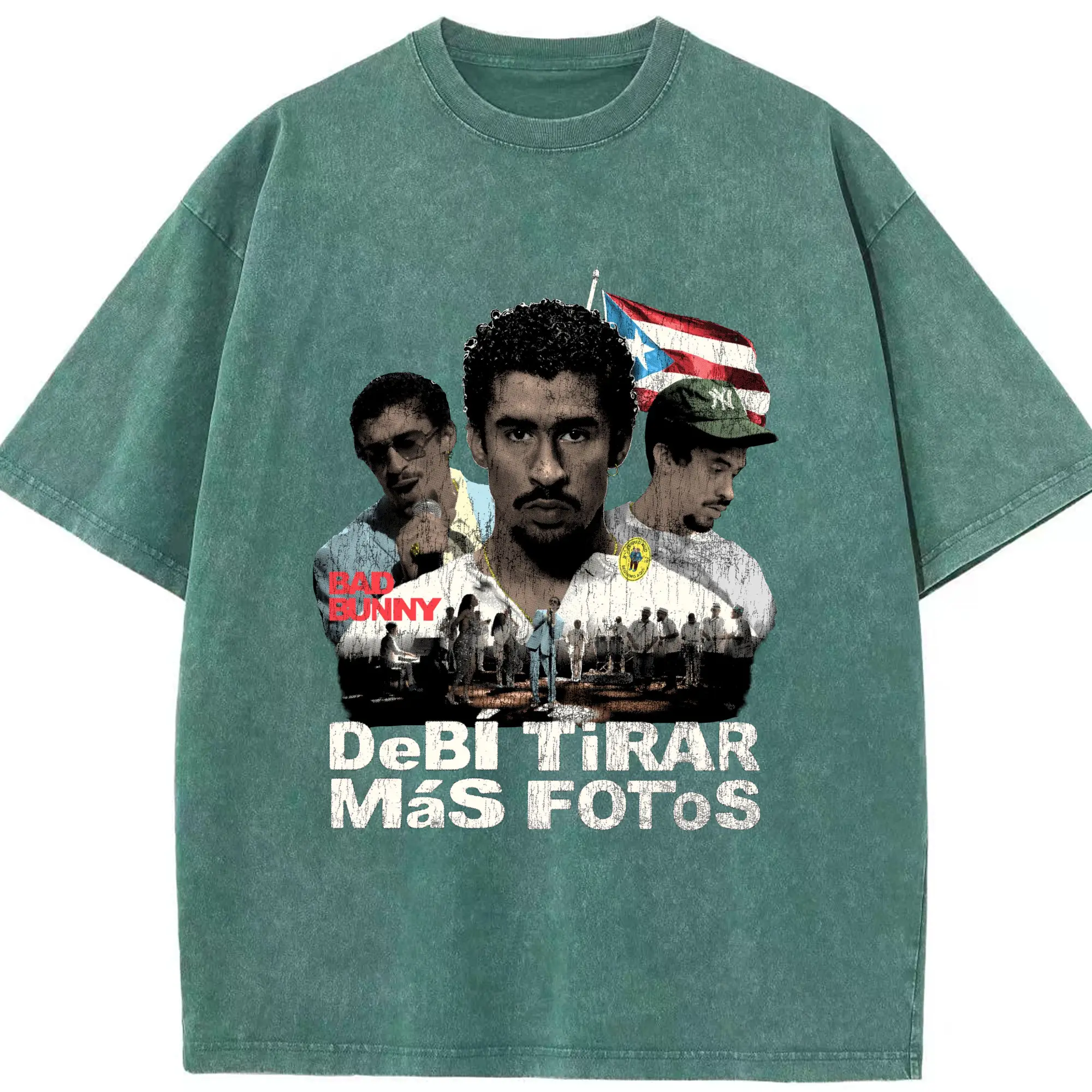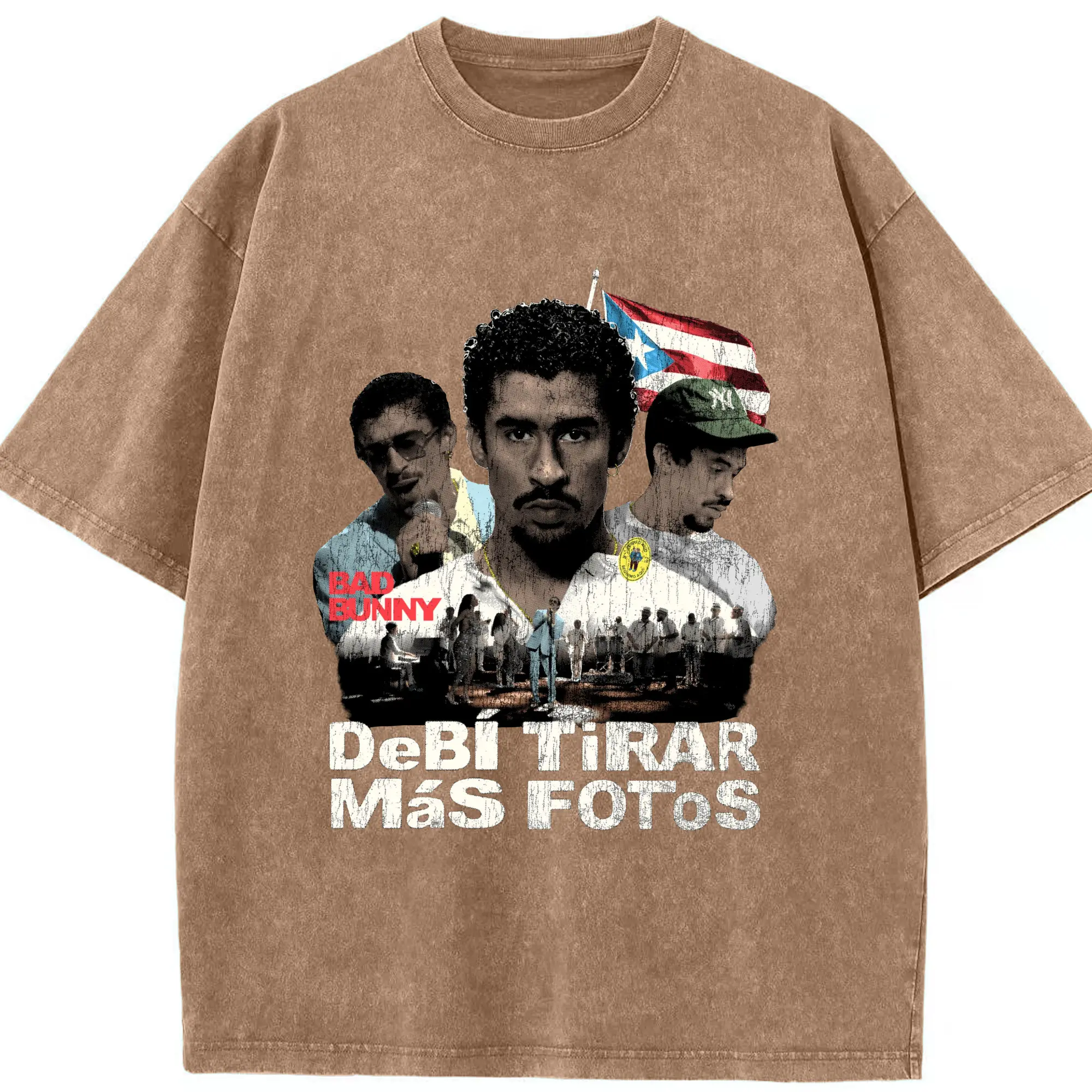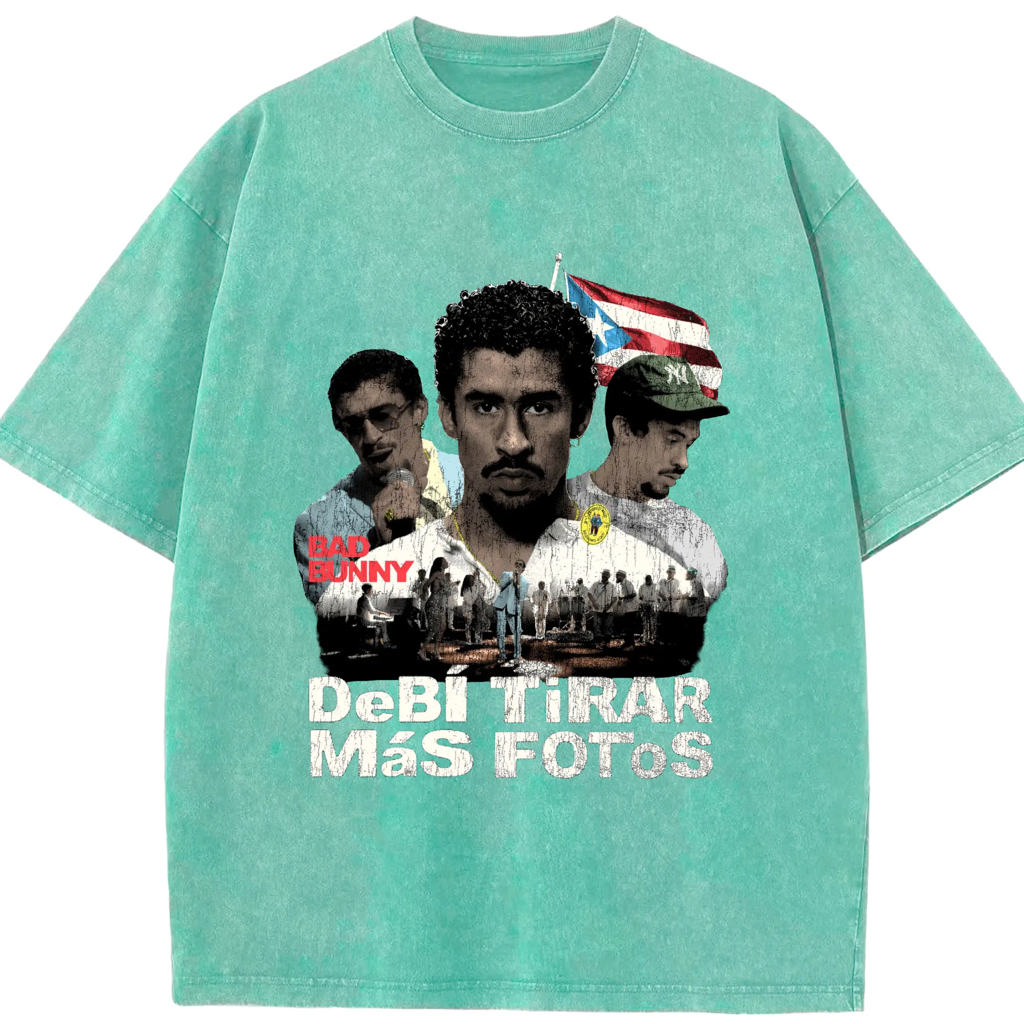 Bad Bunny Puerto Rican Retro Music DIY - Washed Vintage Look 230g Cotton Oversized T-Shirt With Front Heat Transfer Print – Soft, Lightweight, Stylish Fit – Comfortable Casual Wear For Sports & Everyday Use