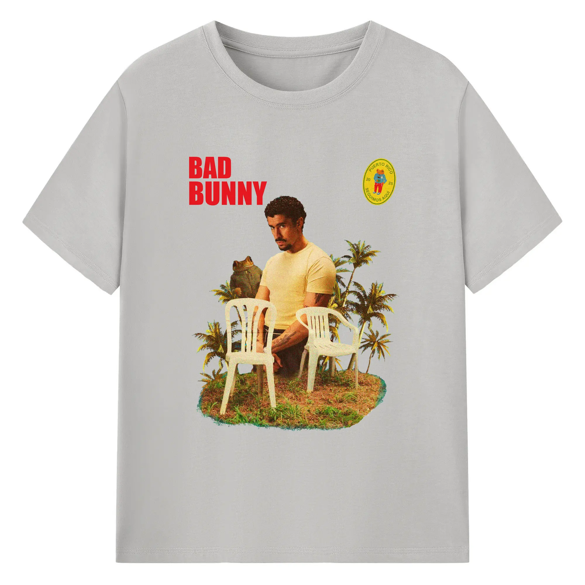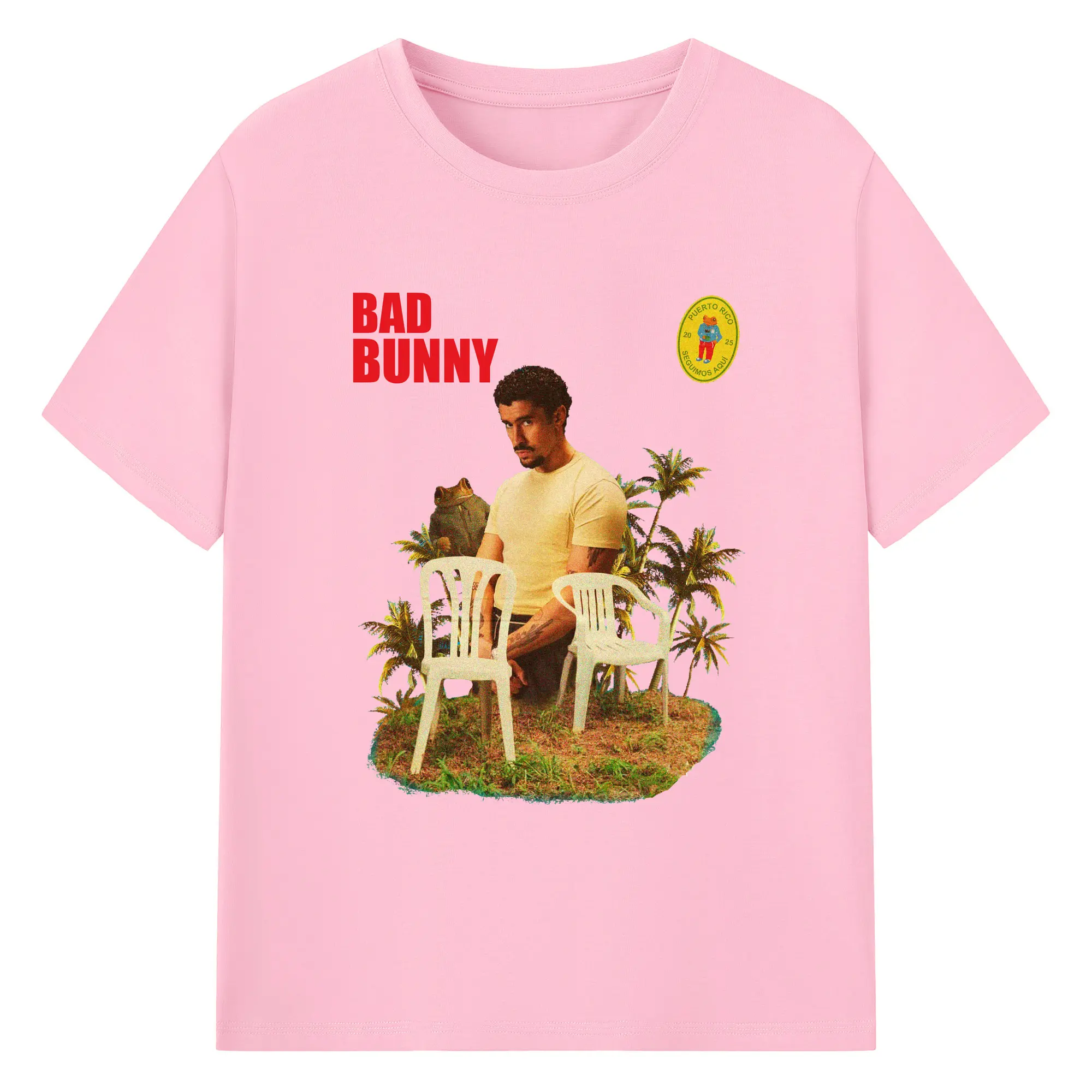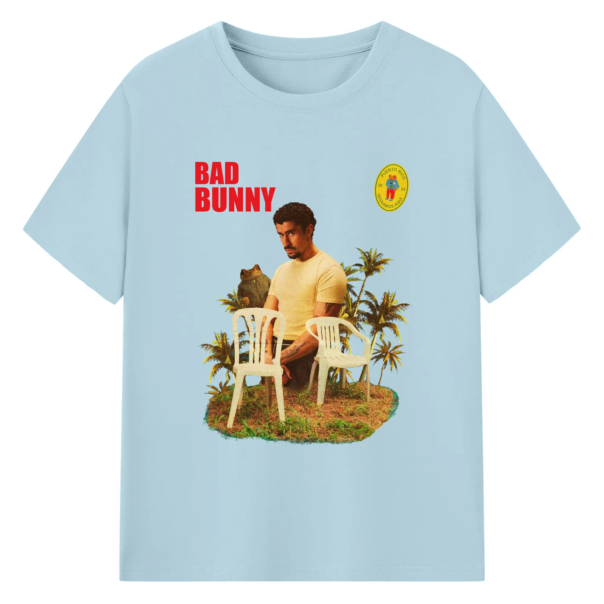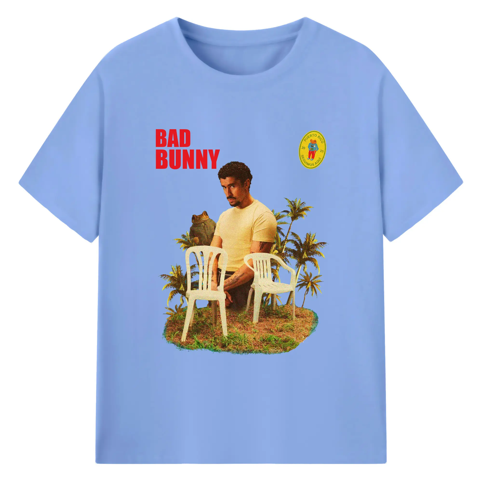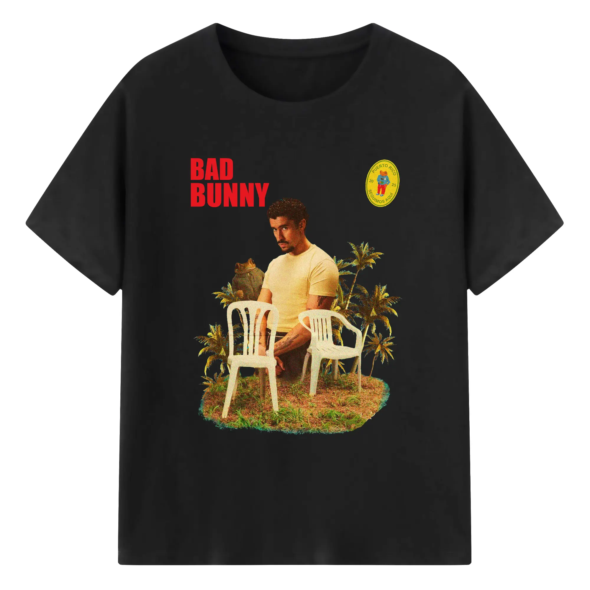 Bad Bunny Puerto Rico Retro Collage DIY - 180g Cotton T-Shirt With Front Heat Transfer Print – Soft, Lightweight, Fitted Design – Comfortable Casual Wear For Sports & Everyday Use