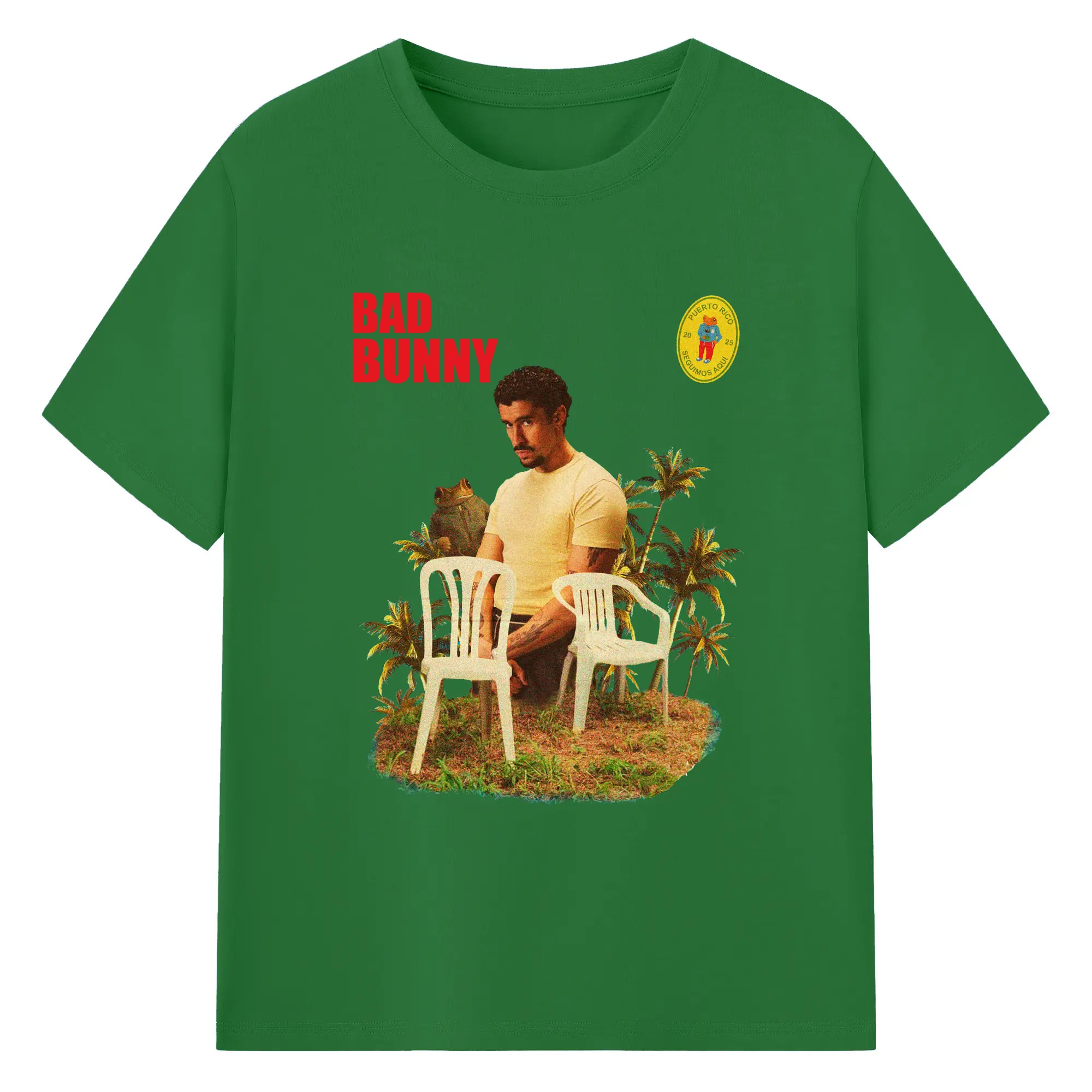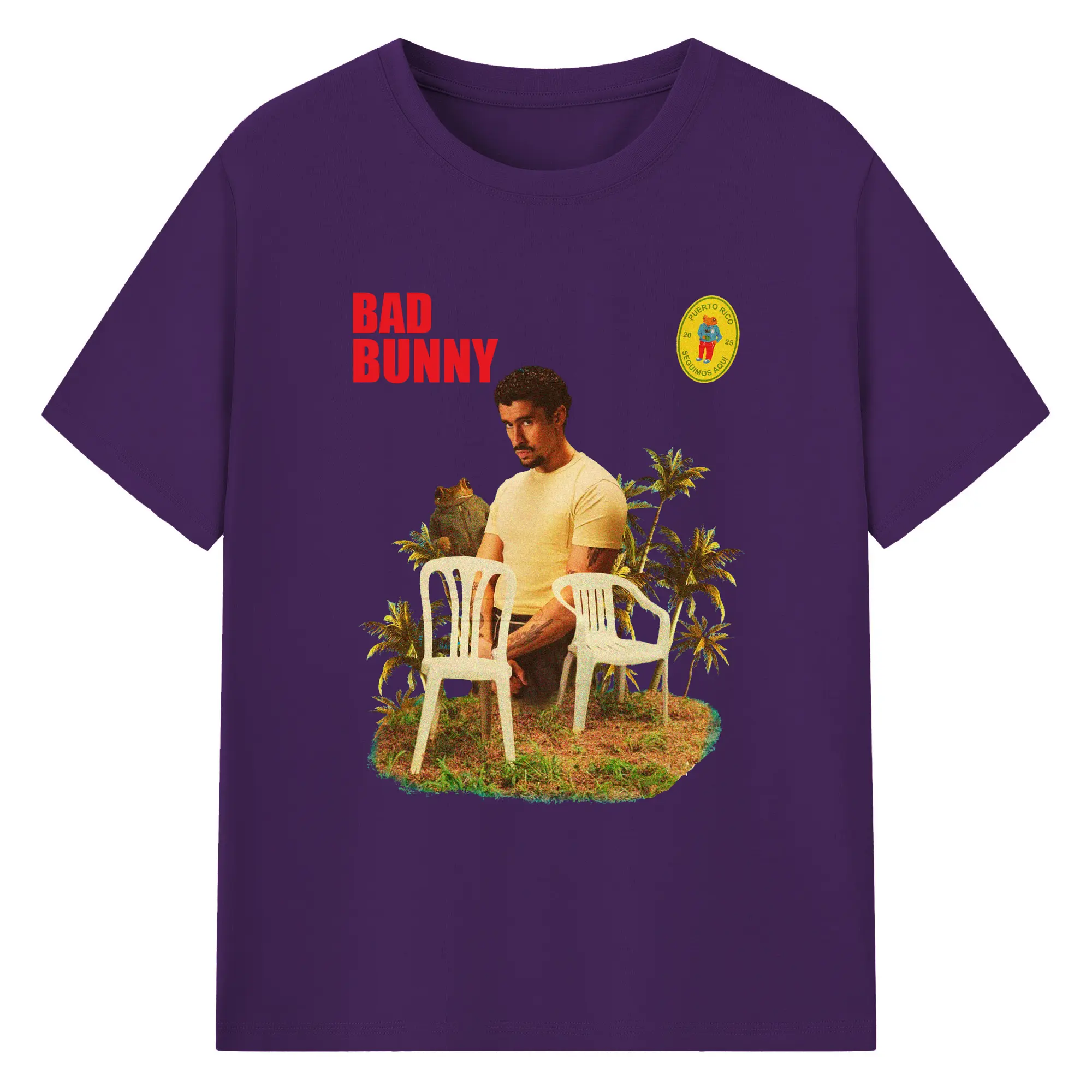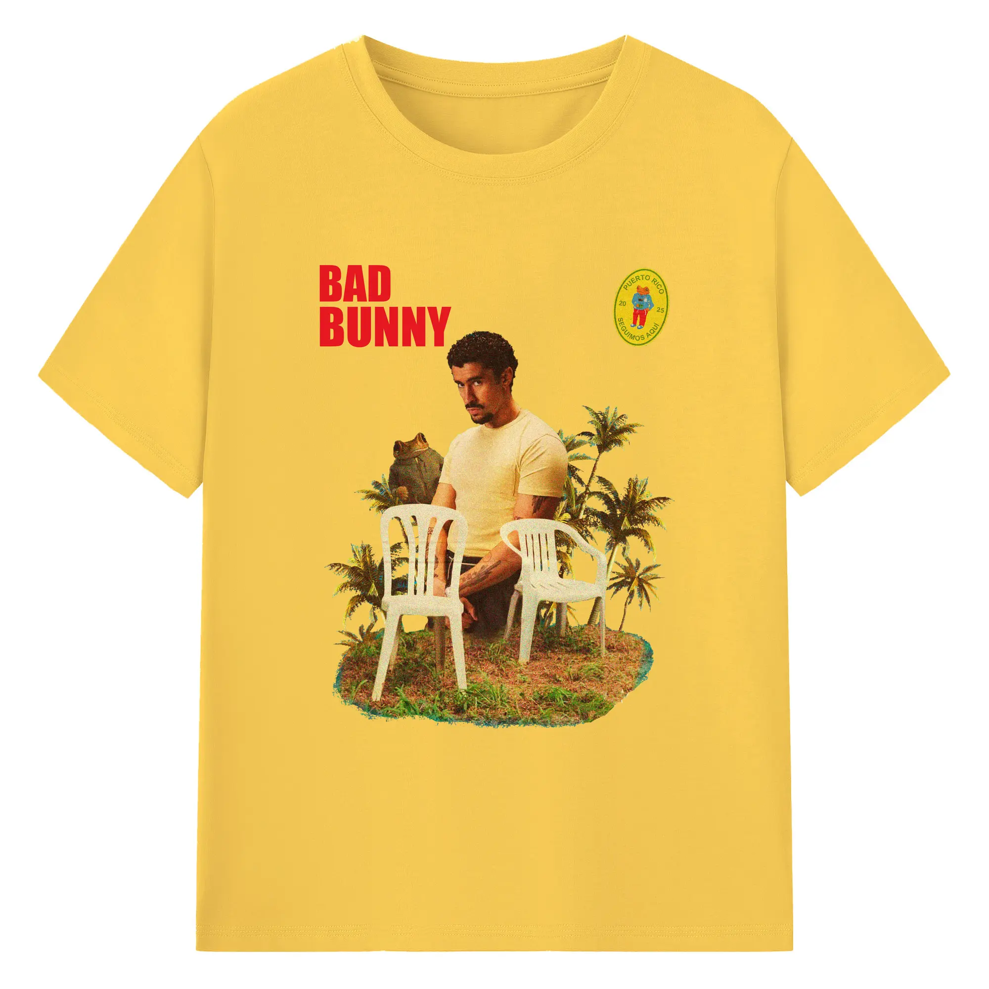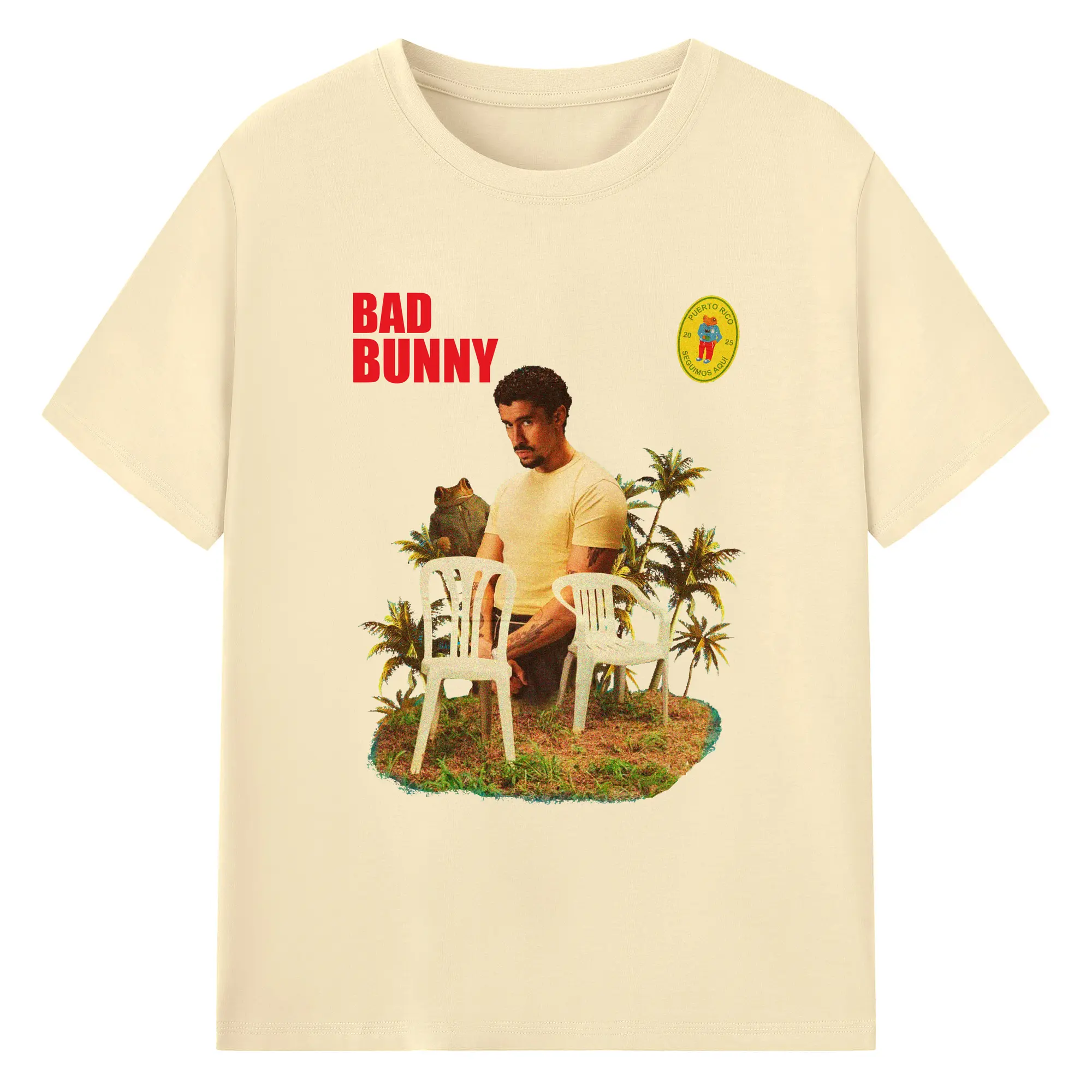 Bad Bunny Puerto Rico Retro Collage DIY - 180g Cotton T-Shirt With Front Heat Transfer Print – Soft, Lightweight, Fitted Design – Comfortable Casual Wear For Sports & Everyday Use